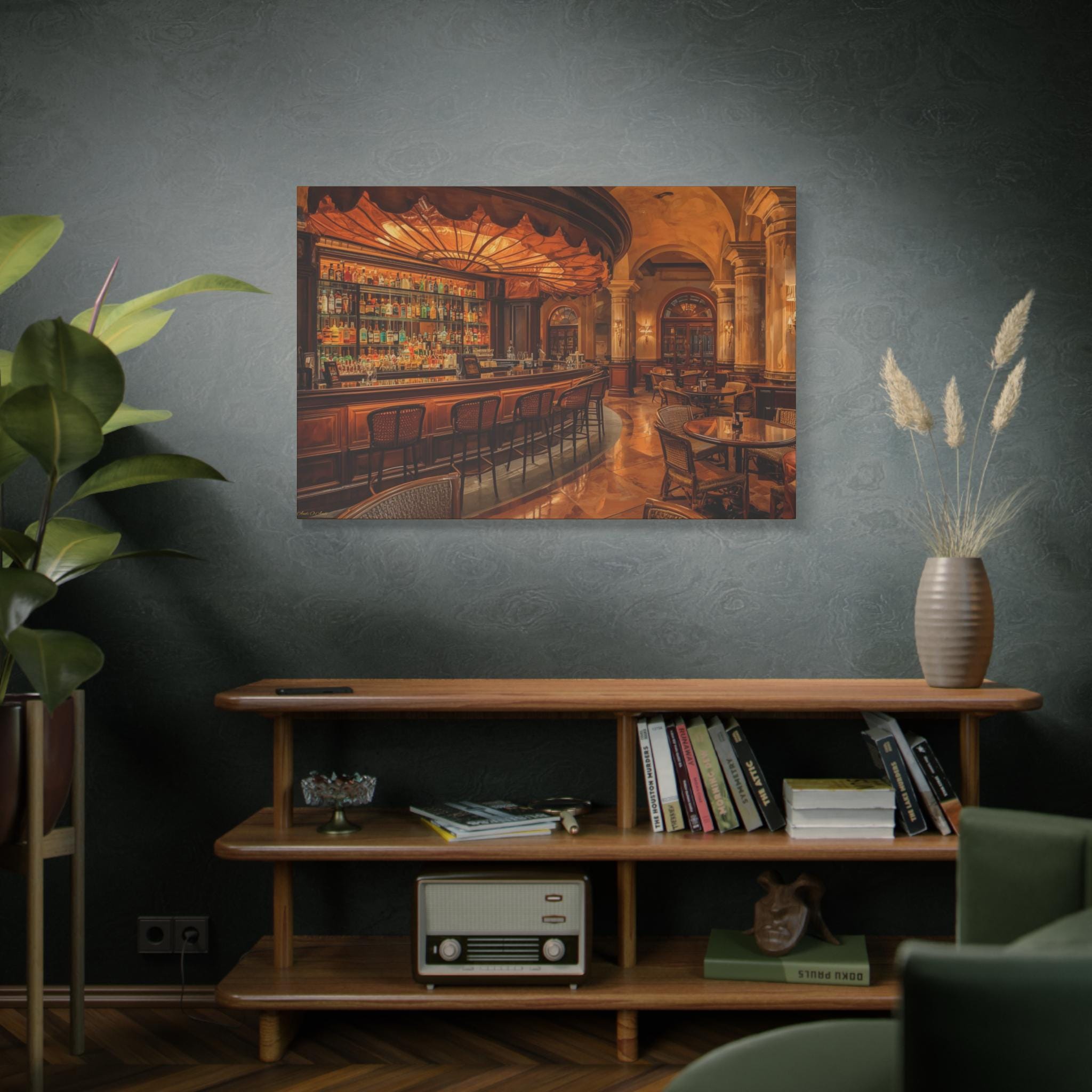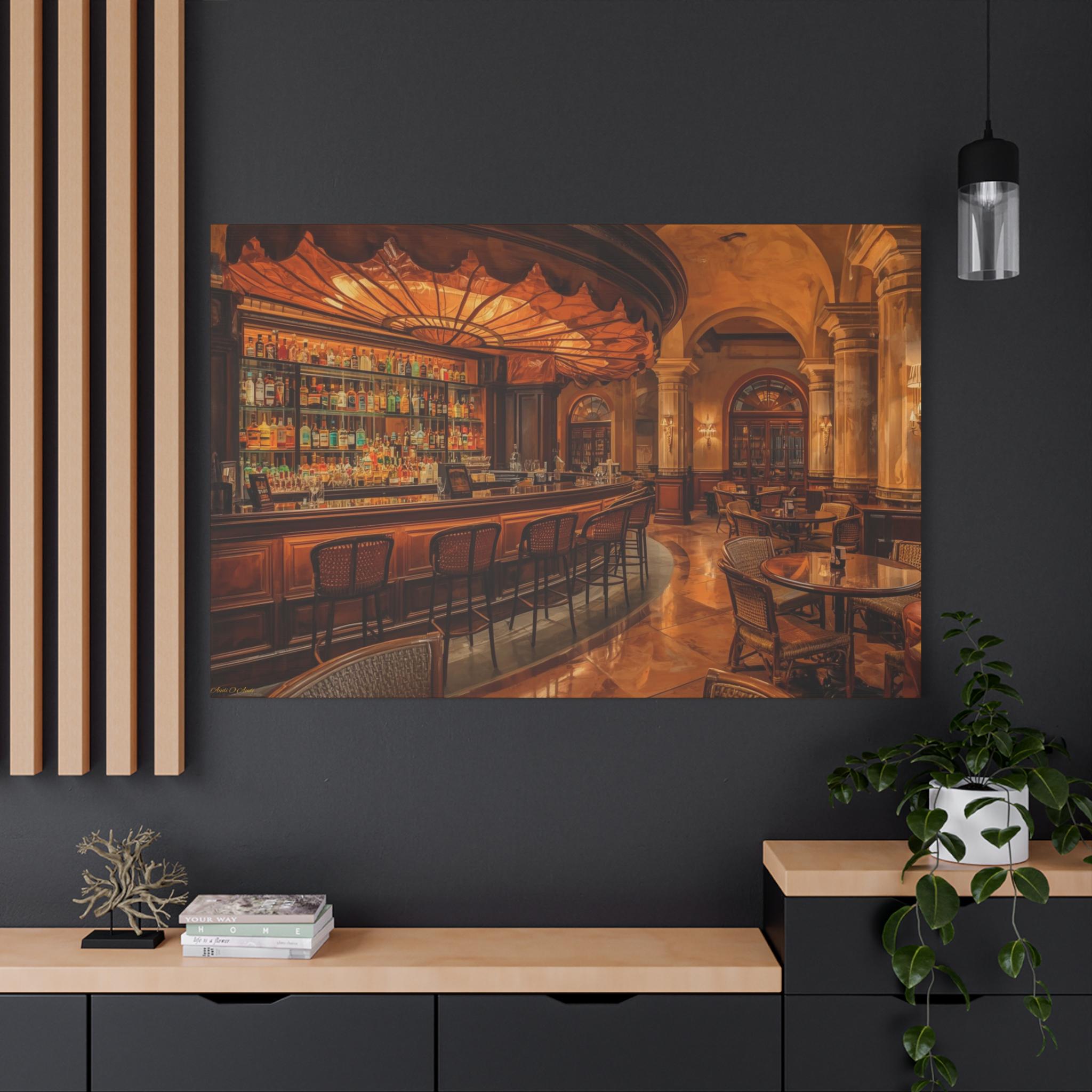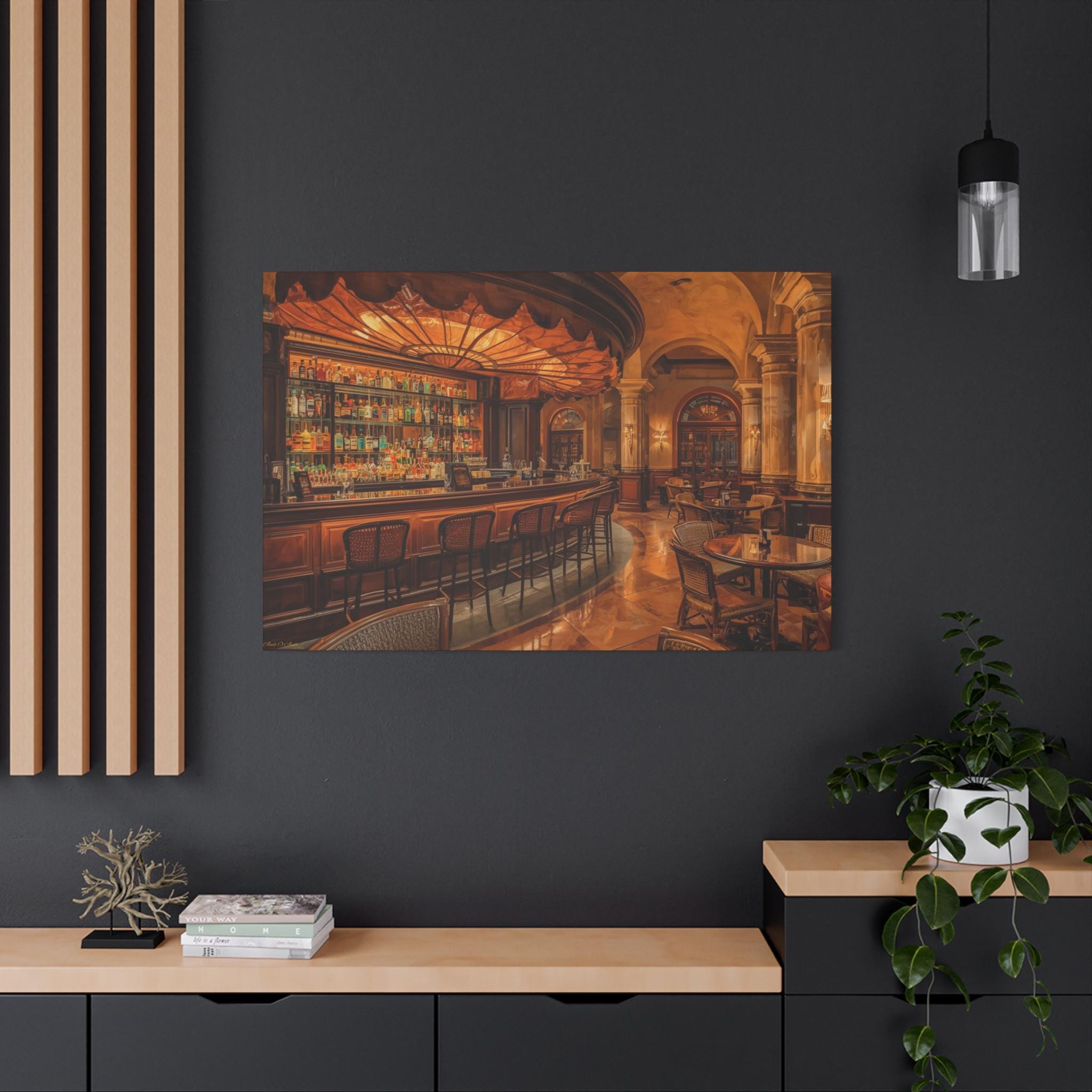 Amber Reflections, Elegant Bar Scene Canvas Art, Stretched Wall Decor, Vintage Bar Print, Home Decoration, Perfect for Living Room or Pub