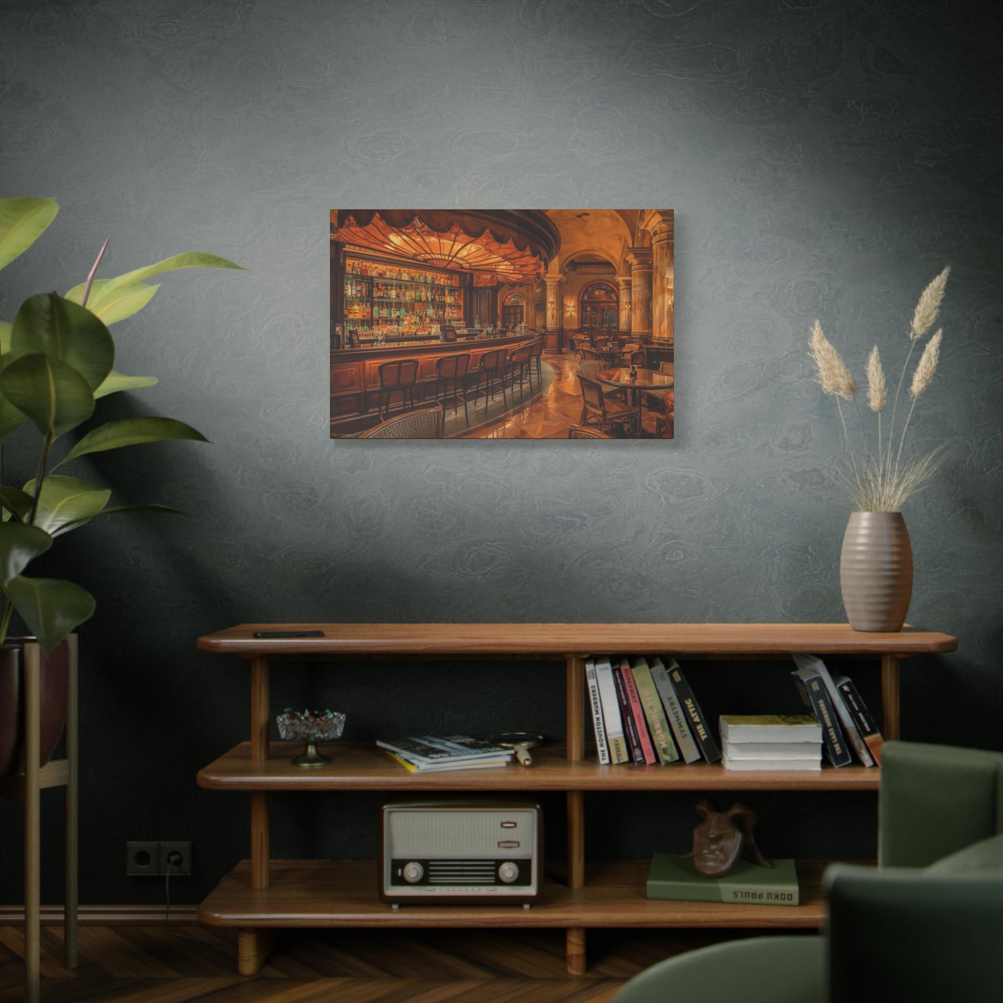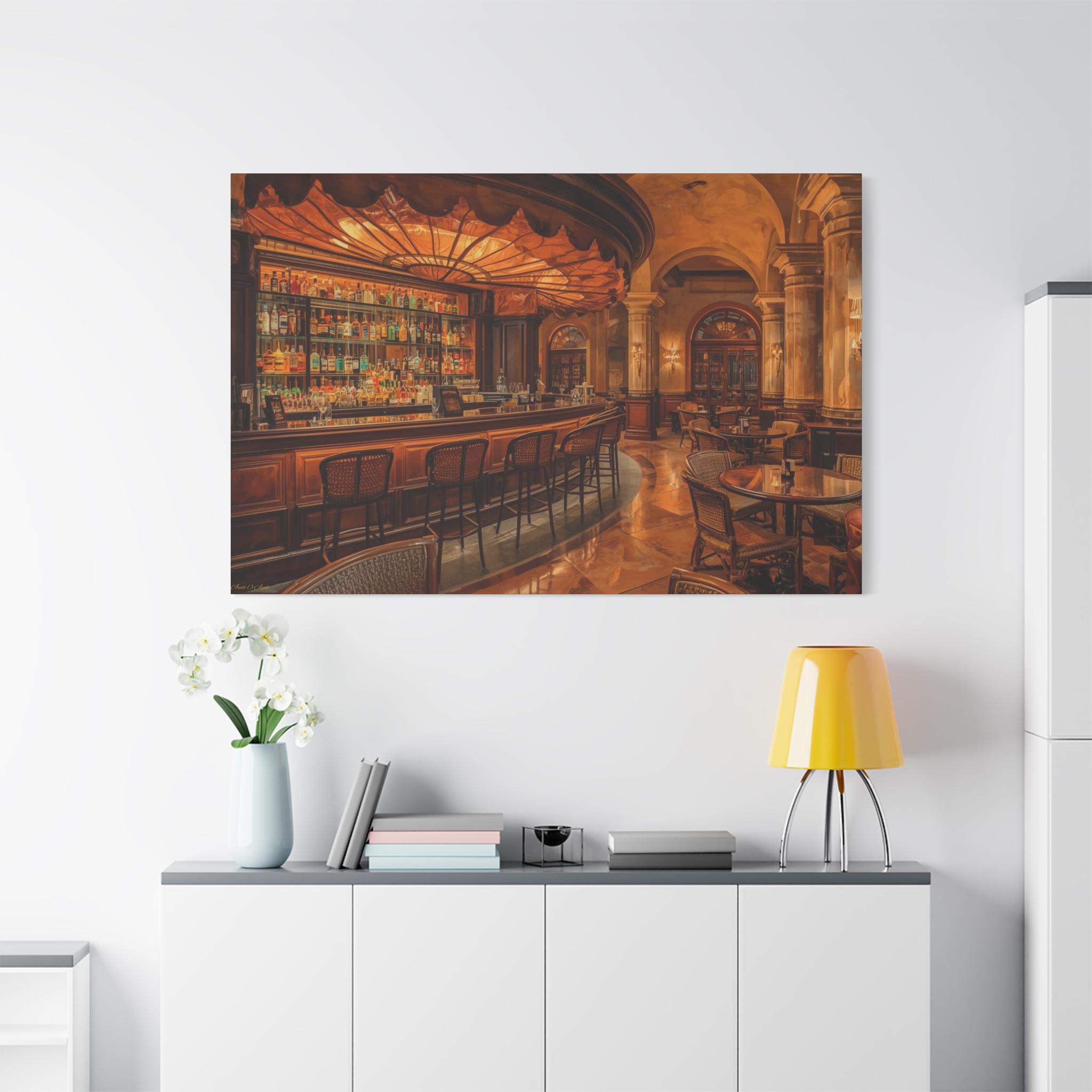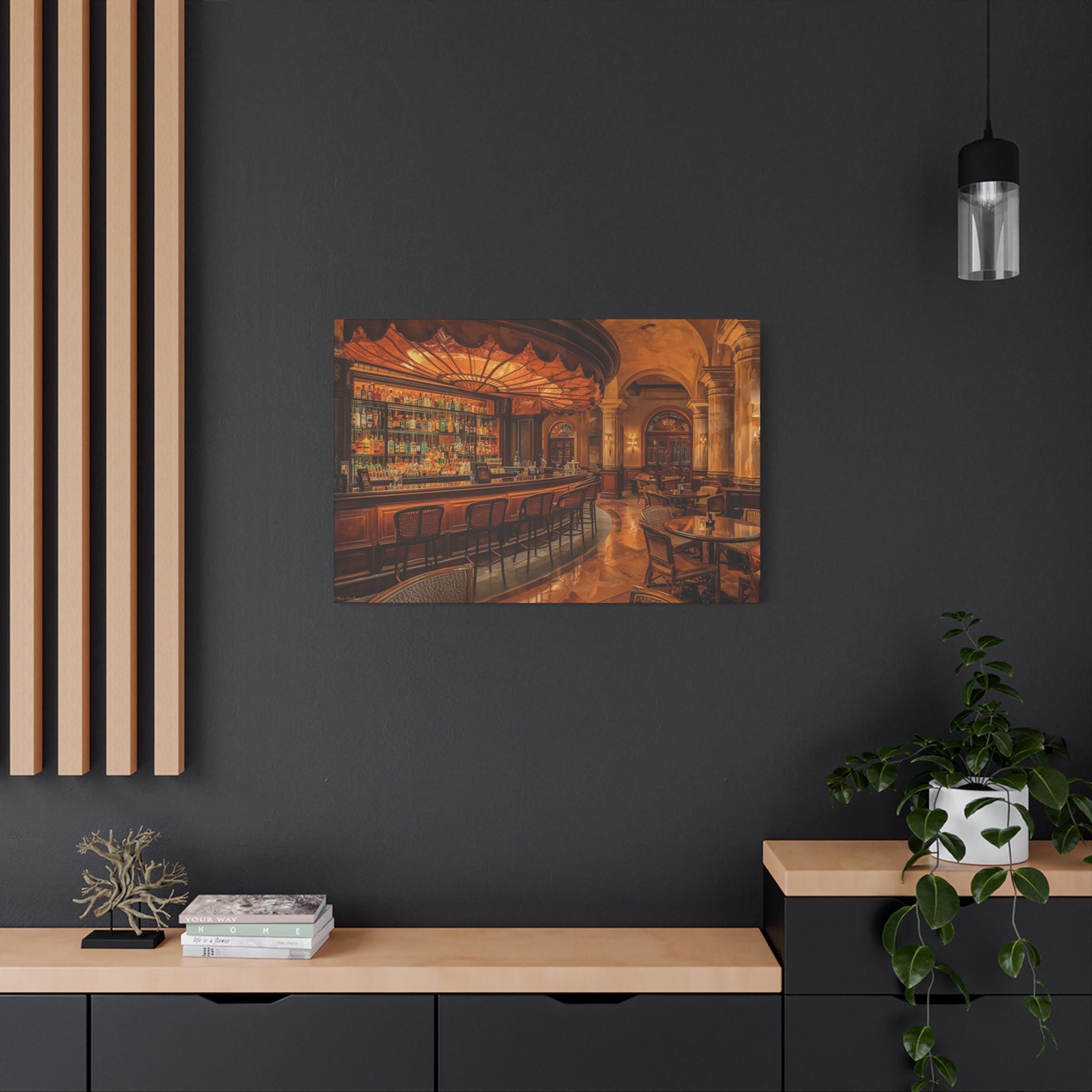 Amber Reflections, Elegant Bar Scene Canvas Art, Stretched Wall Decor, Vintage Bar Print, Home Decoration, Perfect for Living Room or Pub