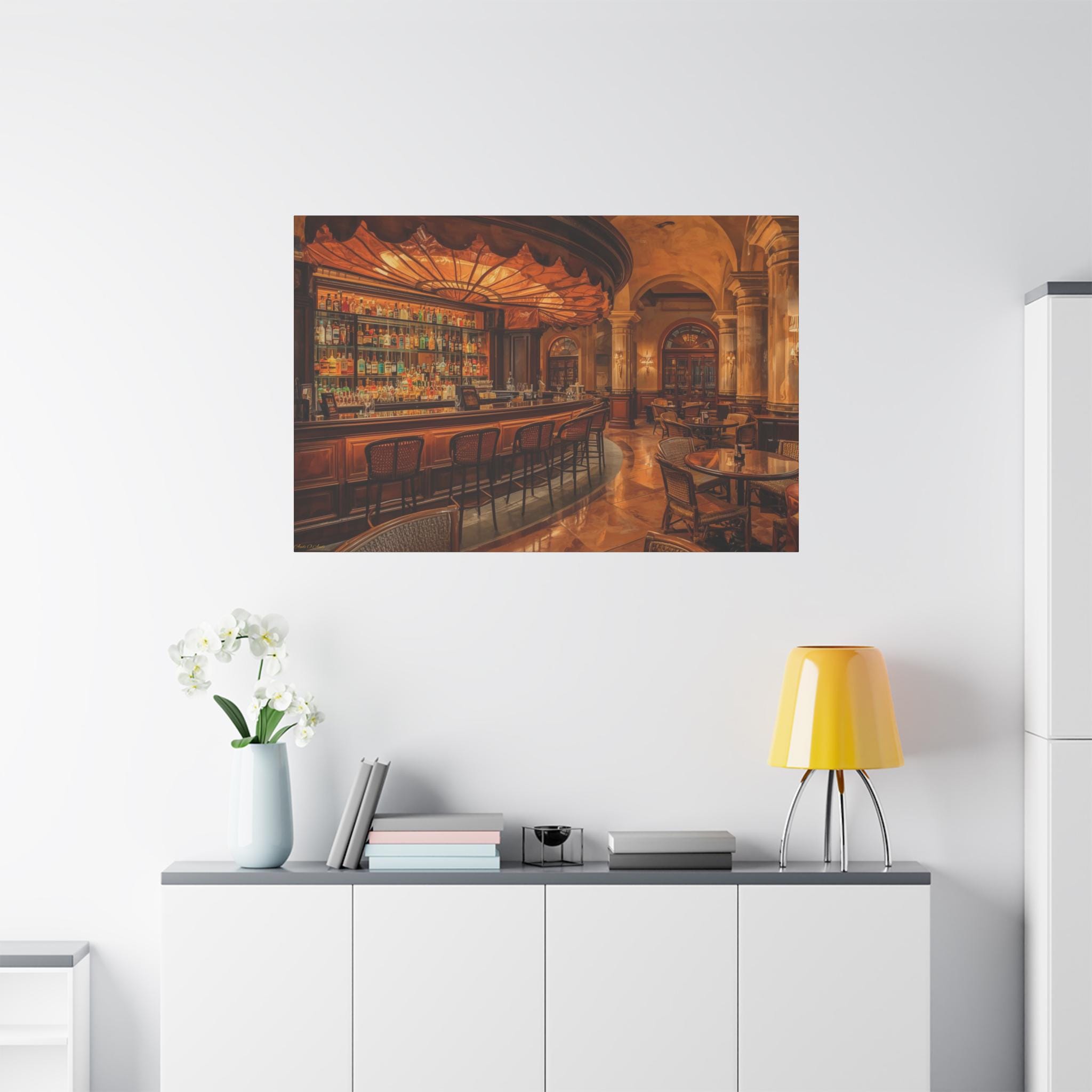 Elevate your space with this stunning matte canvas print that captures the ambiance of a luxury bar. Perfect for adding a touch of sophistication to your home or office, this artwork creates a warm and inviting atmosphere. Whether you’re a connoisseur of fine dining or simply appreciate chic décor, this canvas fits seamlessly into your lifestyle. Ideal for gifts, this piece is relevant for celebrations like housewarmings, holidays, and any occasion where you want to impress. A perfect choice for art lovers, interior designers, or anyone looking to enhance their environment with a touch of elegance.
