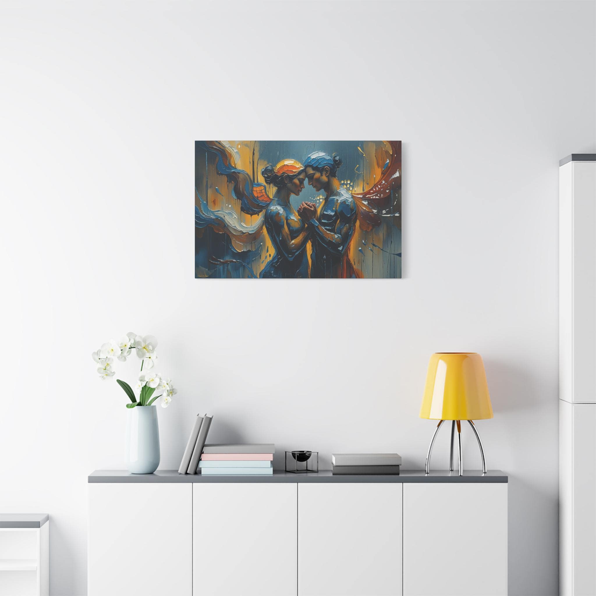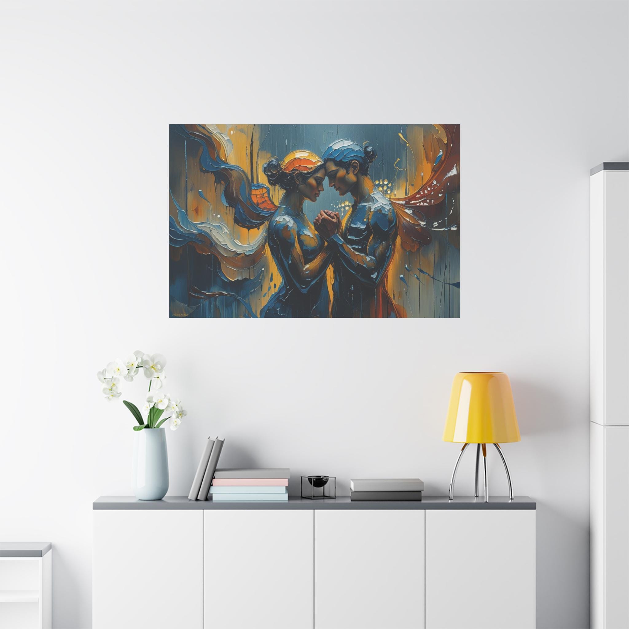 Transform your space with this stunning Matte Canvas. This piece captures a dynamic and emotive moment, making it perfect for anyone looking to add depth and vibrancy to their home or office. The bold colors and expressive design create an atmosphere of passion and connection, making it suitable for romantic settings or as a unique gift for loved ones. Ideal for art lovers, couples celebrating anniversaries, or anyone wanting to make a statement in their decor. This canvas is a thoughtful gift for holidays such as Valentine's Day, weddings, or housewarmings, making every occasion special with a touch of artistry.