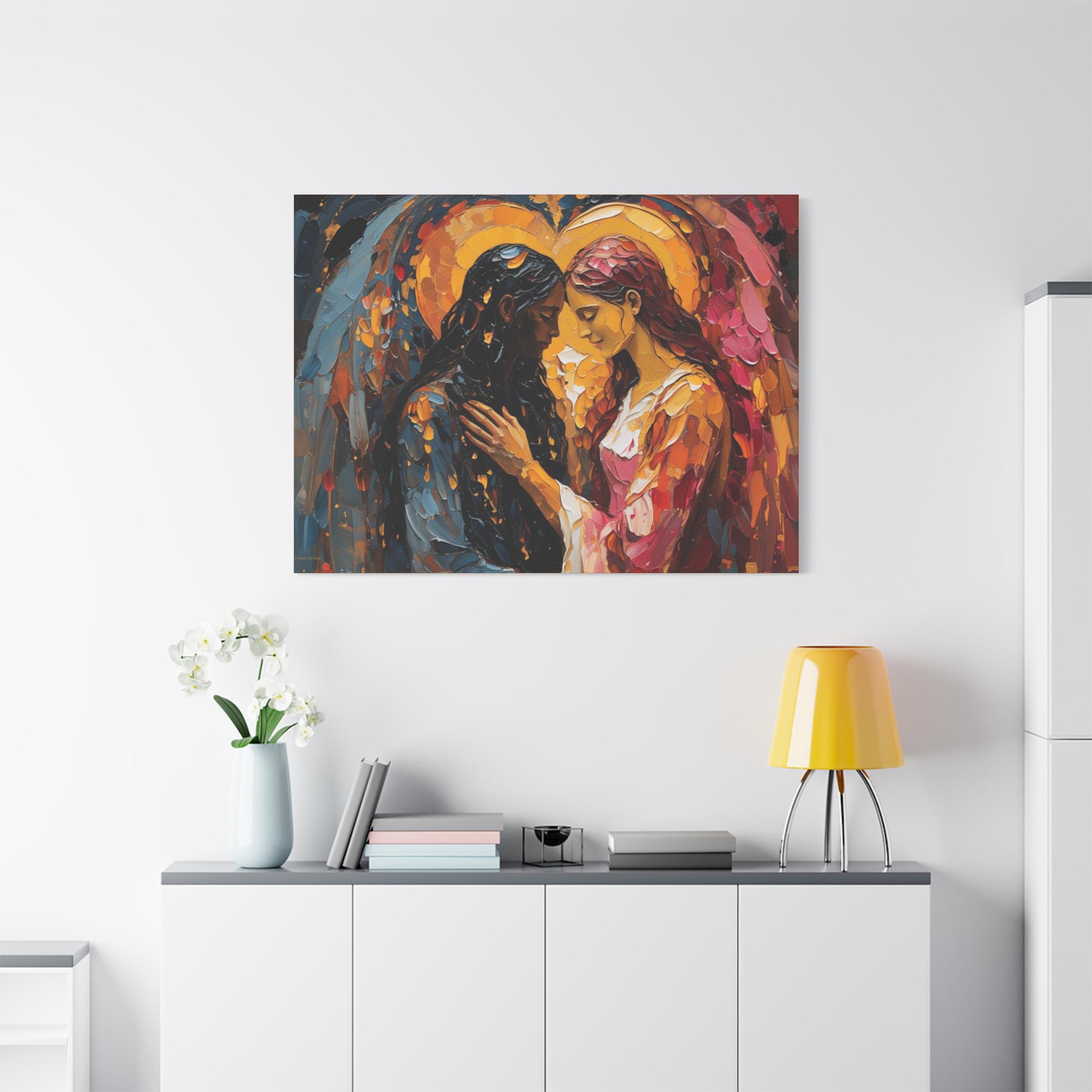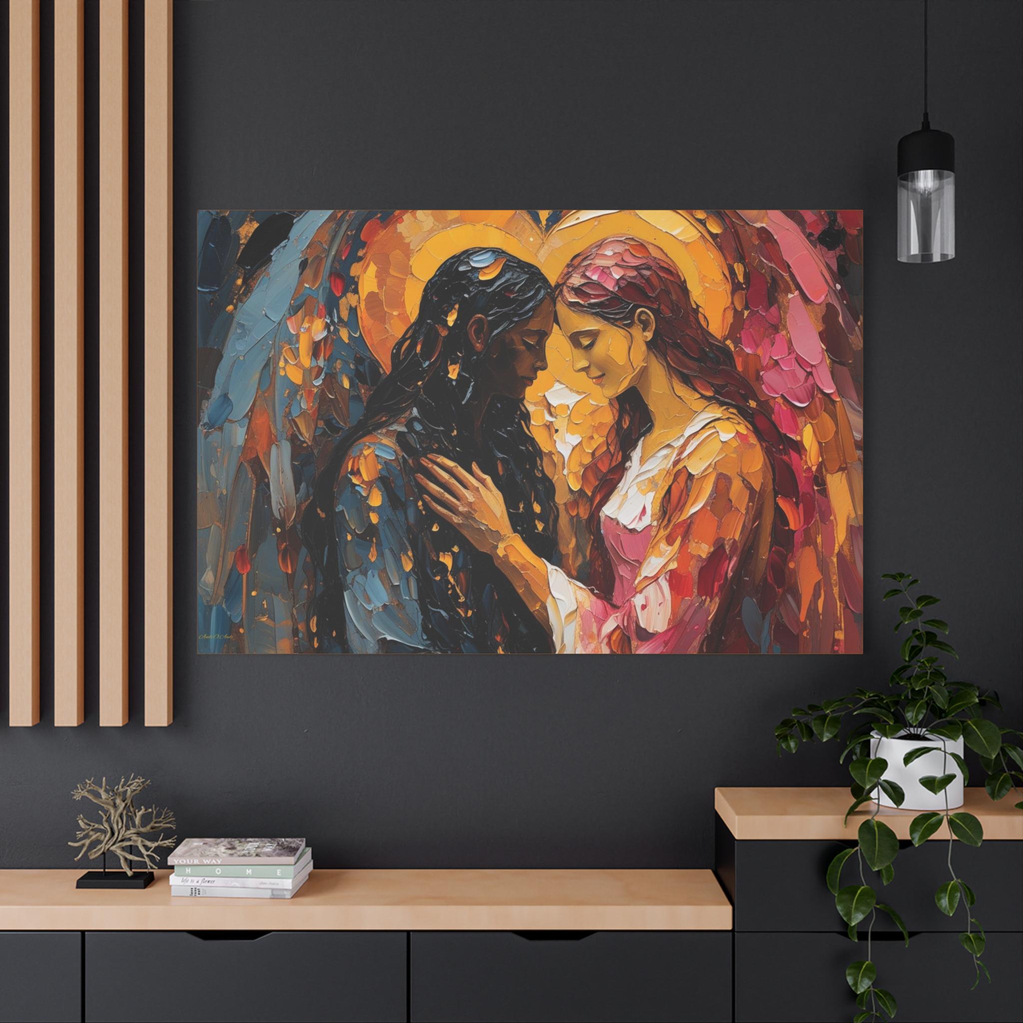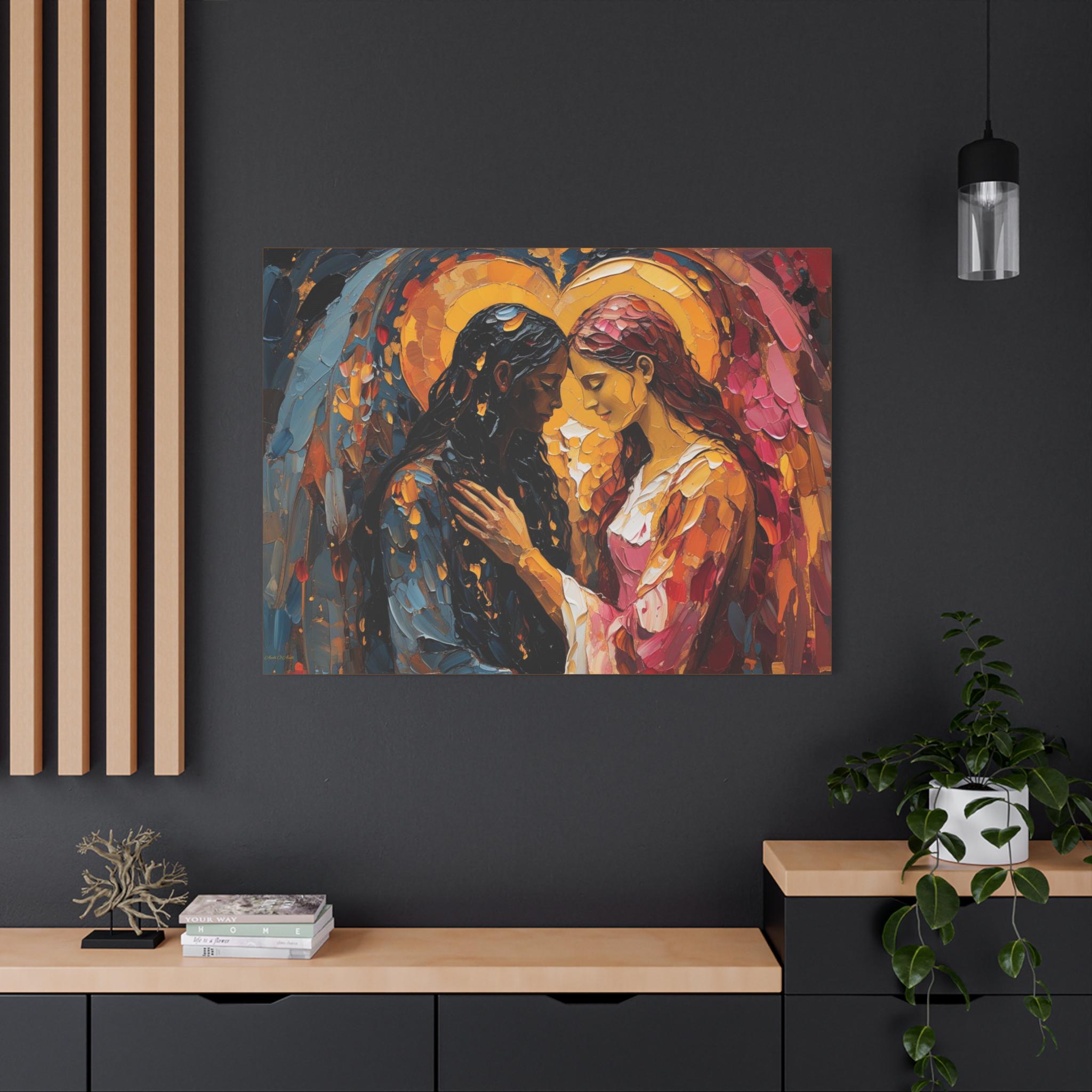 The Golden Synthesis, Art Print, Romantic Wall Decor, Love Story Art, Angel Couple, Home Decor Gift, Wedding Anniversary - Matte Canvas