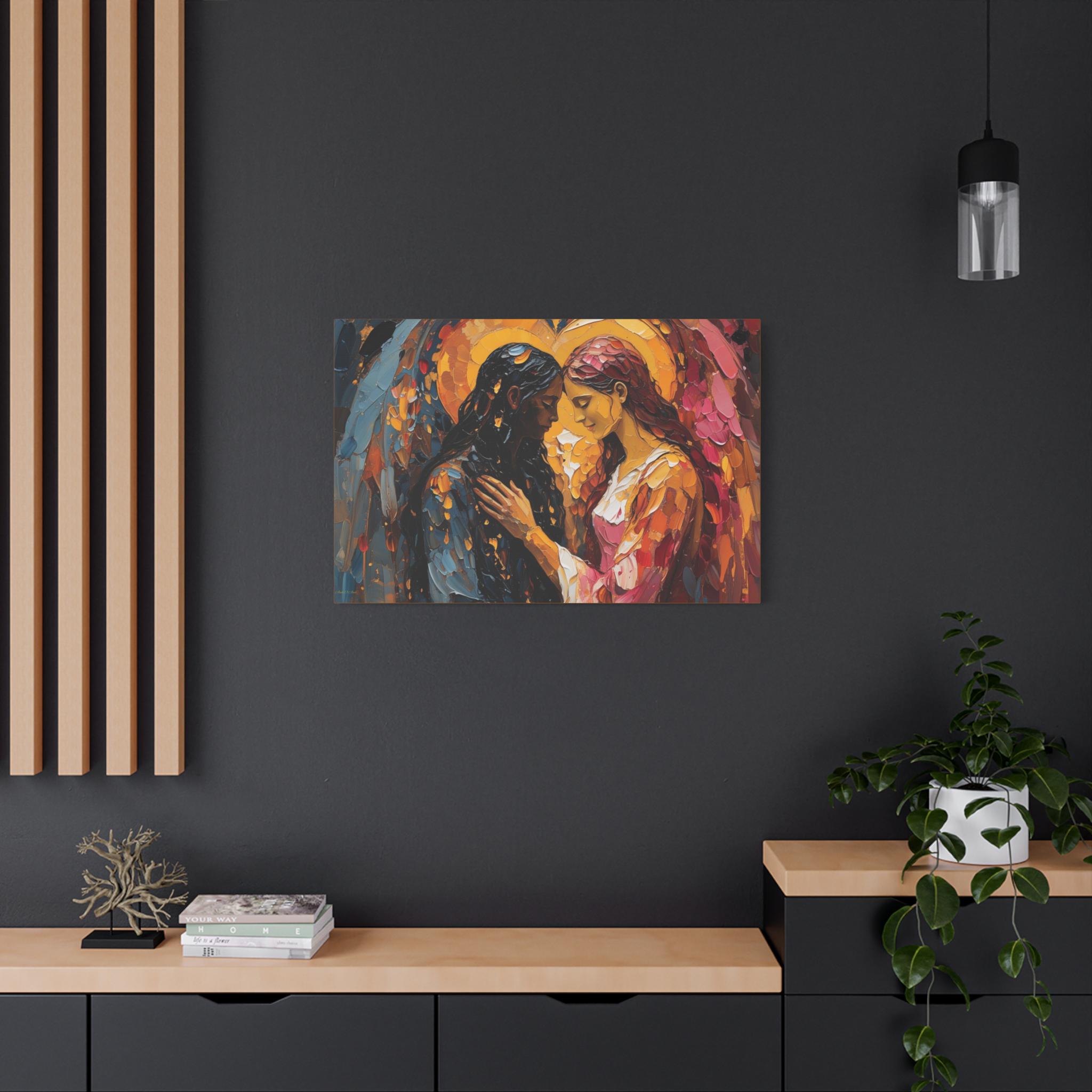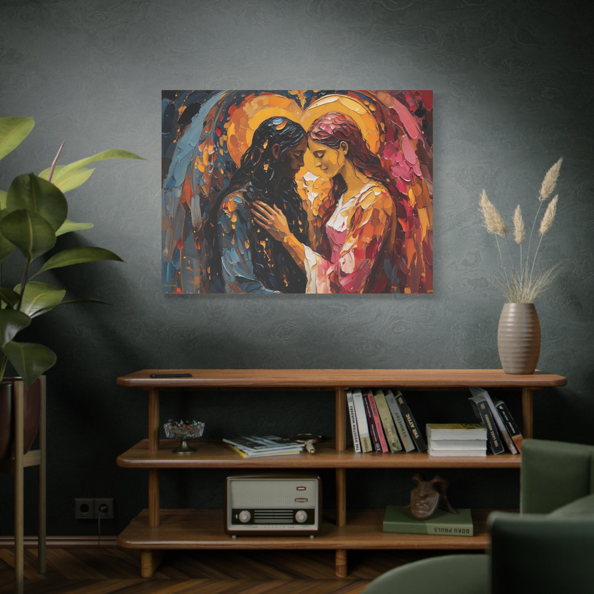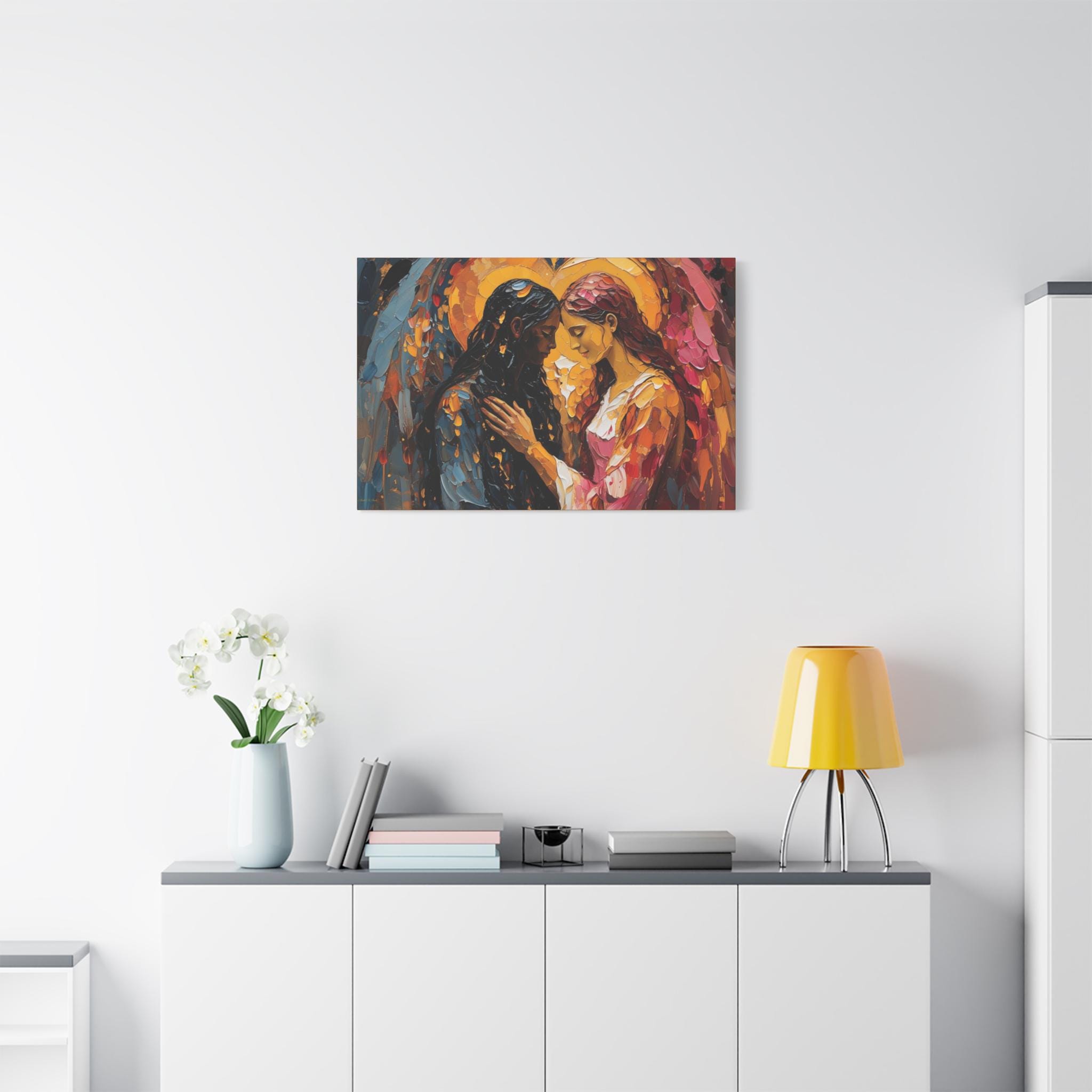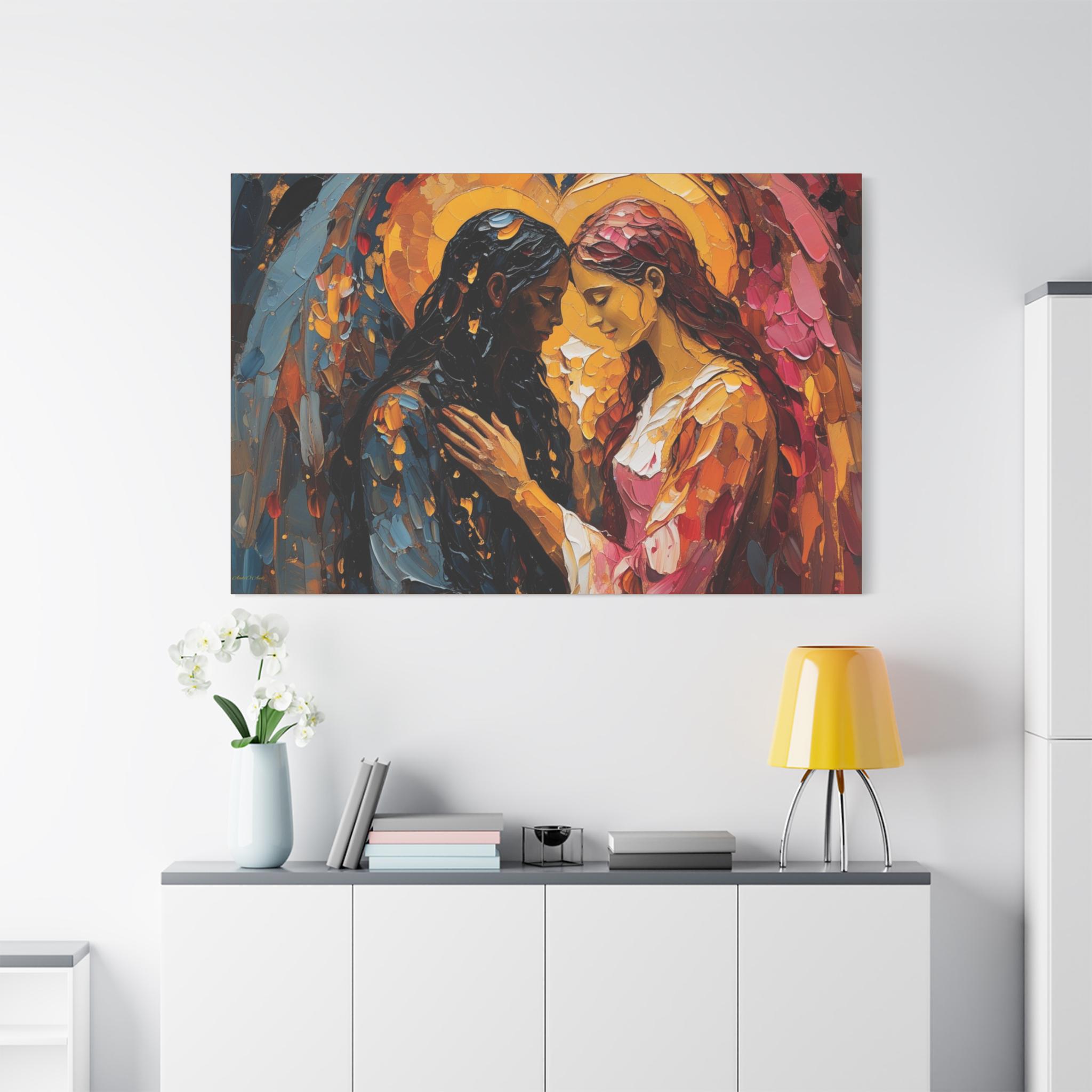 The Golden Synthesis, Art Print, Romantic Wall Decor, Love Story Art, Angel Couple, Home Decor Gift, Wedding Anniversary - Matte Canvas