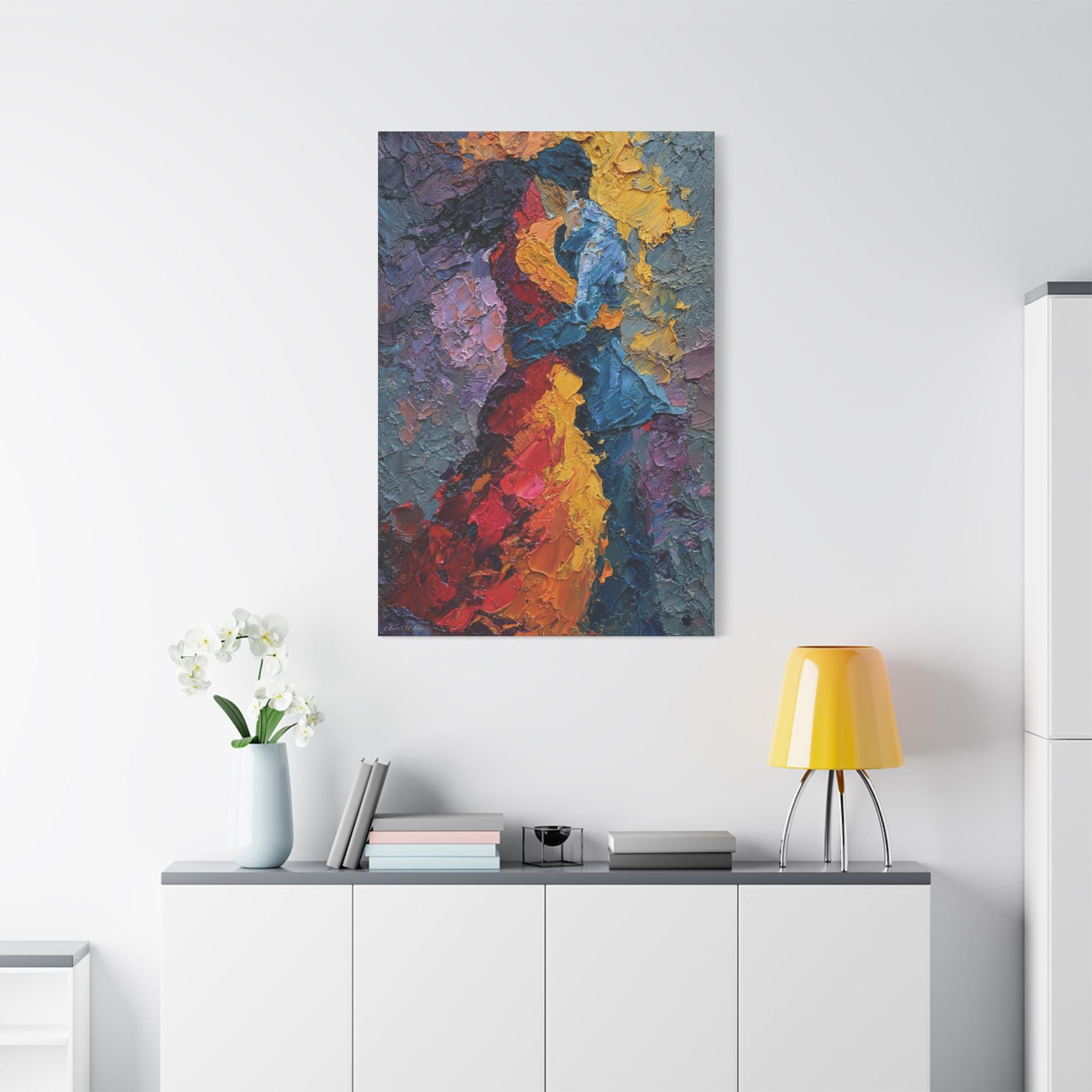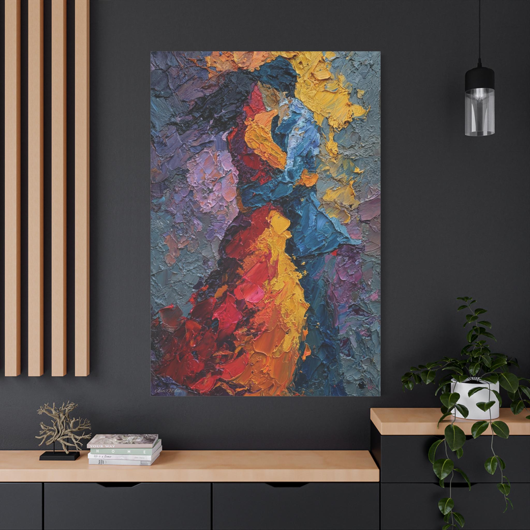 Transform your living space with stunning canvas prints that capture the essence of art and emotion. This beautifully stretched canvas, featuring a vivid portrayal of passion and movement, invites warm feelings into any room. Its lively colors and intricate textures create a captivating atmosphere, making it a perfect addition to your home decor. Ideal for art lovers, couples celebrating anniversaries, or anyone looking to infuse their space with personality. This canvas is an excellent gift for holidays like Valentine’s Day, anniversaries, or as a thoughtful housewarming present.
