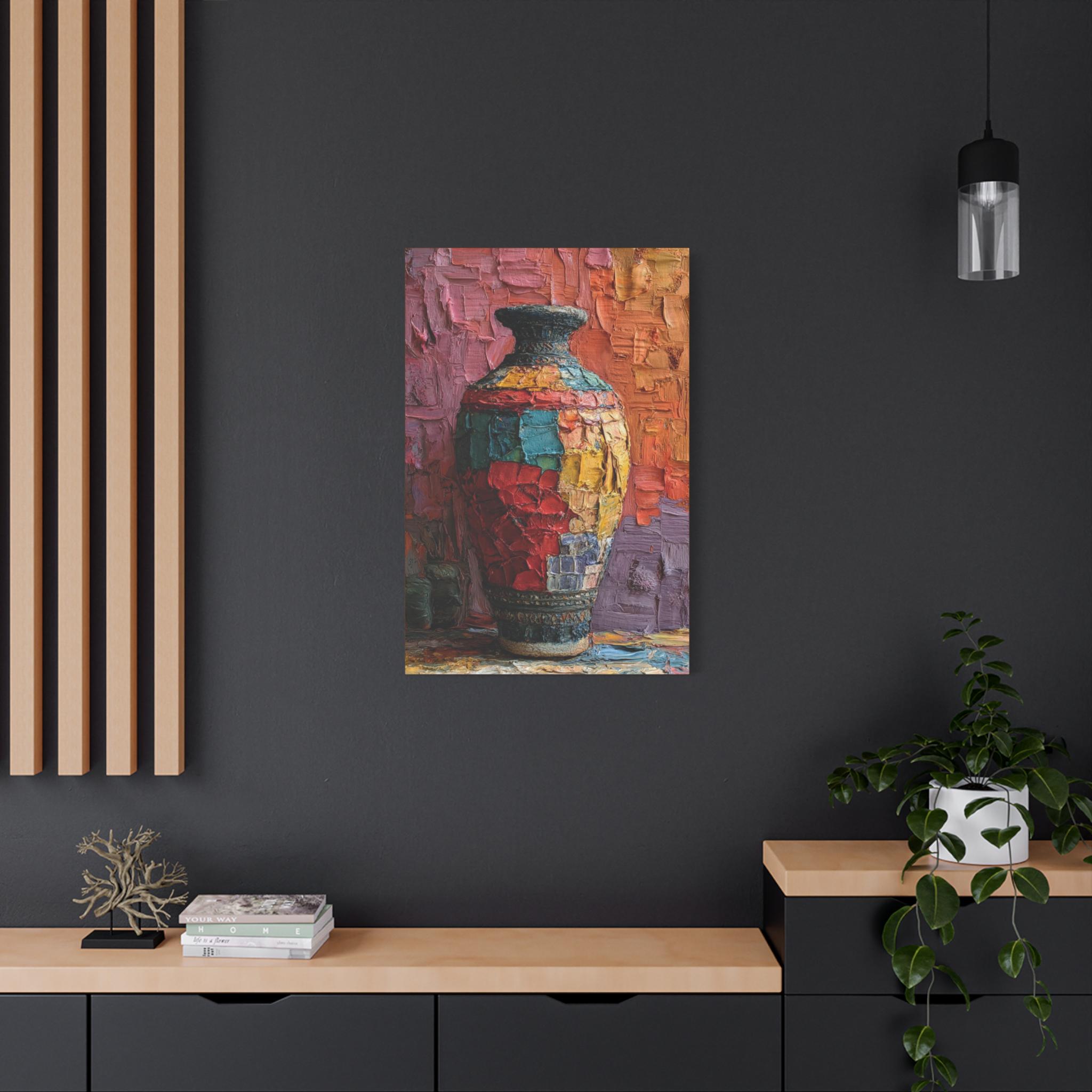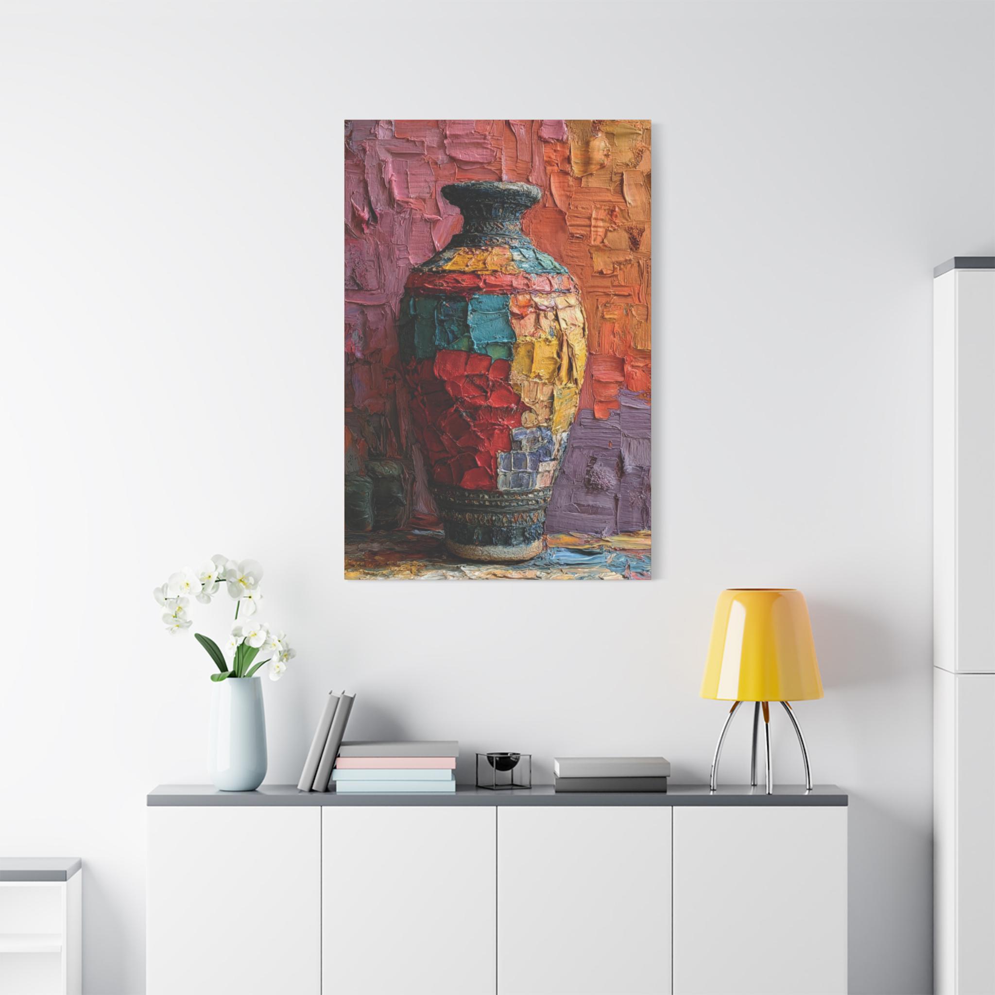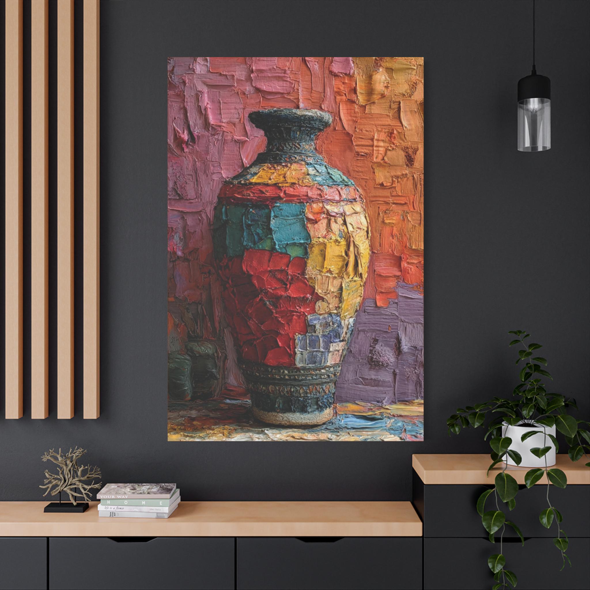 Canvas Wall Art, Patchwork Vessel, Colorful Vase, Boho Home Decor, Textured Artwork - Matte Canvas