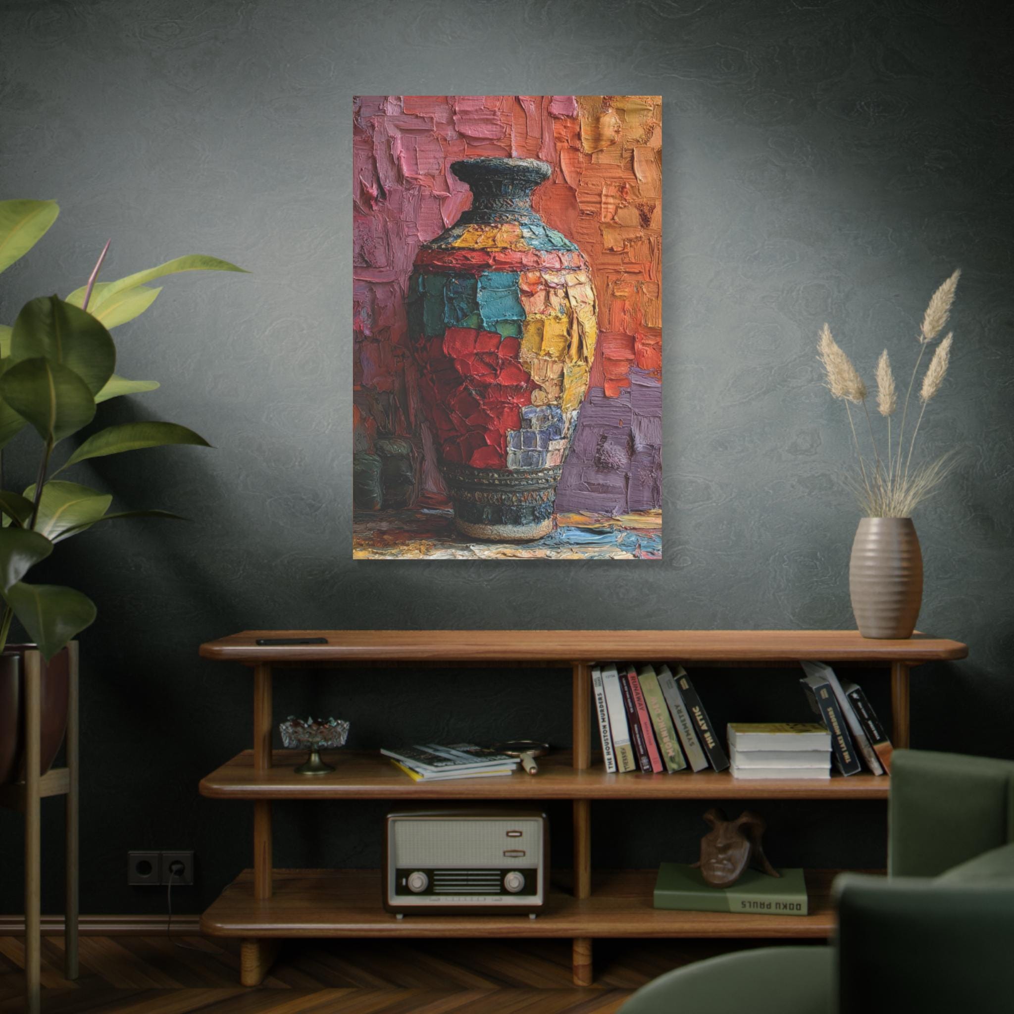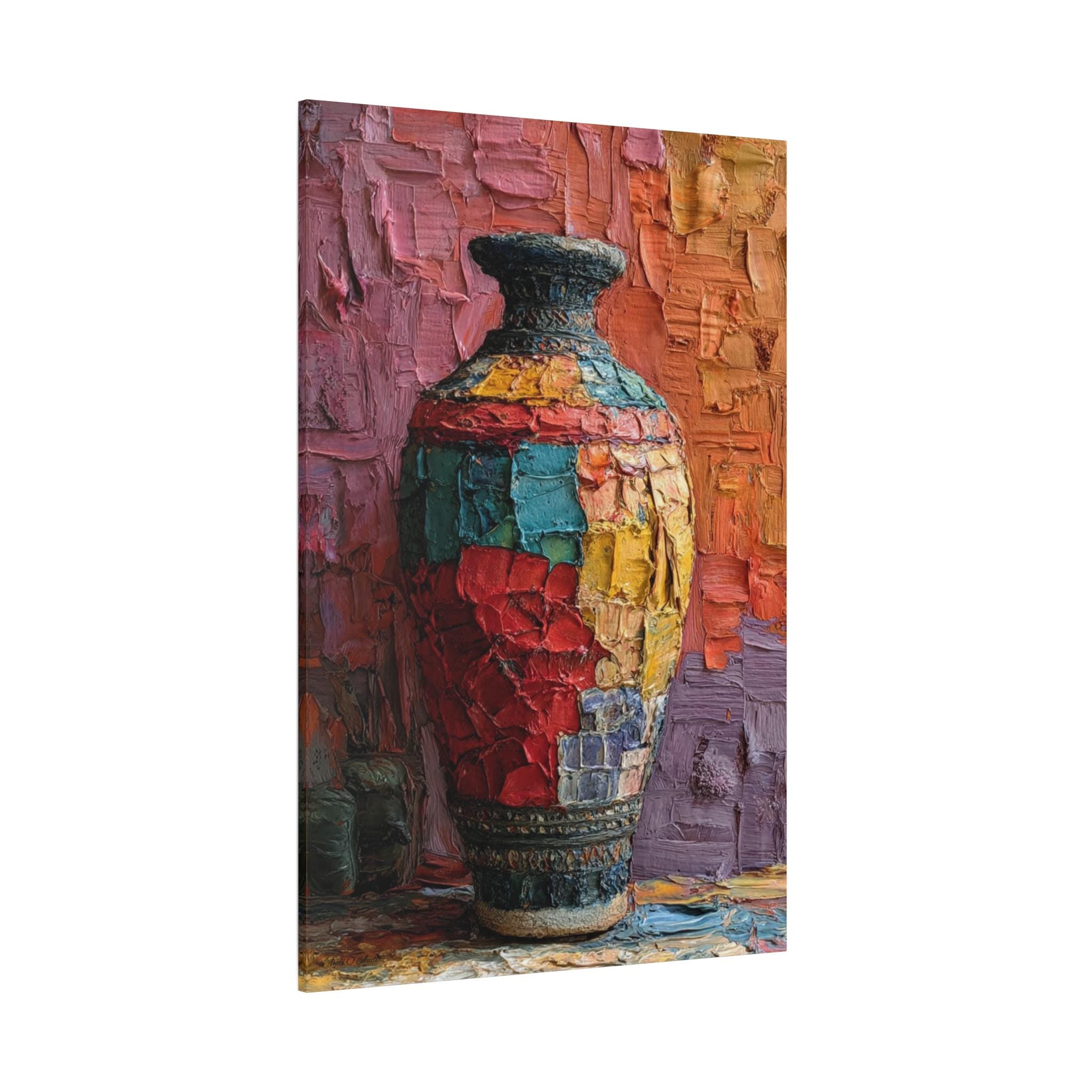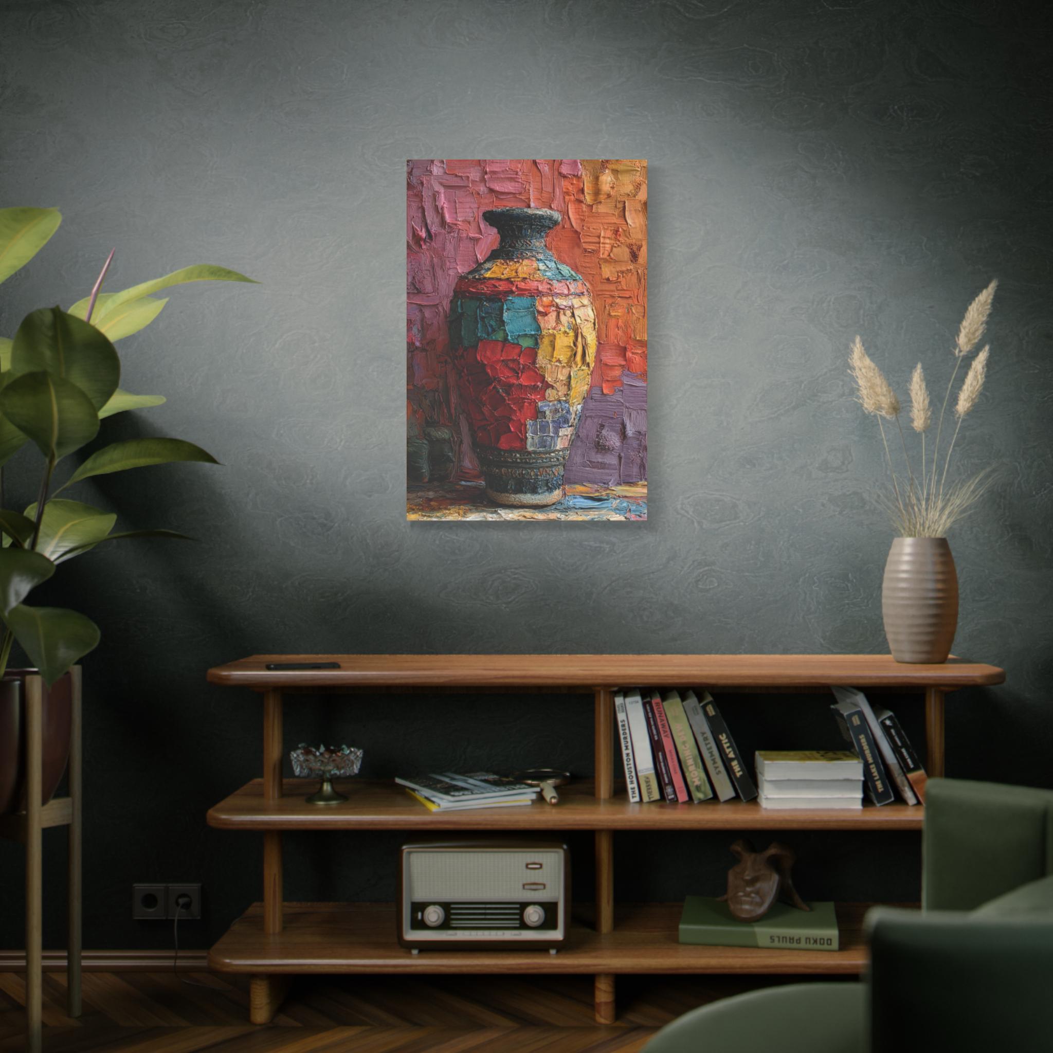 Canvas Wall Art, Patchwork Vessel, Colorful Vase, Boho Home Decor, Textured Artwork - Matte Canvas
