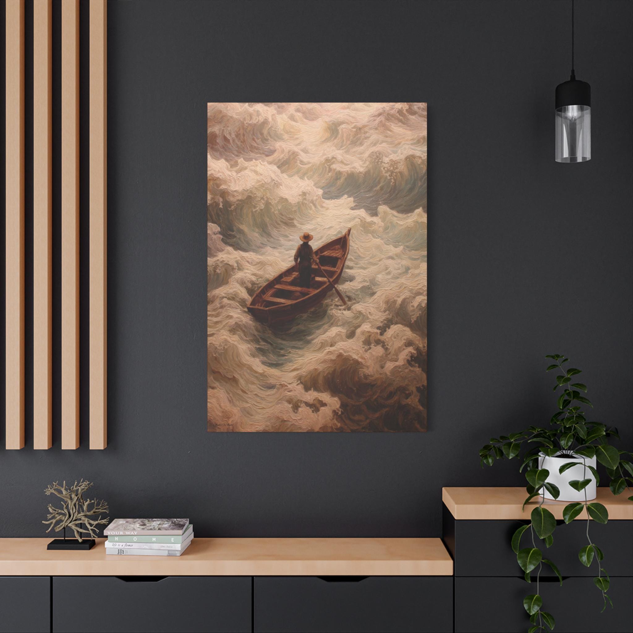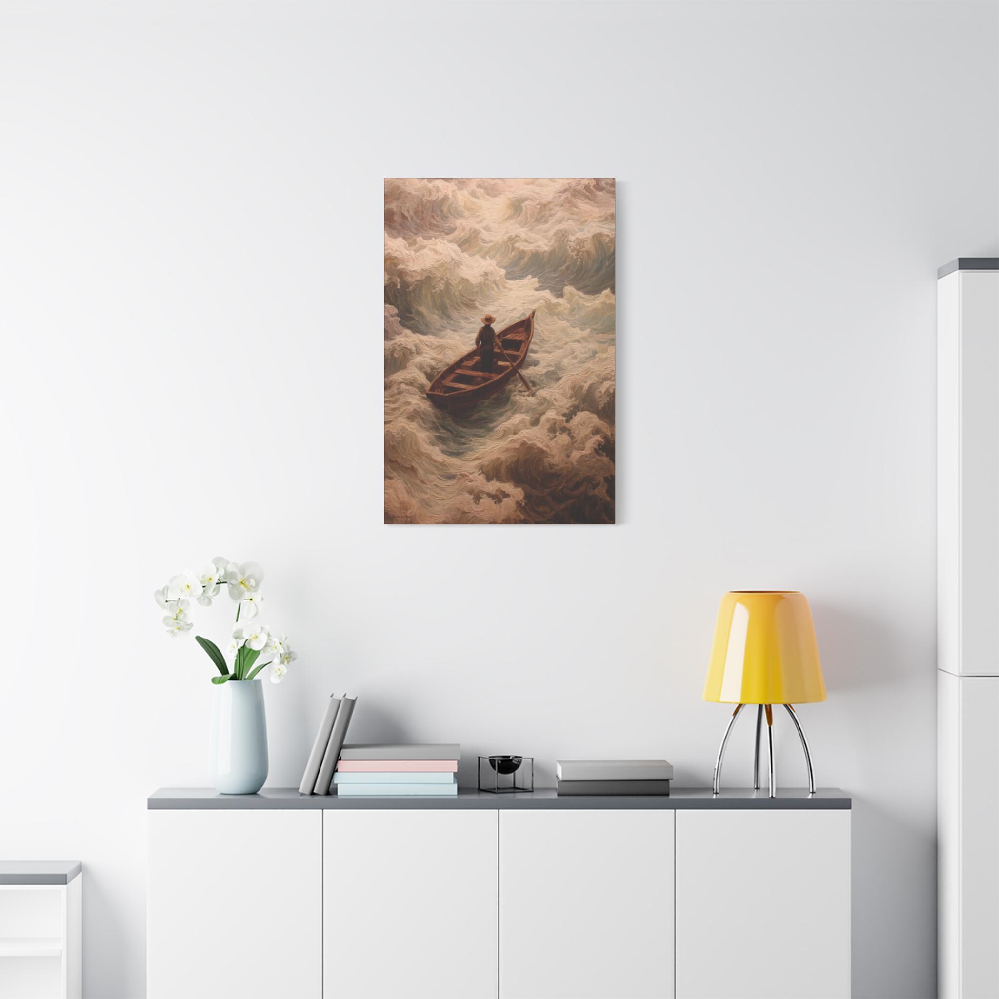 Elevate your living space with this stunning Matte Canvas. Capturing the essence of adventure, this piece features a serene yet powerful scene of a lone figure navigating through tumultuous waves. It's perfect for anyone looking to add a touch of artful contemplation to their home. Imagine the inspiration it will bring to your walls, creating a meditative atmosphere that invites reflection and conversation. Ideal for art lovers and those seeking unique home decor, this Matte Canvas serves as an excellent gift for housewarmings, birthdays, or just to brighten someone’s day during the holiday season.
