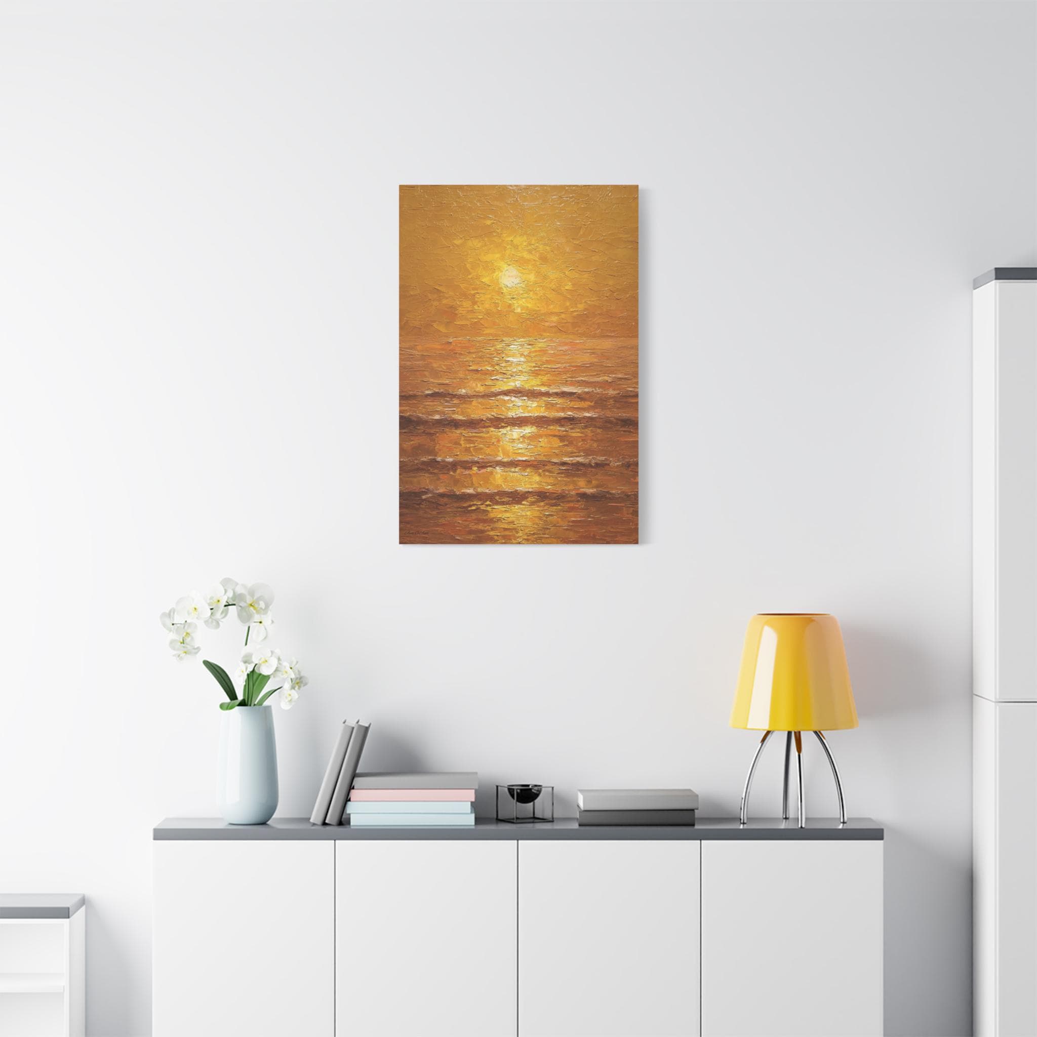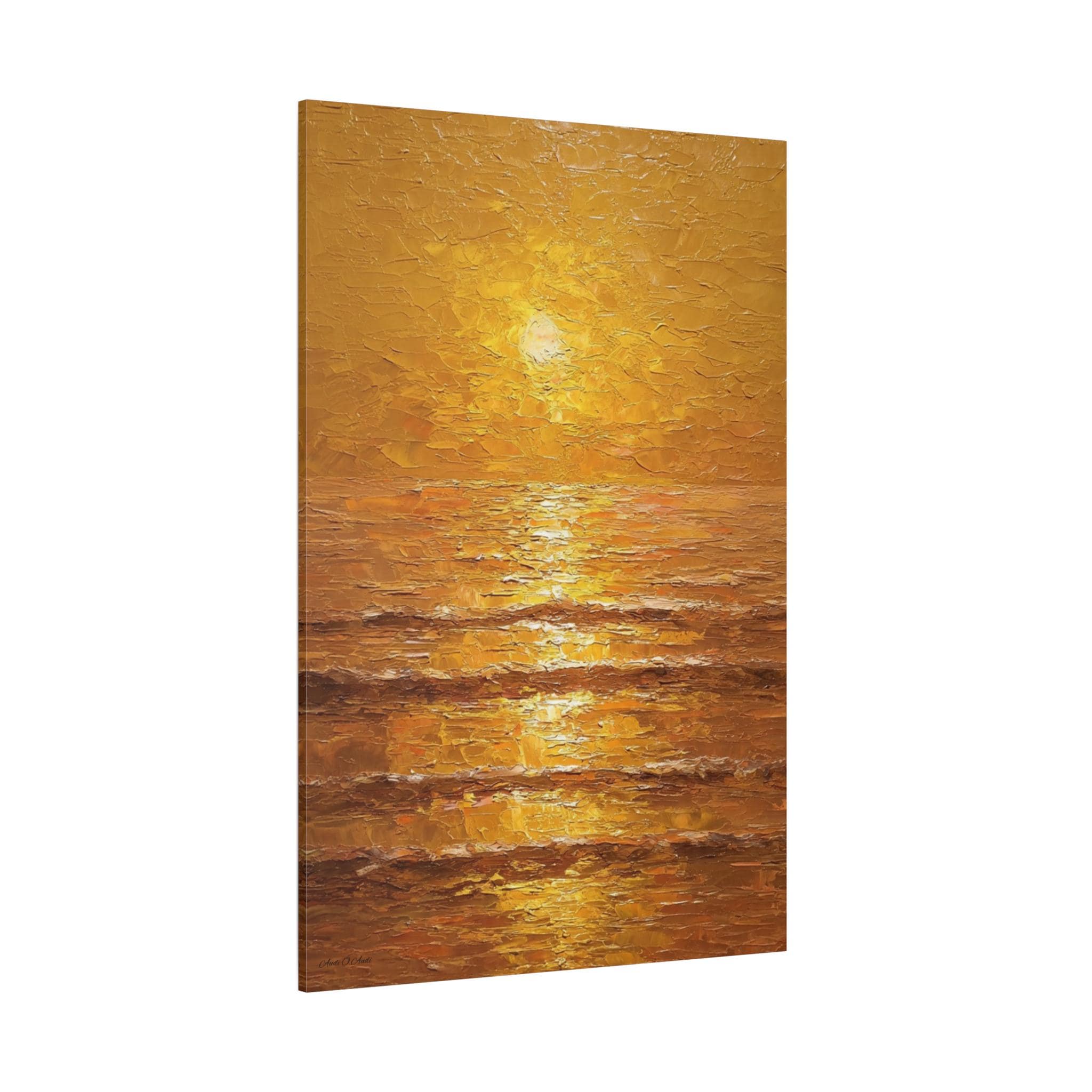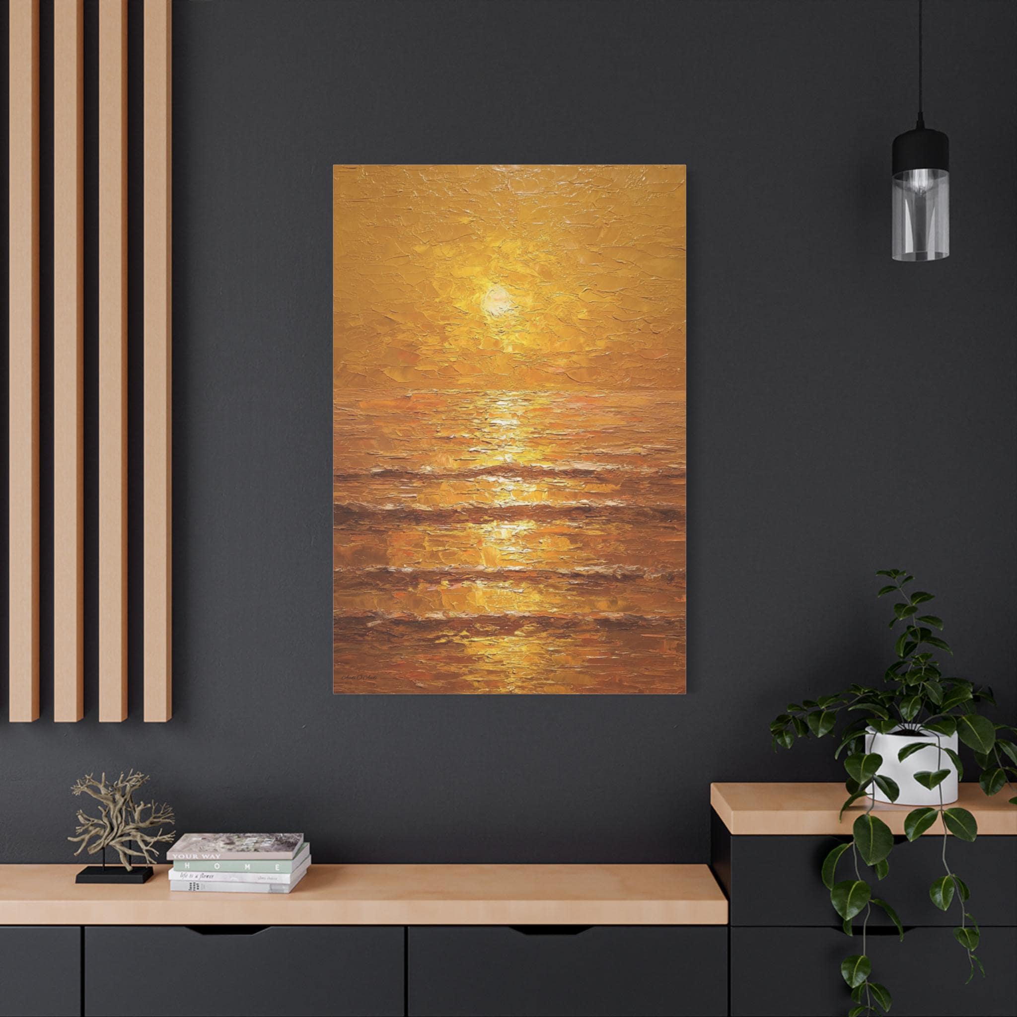 Introduce a breathtaking statement piece with Amber Sea Rhapsody, a stunning, canvas print that captures the molten brilliance of a sea at sunset.