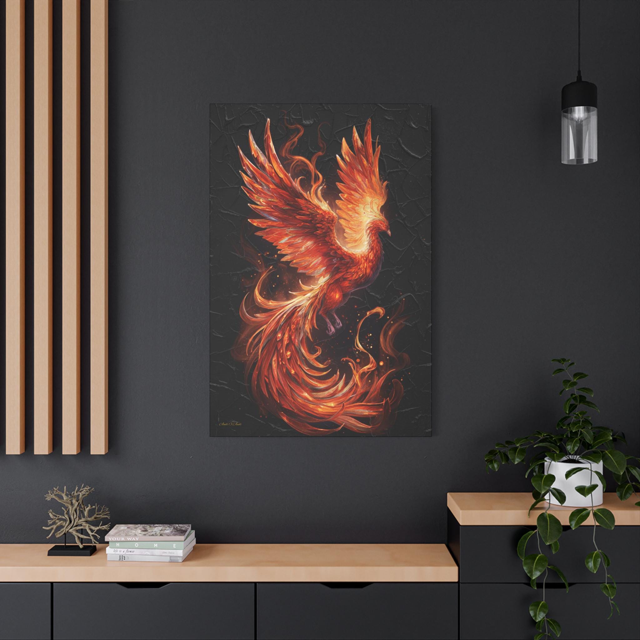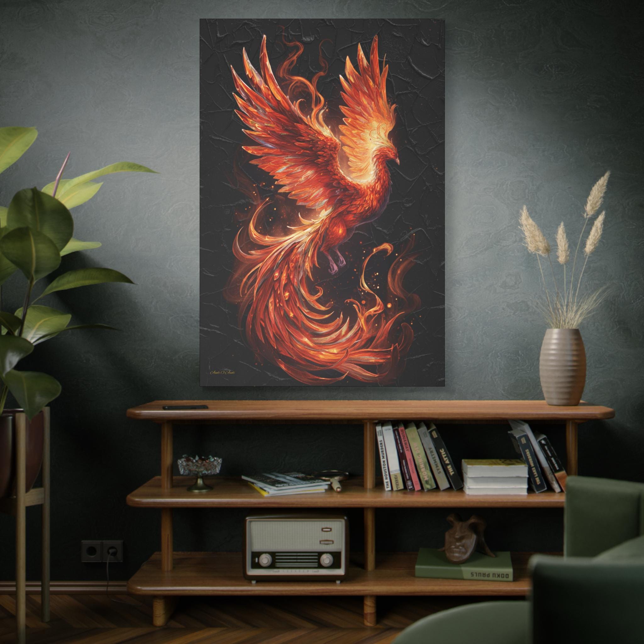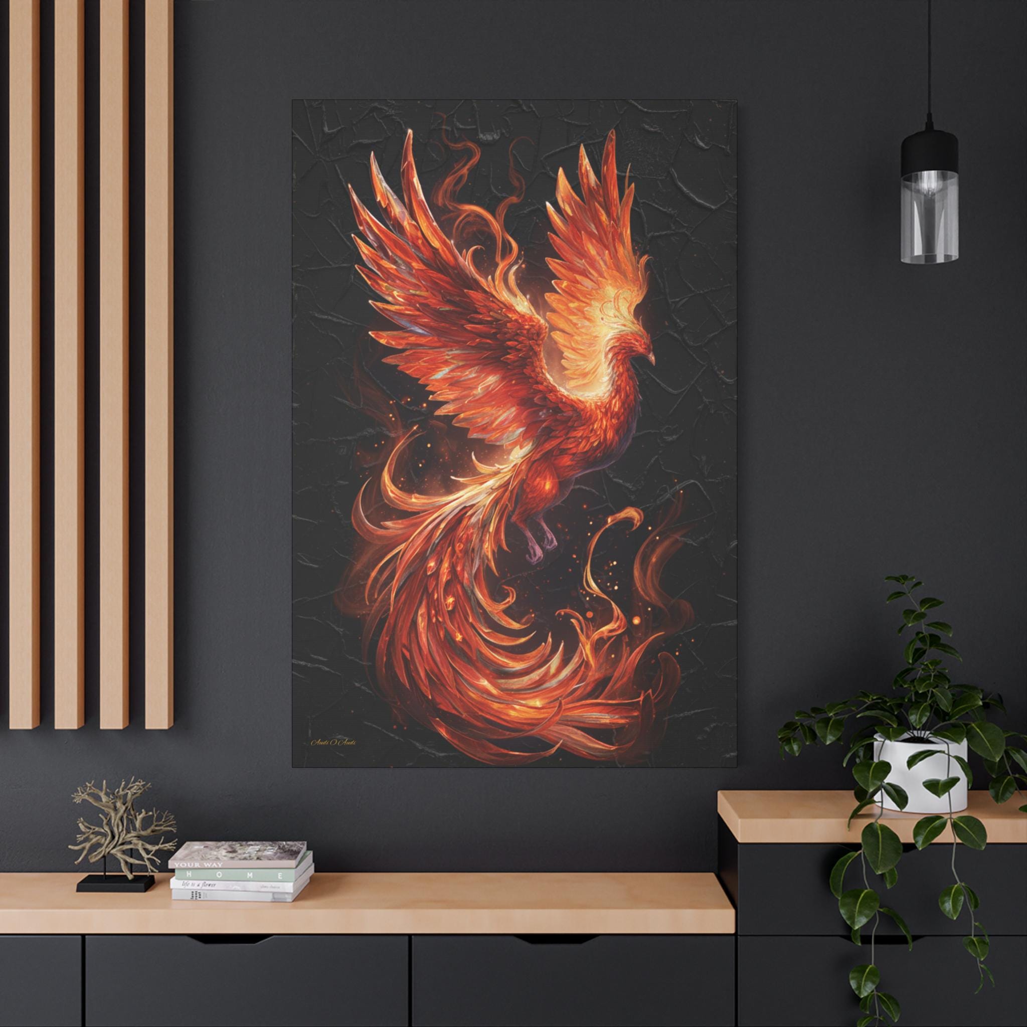 Impact: This print is an exceptional statement piece, symbolizing power, renewal, resurrection, and enduring spirit. It is ideally suited for modern, sophisticated spaces seeking a dramatic focal point and an infusion of intense, vibrant color.Product features