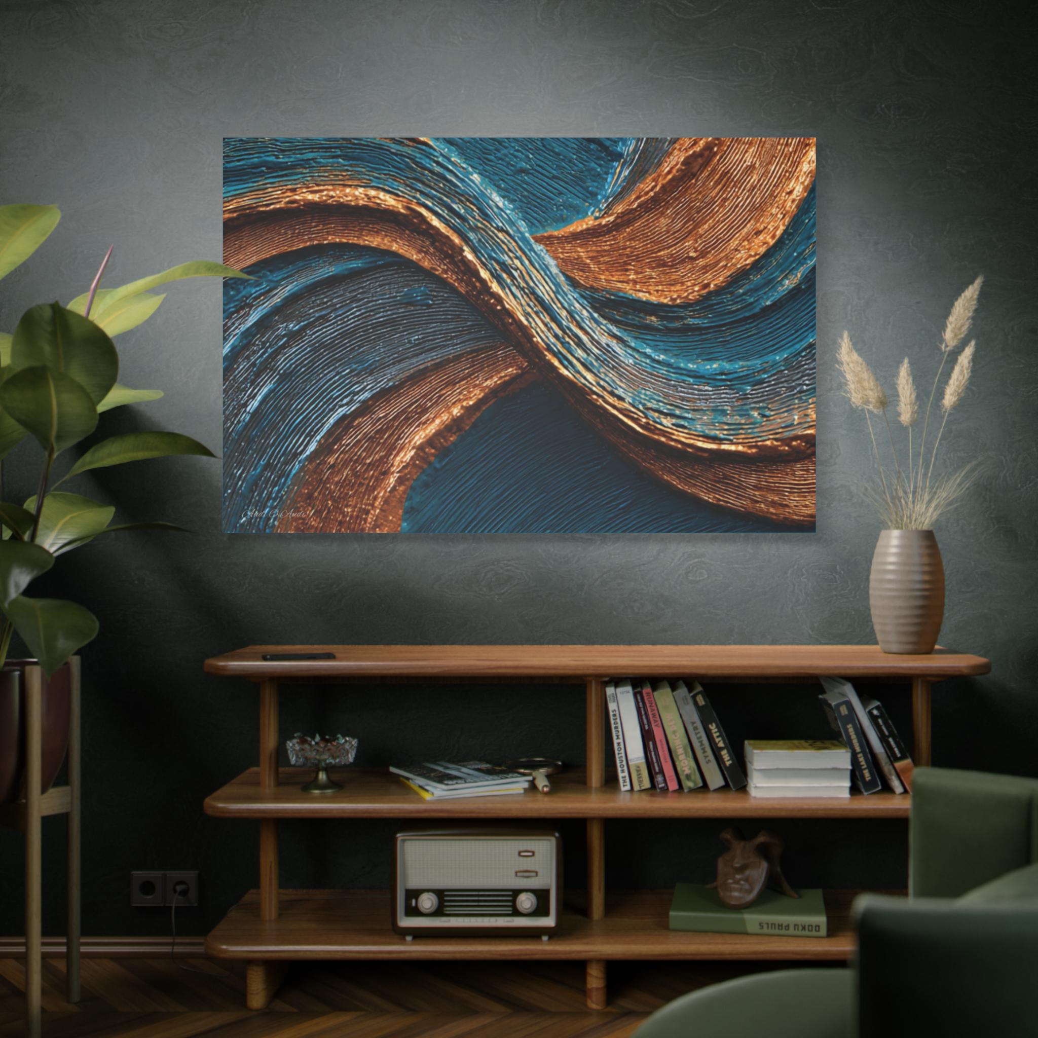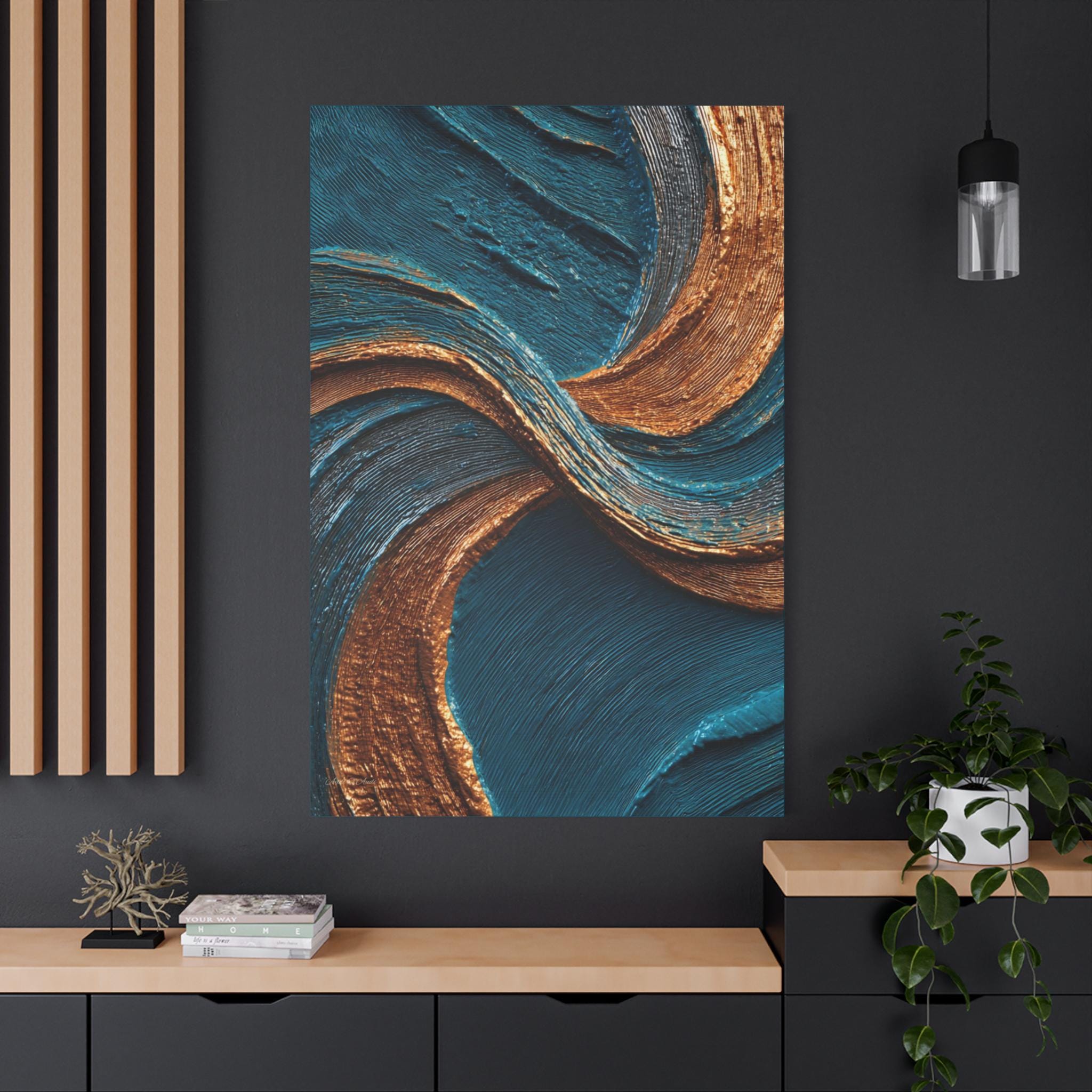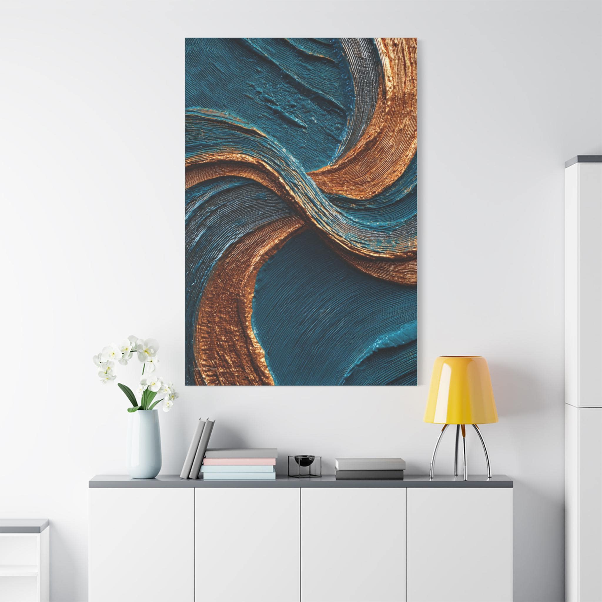 Teal and Copper Impasto Canvas Art, Abstract Vortex Wall Decor