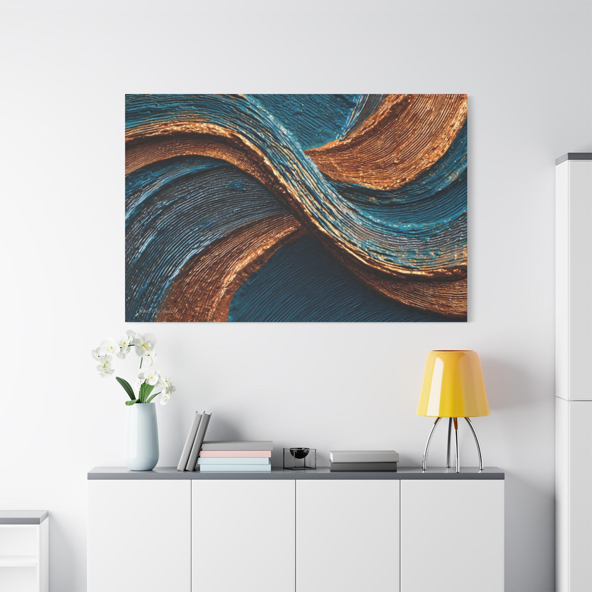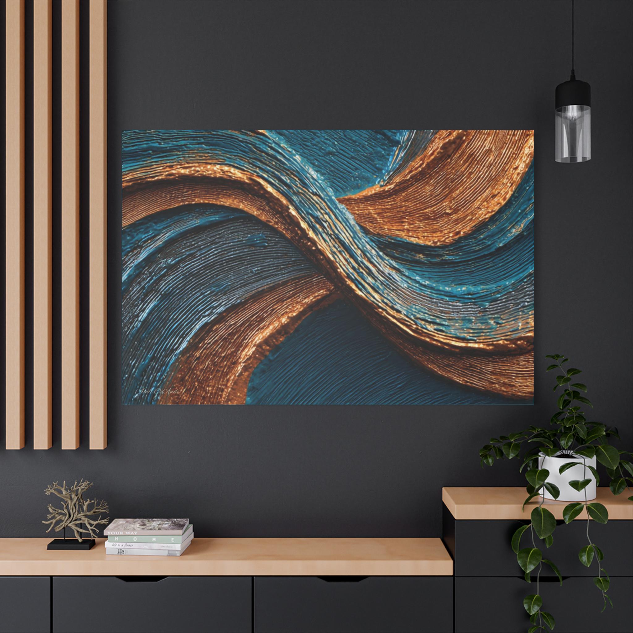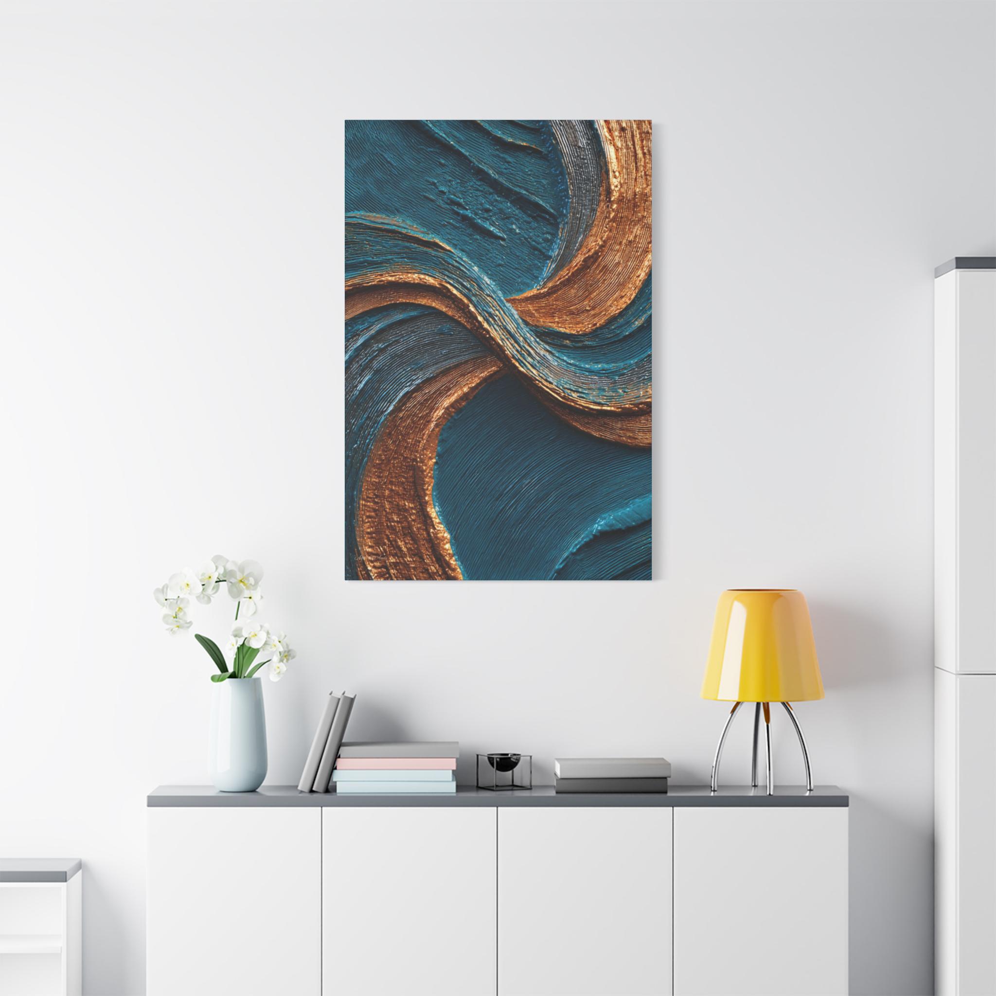 Teal and Copper Impasto Canvas Art, Abstract Vortex Wall Decor