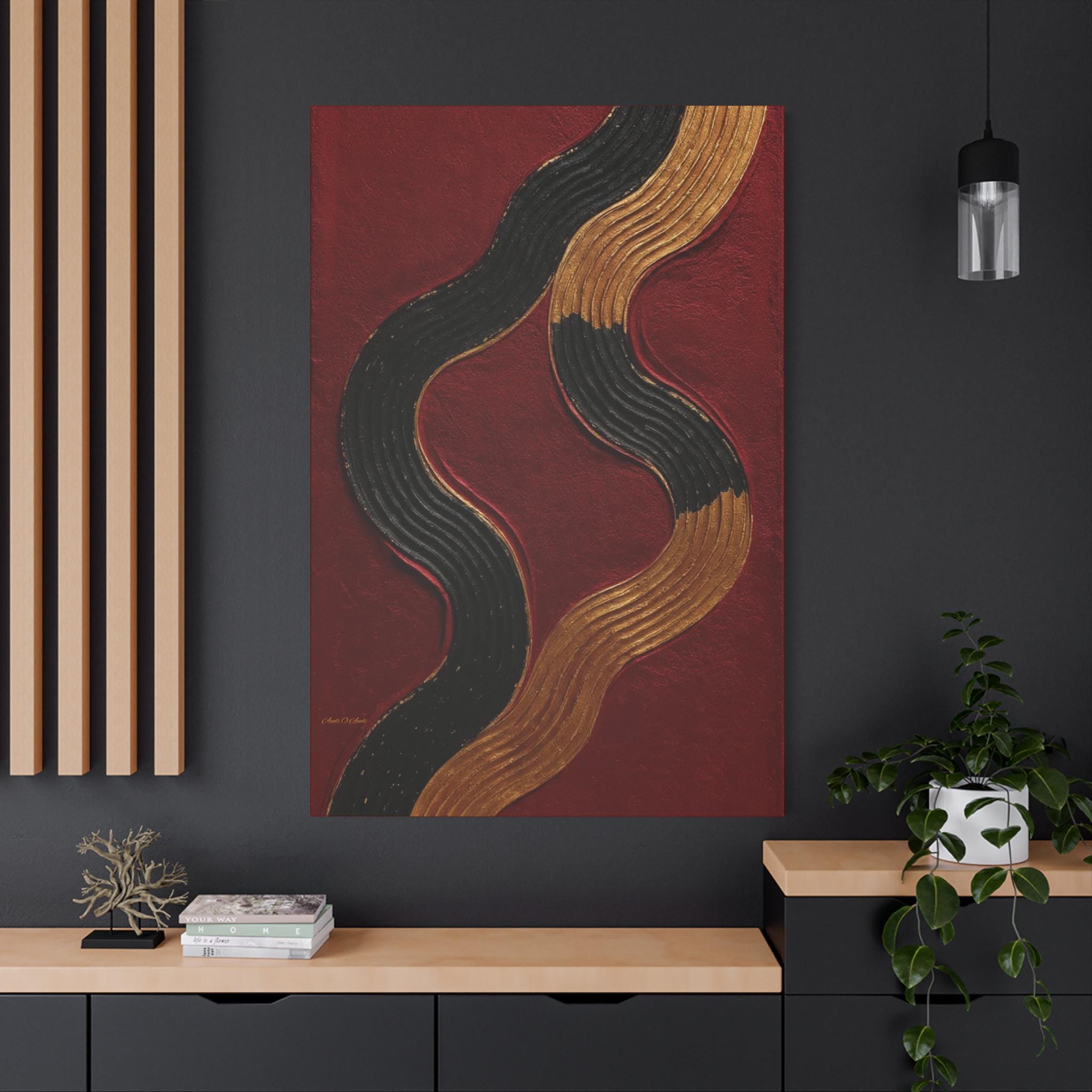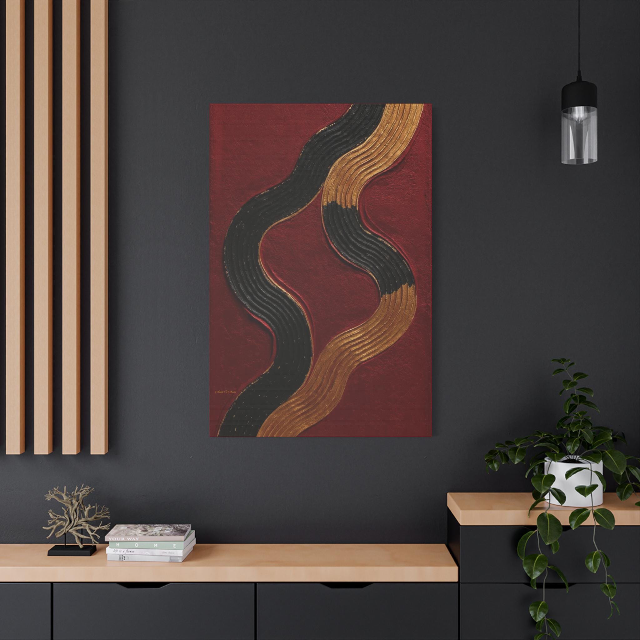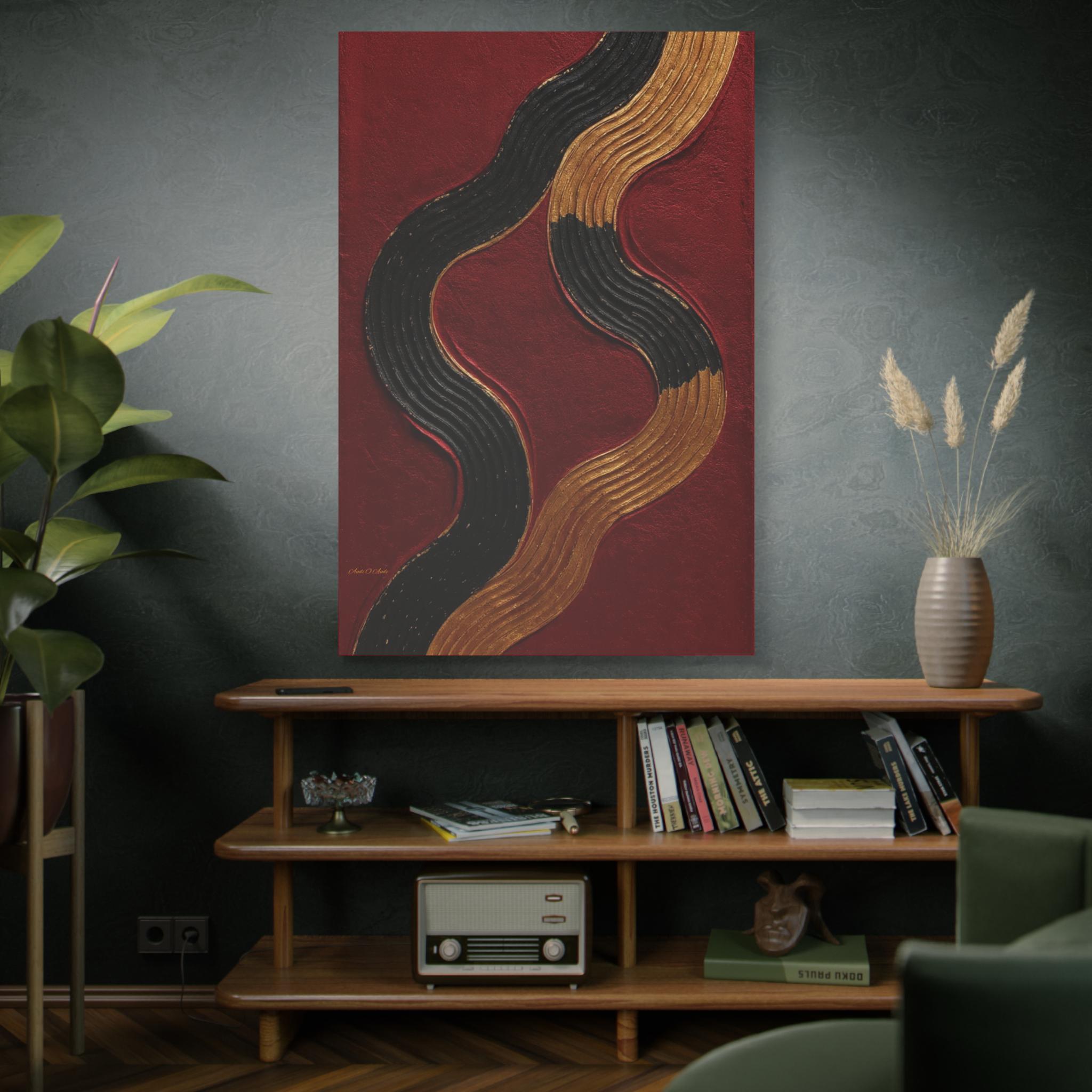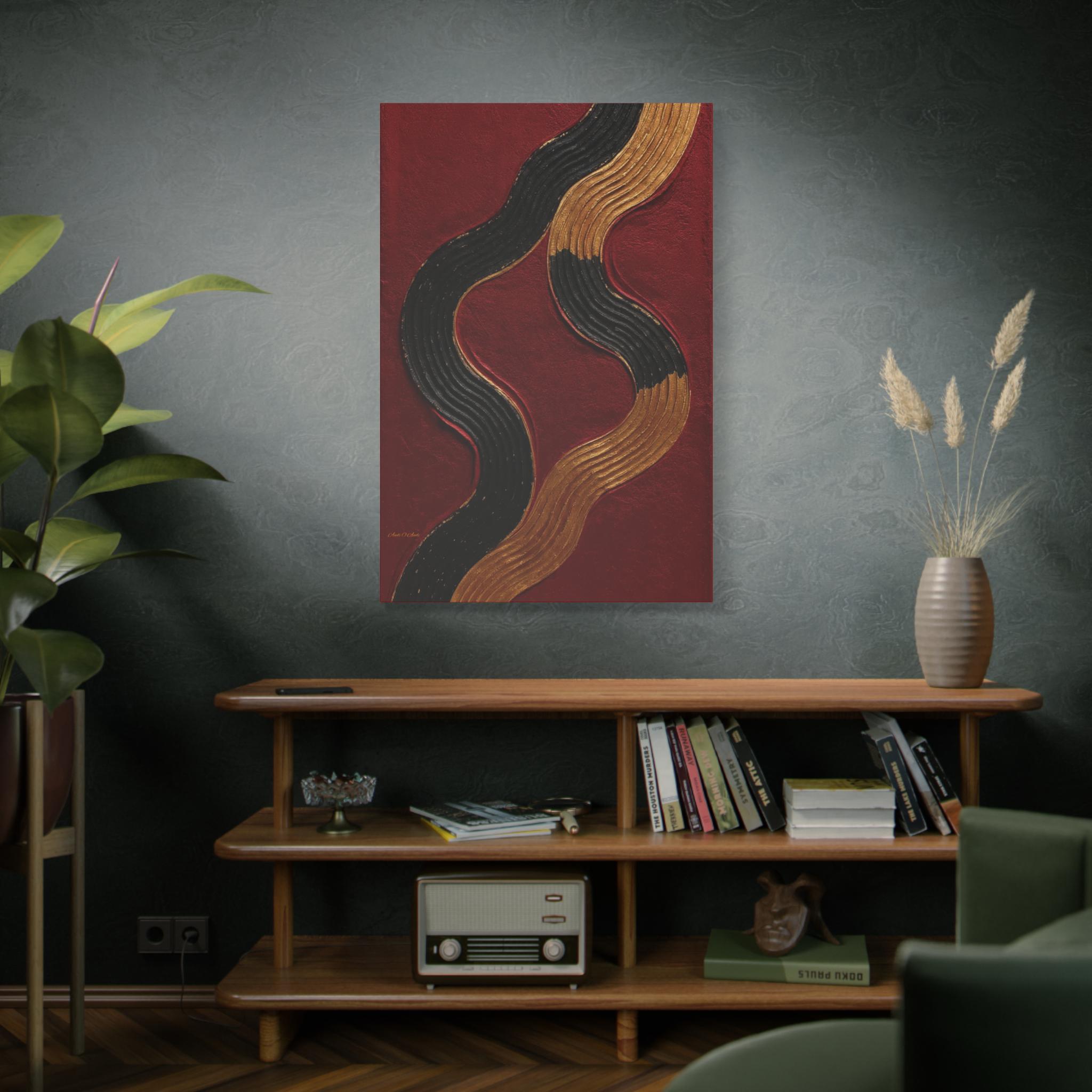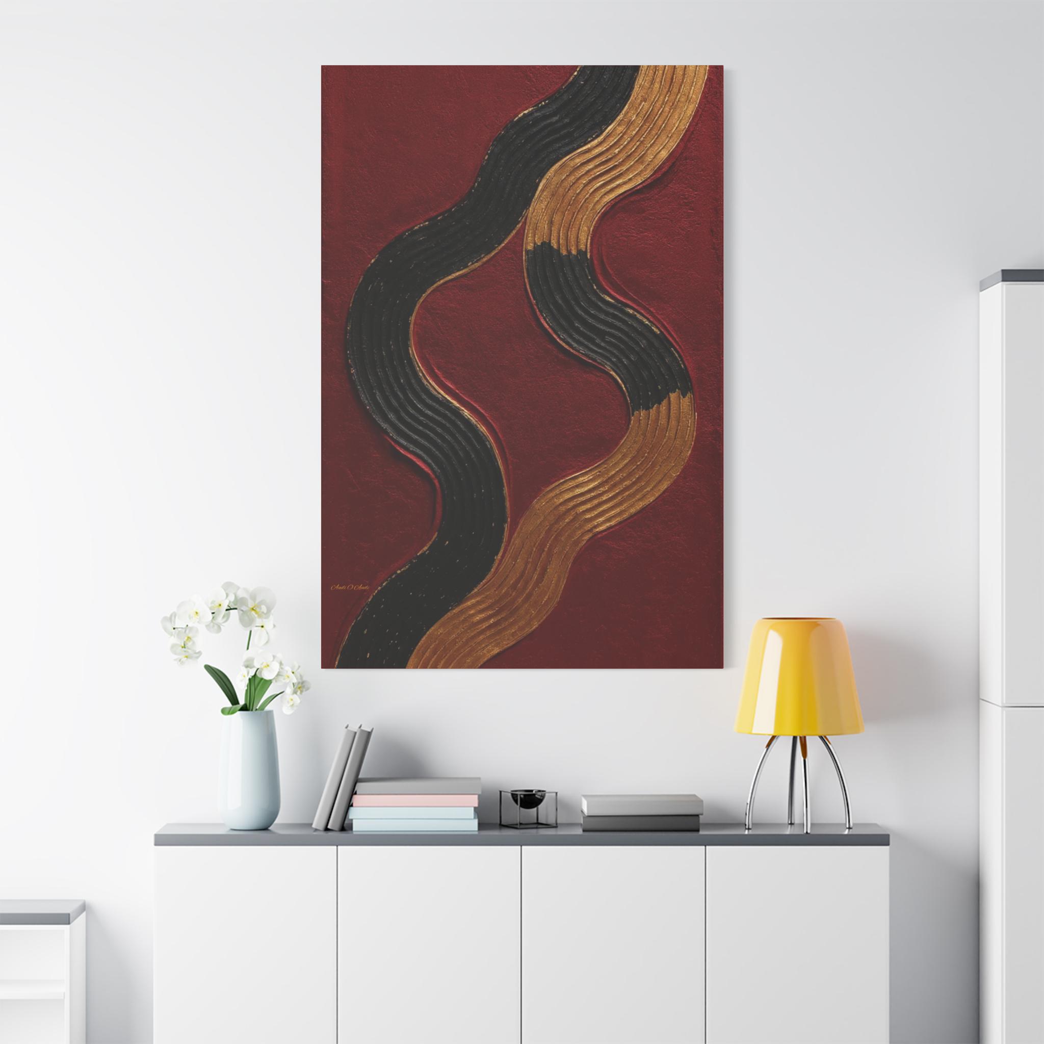 Abstract Waves Canvas Art, Modern Gold Accent Wall Decor