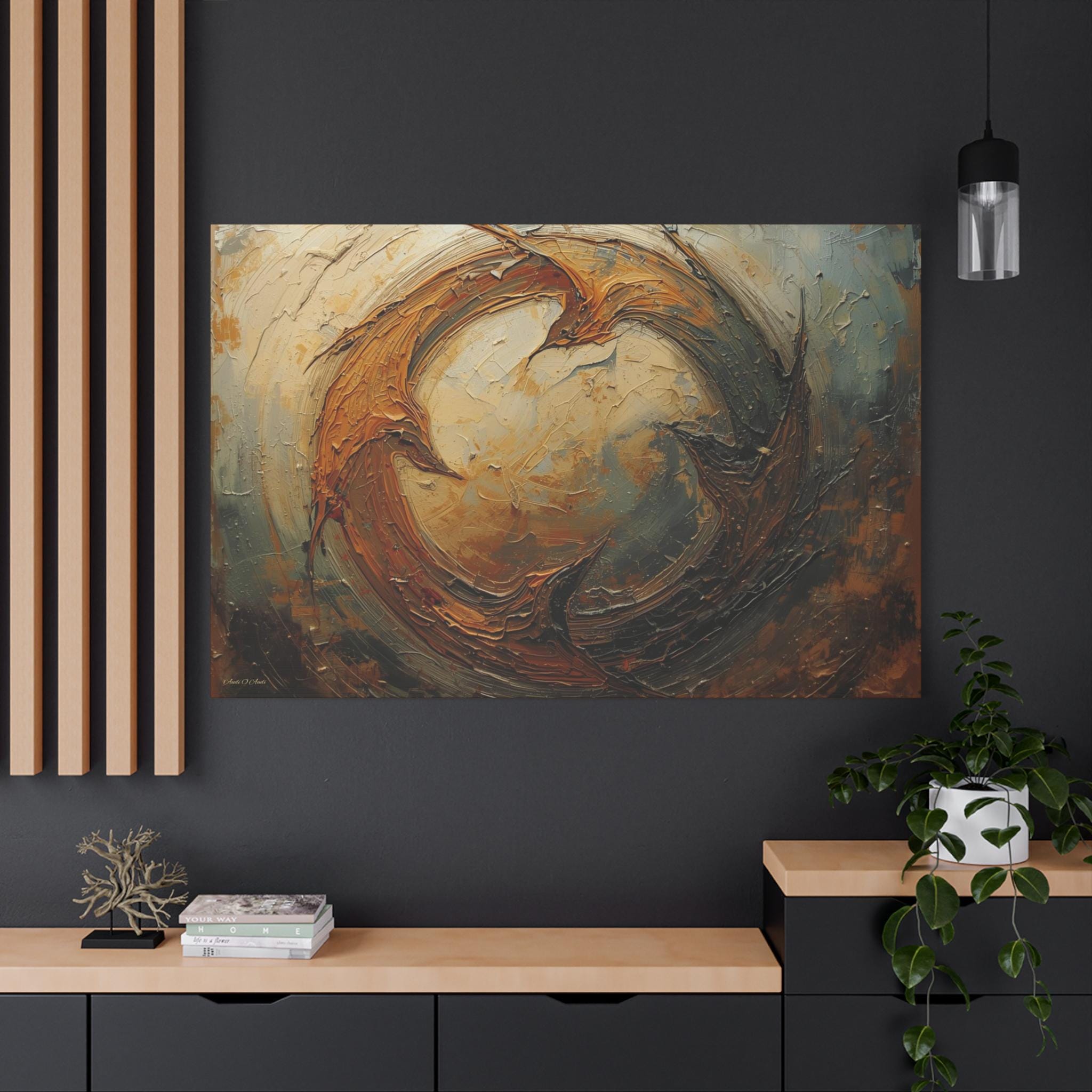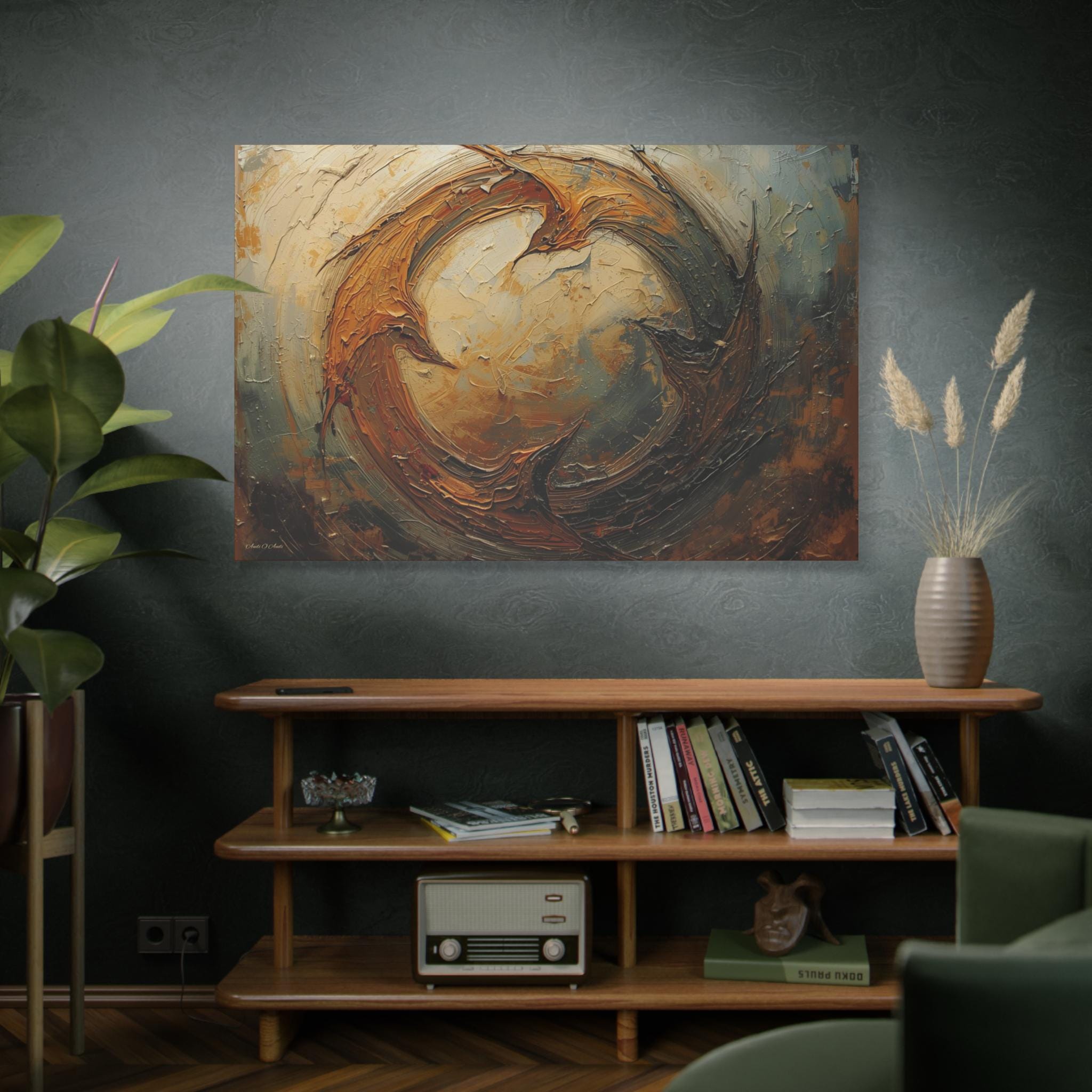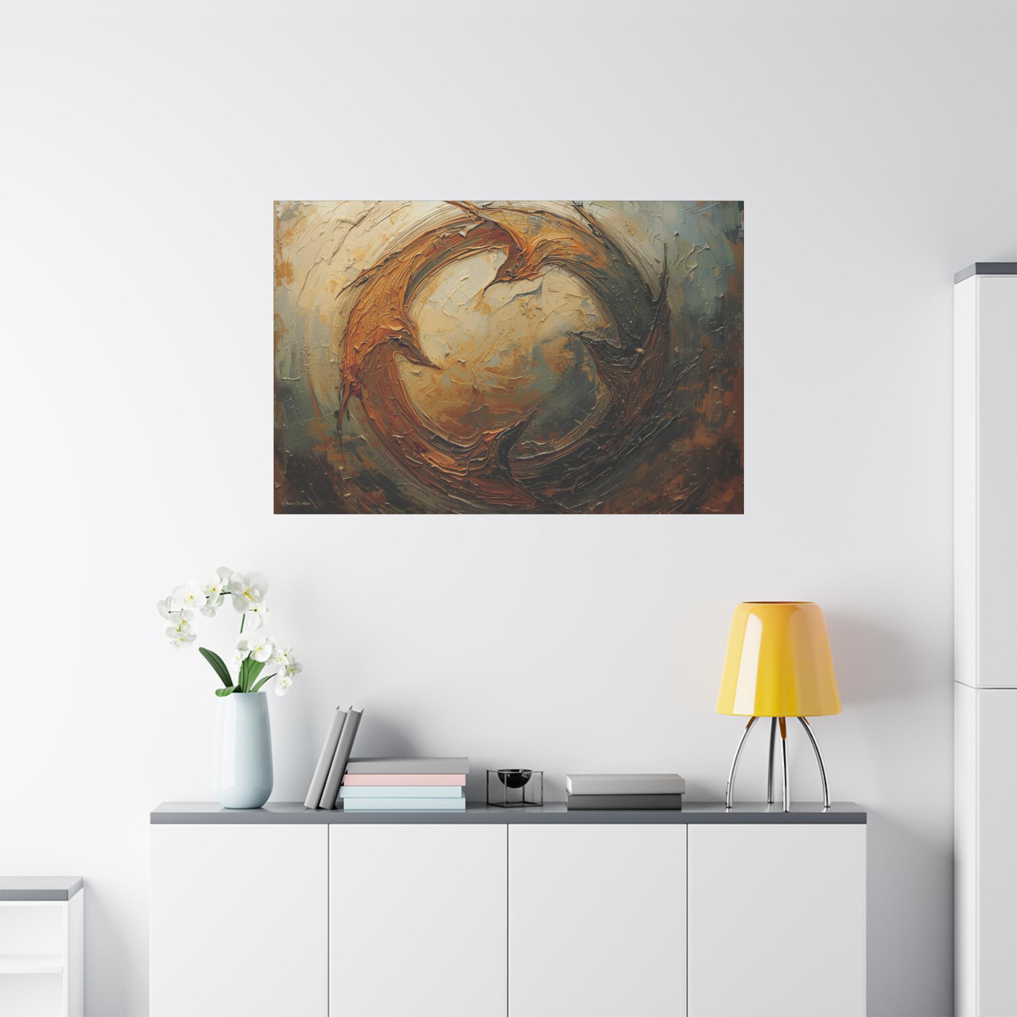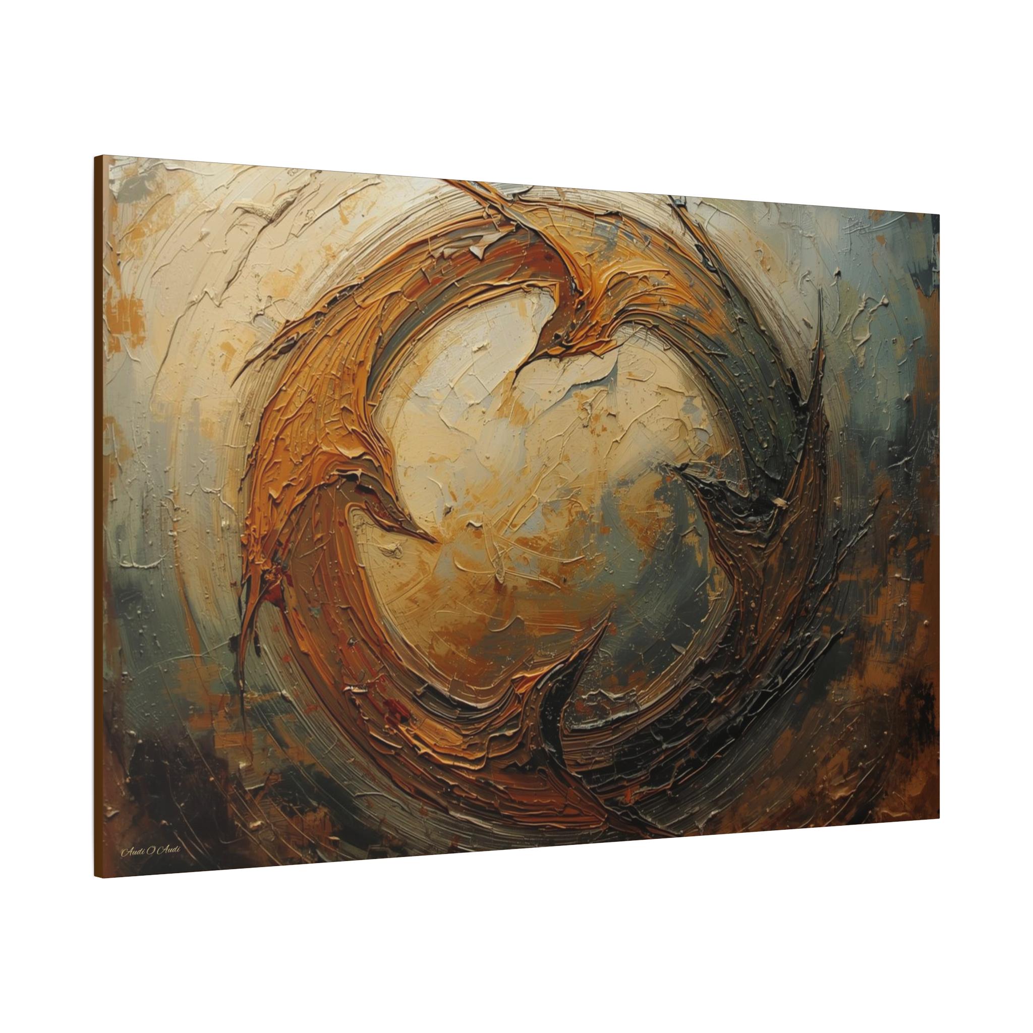 The Chronos Cycle" is a powerful abstract print, presented in a style that meticulously emulates a masterpiece impasto oil painting. The artwork boldly addresses the theme of human existence and the cyclical nature of life (the timeline) through dynamic form and rich texture.