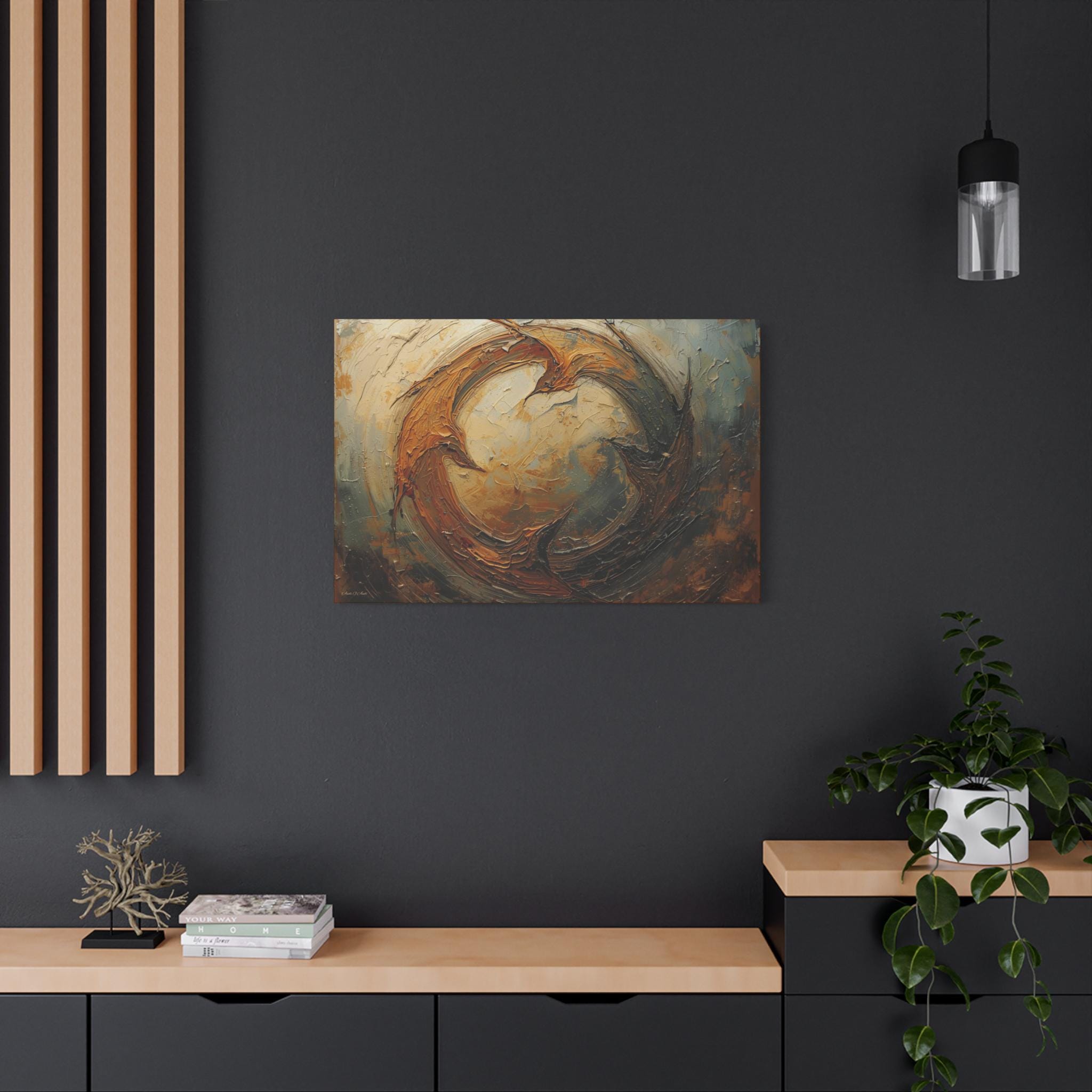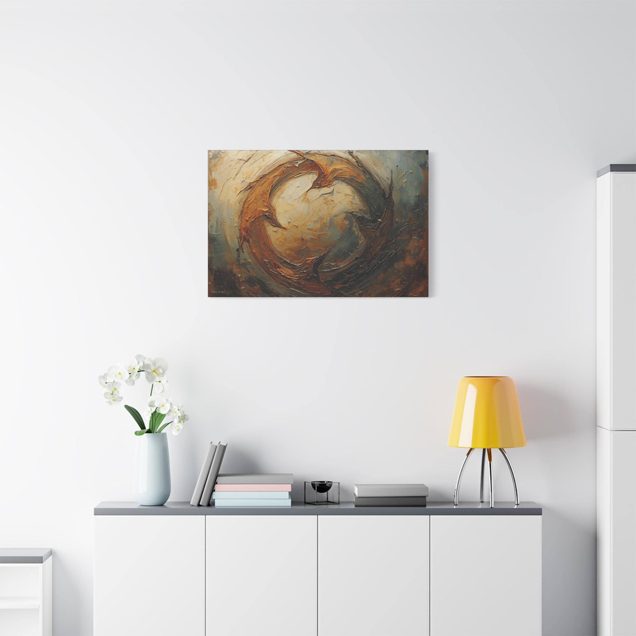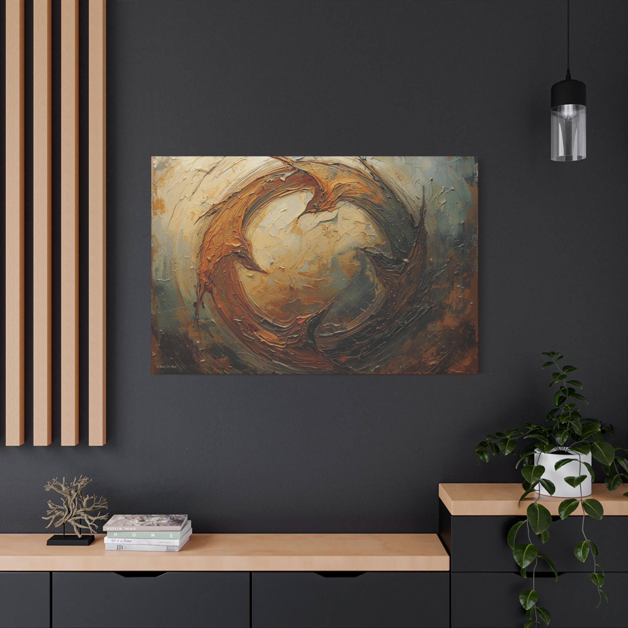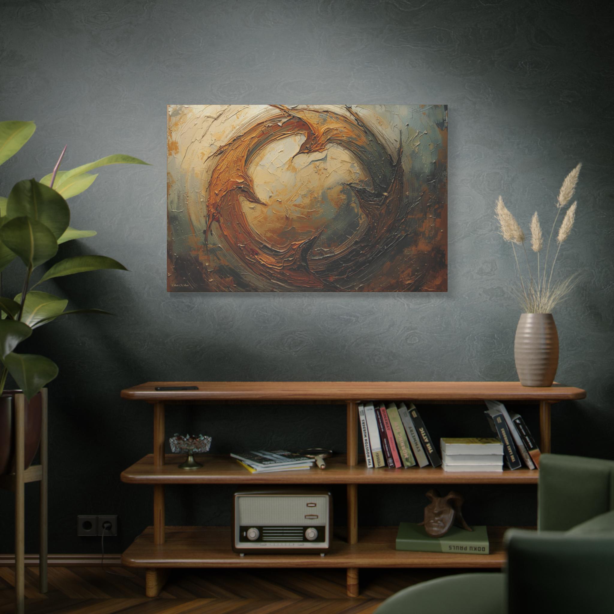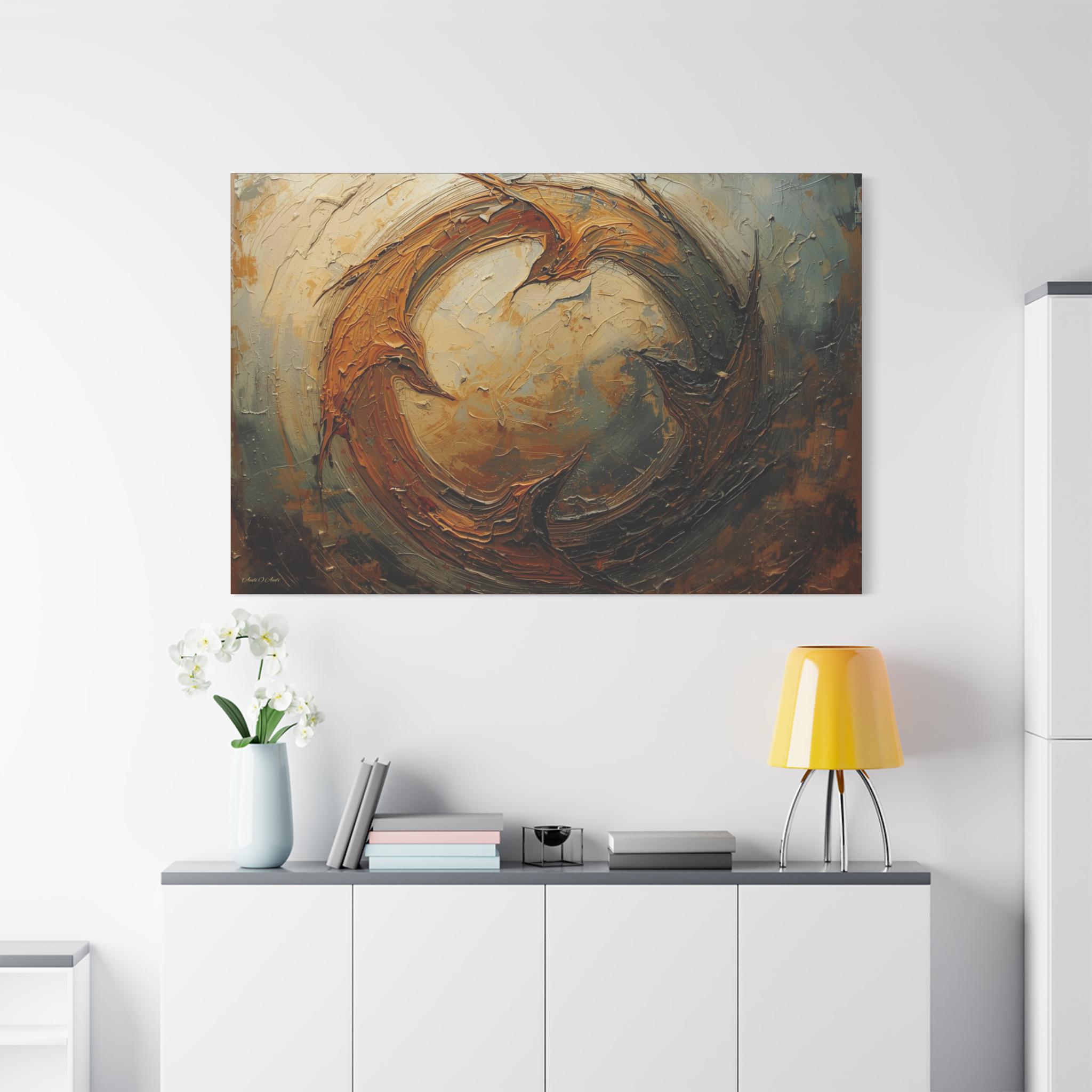 The Chronos Cycle" is a powerful abstract print, presented in a style that meticulously emulates a masterpiece impasto oil painting. The artwork boldly addresses the theme of human existence and the cyclical nature of life (the timeline) through dynamic form and rich texture.