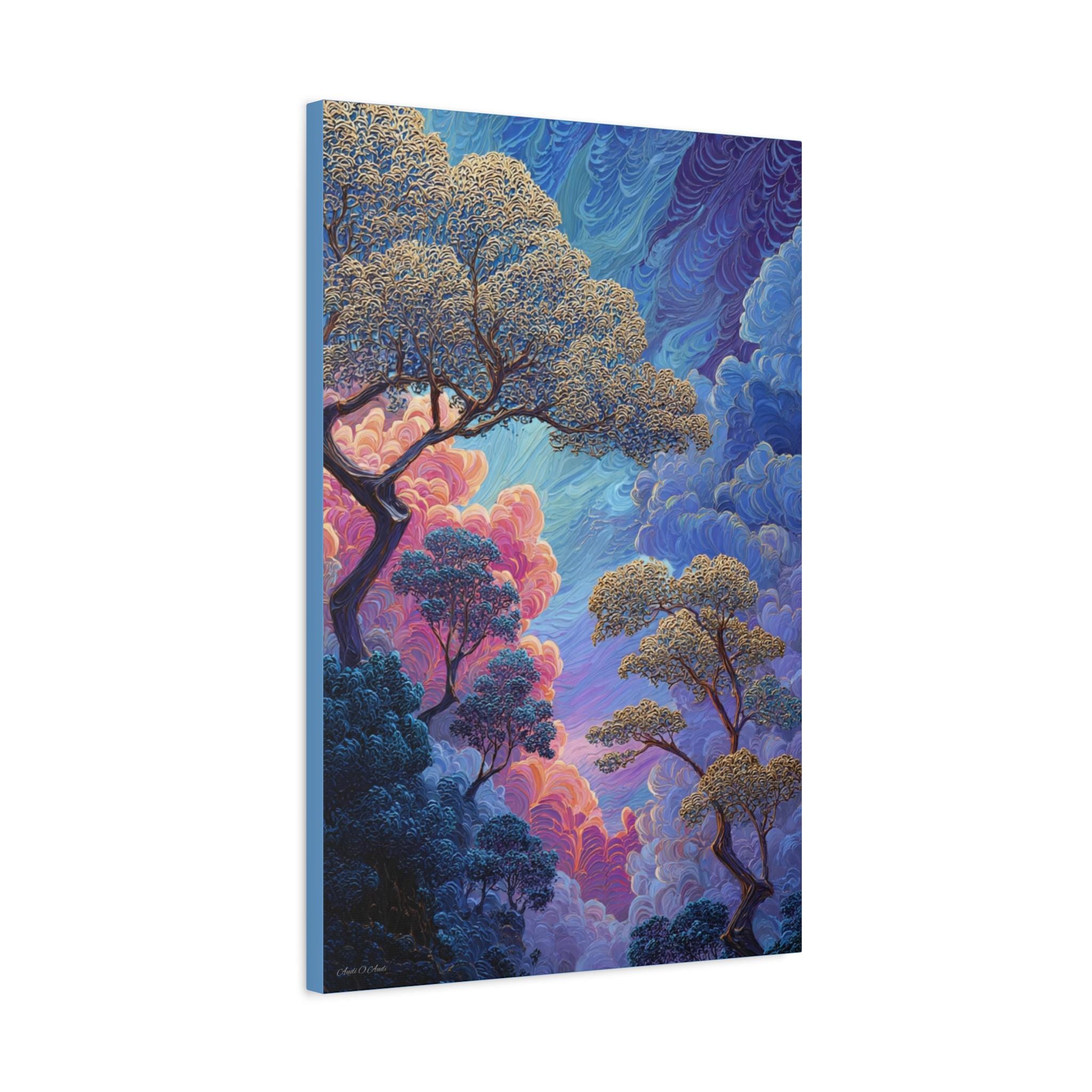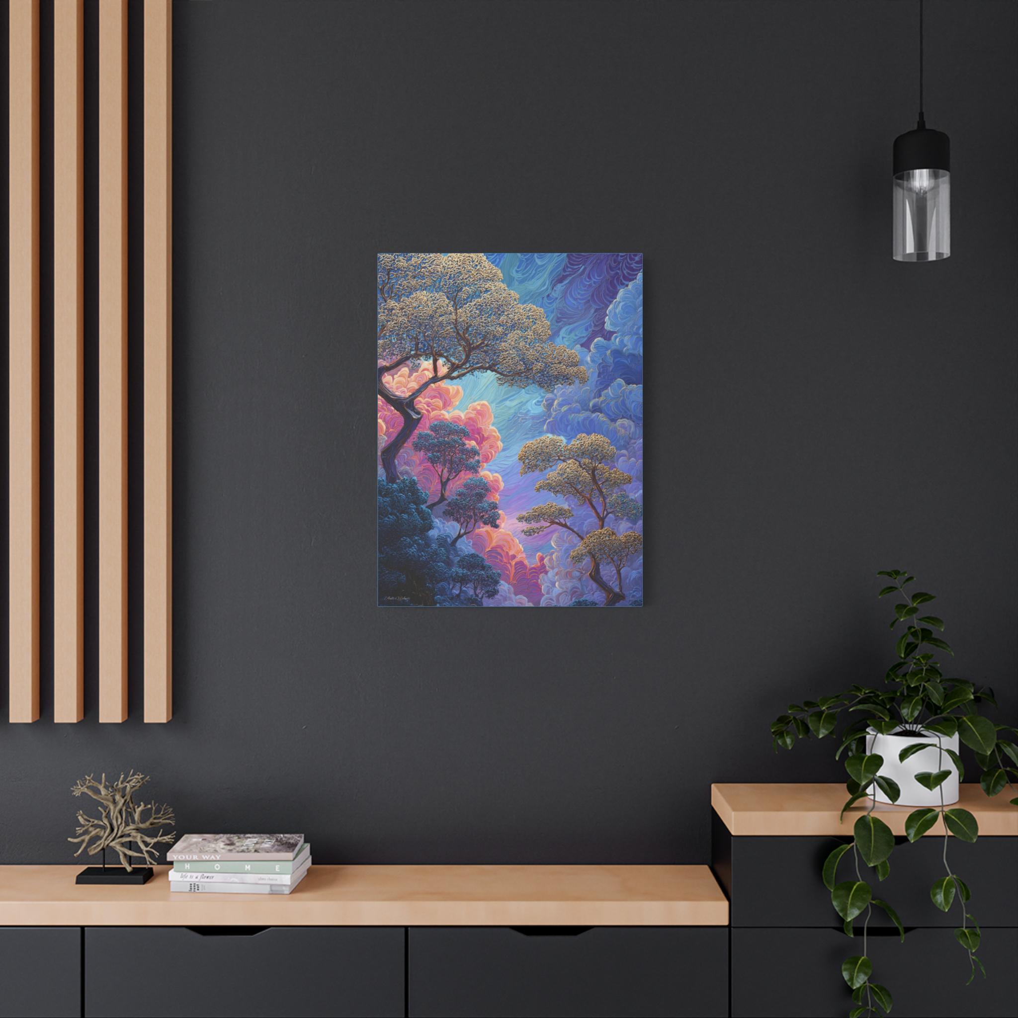 Celestial Grove, Nature Canvas print Art, Decor for Living Room, Gift for Nature Lovers, Colorful Tree Landscape, Perfect for Housewarming