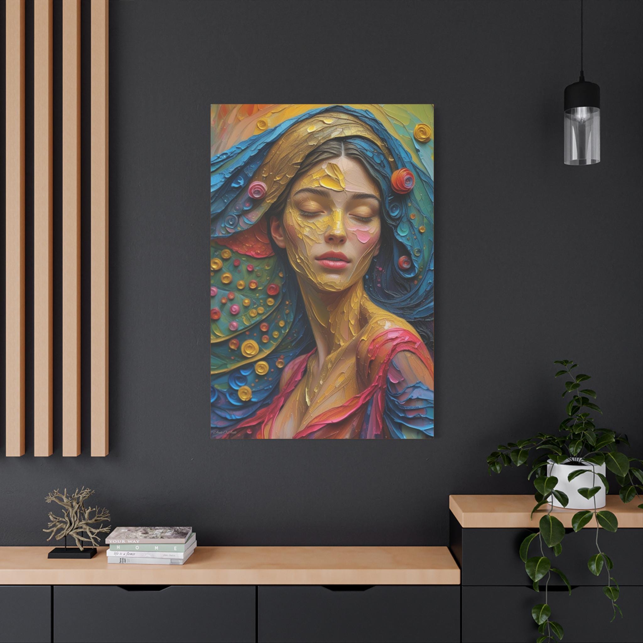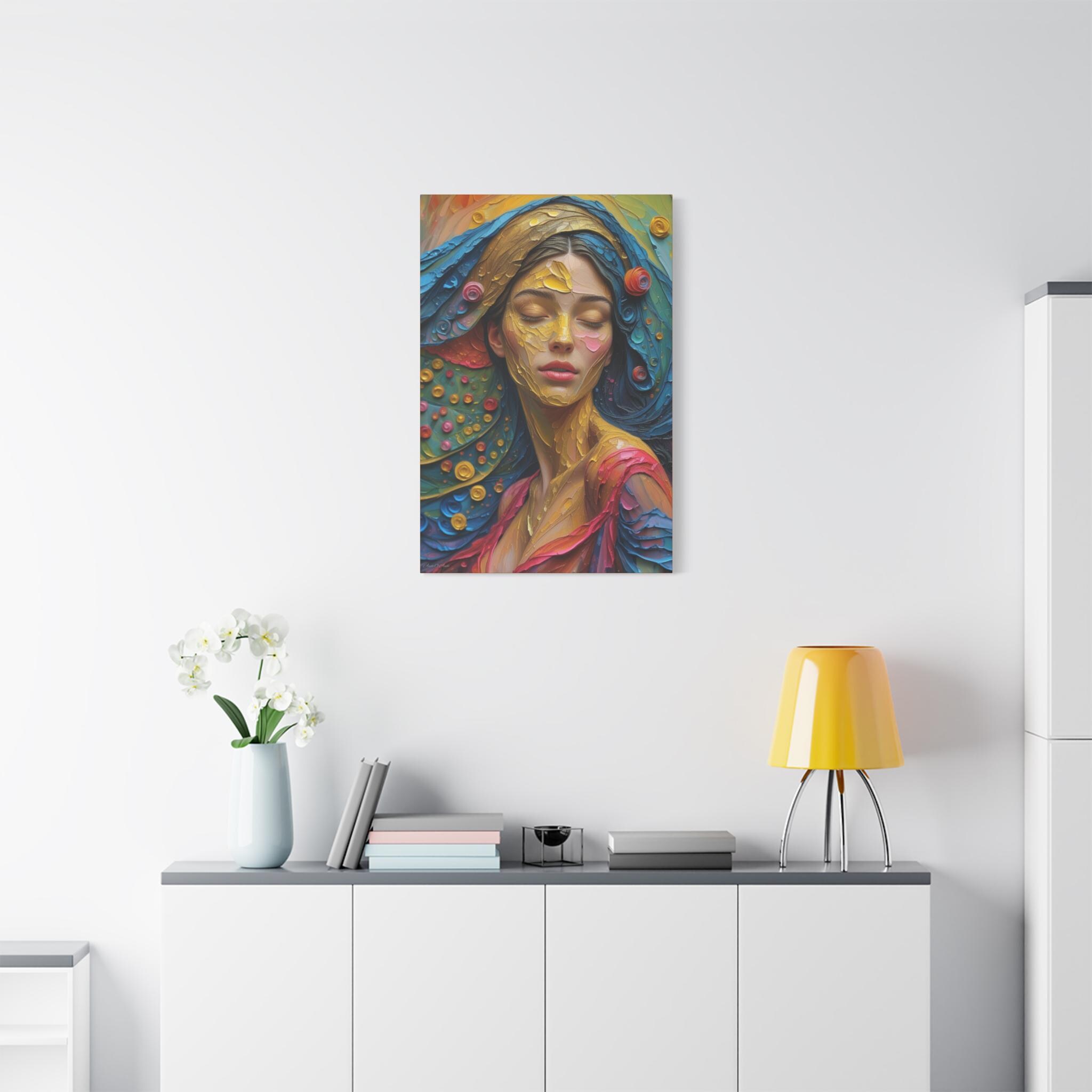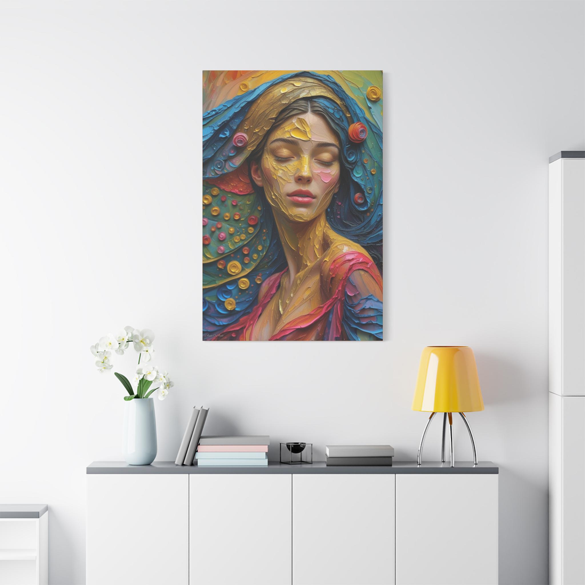 Aura of Gold, Woman Portrait Canvas Print, Wall Art Lovers, Home and Office Decoration, Colorful Art.