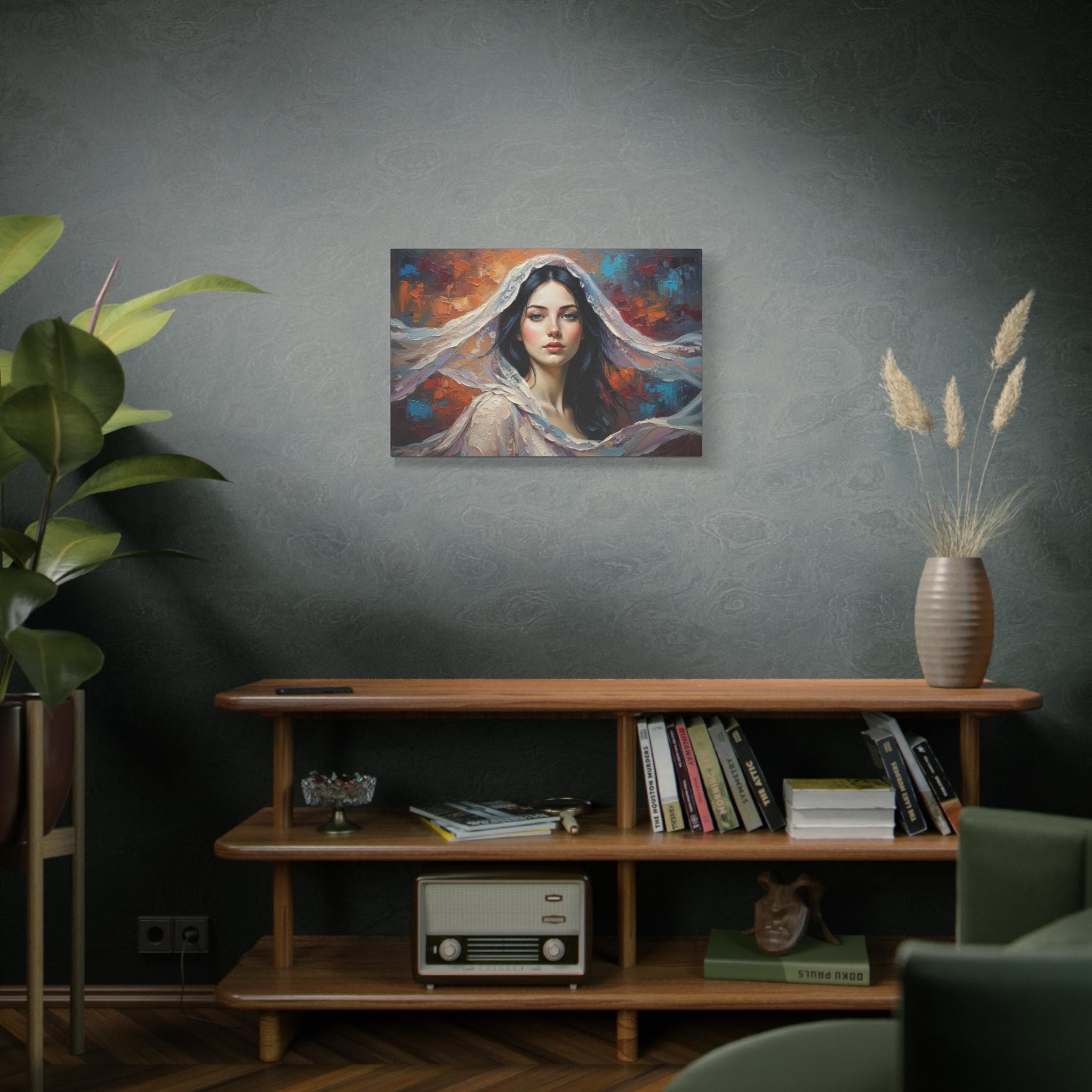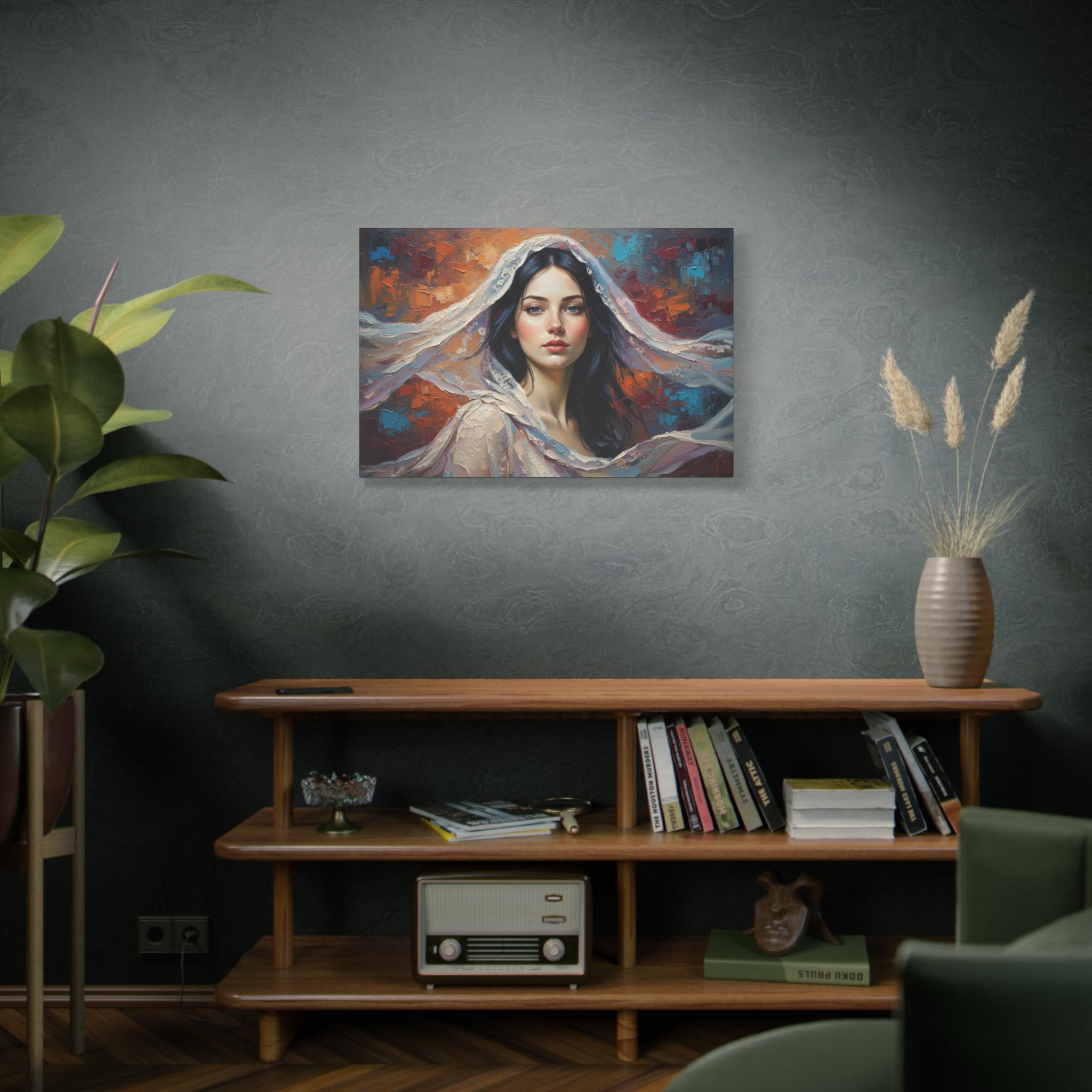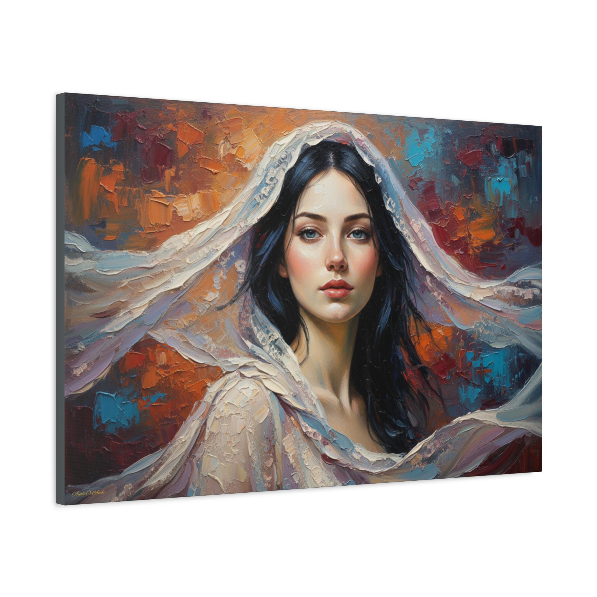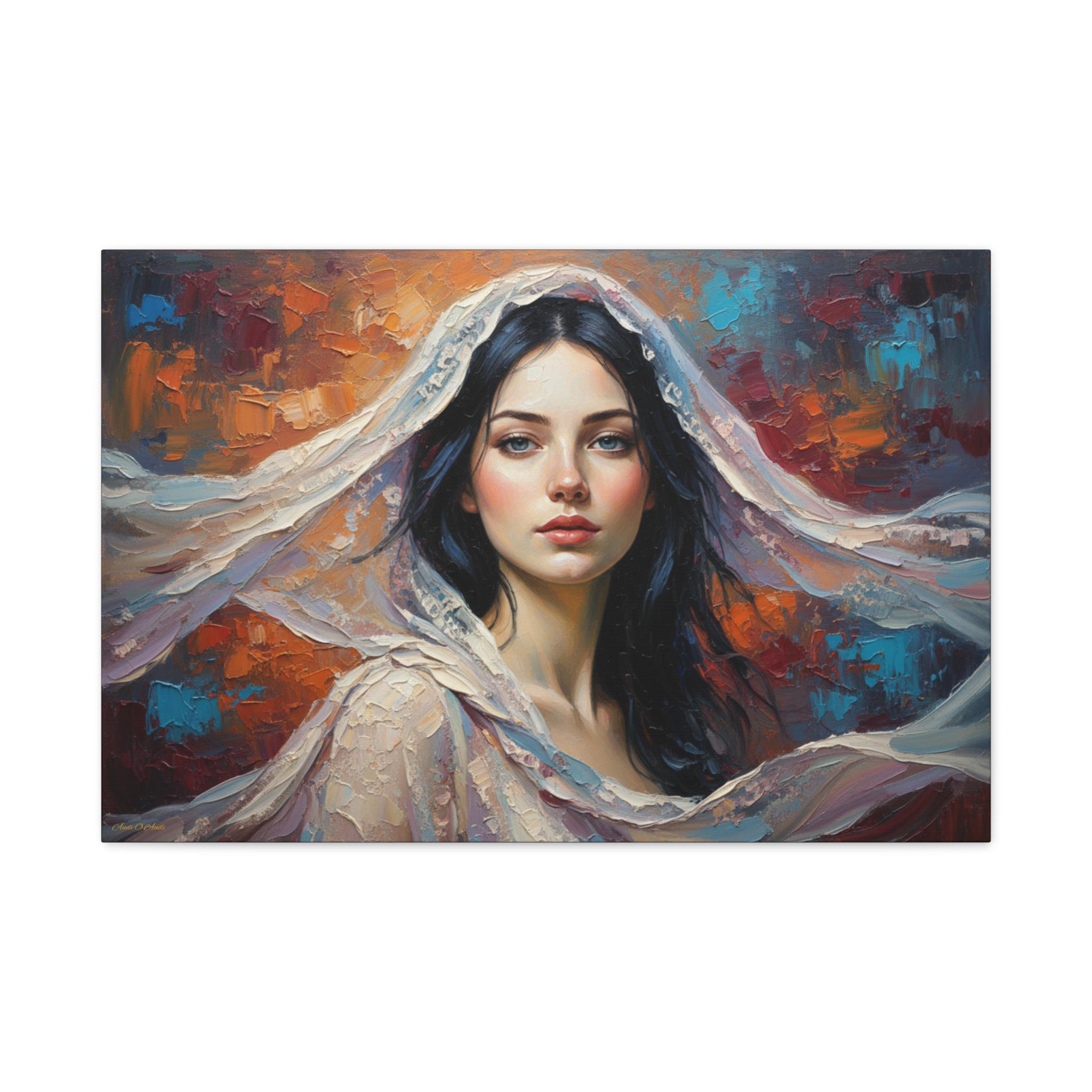Veiled Harmony, Print, Portrait of Woman with Veil Matte Wall Art, Stretched Gallery Wrap, Home Decor, Gift for Her, Feminine Artwork