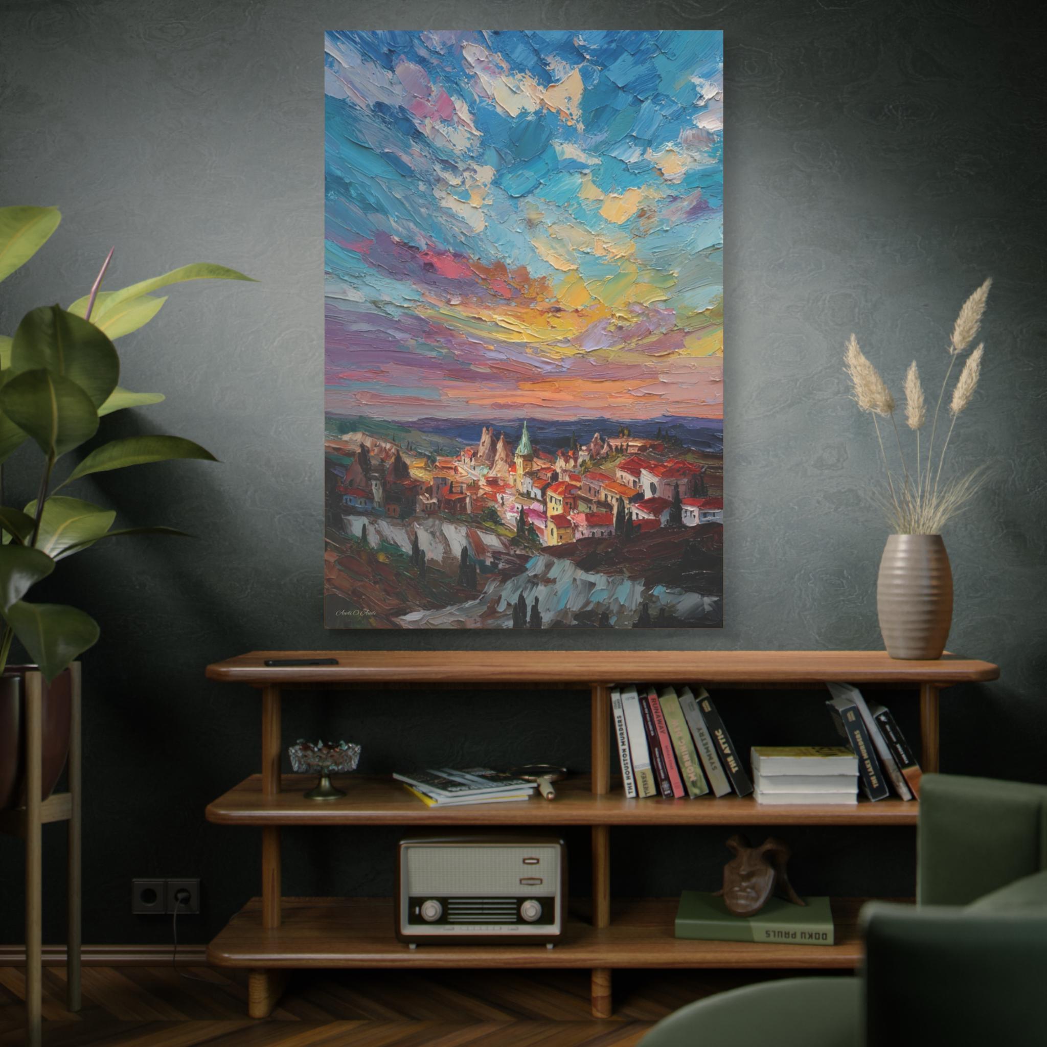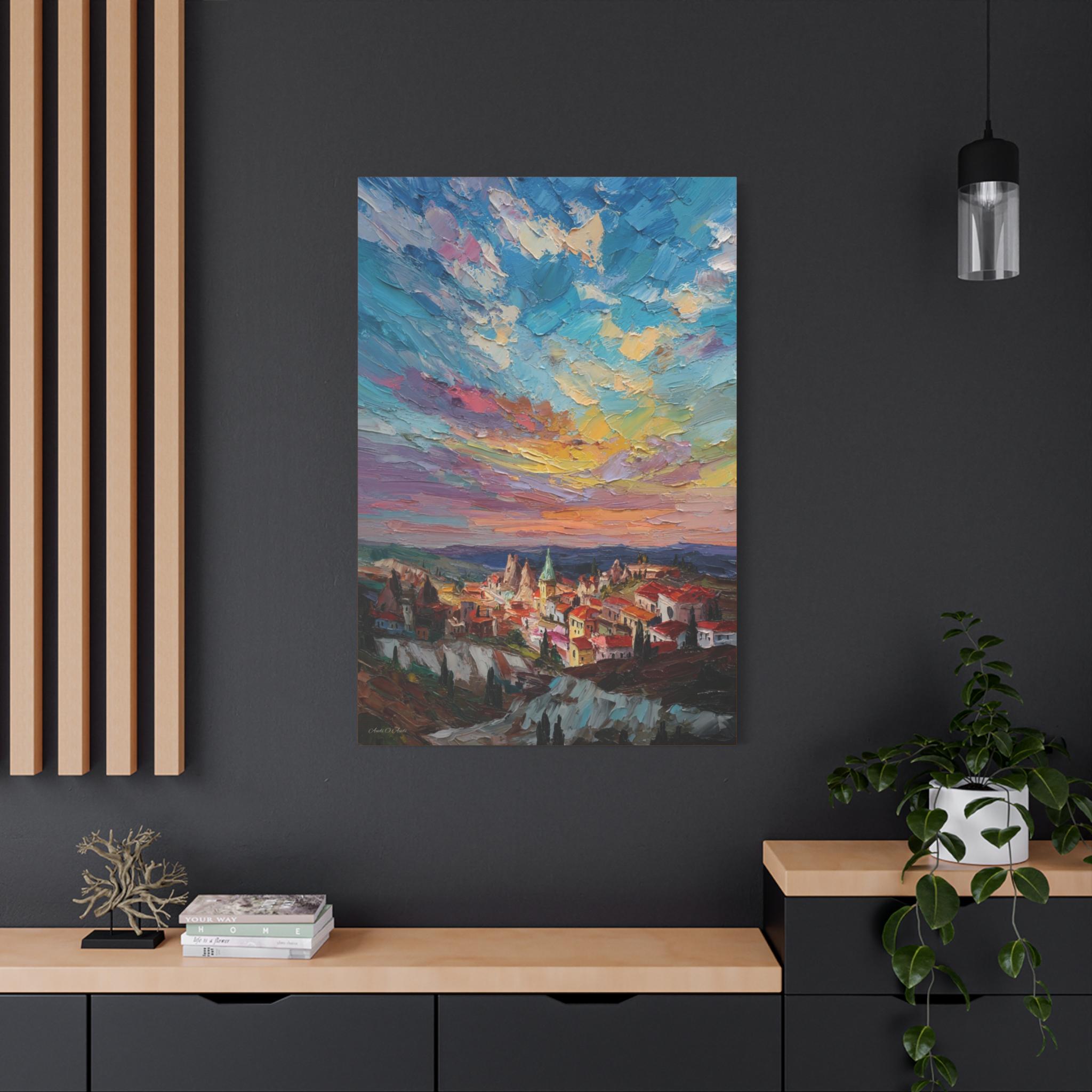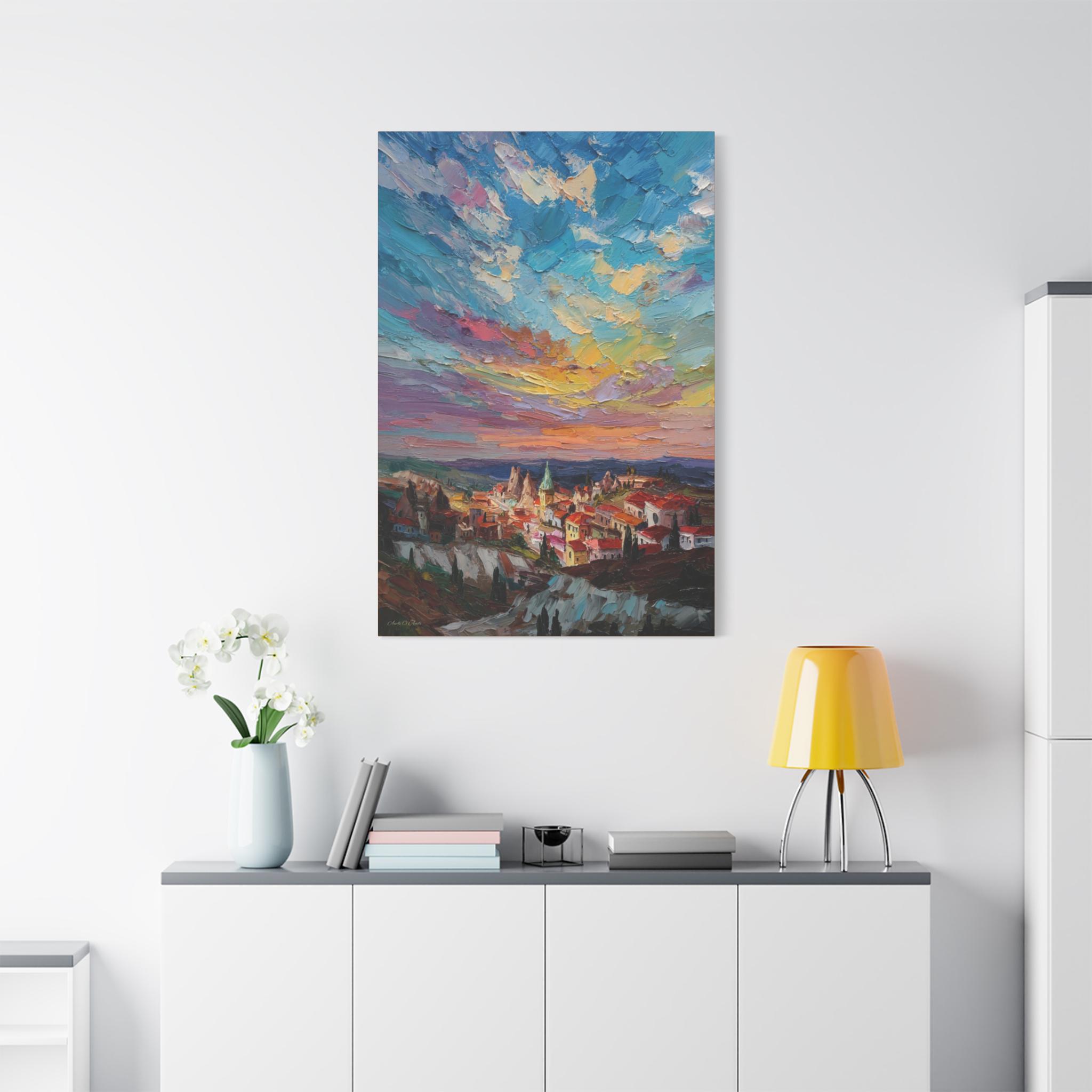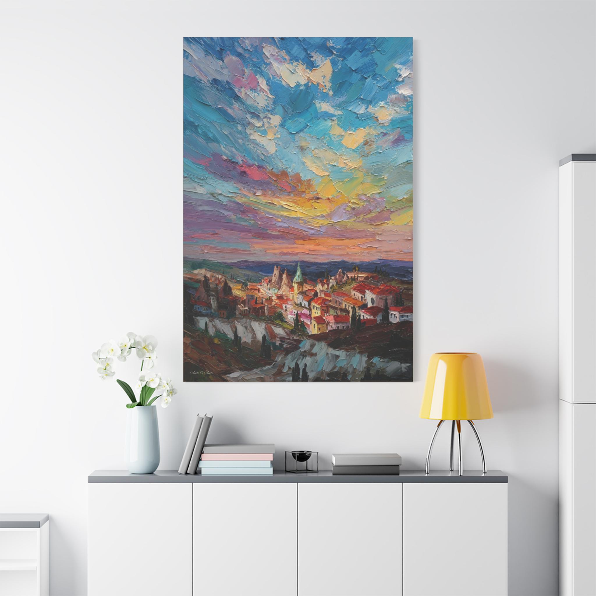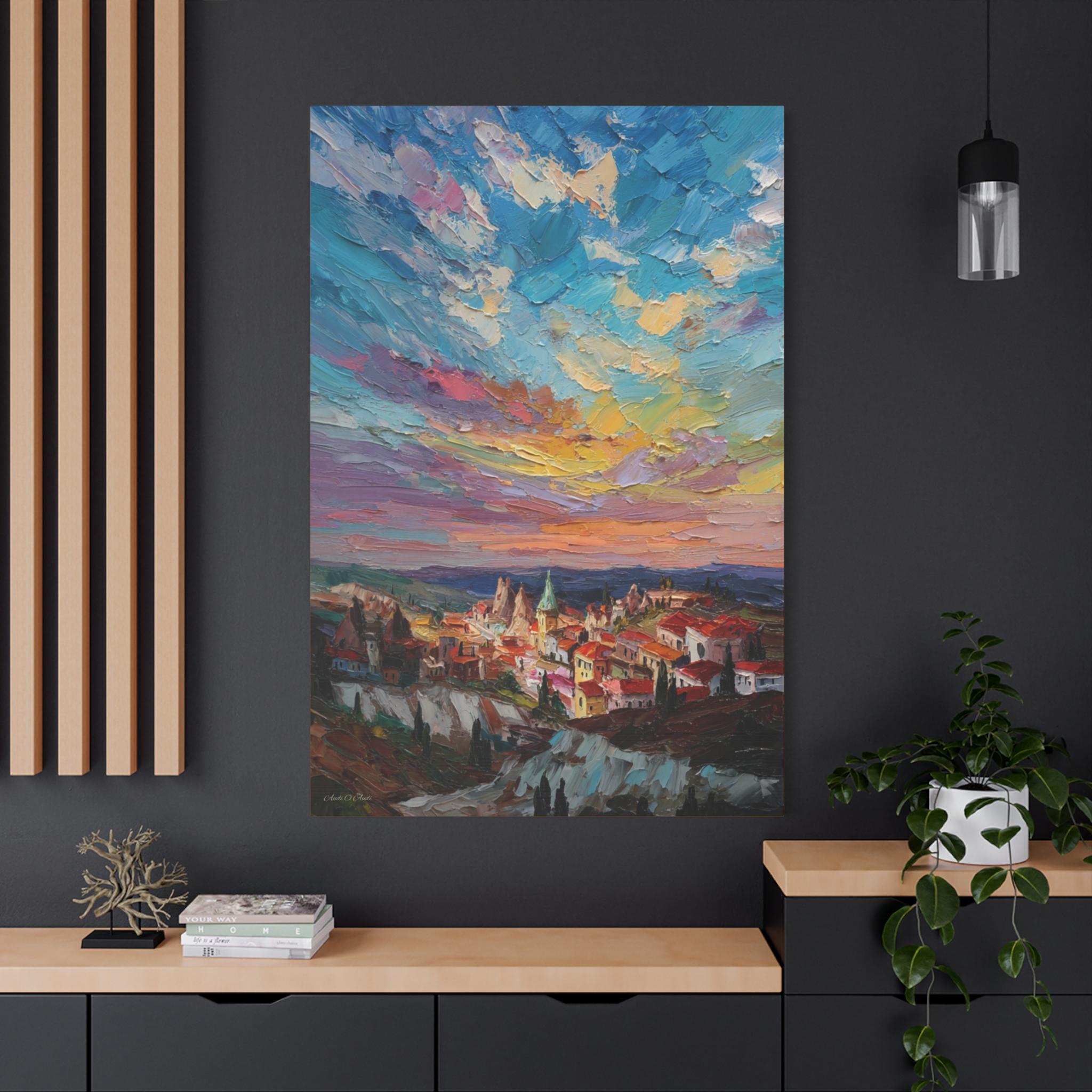 Anatolian Sunset, Colorful Sunset Village Matte Canvas Print, Vibrant Landscape, Home Accent Art, Colorful Decor, Boho Art.
