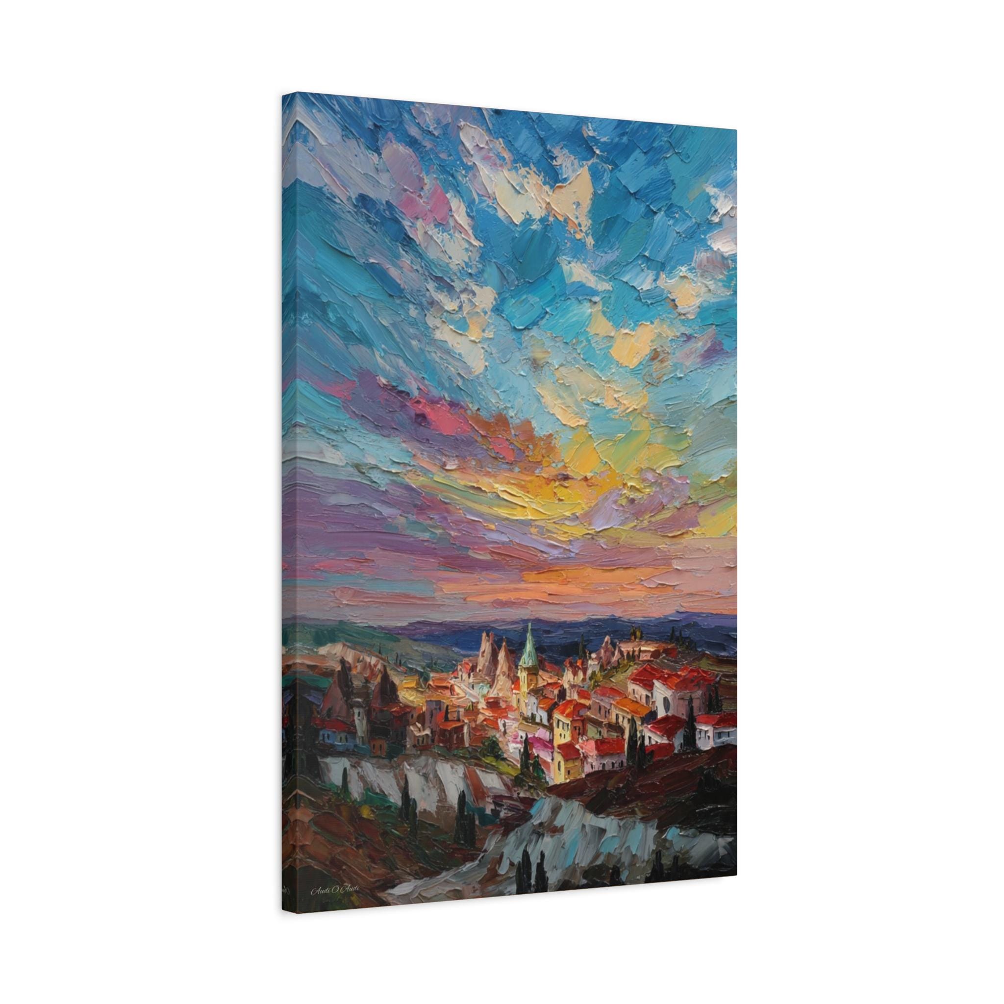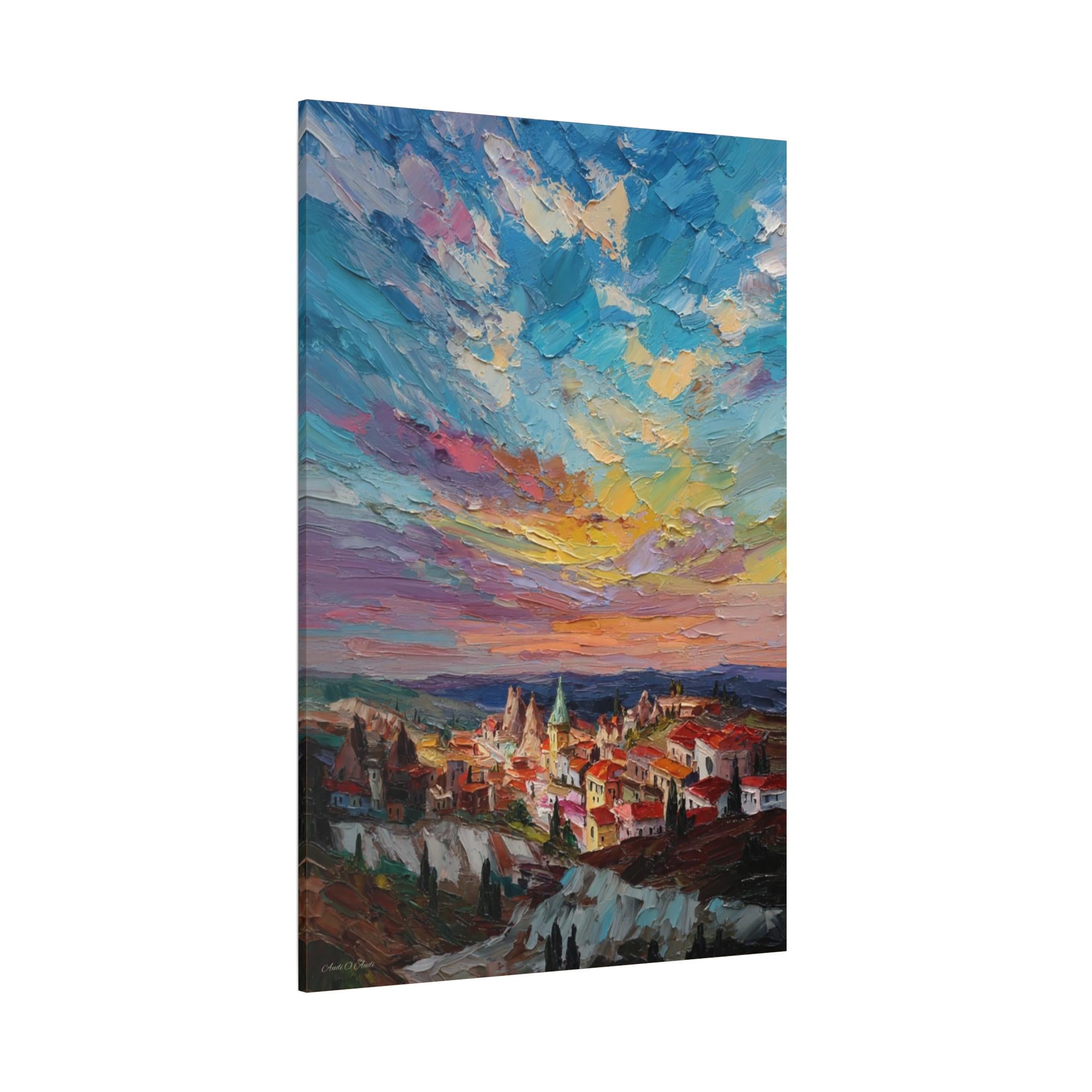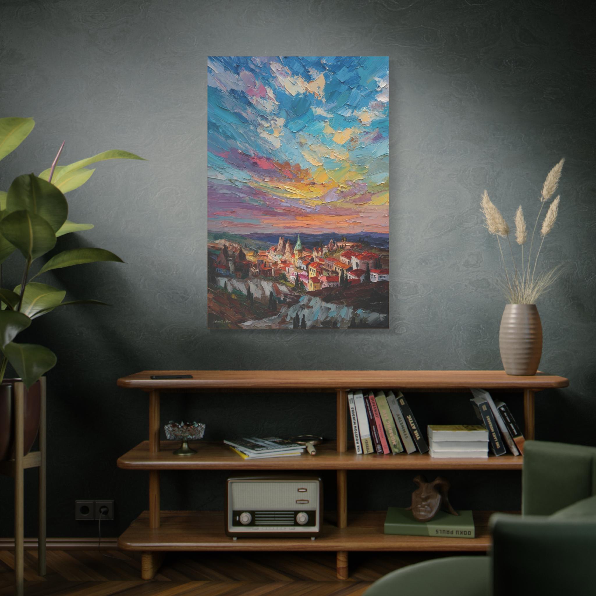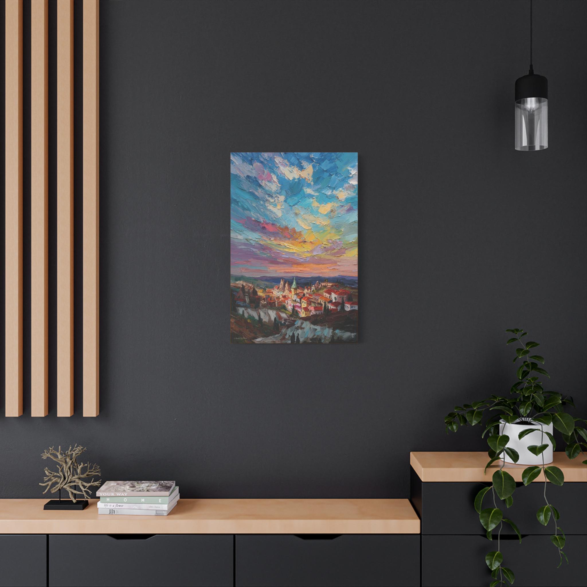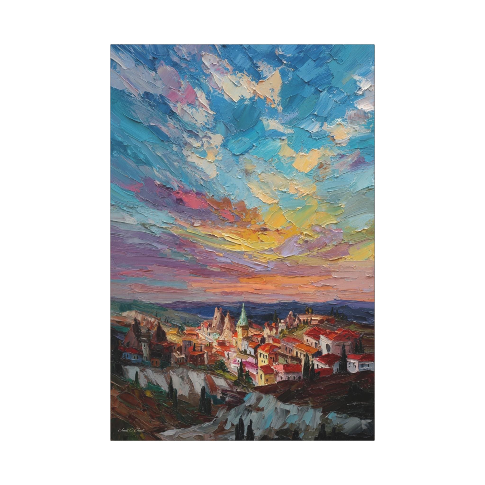 Anatolian Sunset, Colorful Sunset Village Matte Canvas Print, Vibrant Landscape, Home Accent Art, Colorful Decor, Boho Art.