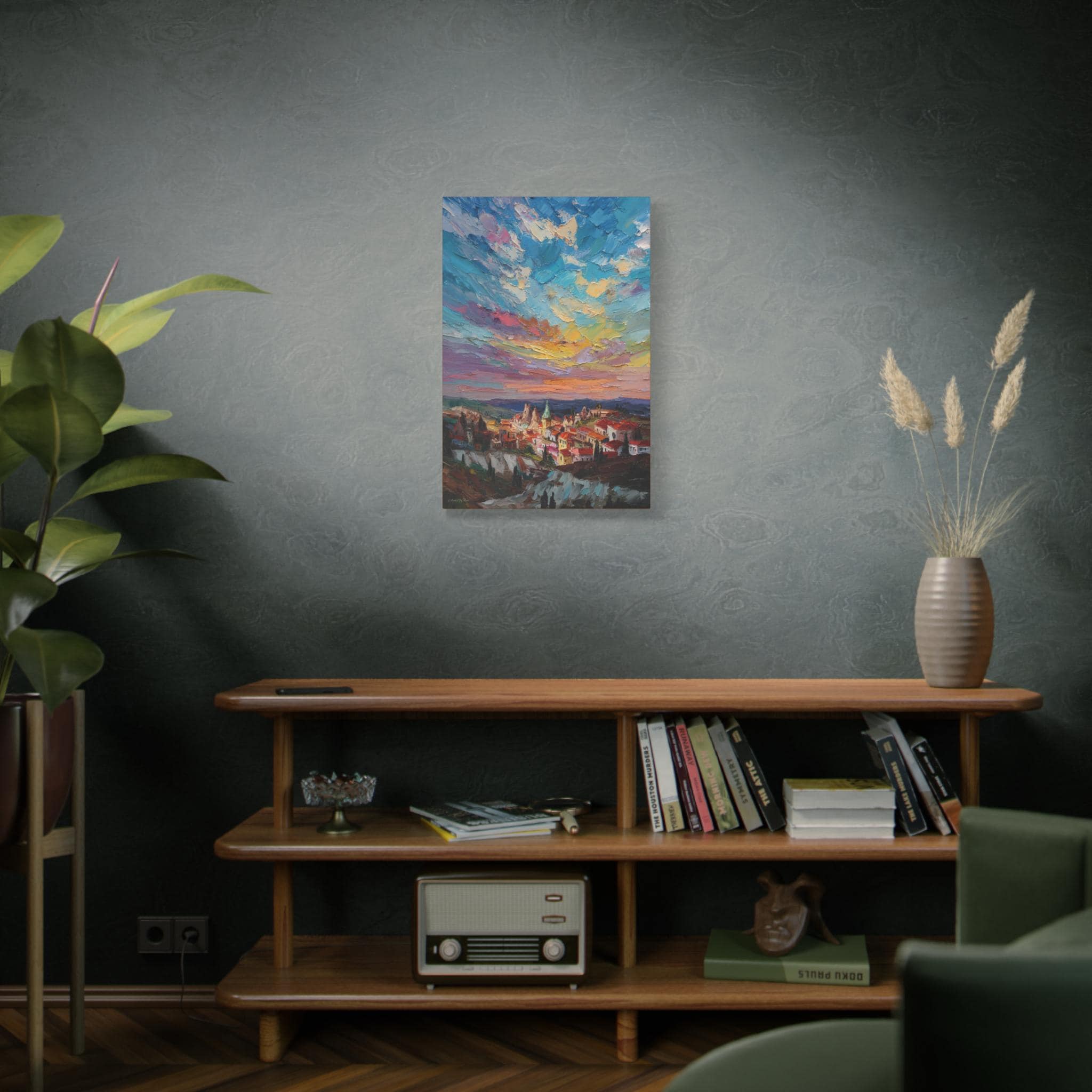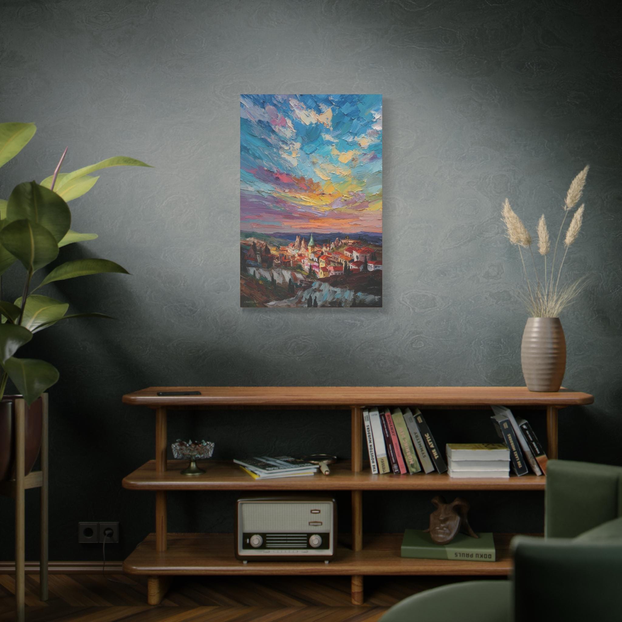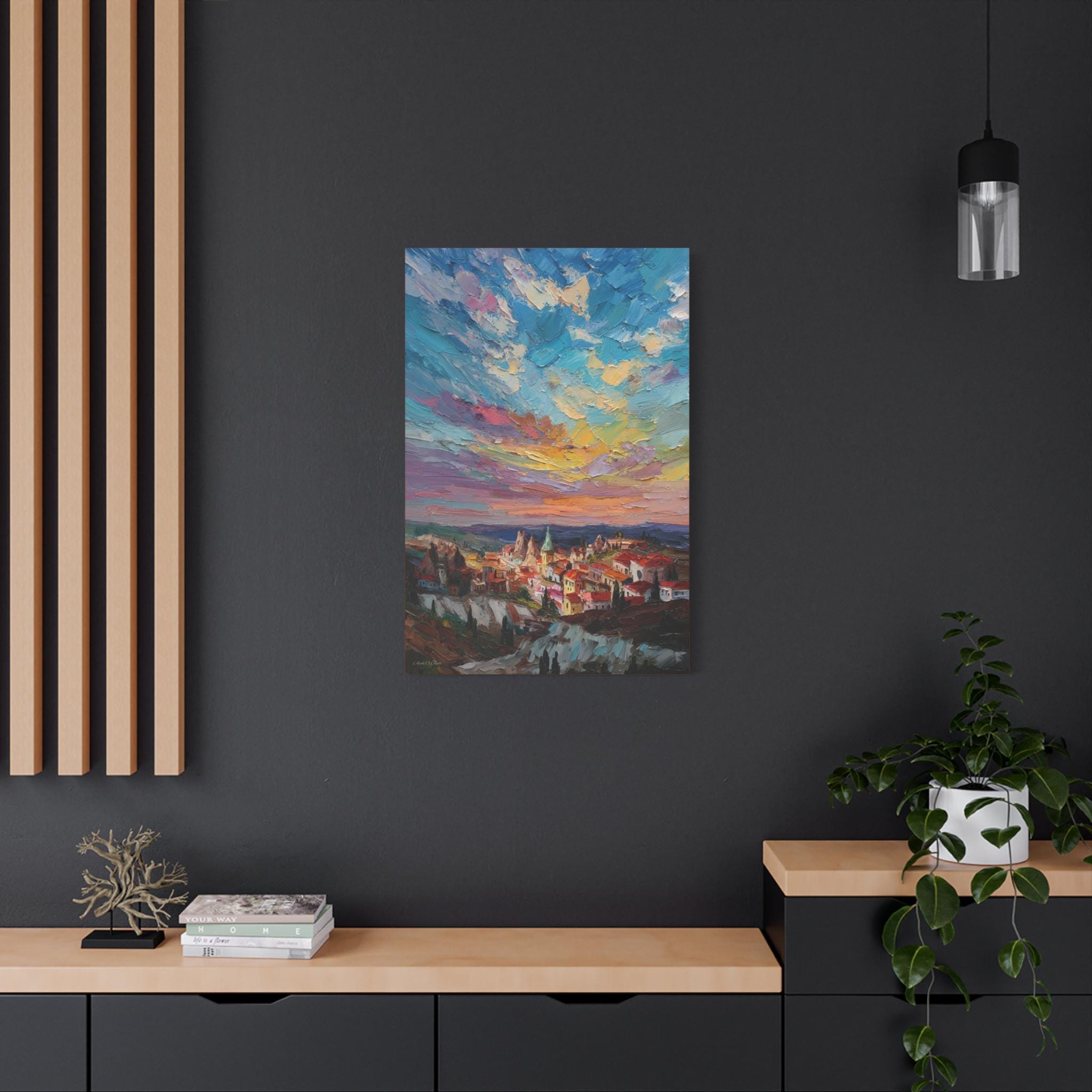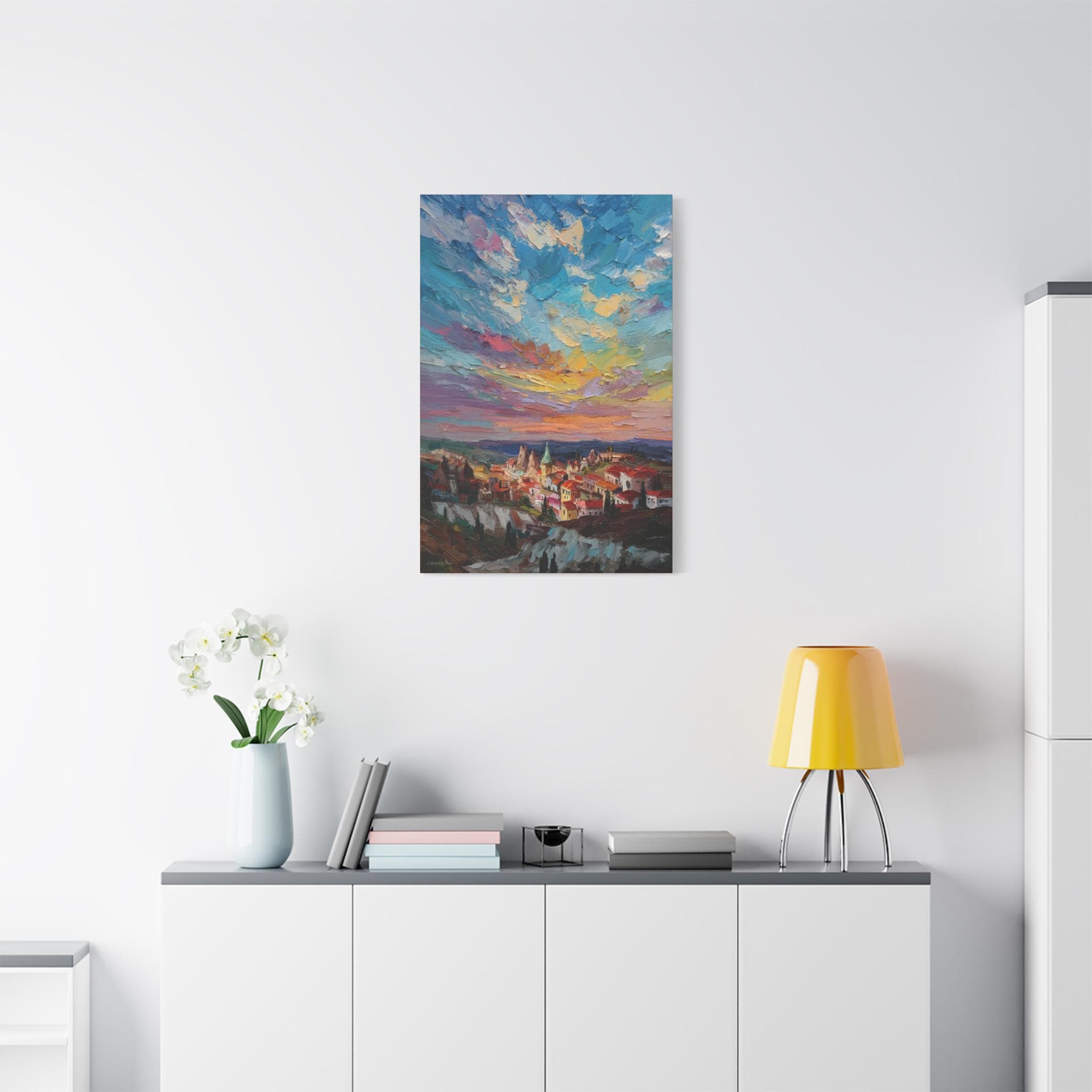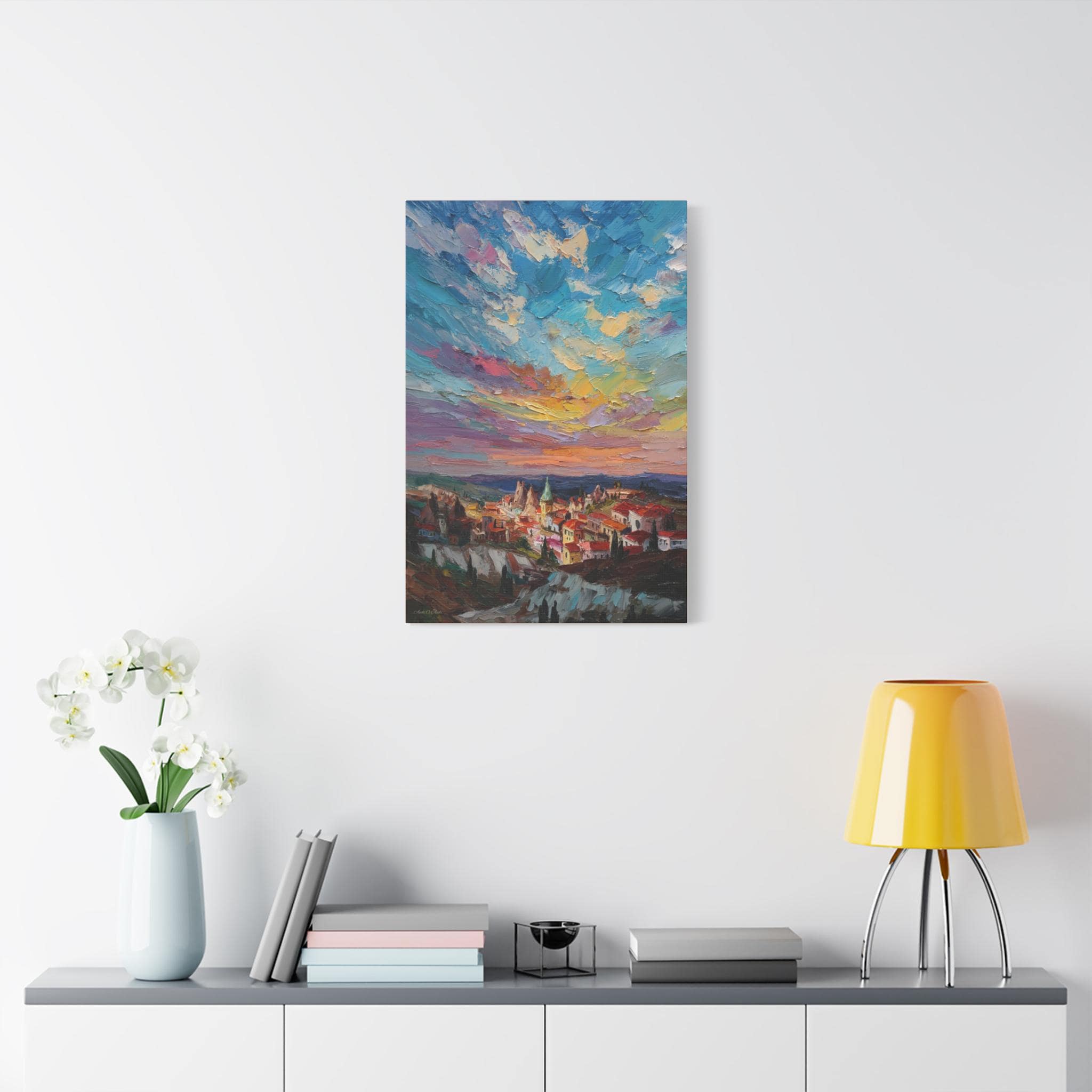 Anatolian Sunset, Colorful Sunset Village Matte Canvas Print, Vibrant Landscape, Home Accent Art, Colorful Decor, Boho Art.