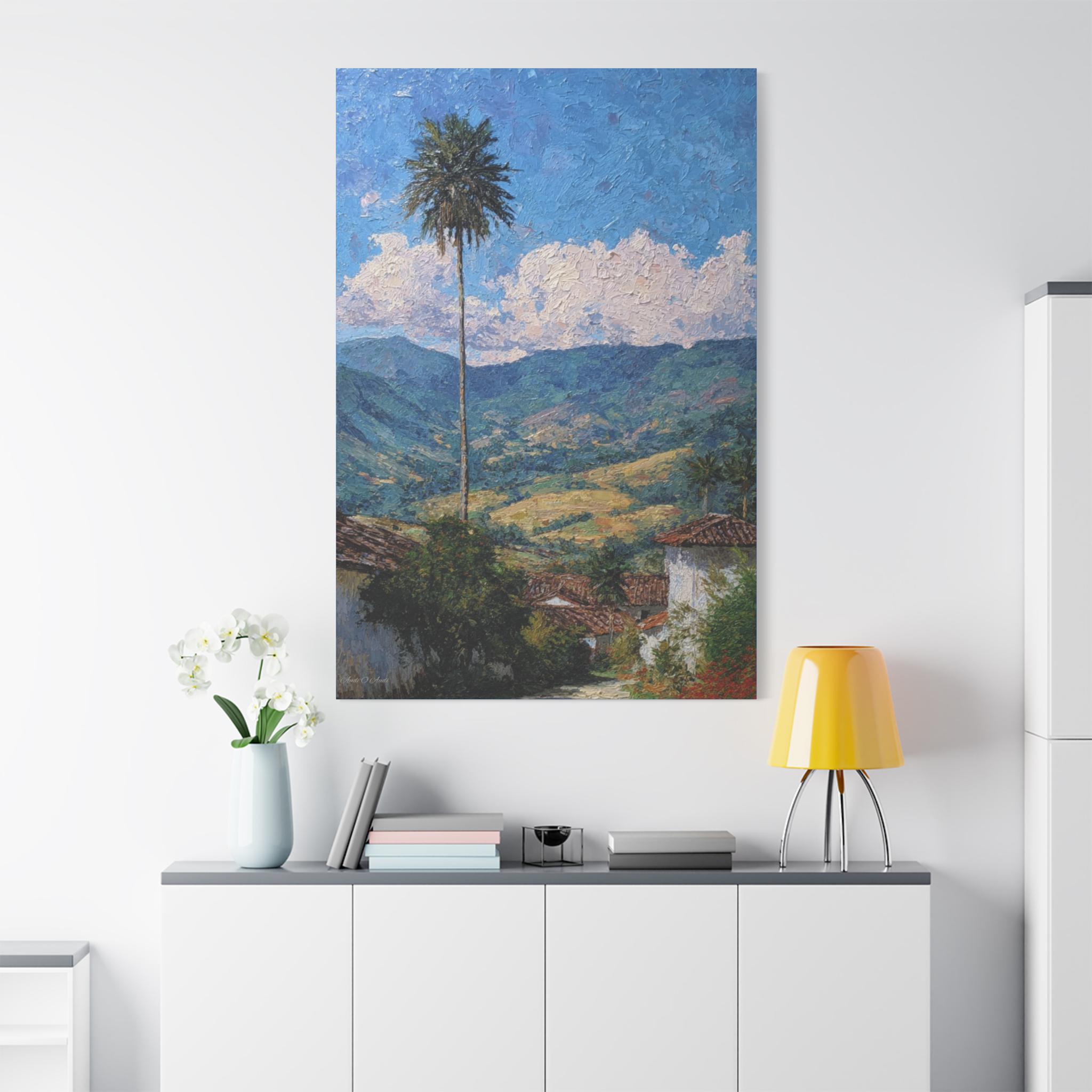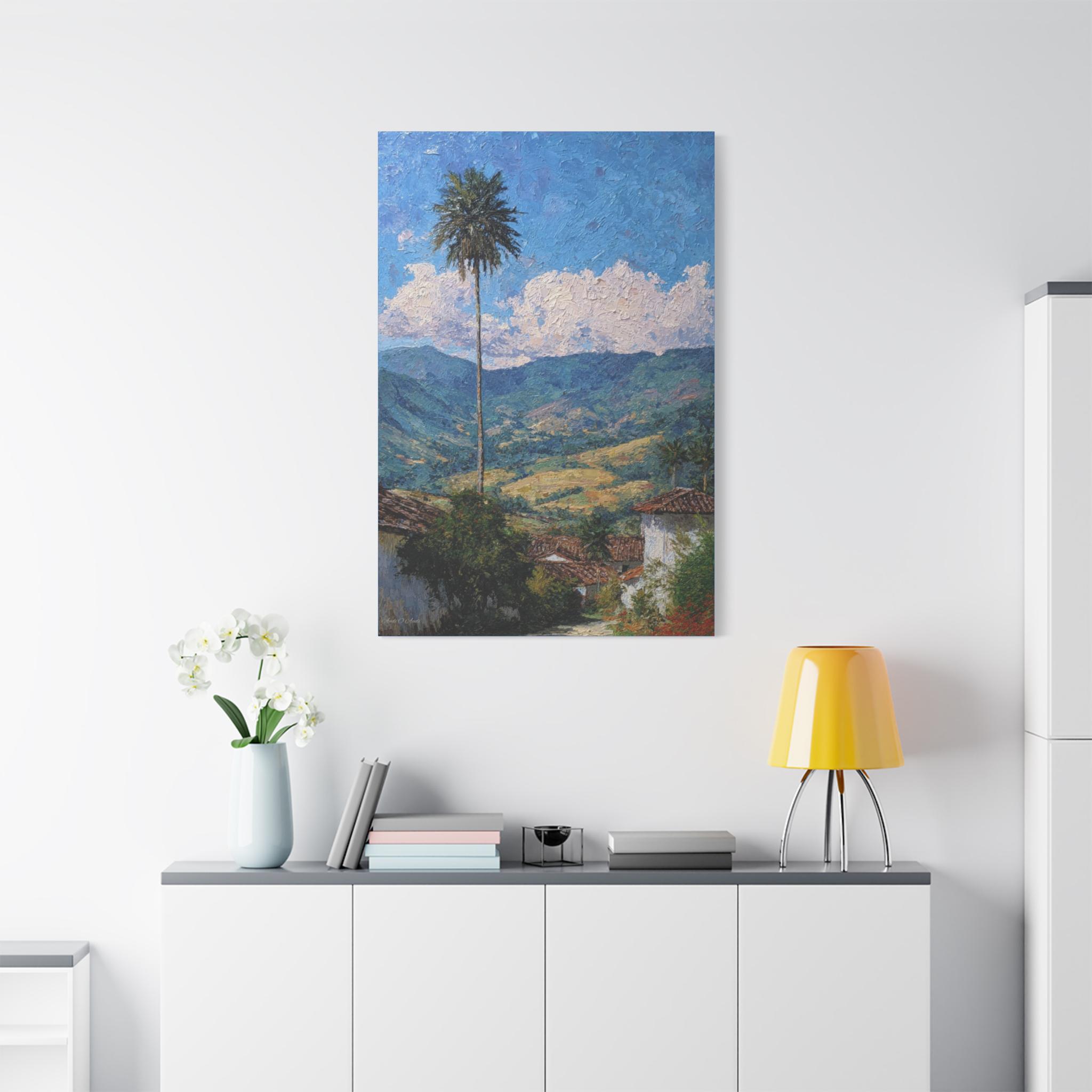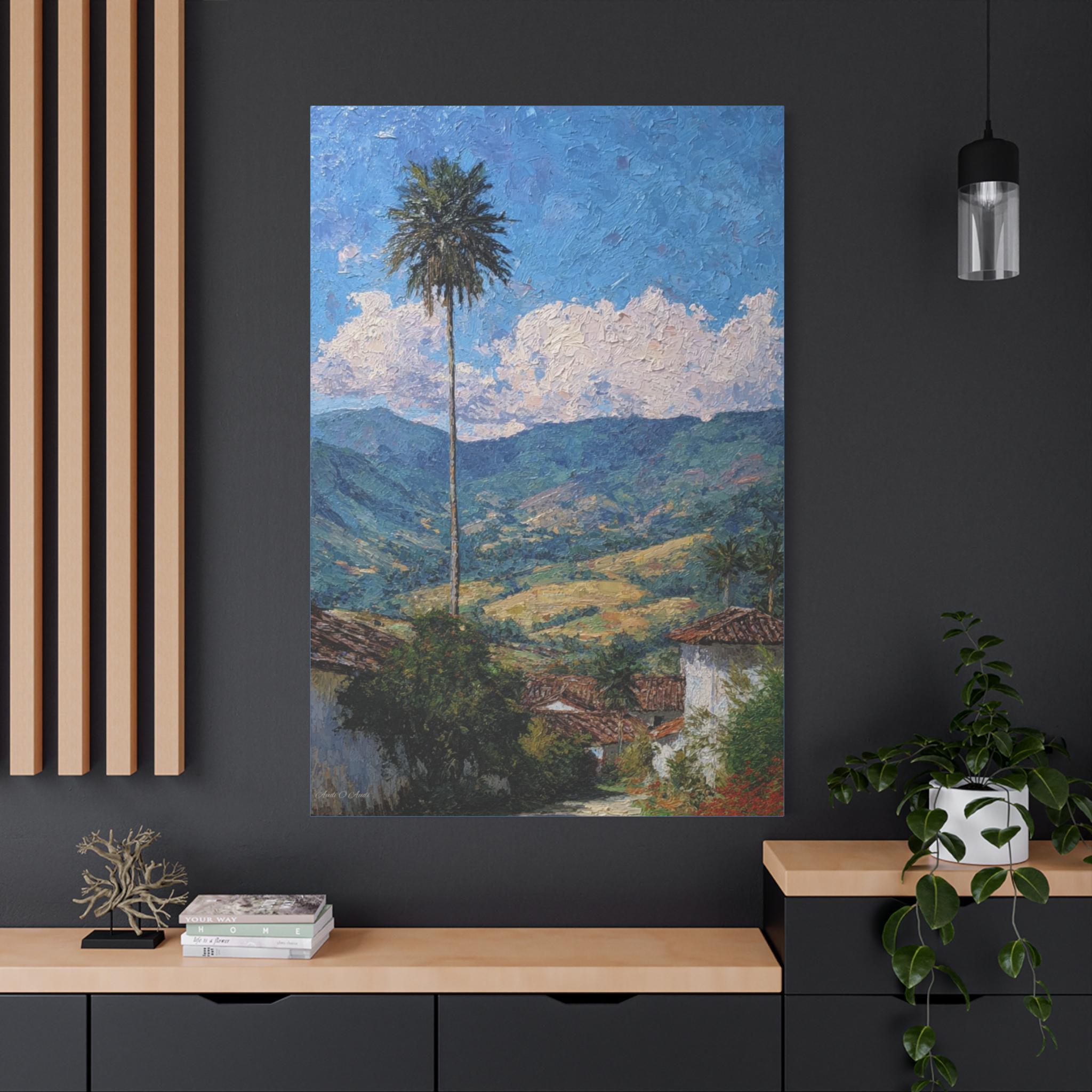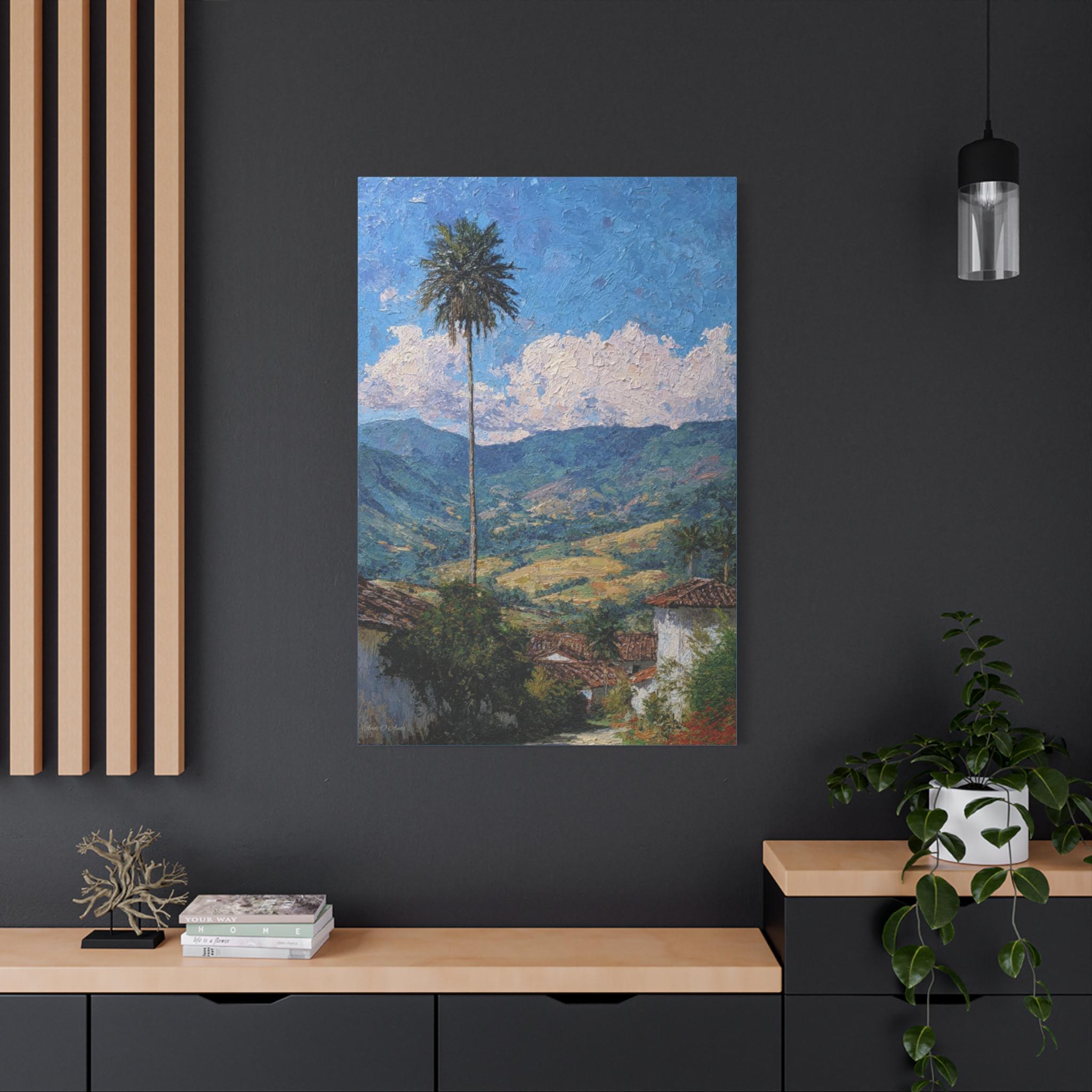 Sentinel of the Valley, Tropical Mountain Landscape Canvas Print | Matte Stretched Wall Art, Office Art, Living room Art, Textured Painting.