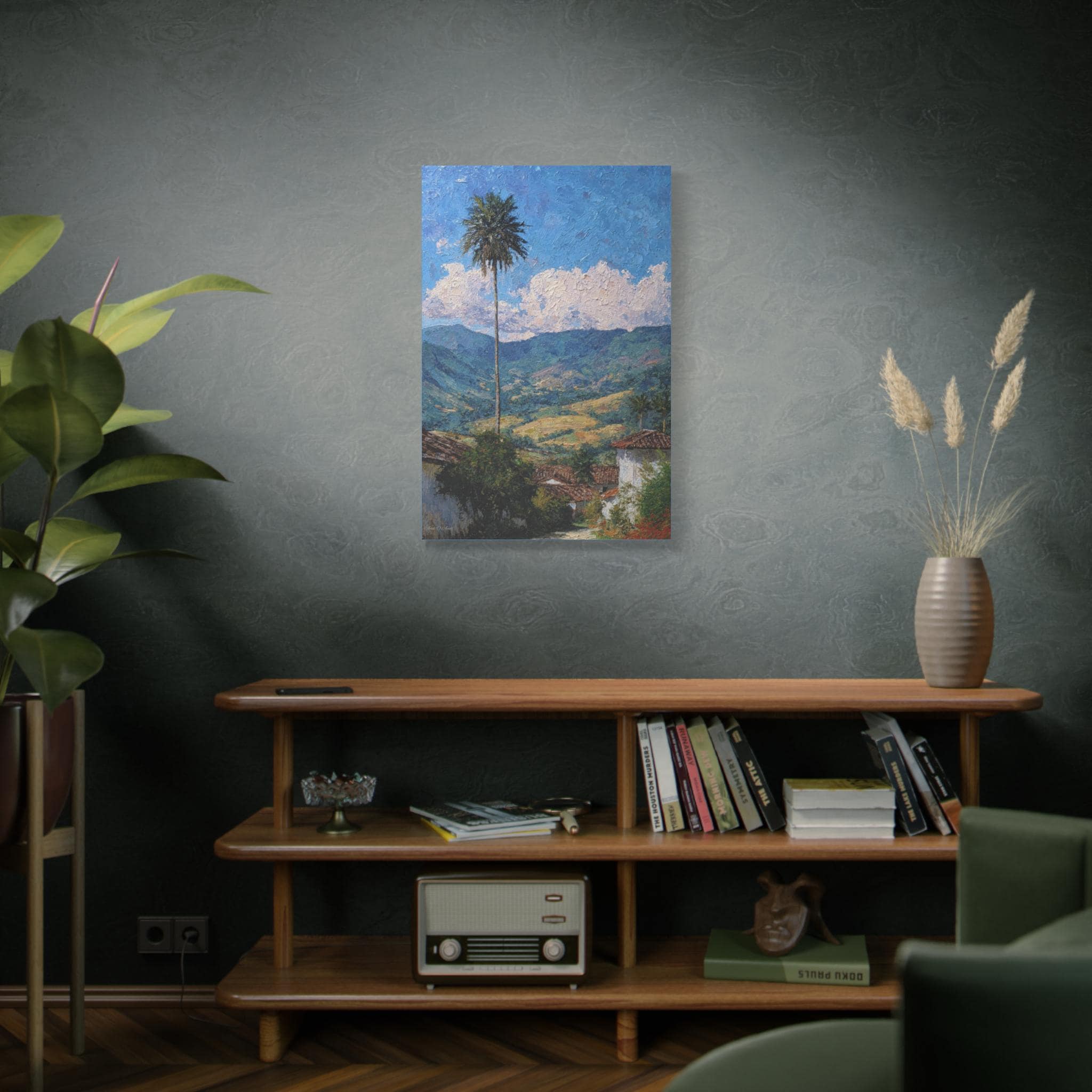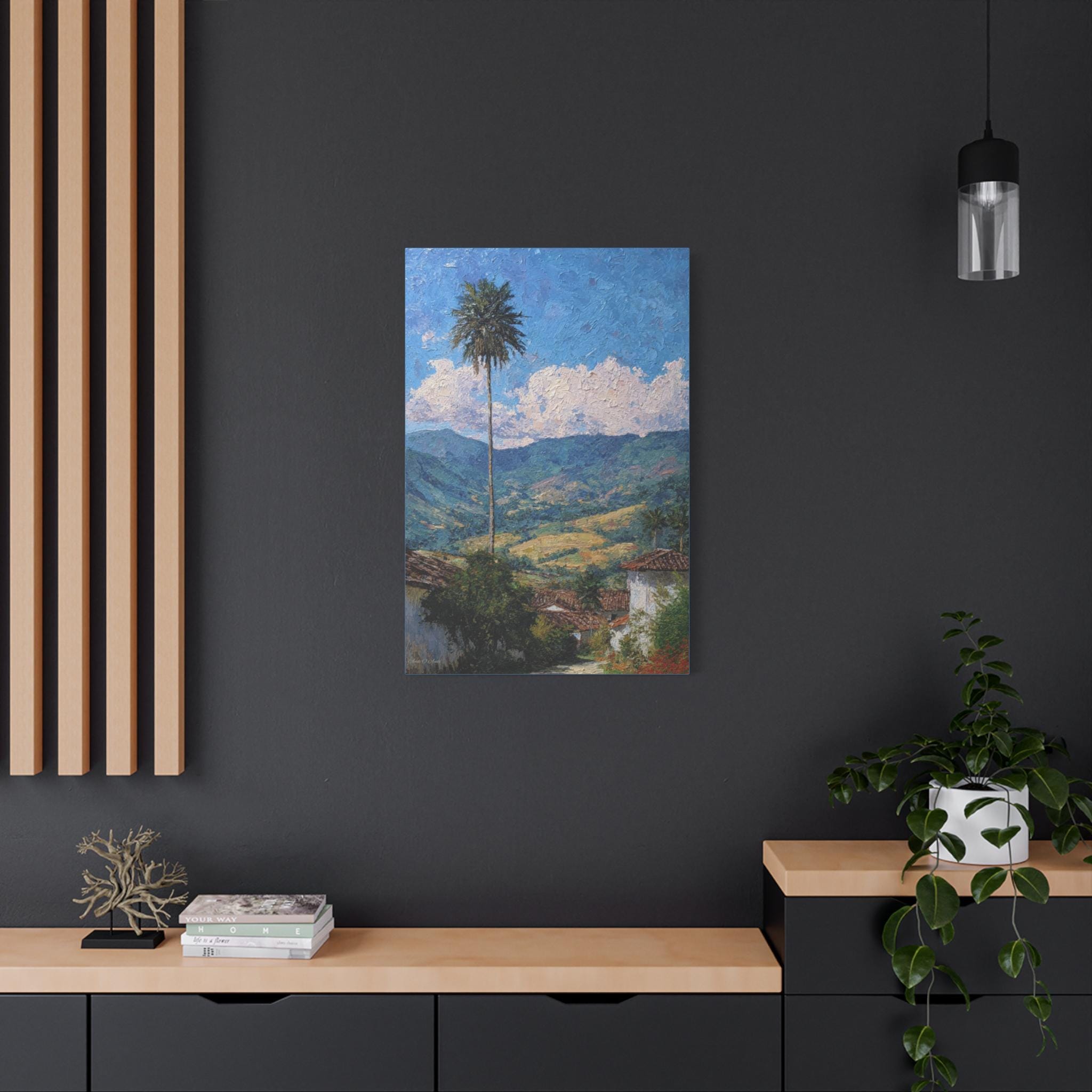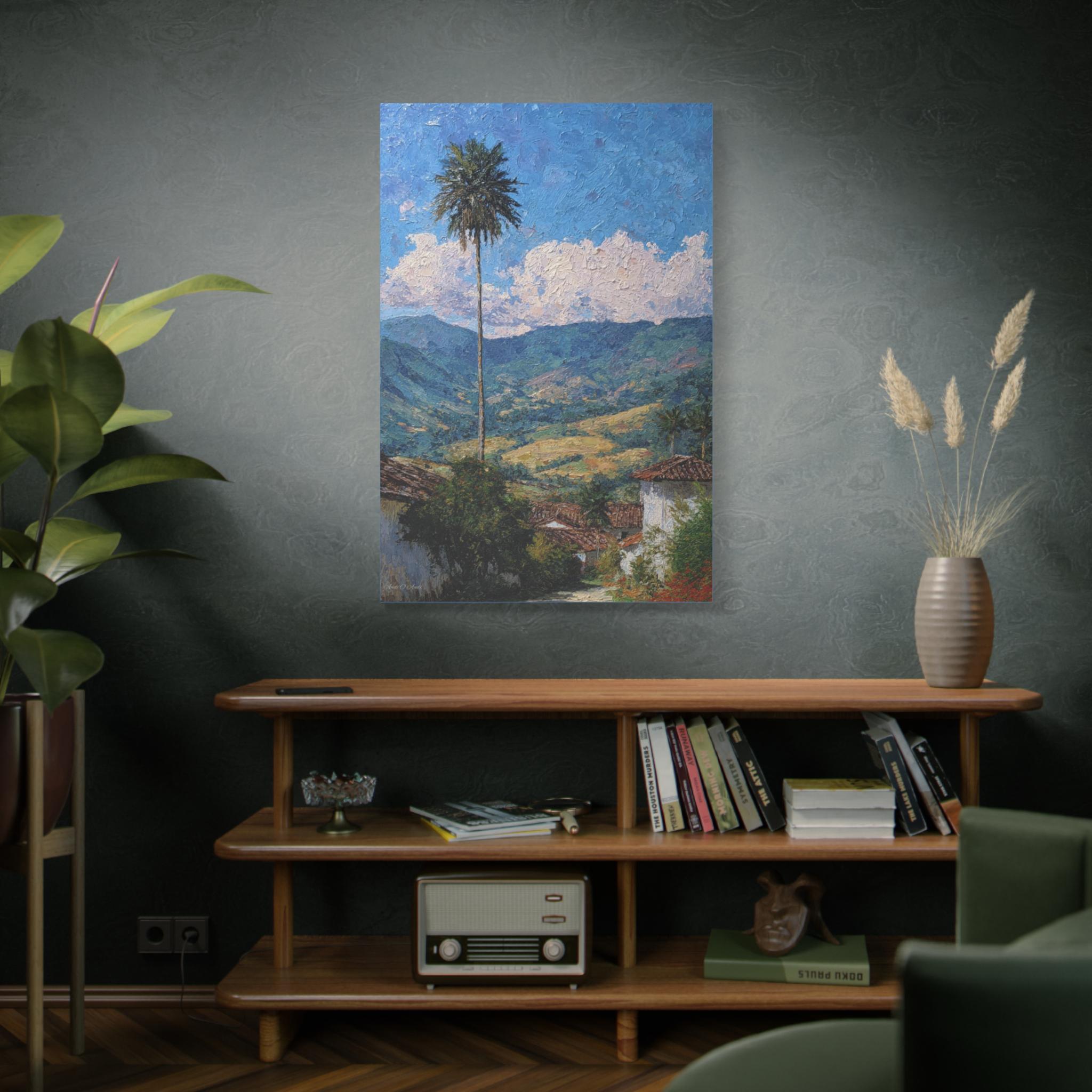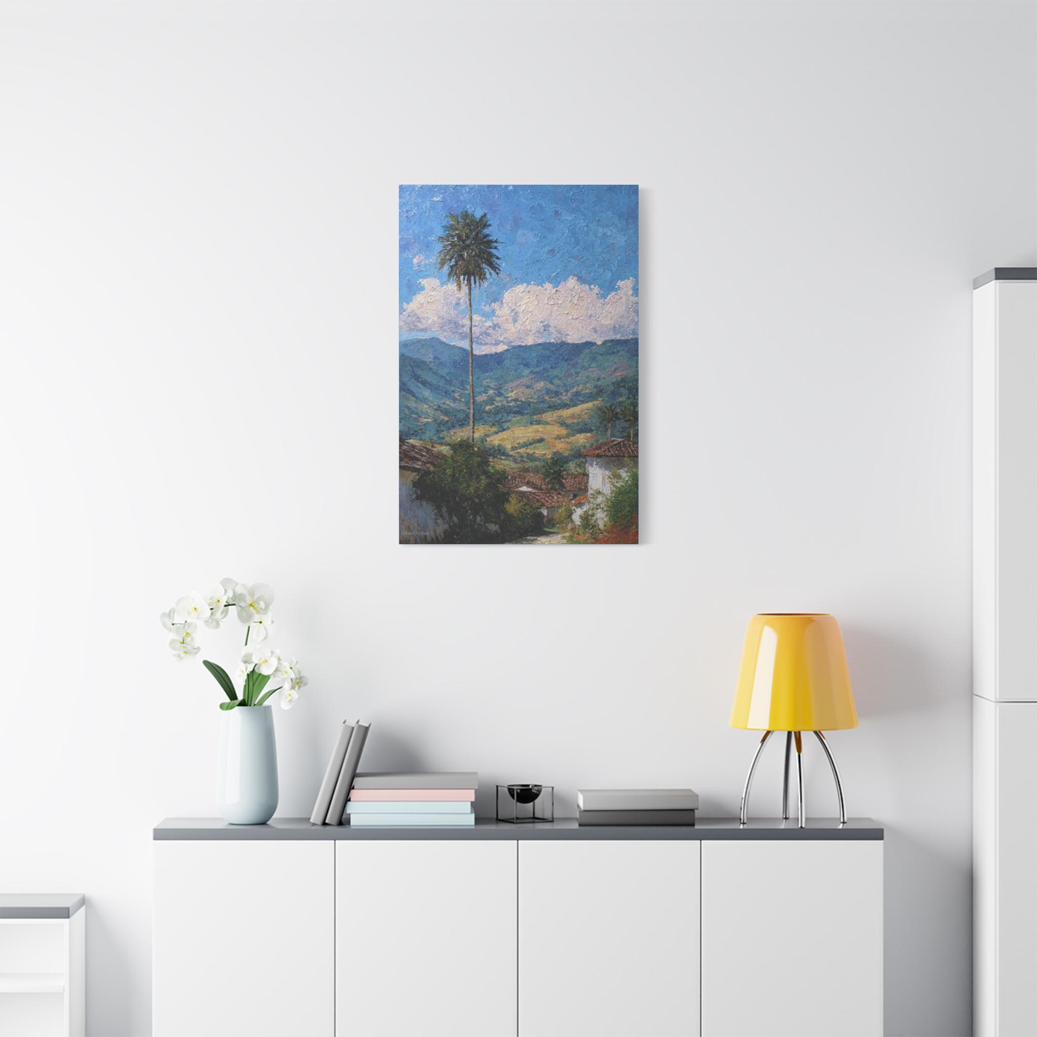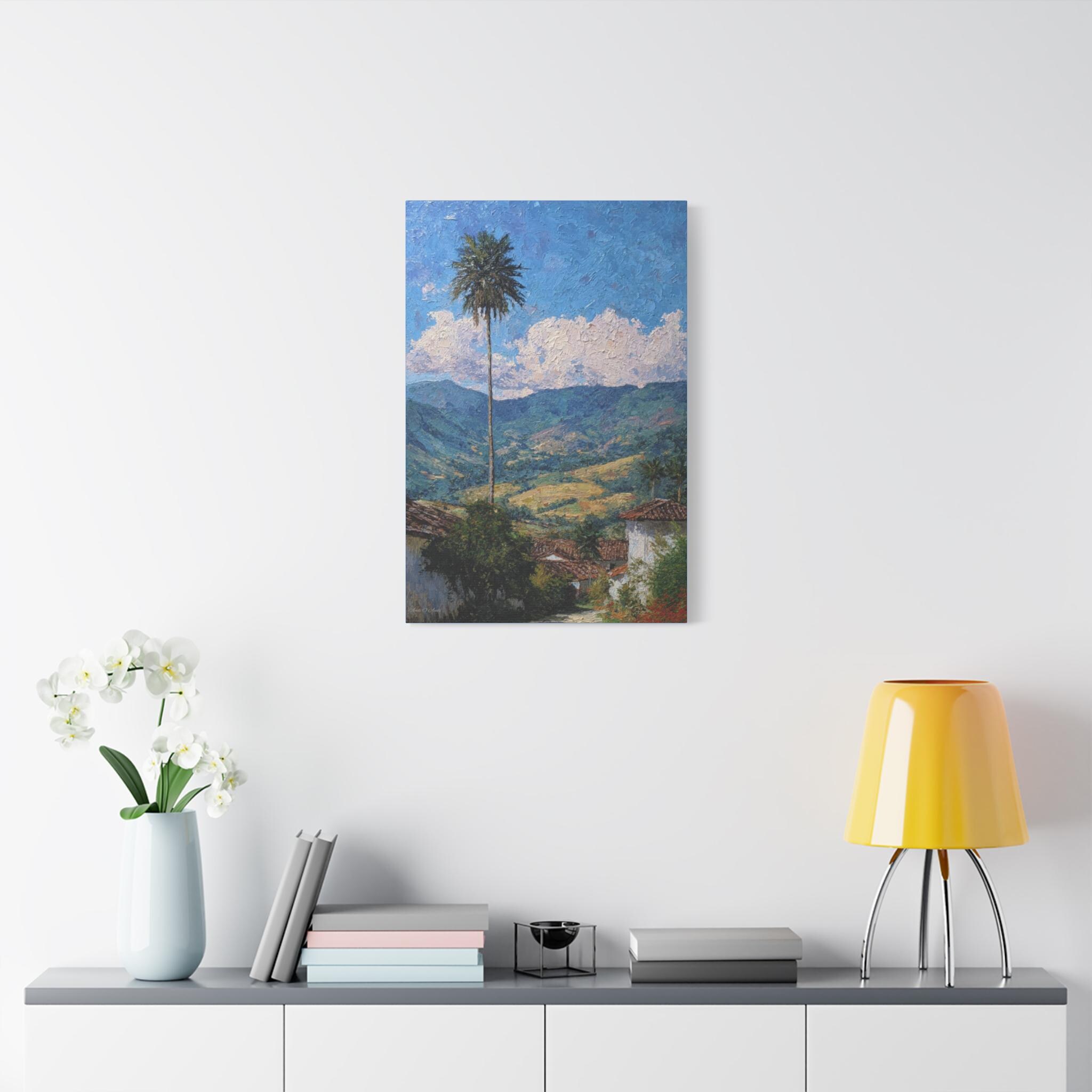 Sentinel of the Valley, Tropical Mountain Landscape Canvas Print | Matte Stretched Wall Art, Office Art, Living room Art, Textured Painting.