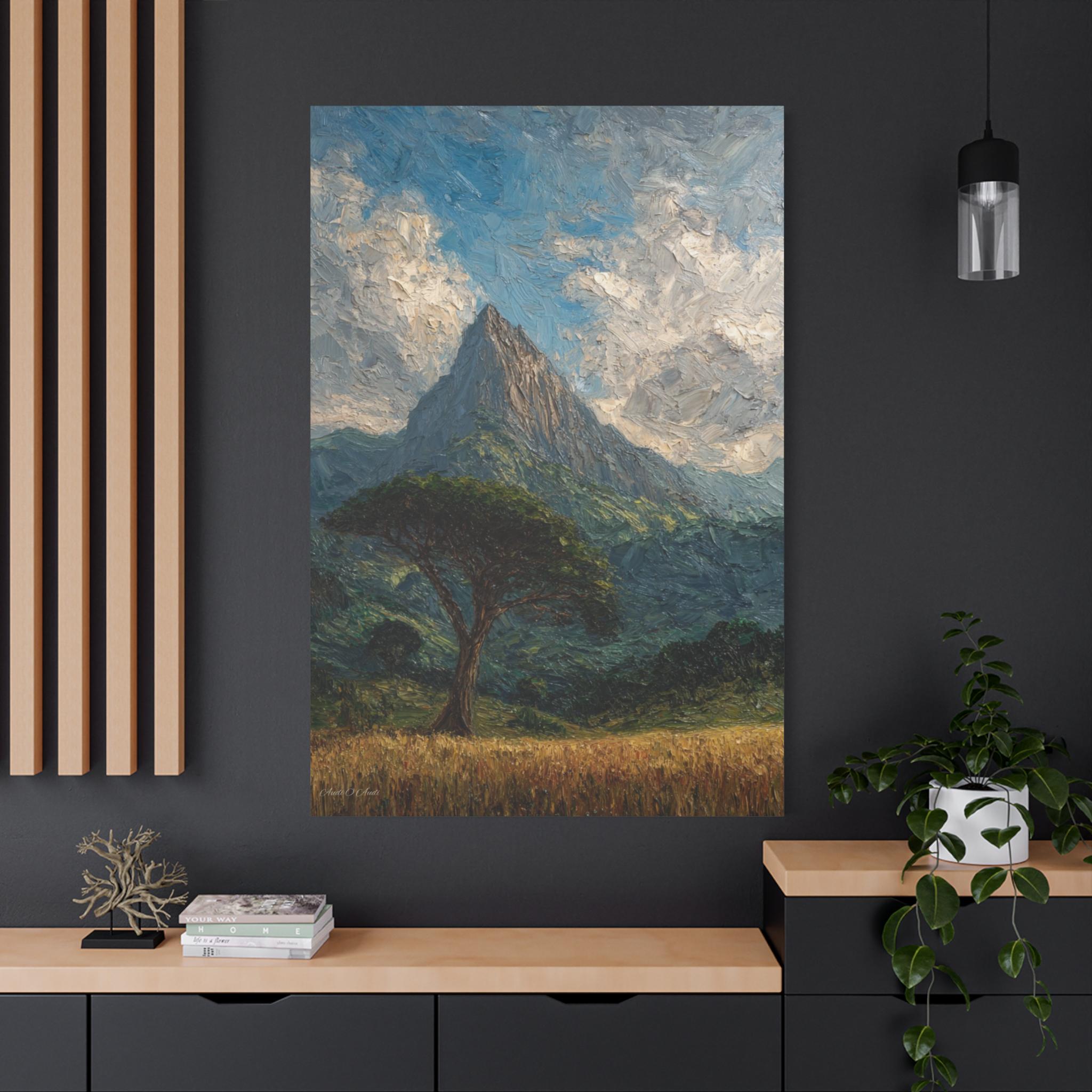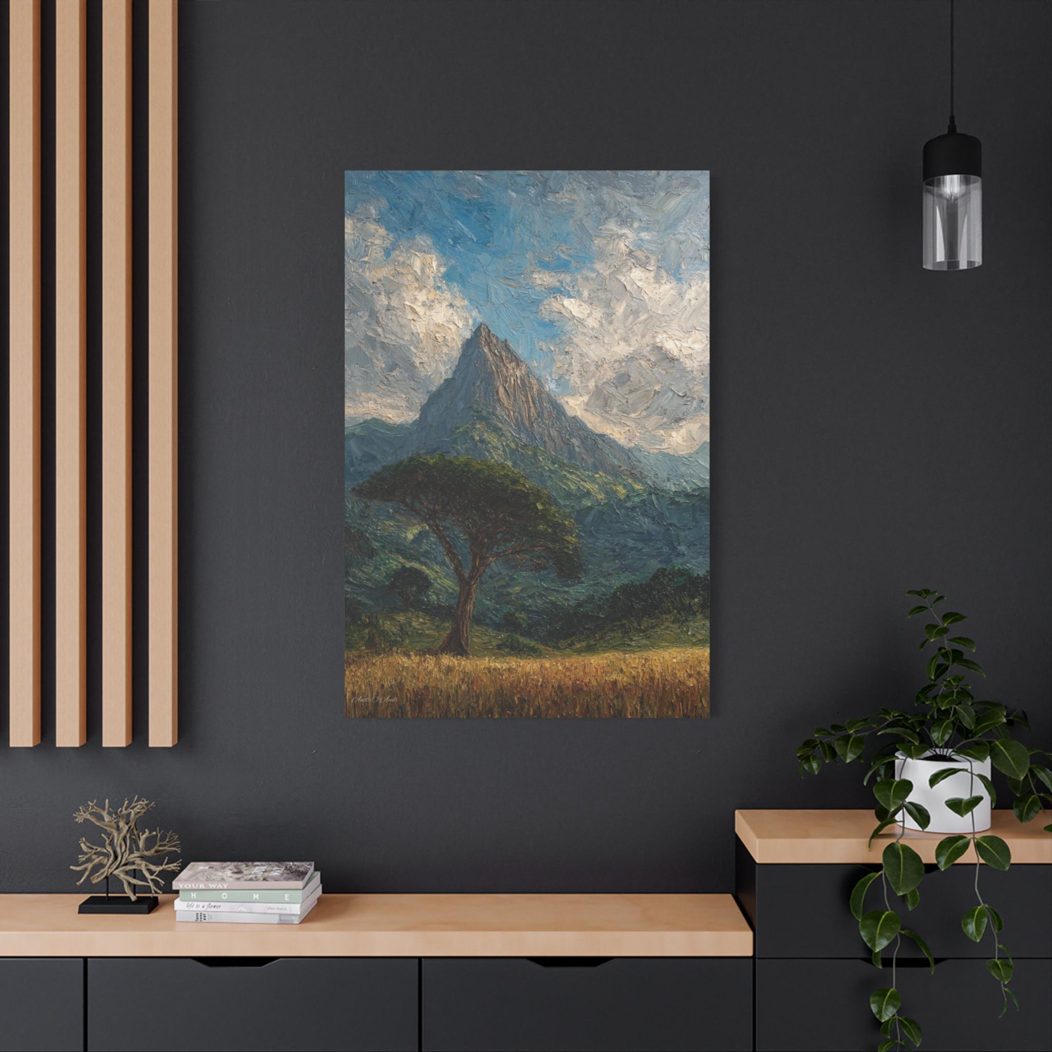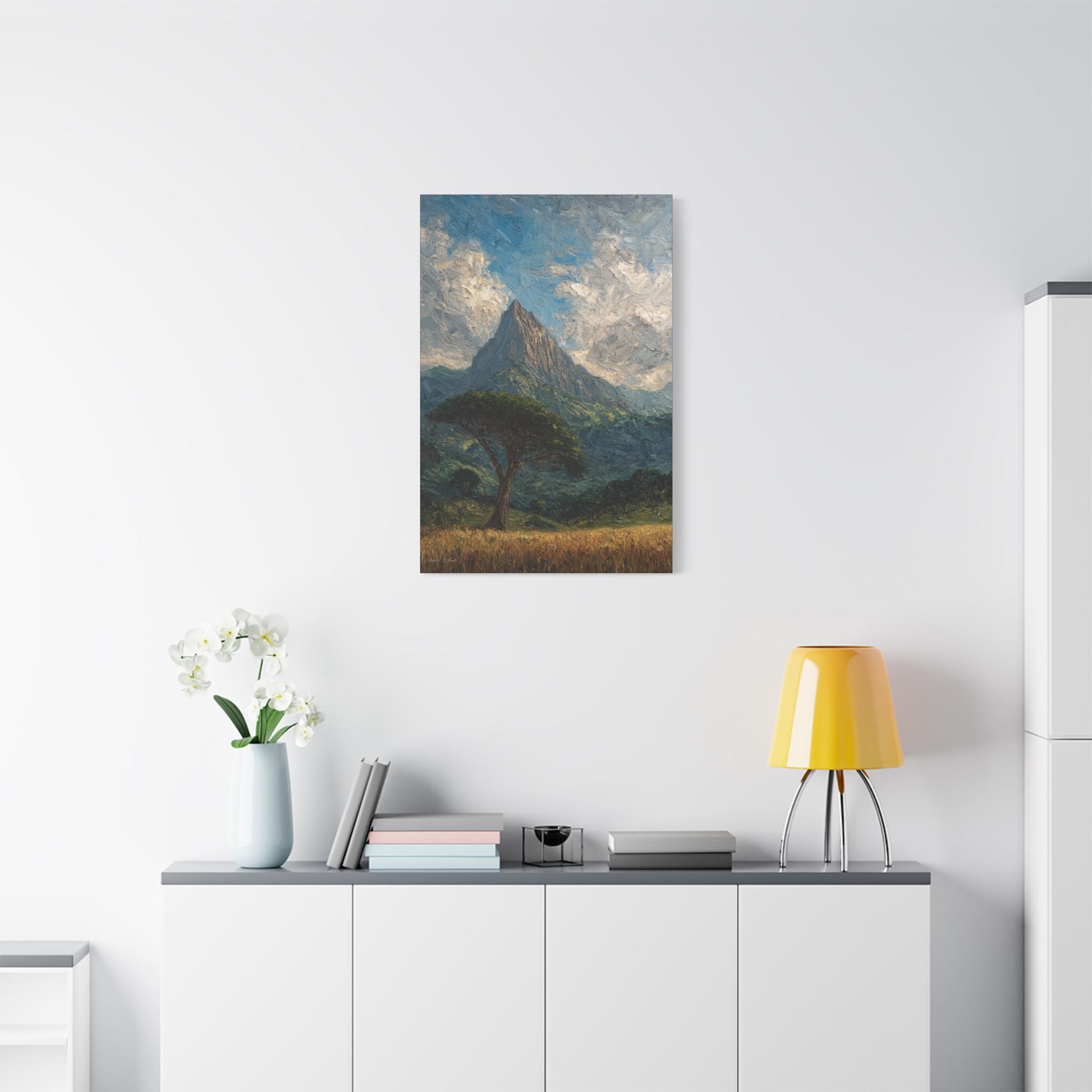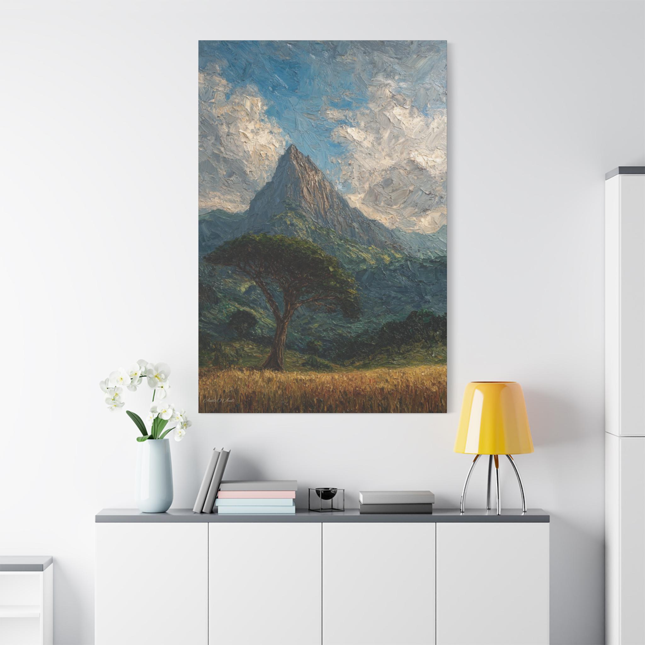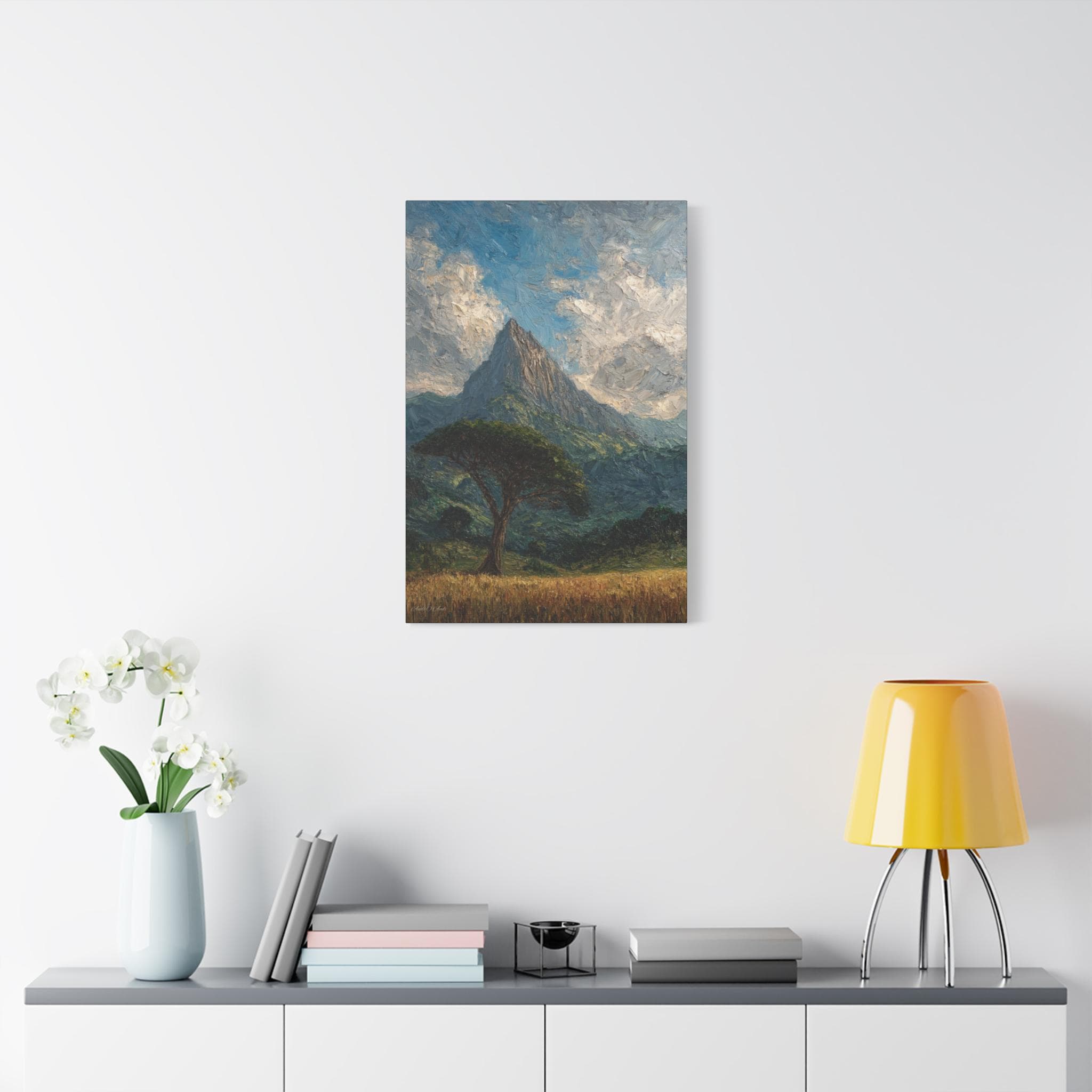 Peak of the Acacia, Mountain Landscape Matte Canvas | Stretched Wall Art, Office Art, Living Room Art, Nature Painting,Rustic Decor.