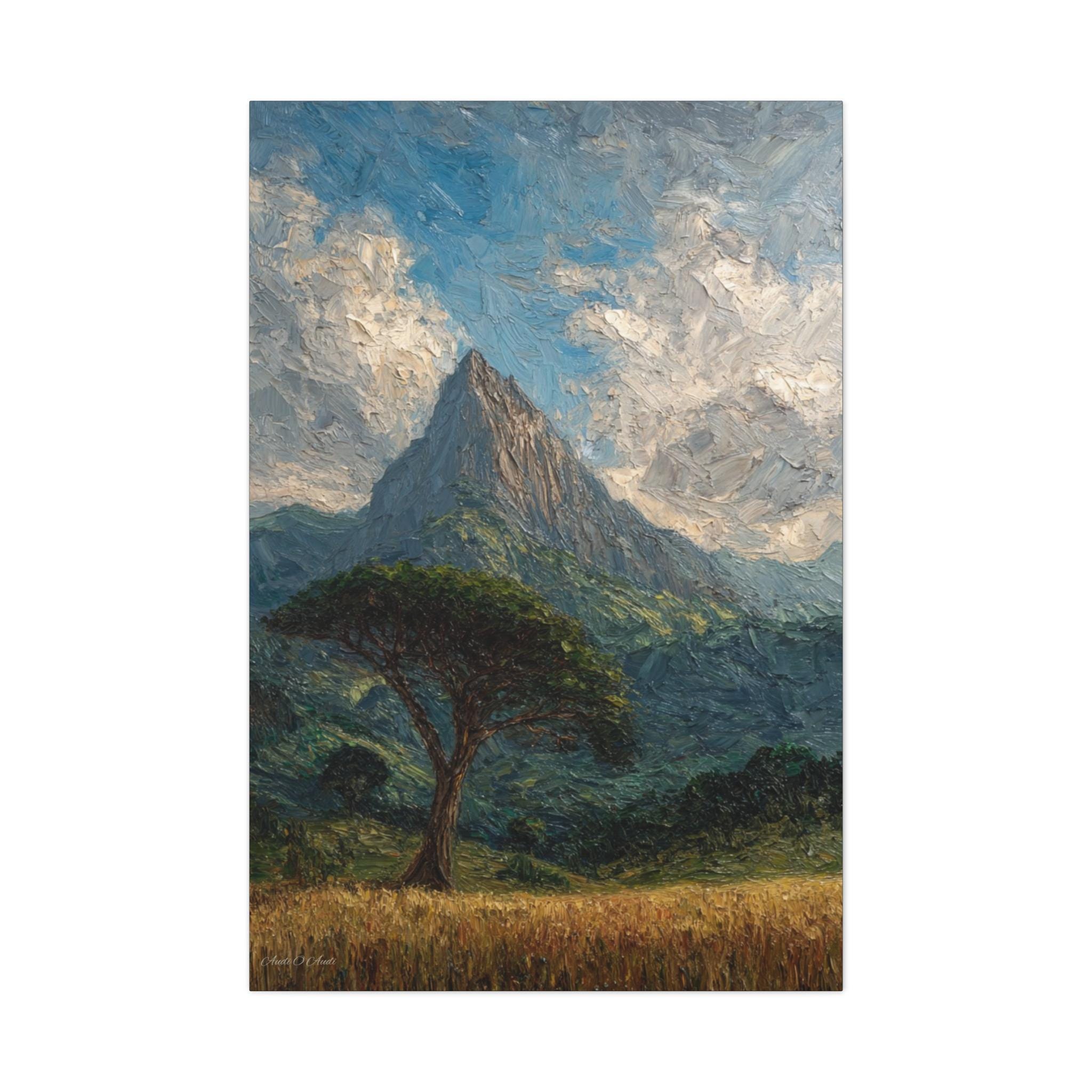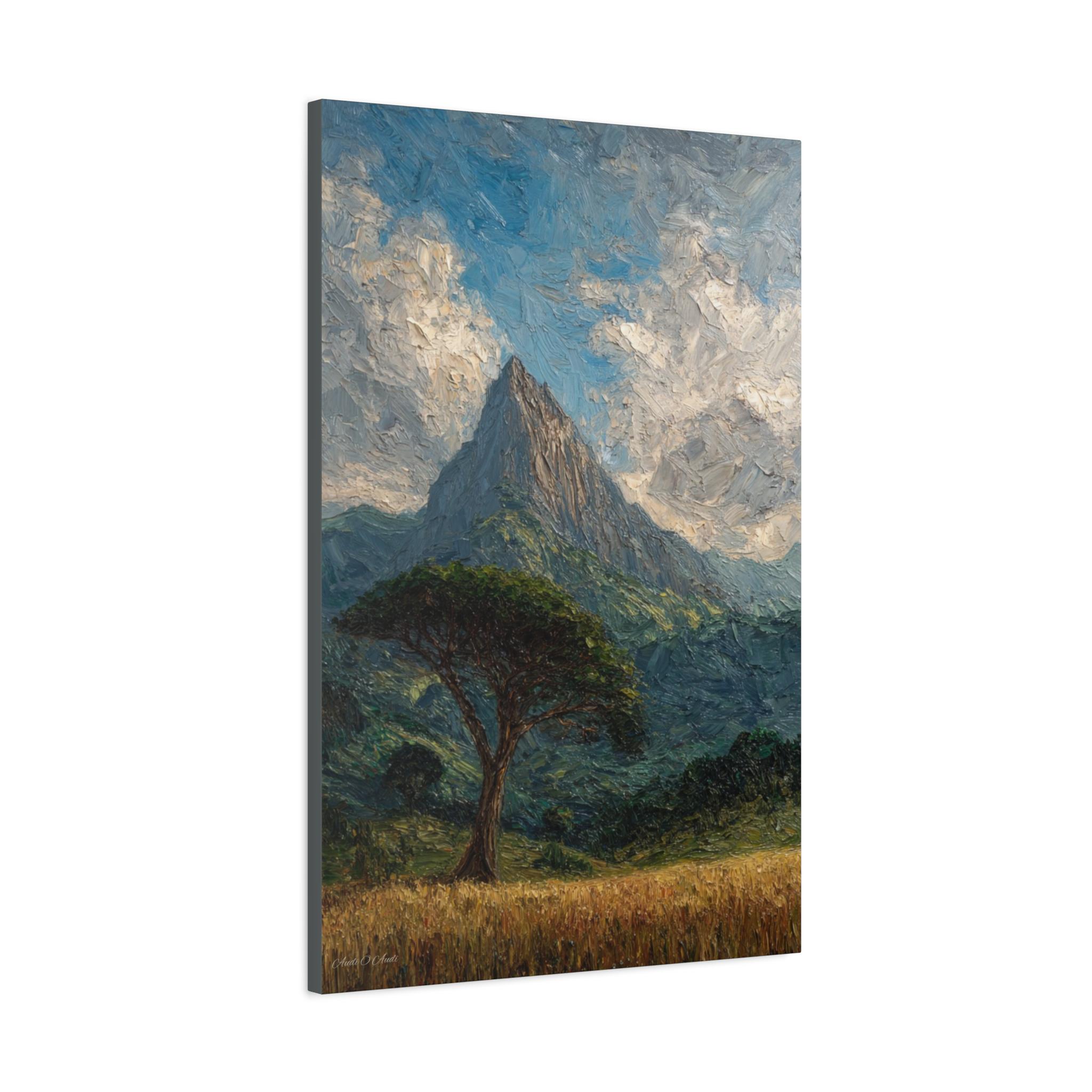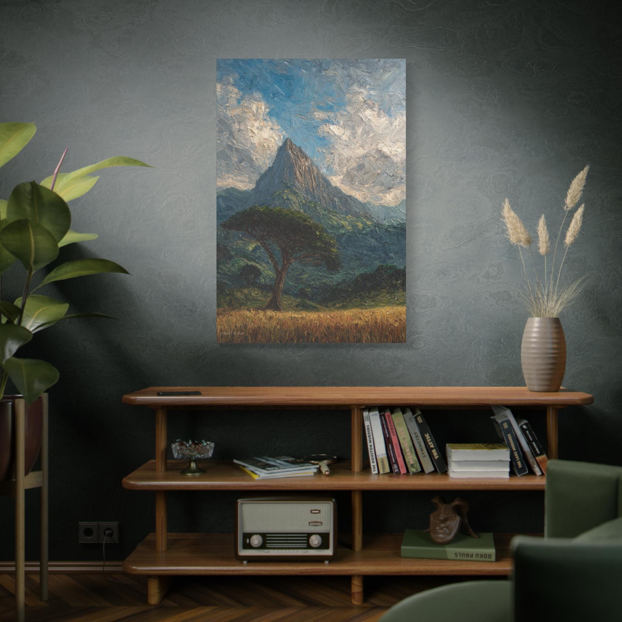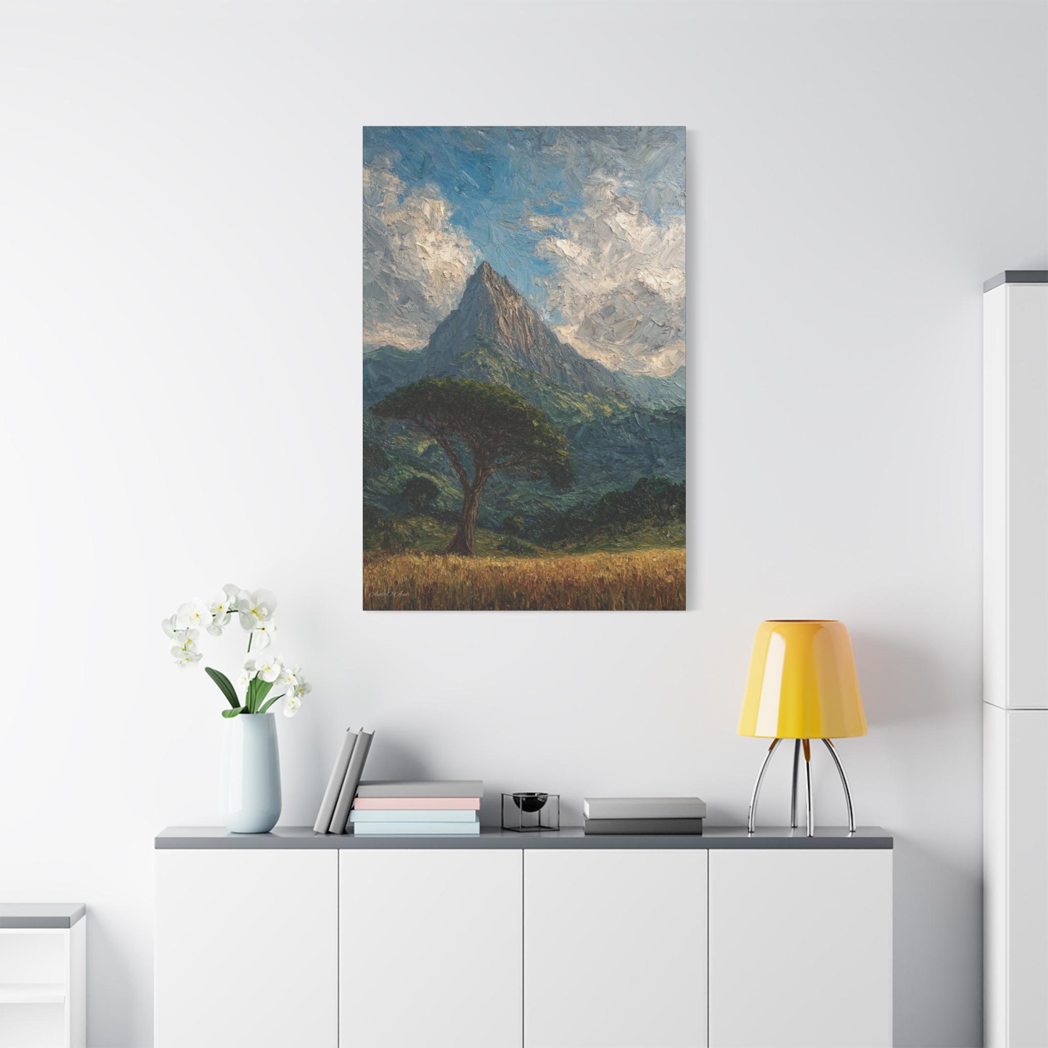 Peak of the Acacia, Mountain Landscape Matte Canvas | Stretched Wall Art, Office Art, Living Room Art, Nature Painting,Rustic Decor.