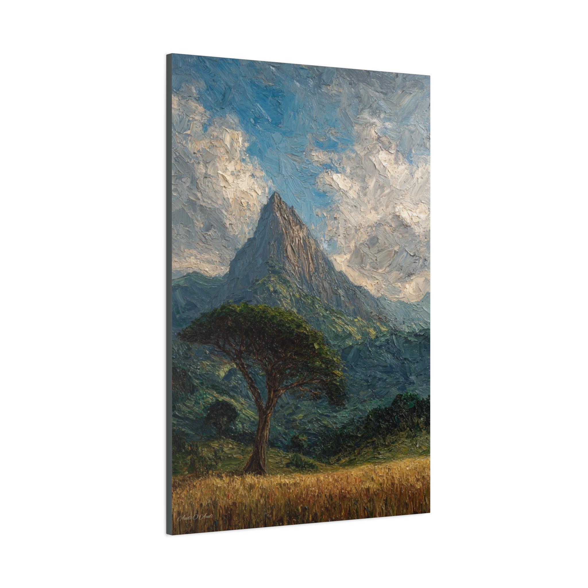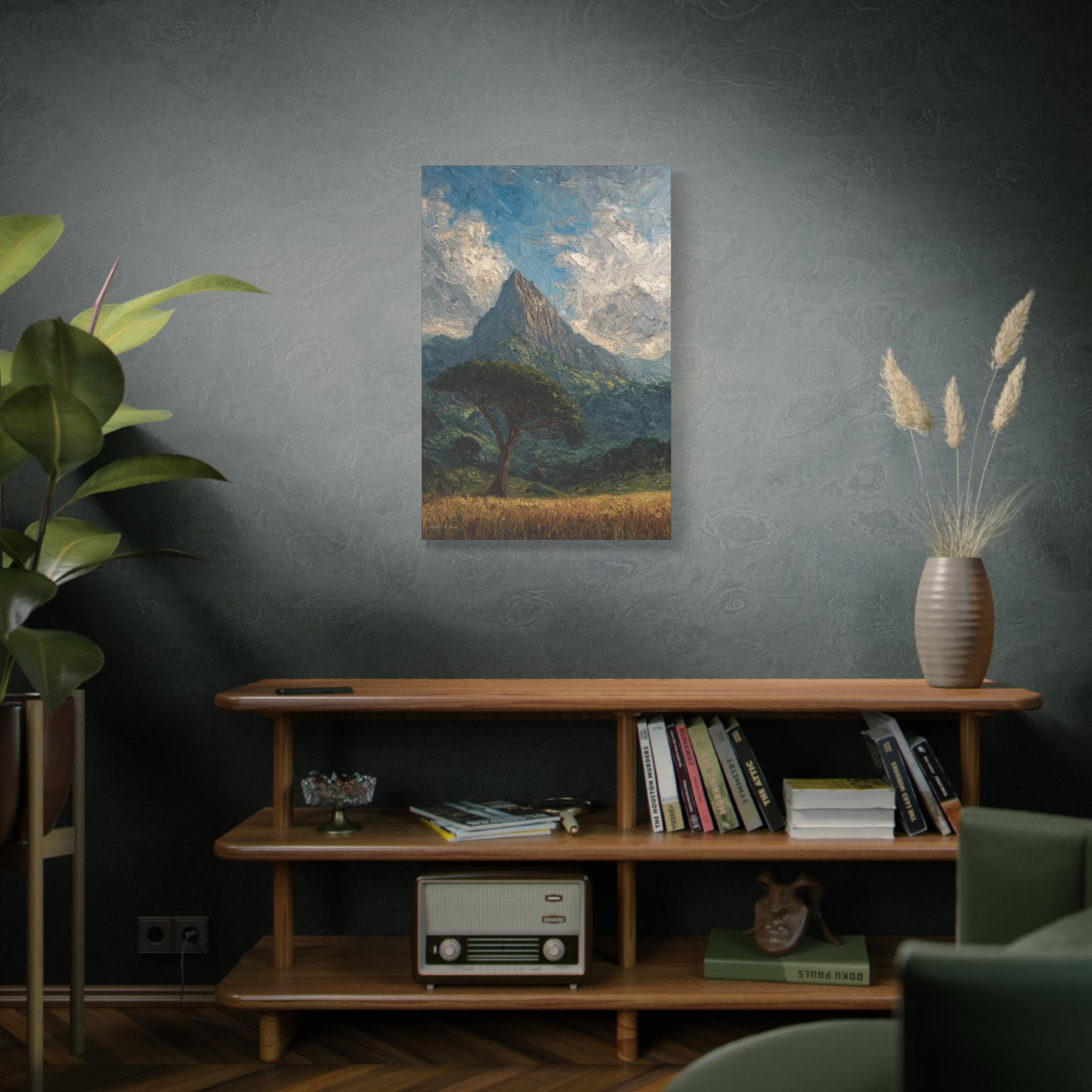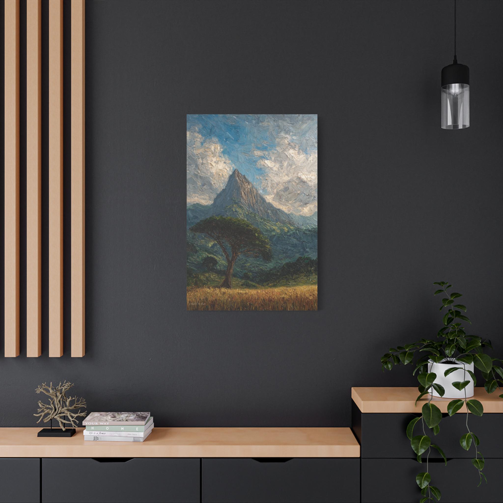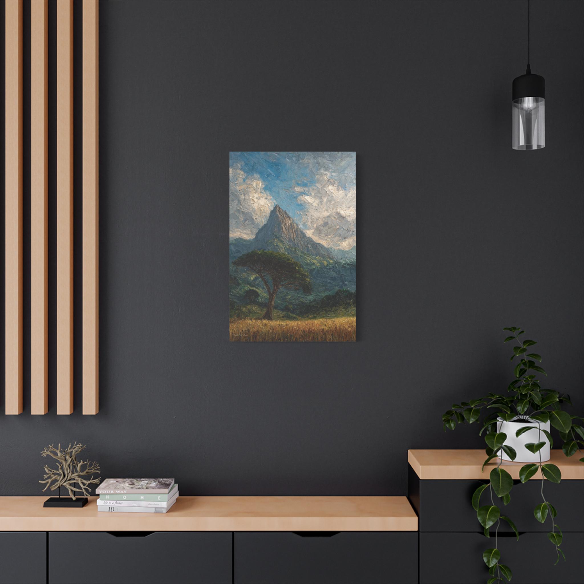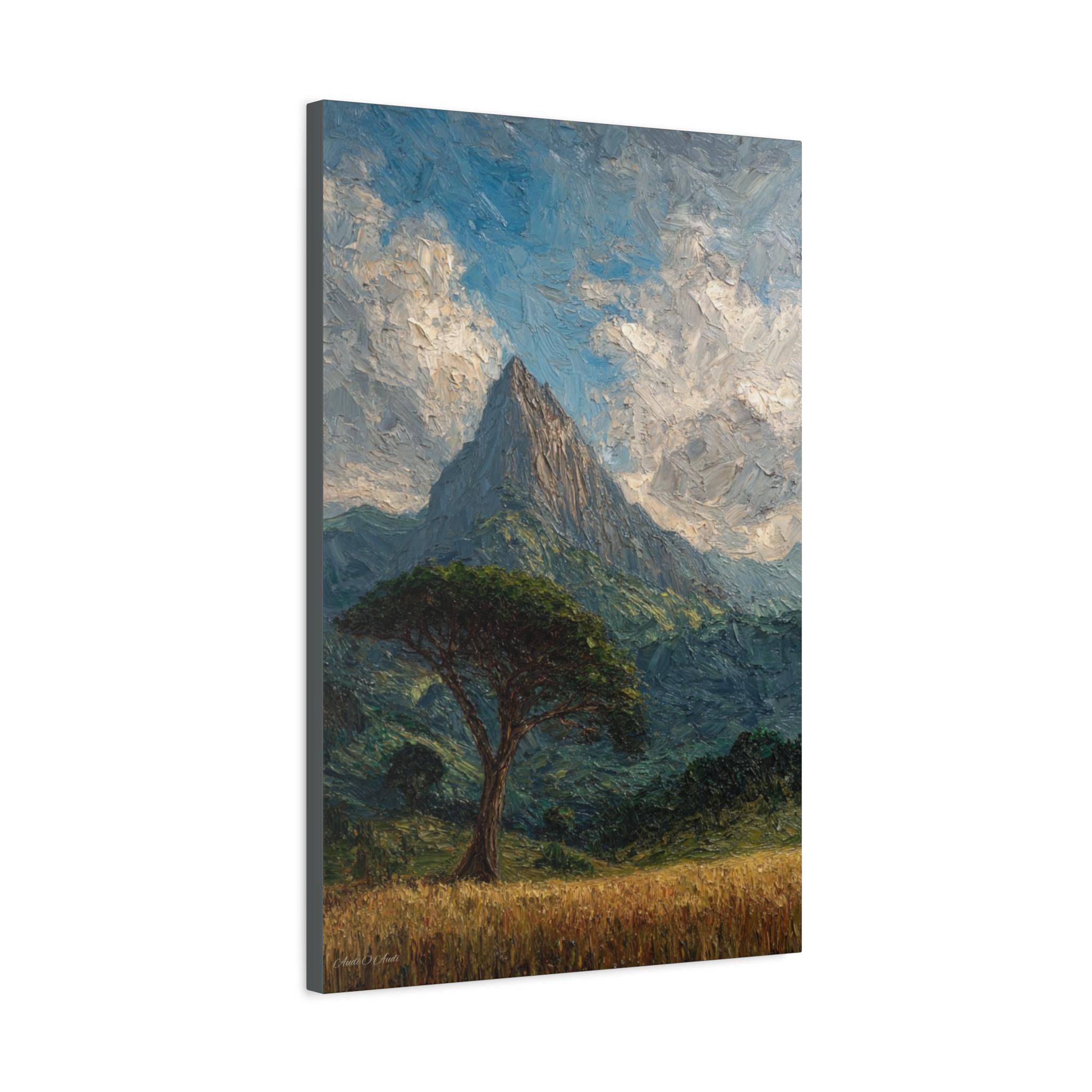 Peak of the Acacia, Mountain Landscape Matte Canvas | Stretched Wall Art, Office Art, Living Room Art, Nature Painting,Rustic Decor.