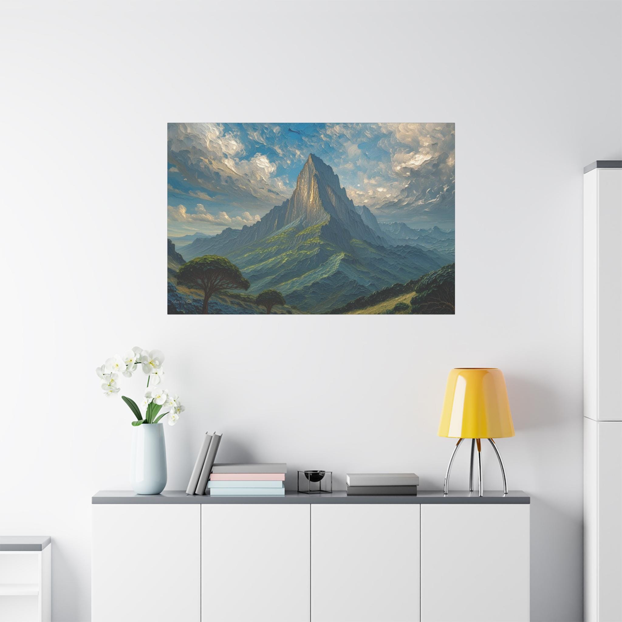 Apotheosis Peak, Majestic Mountain Landscape Matte Canvas Print, Mountain Decor, Office Wall Art, Scenic Canvas.