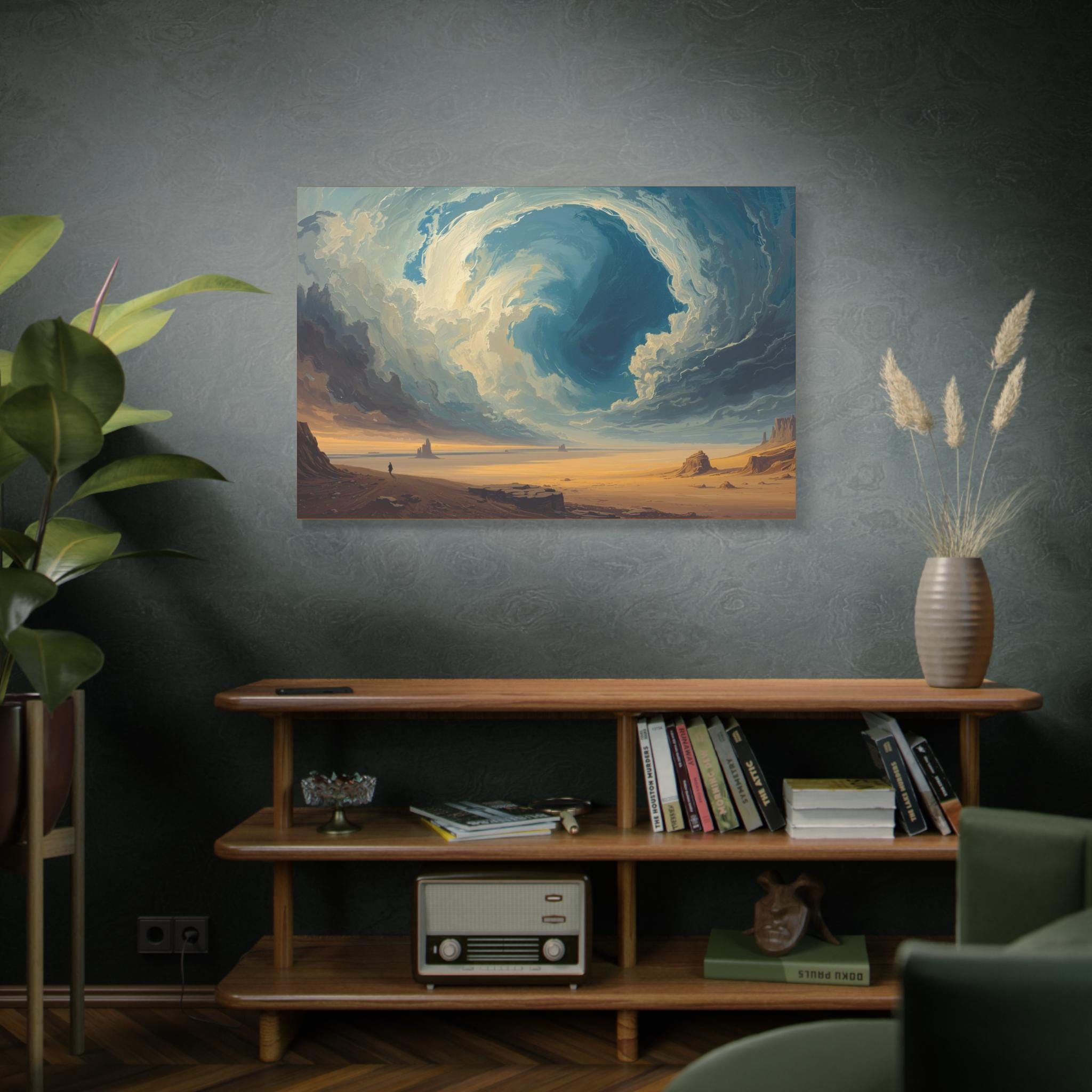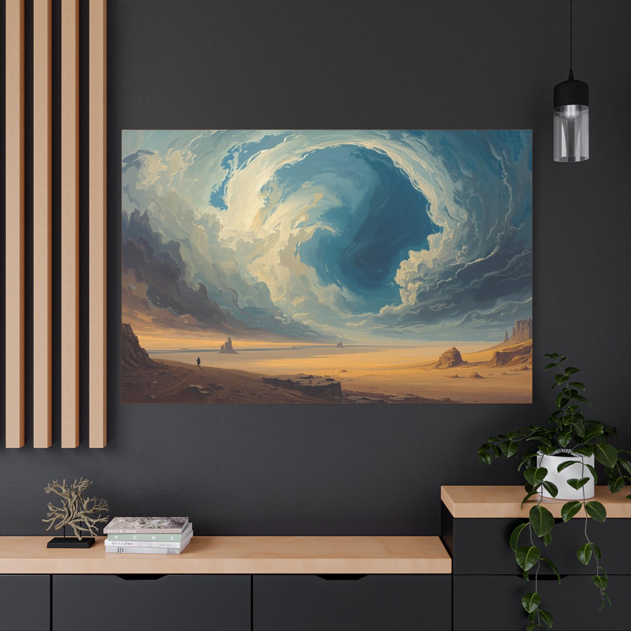Vortex of the Solstice, Cloud Vortex Landscape Matte Canvas Print , Stretched Wall Art | Surreal Sky Desert Scene, Dreamy Wall Art.