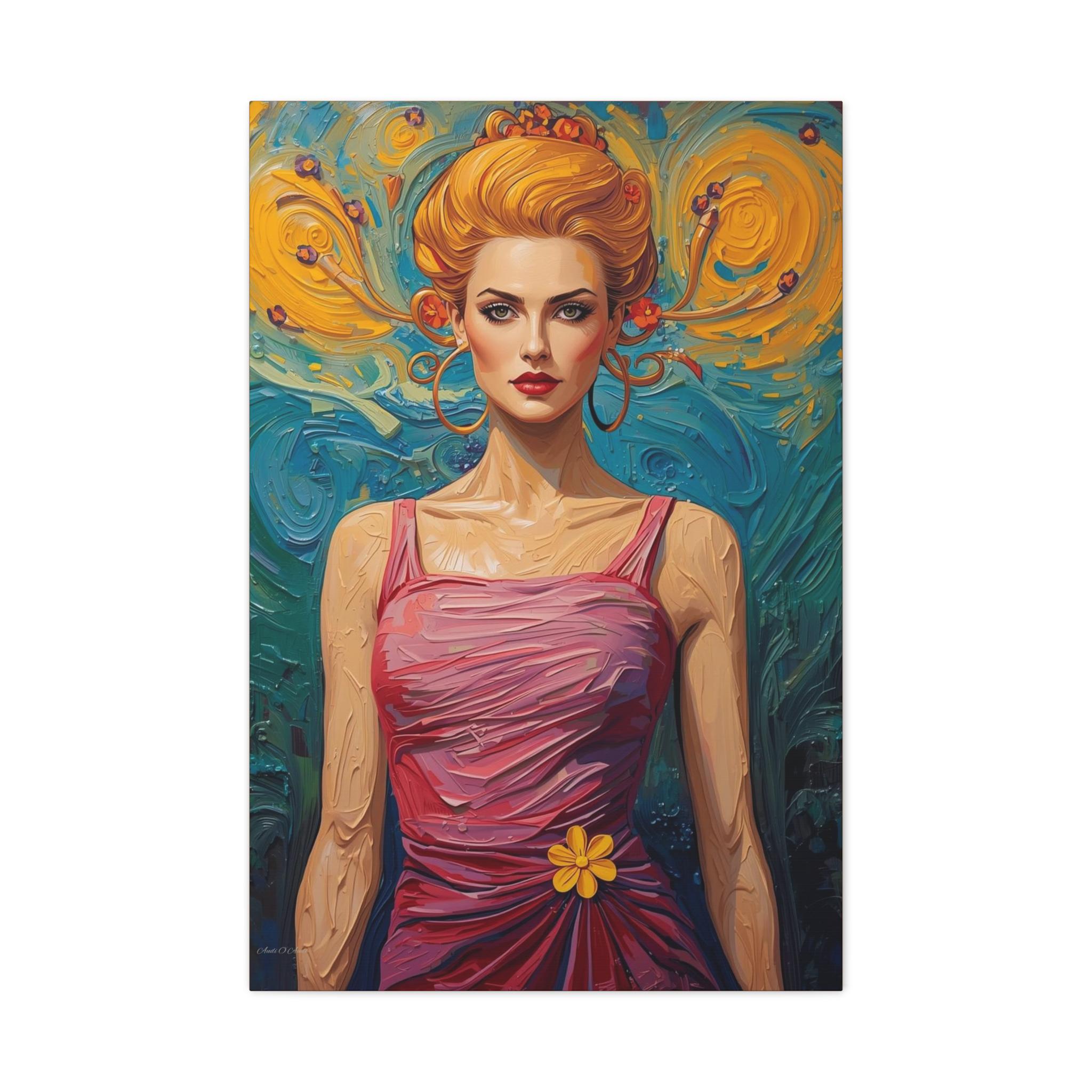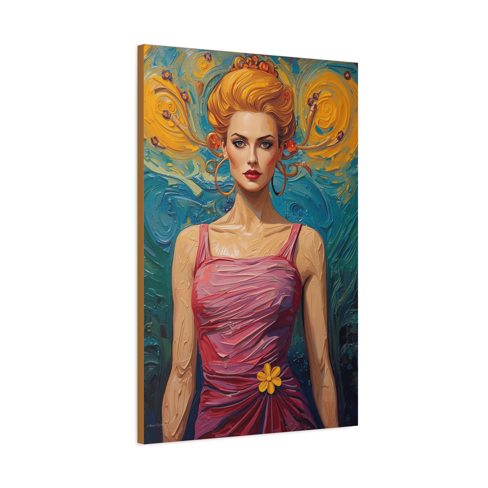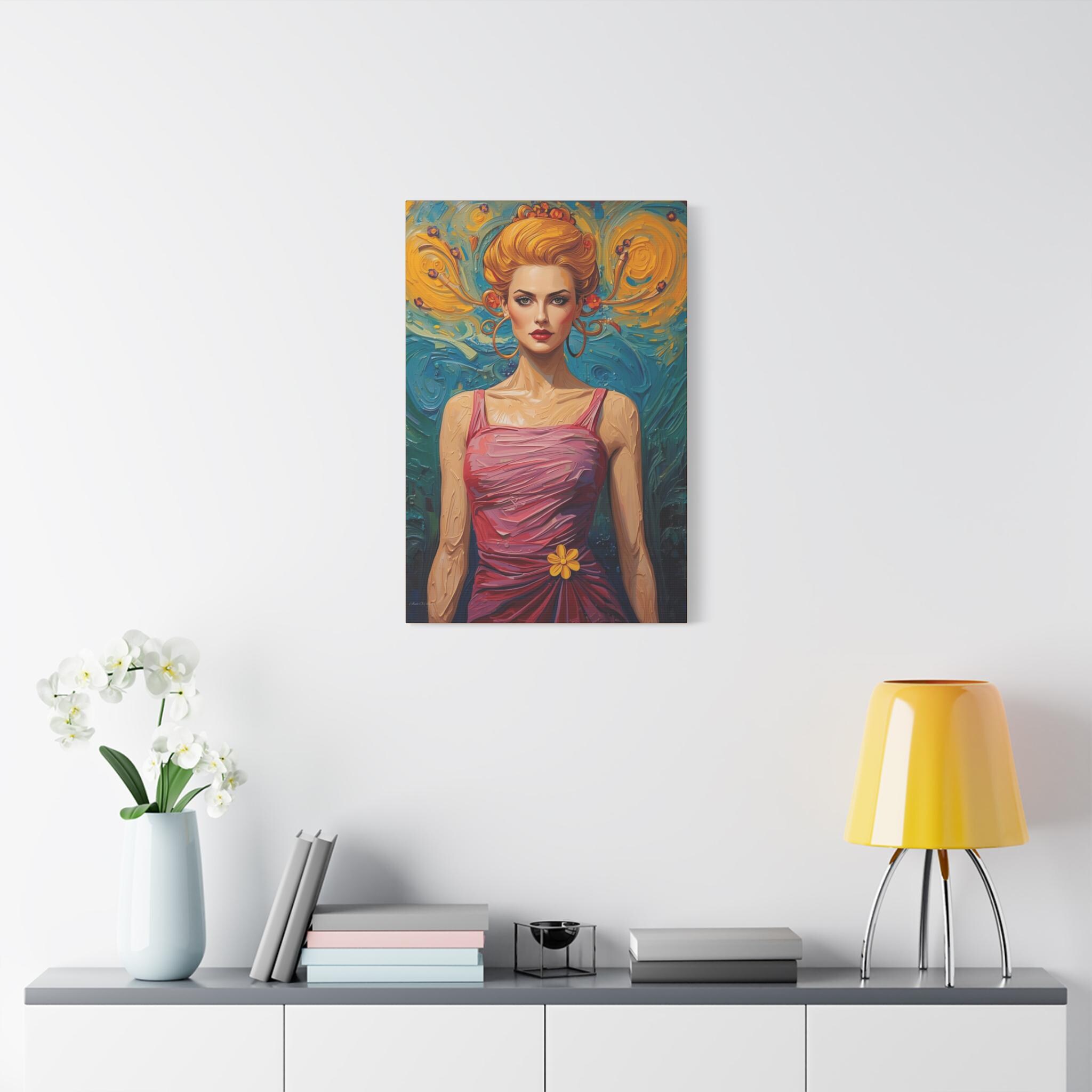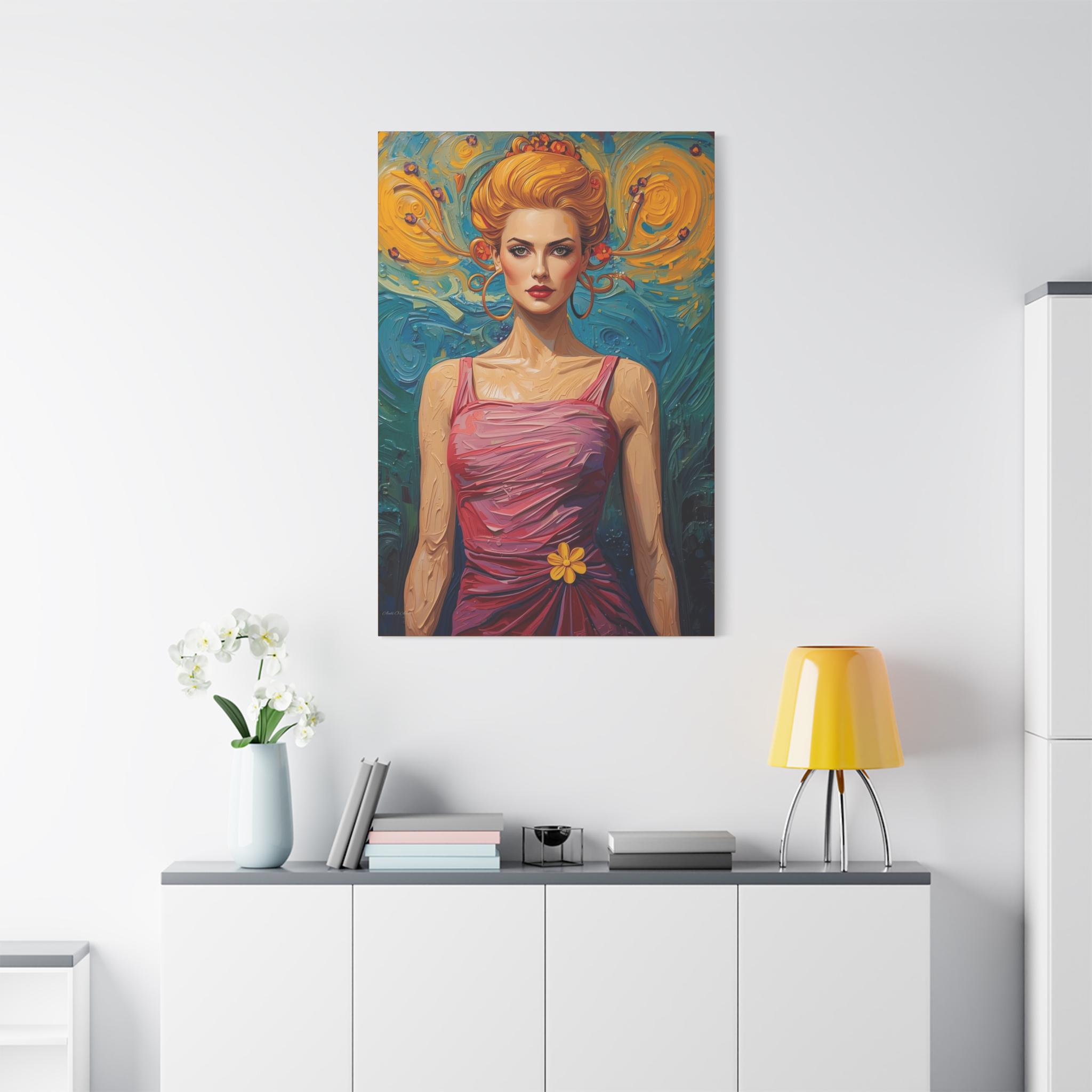 Fiori d'Oro, Retro, Portrait Woman Matte Canvas Print, Stretched Canvas, Contemporary Art, Boho Decor, Living Room Art, Office Art.