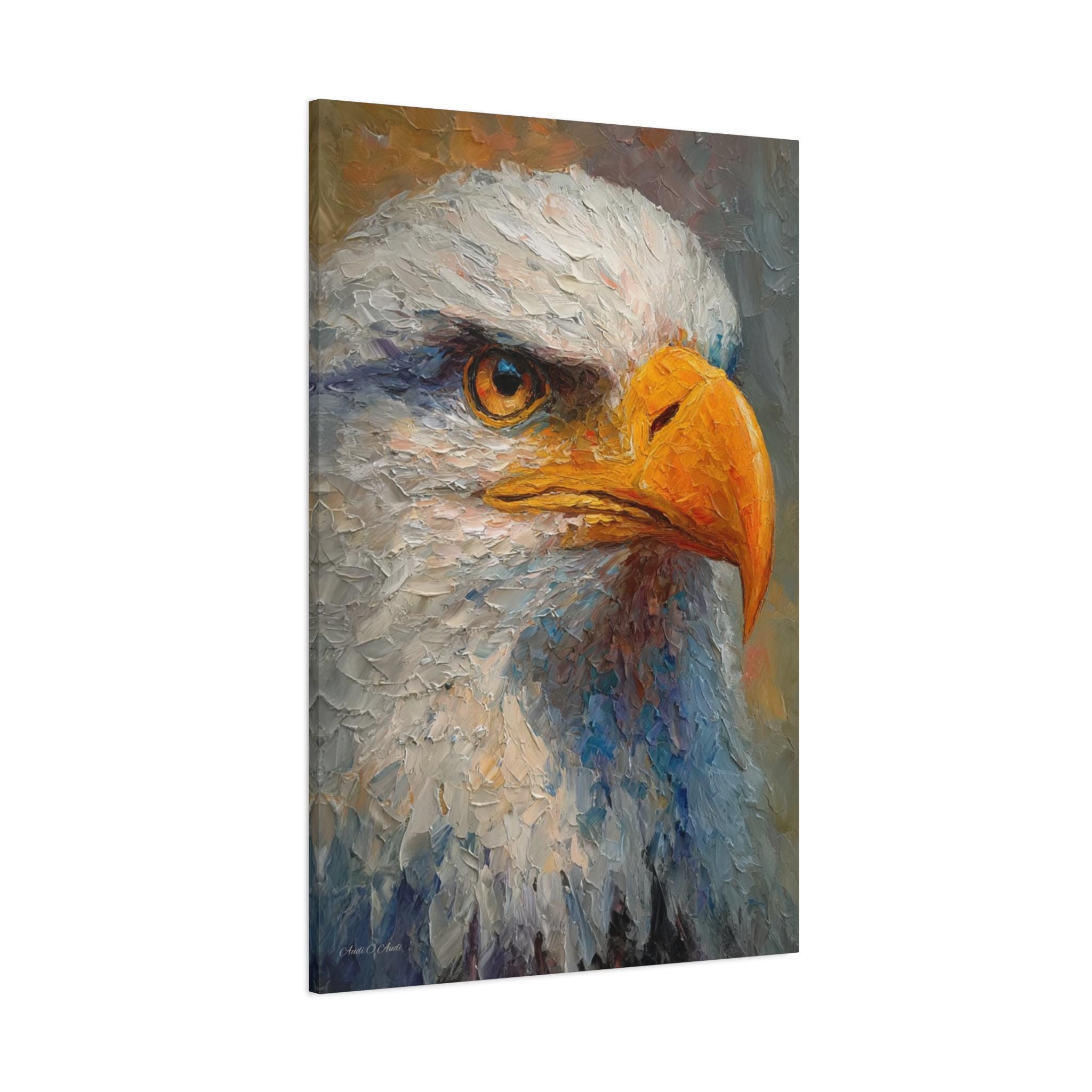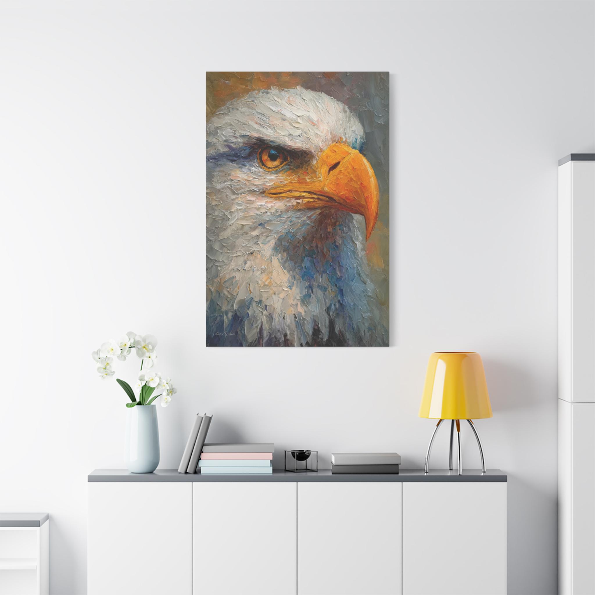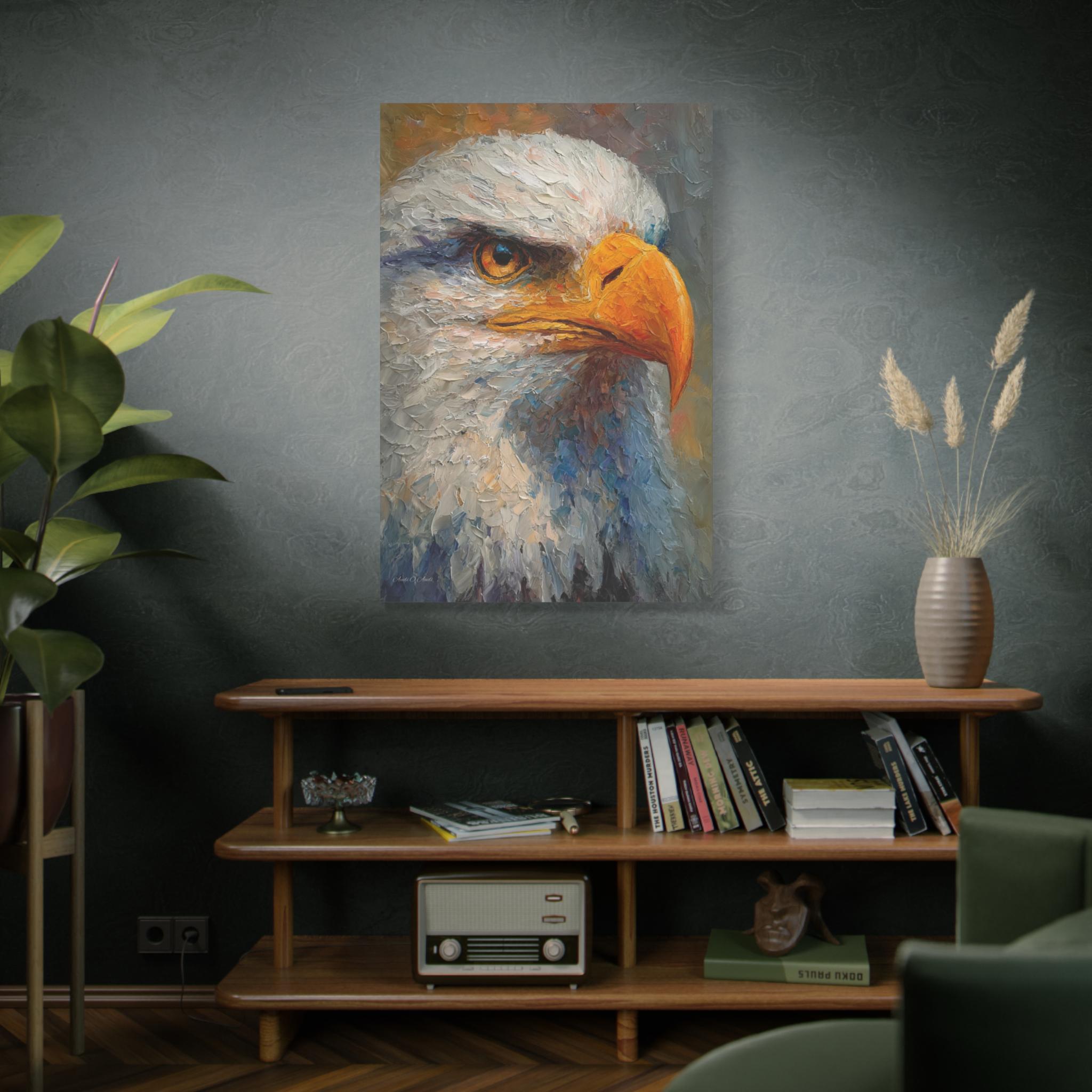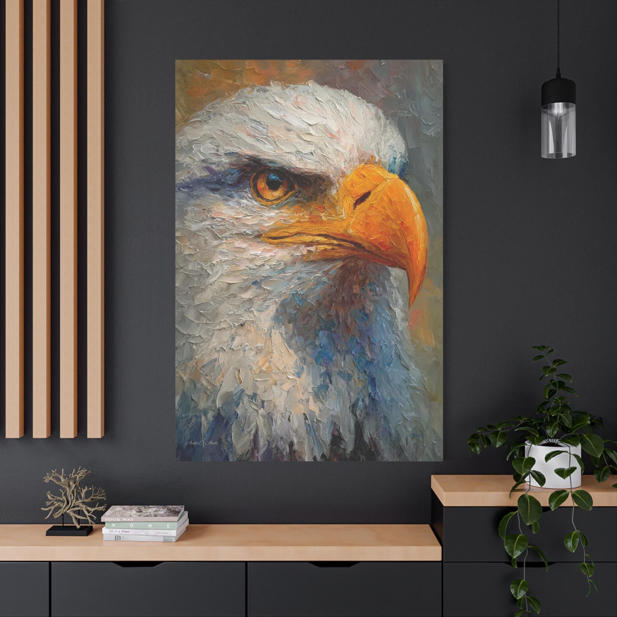 Vigilance in Impasto, Bald Eagle Portrait Matte Canvas Print, Nature Canvas, Wildlife, office Wall Art, Rustic Wall Art.