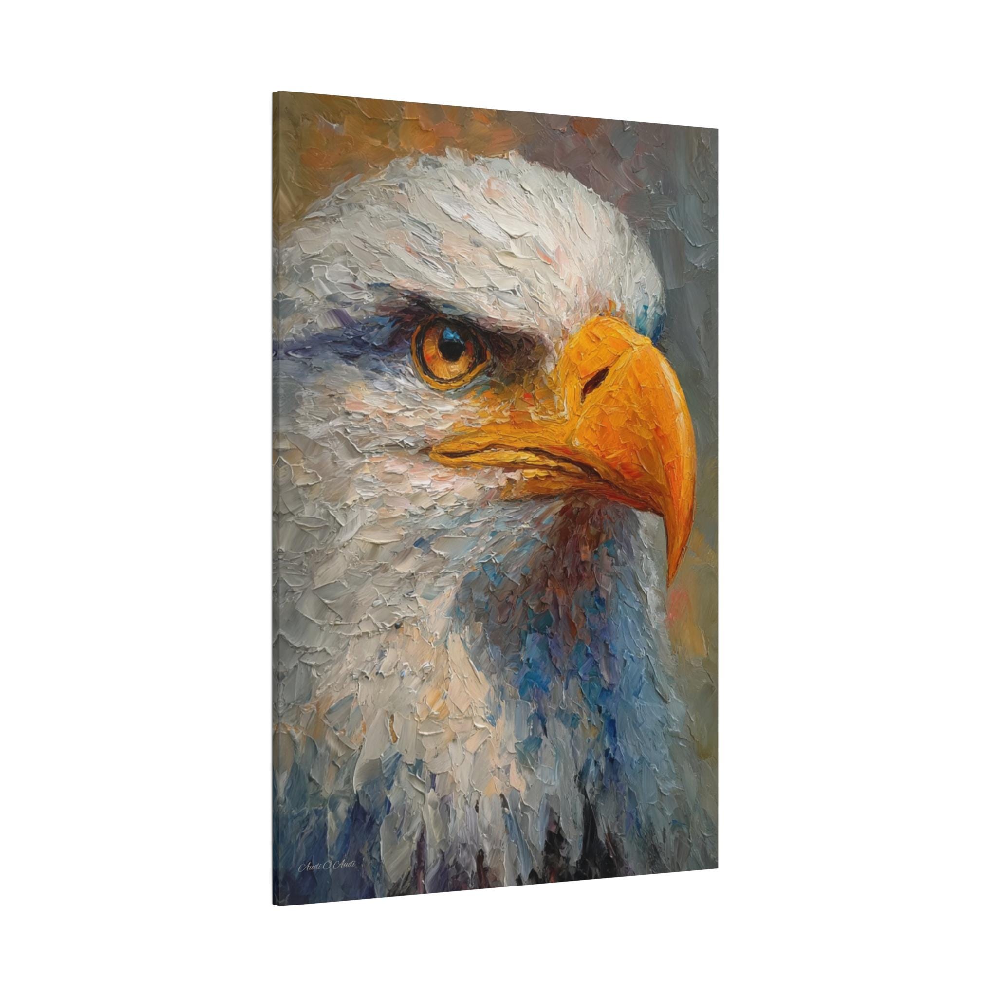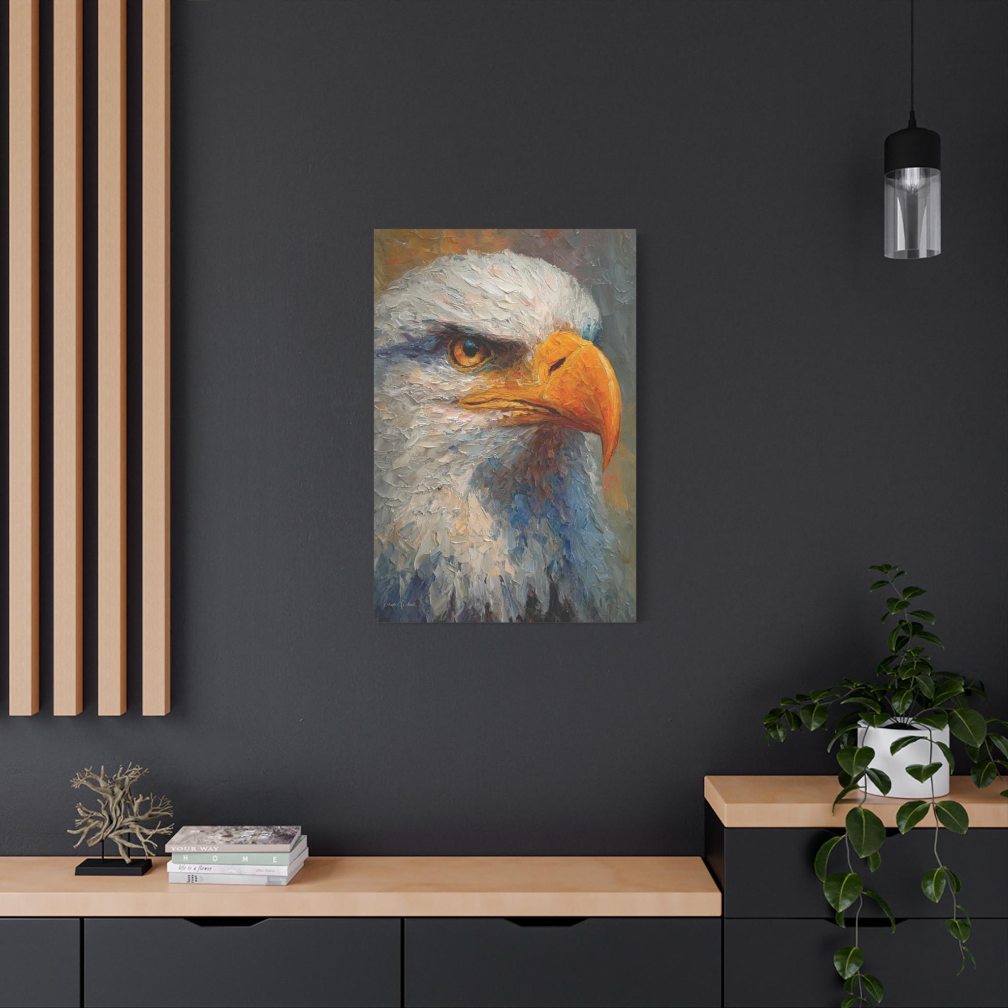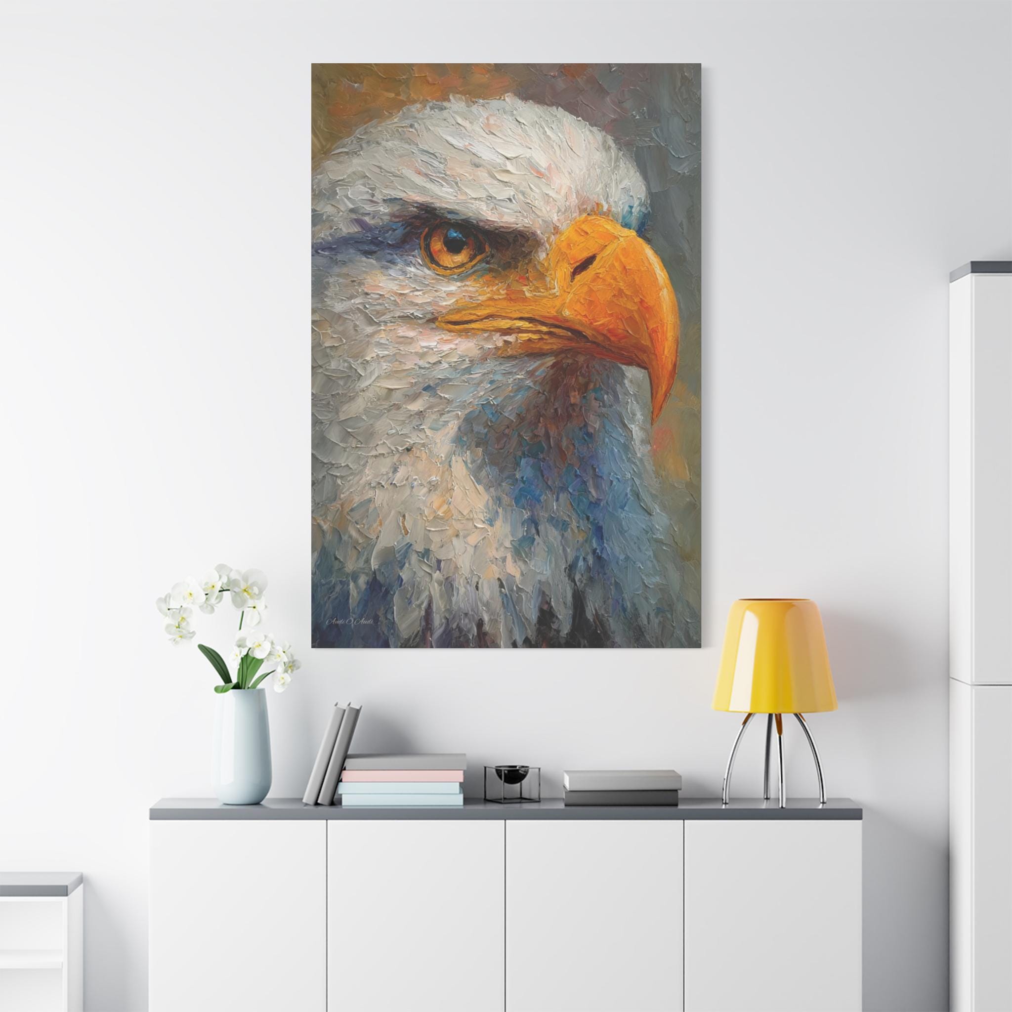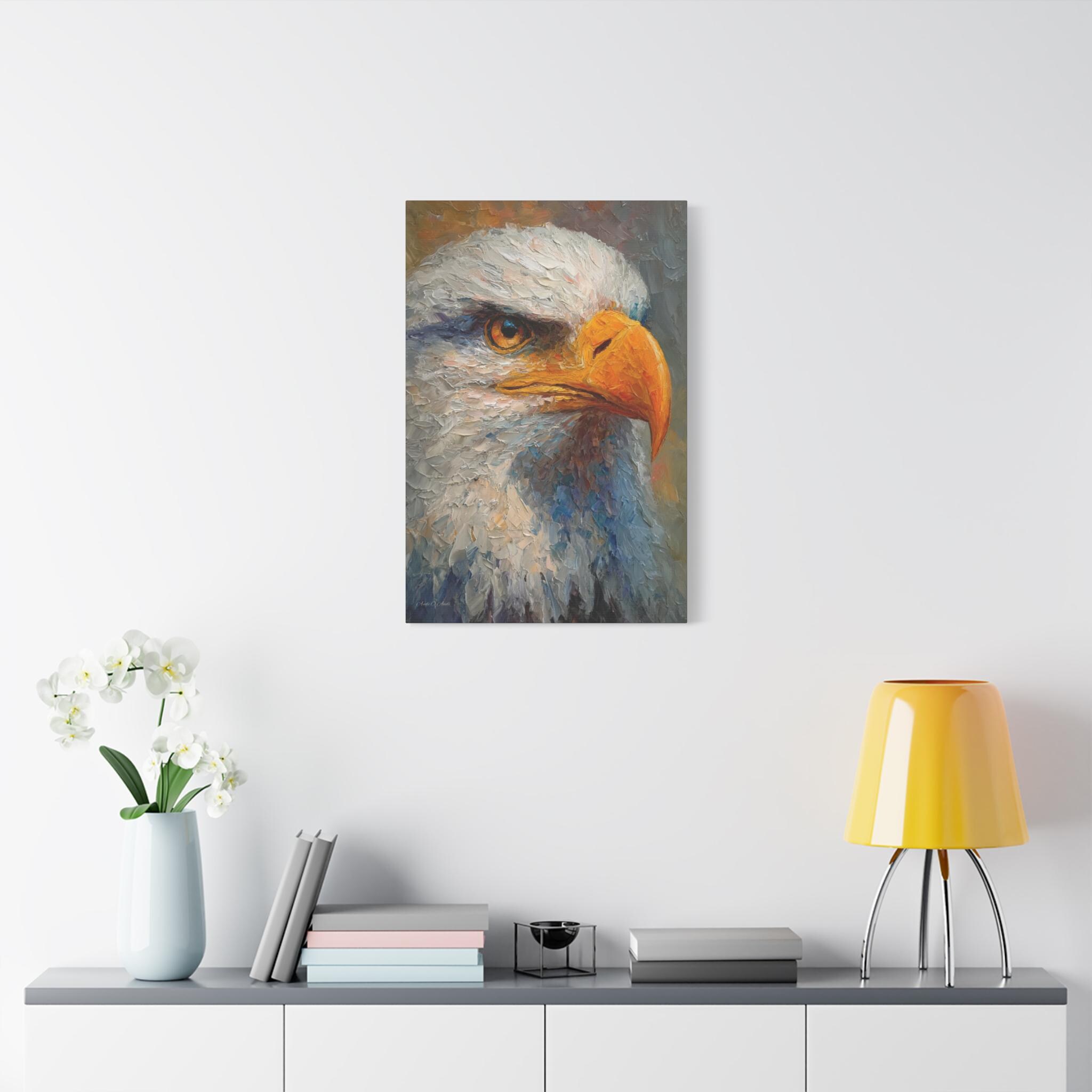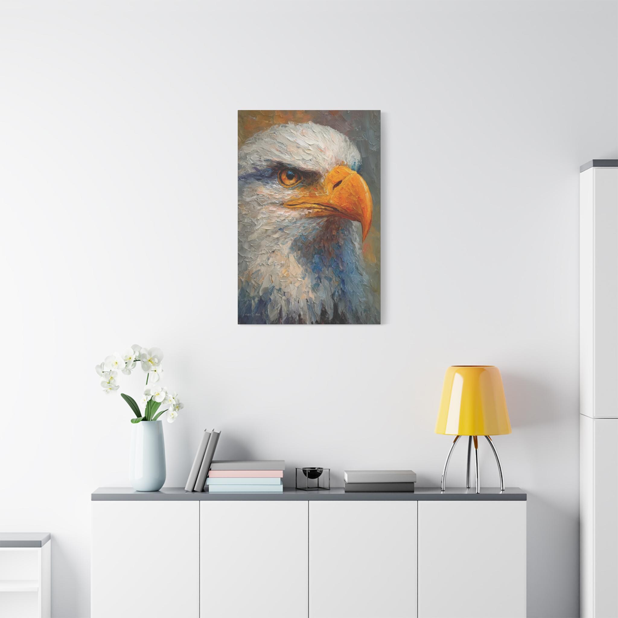 Vigilance in Impasto, Bald Eagle Portrait Matte Canvas Print, Nature Canvas, Wildlife, office Wall Art, Rustic Wall Art.