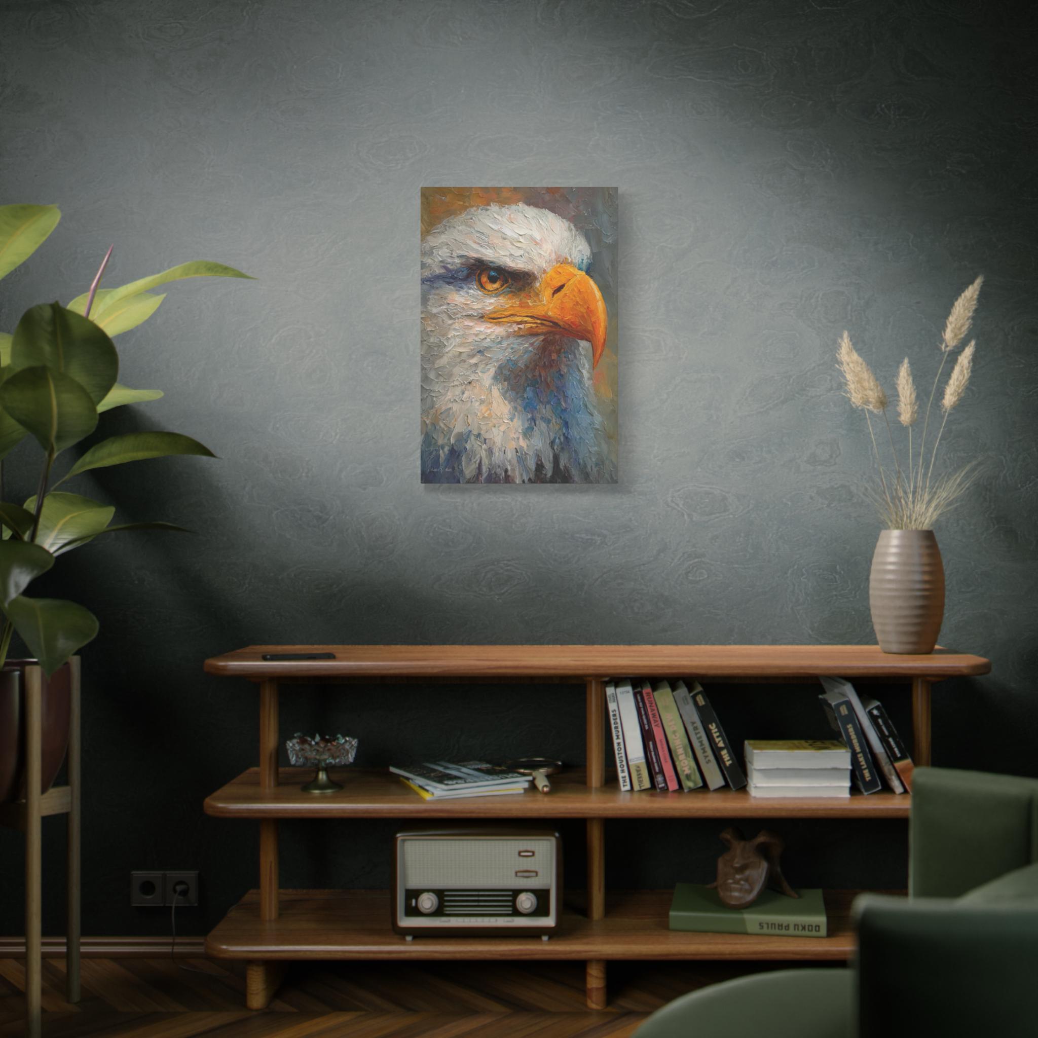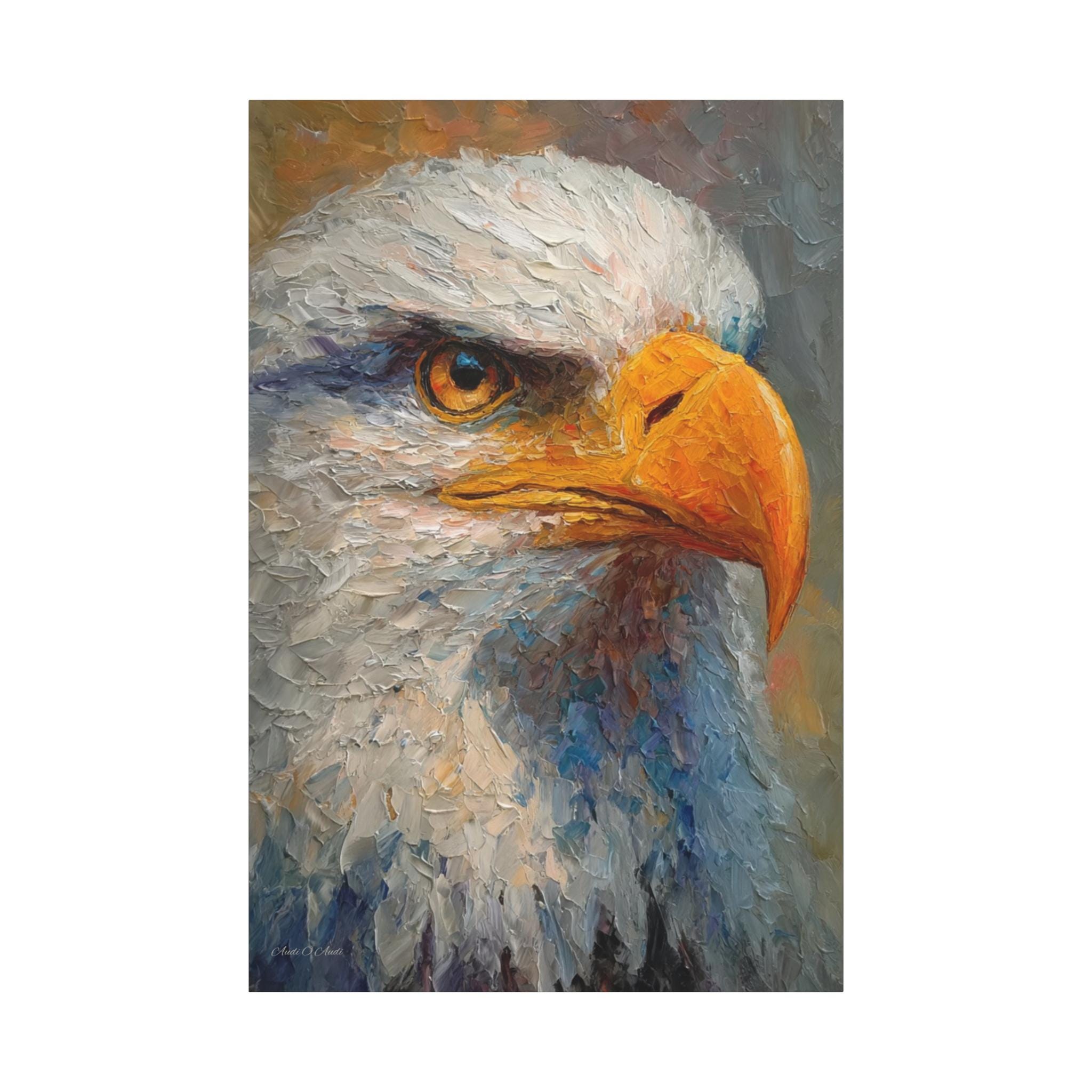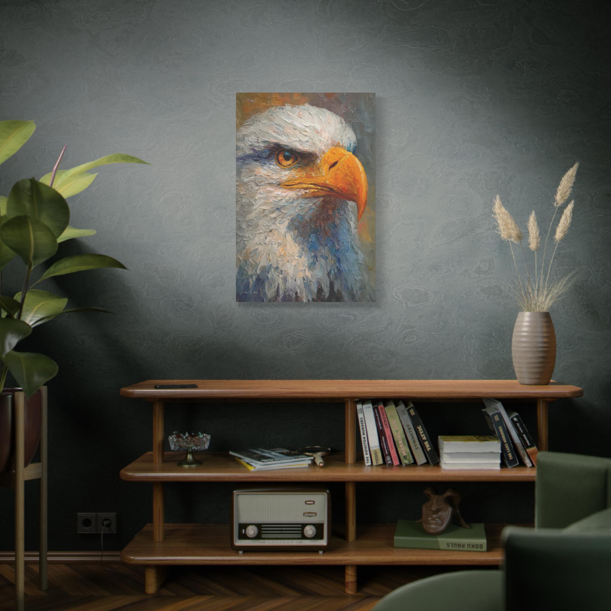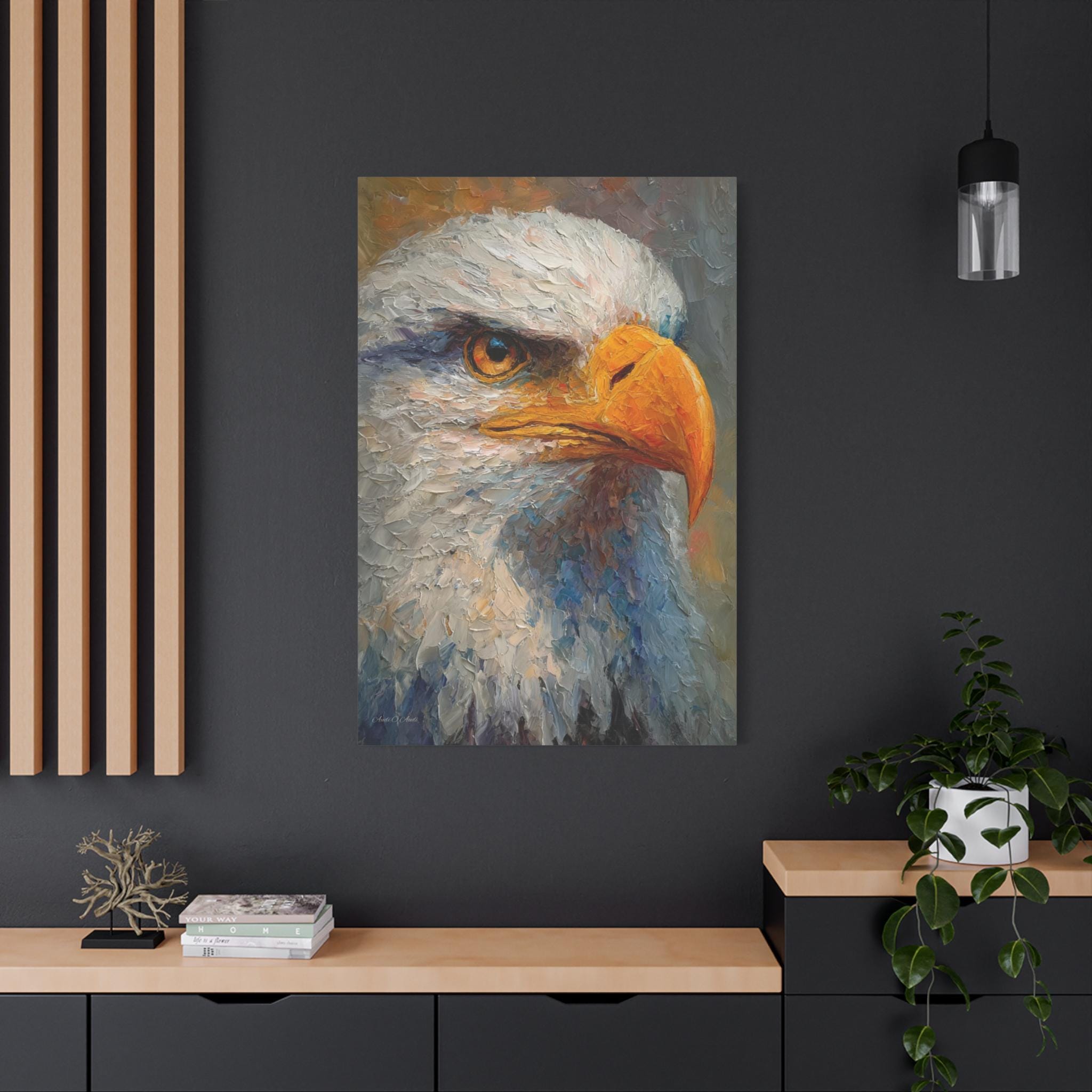 Vigilance in Impasto, Bald Eagle Portrait Matte Canvas Print, Nature Canvas, Wildlife, office Wall Art, Rustic Wall Art.