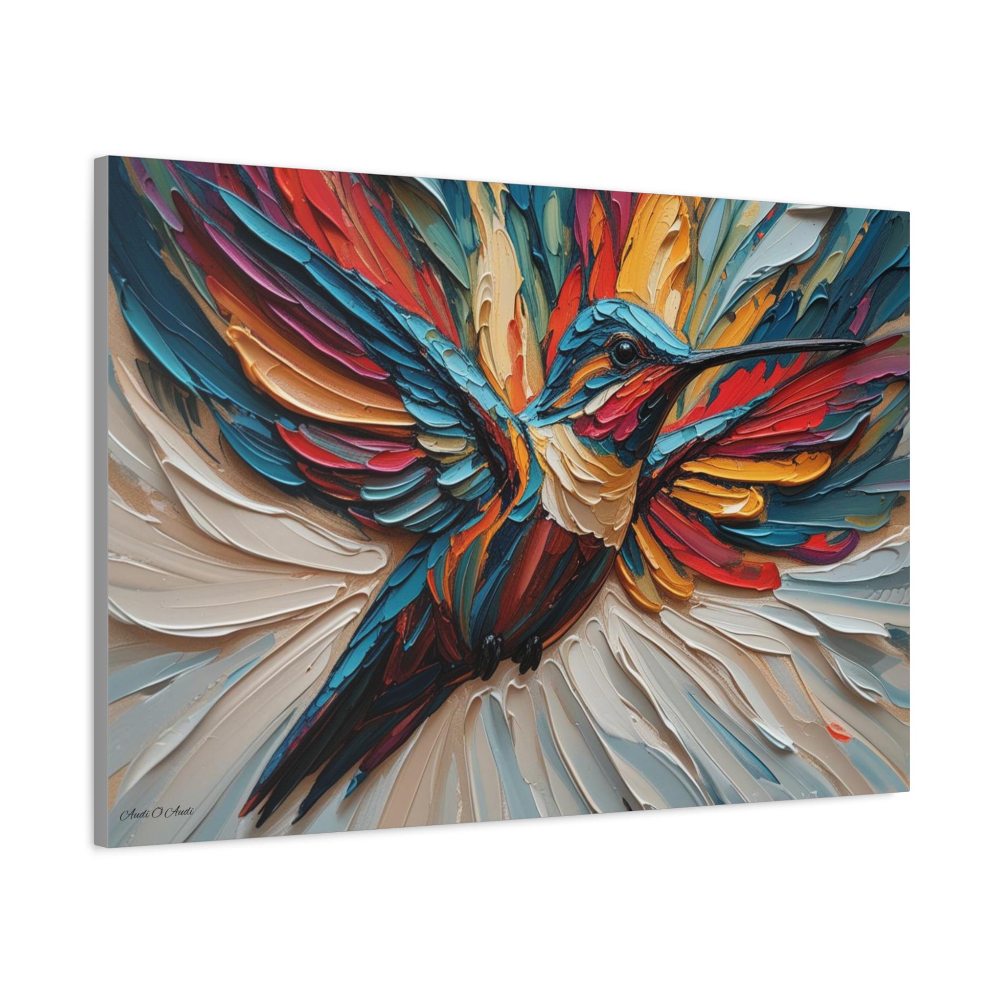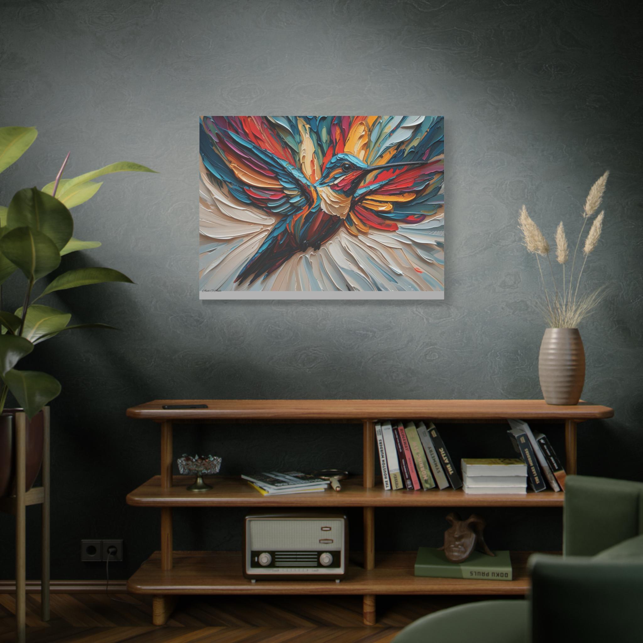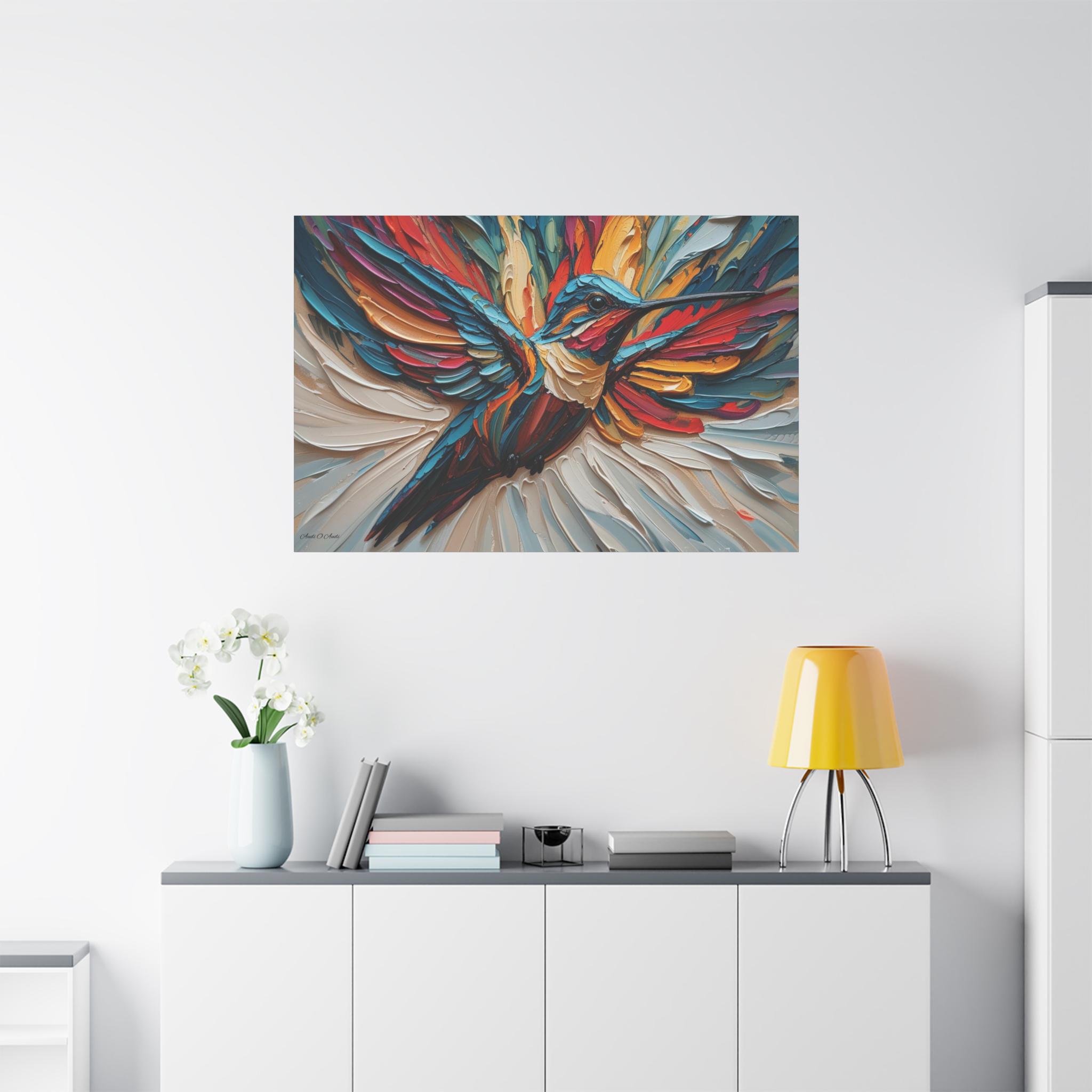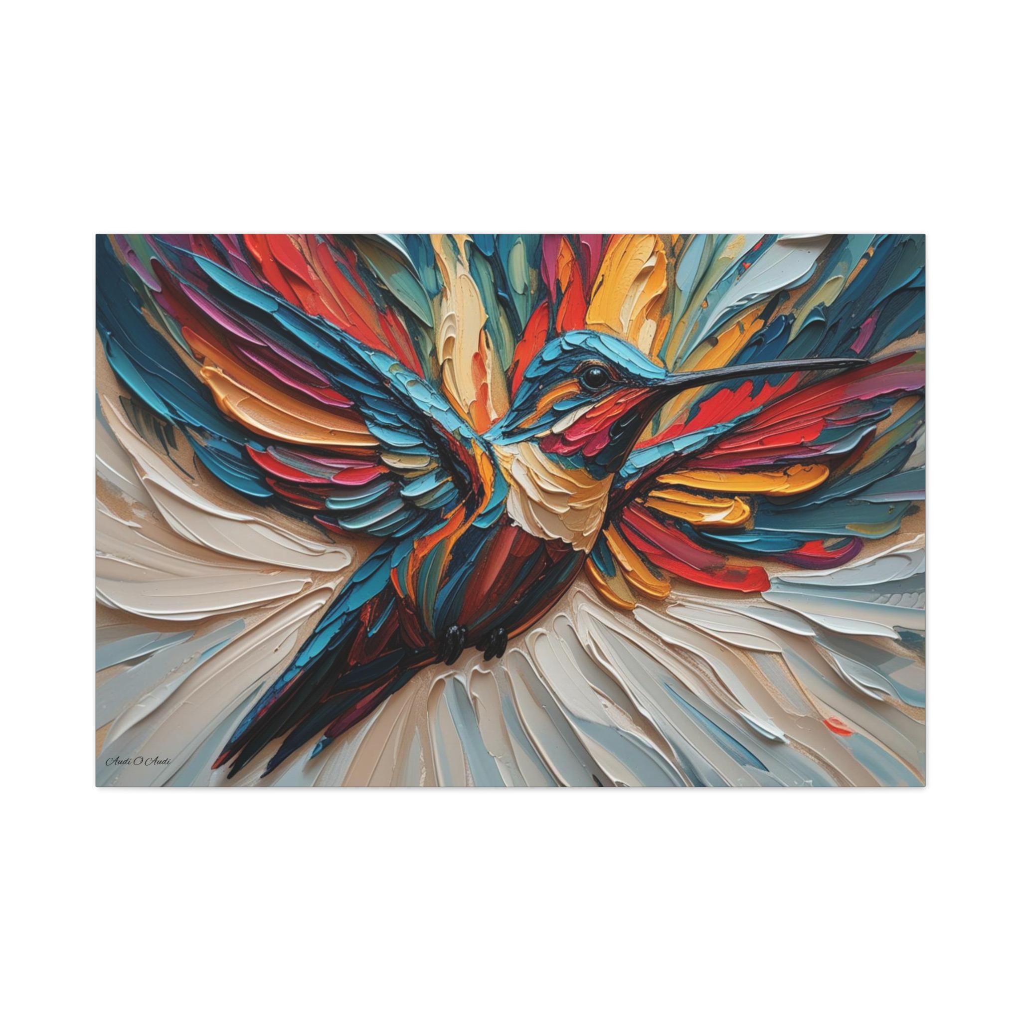 Chromatic Ascent, Colorful Hummingbird Painting Matte Canvas Print, Bird Wal Art, Abstract Bird Art, Vibrant Canvas.