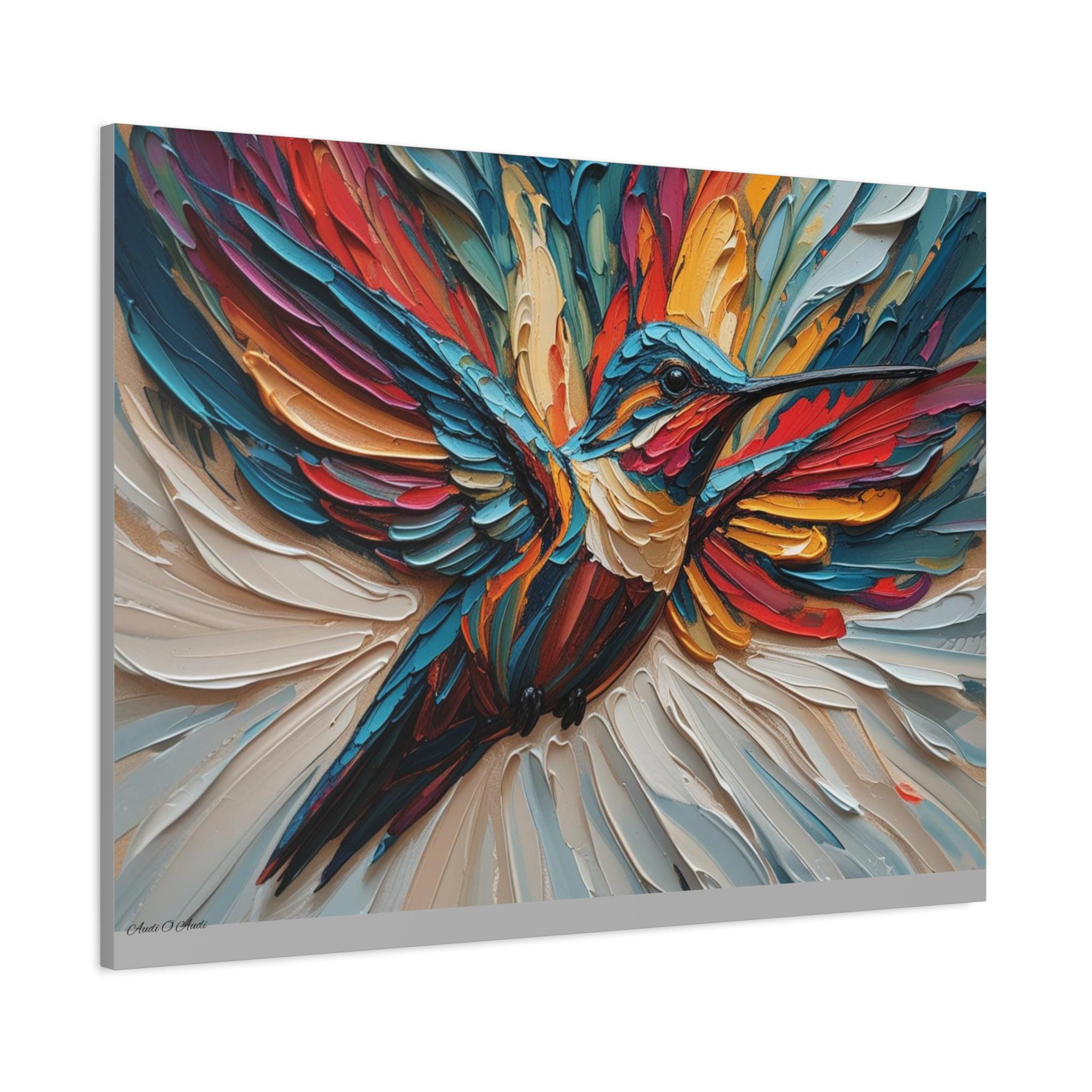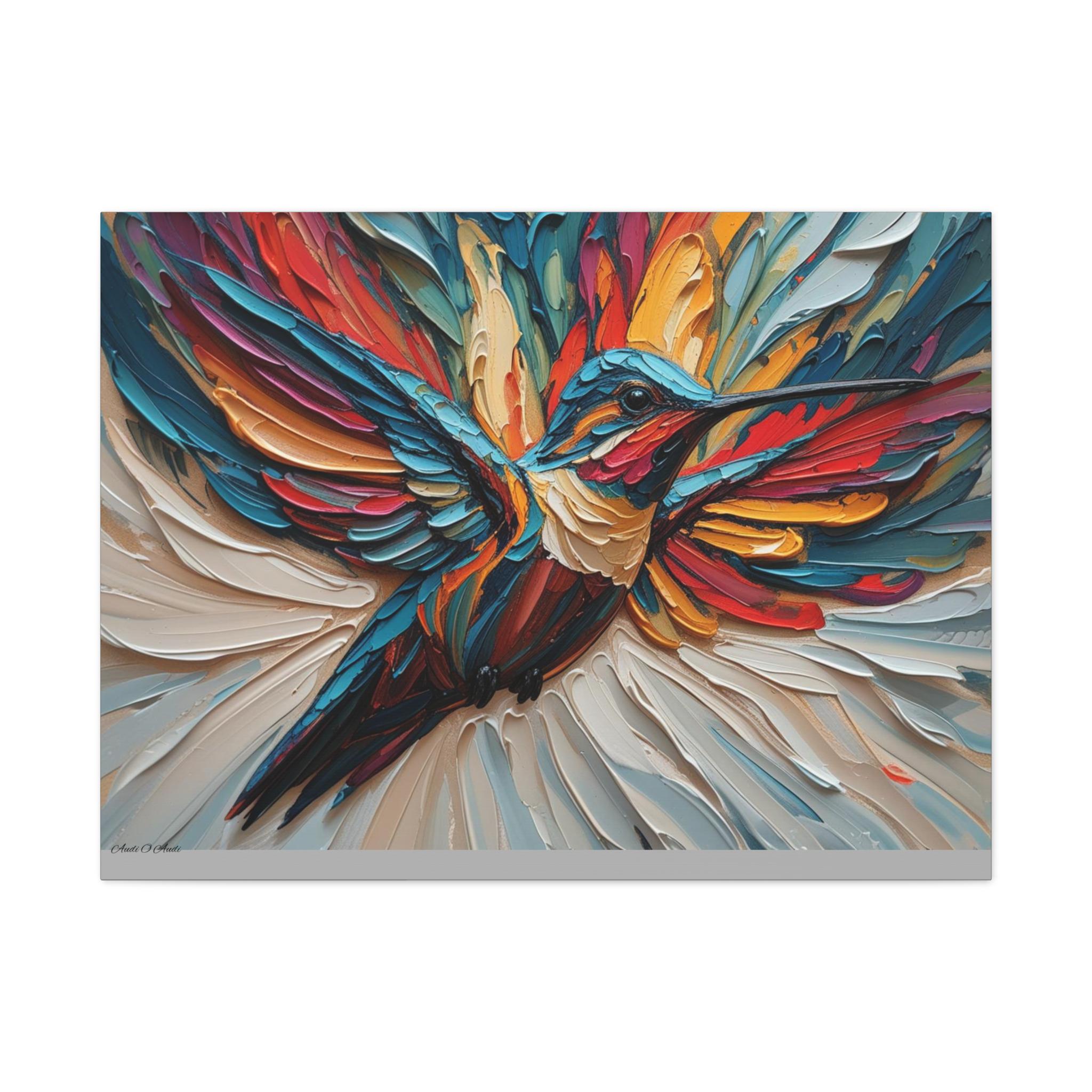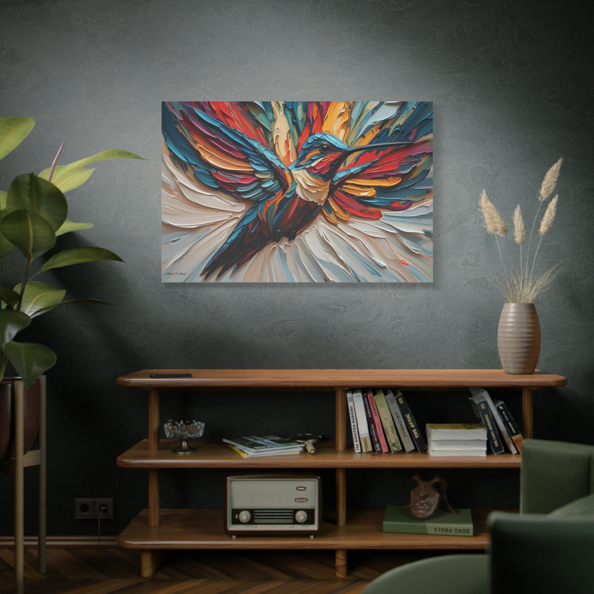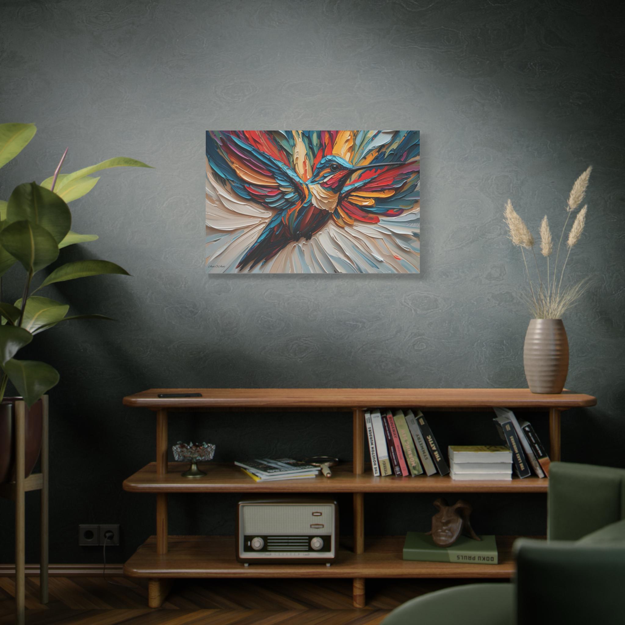 Chromatic Ascent, Colorful Hummingbird Painting Matte Canvas Print, Bird Wal Art, Abstract Bird Art, Vibrant Canvas.
