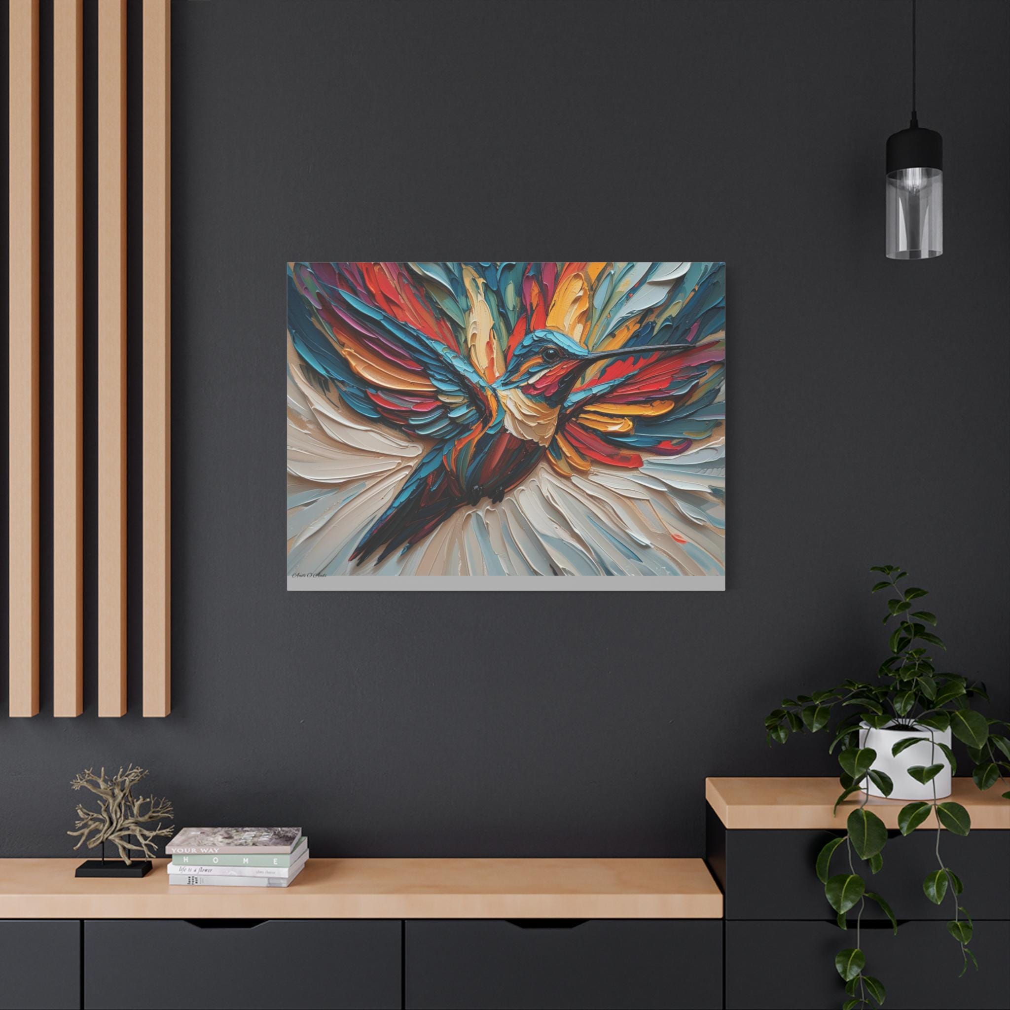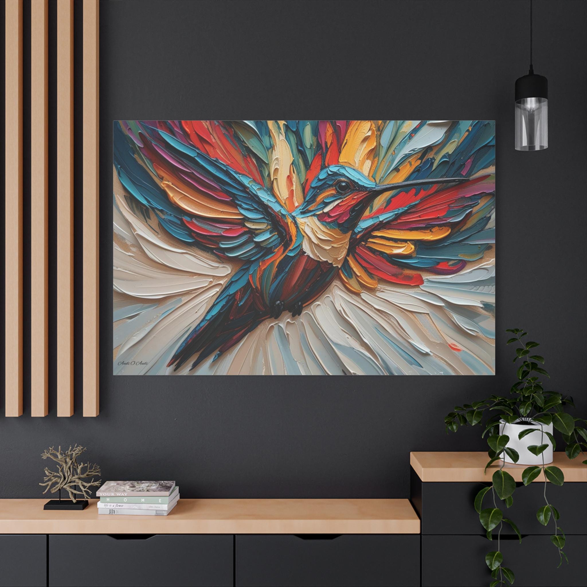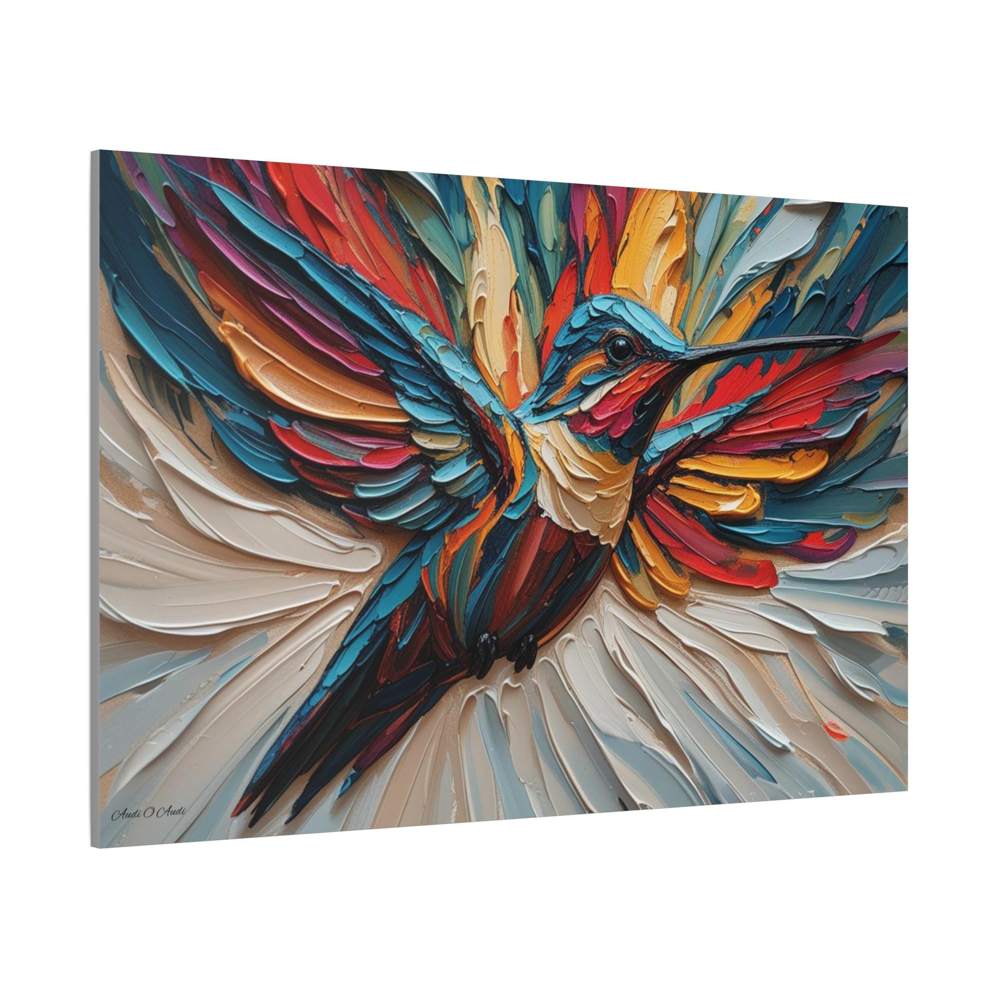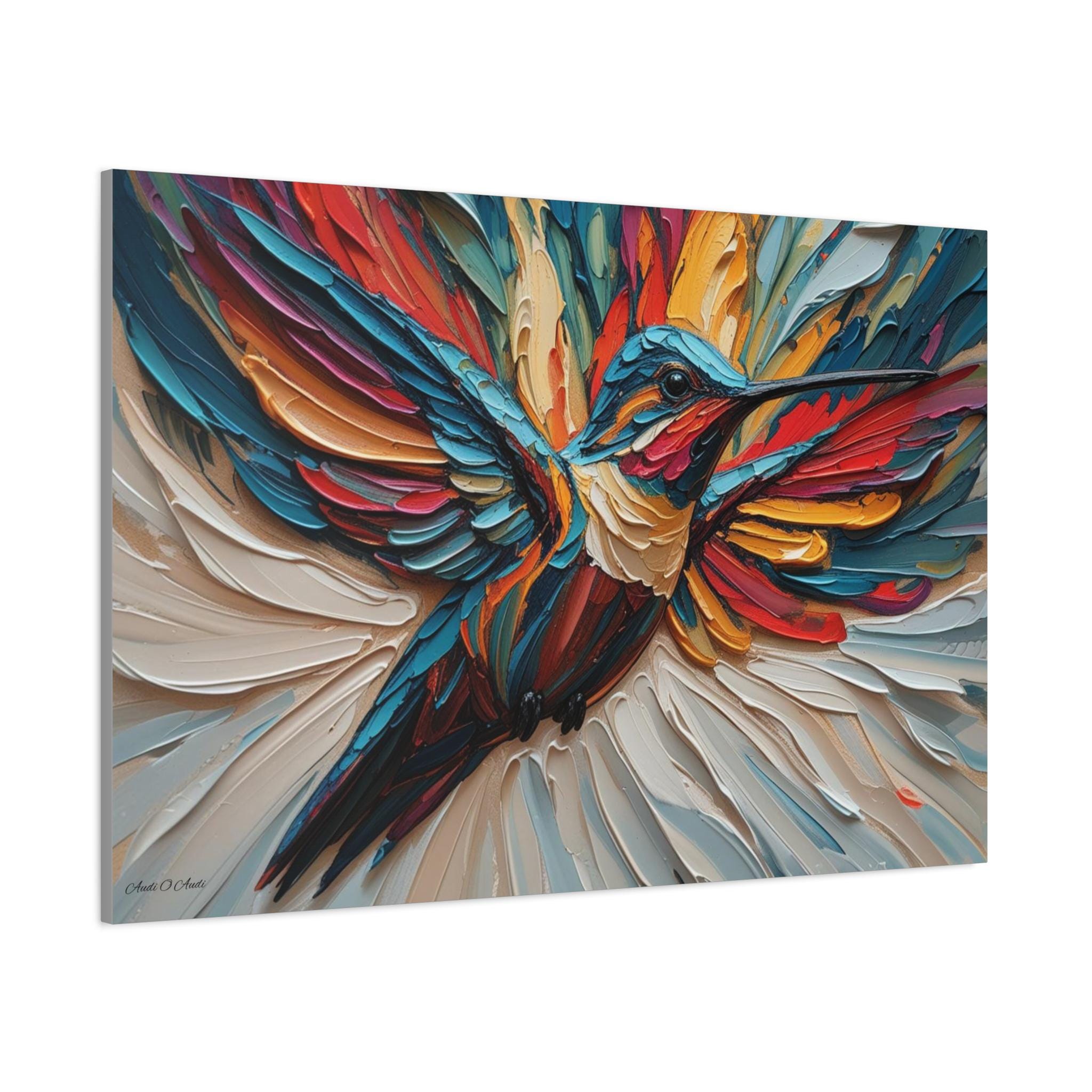 Chromatic Ascent, Colorful Hummingbird Painting Matte Canvas Print, Bird Wal Art, Abstract Bird Art, Vibrant Canvas.