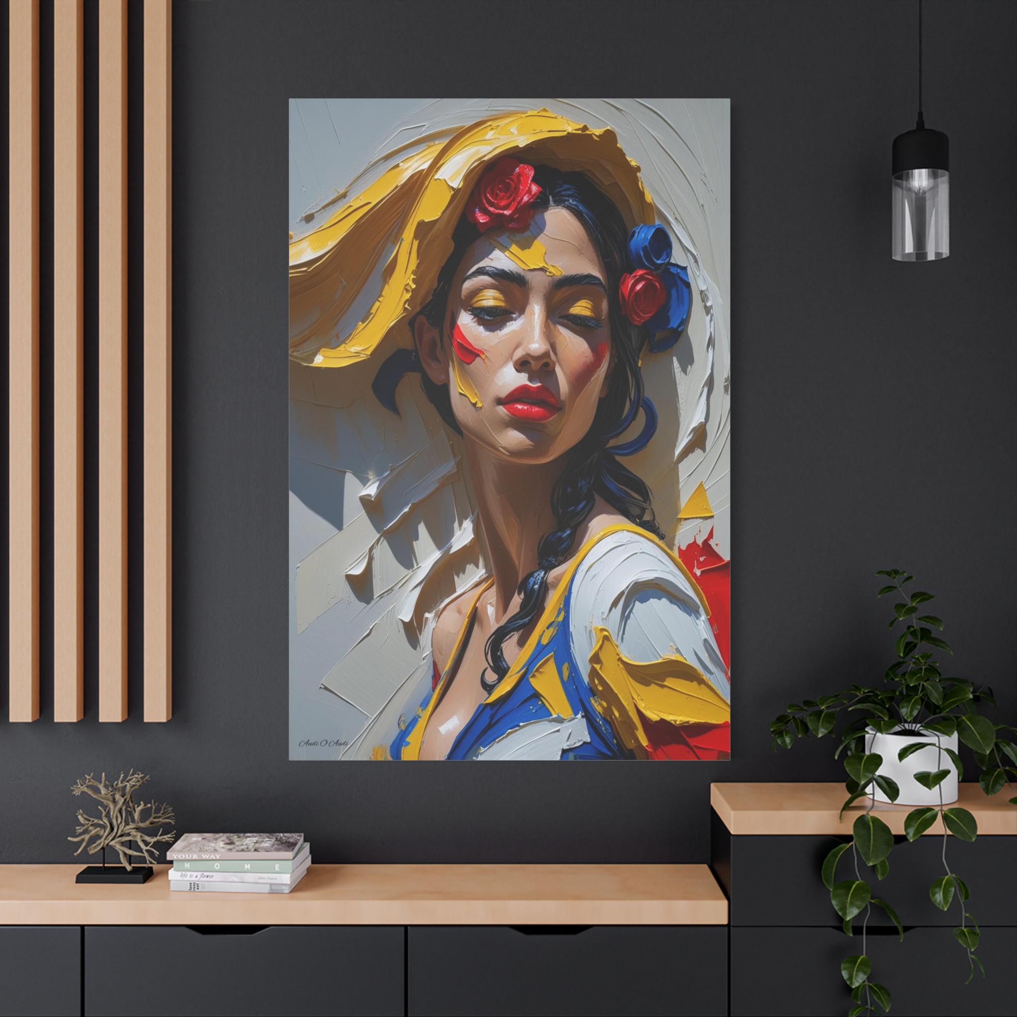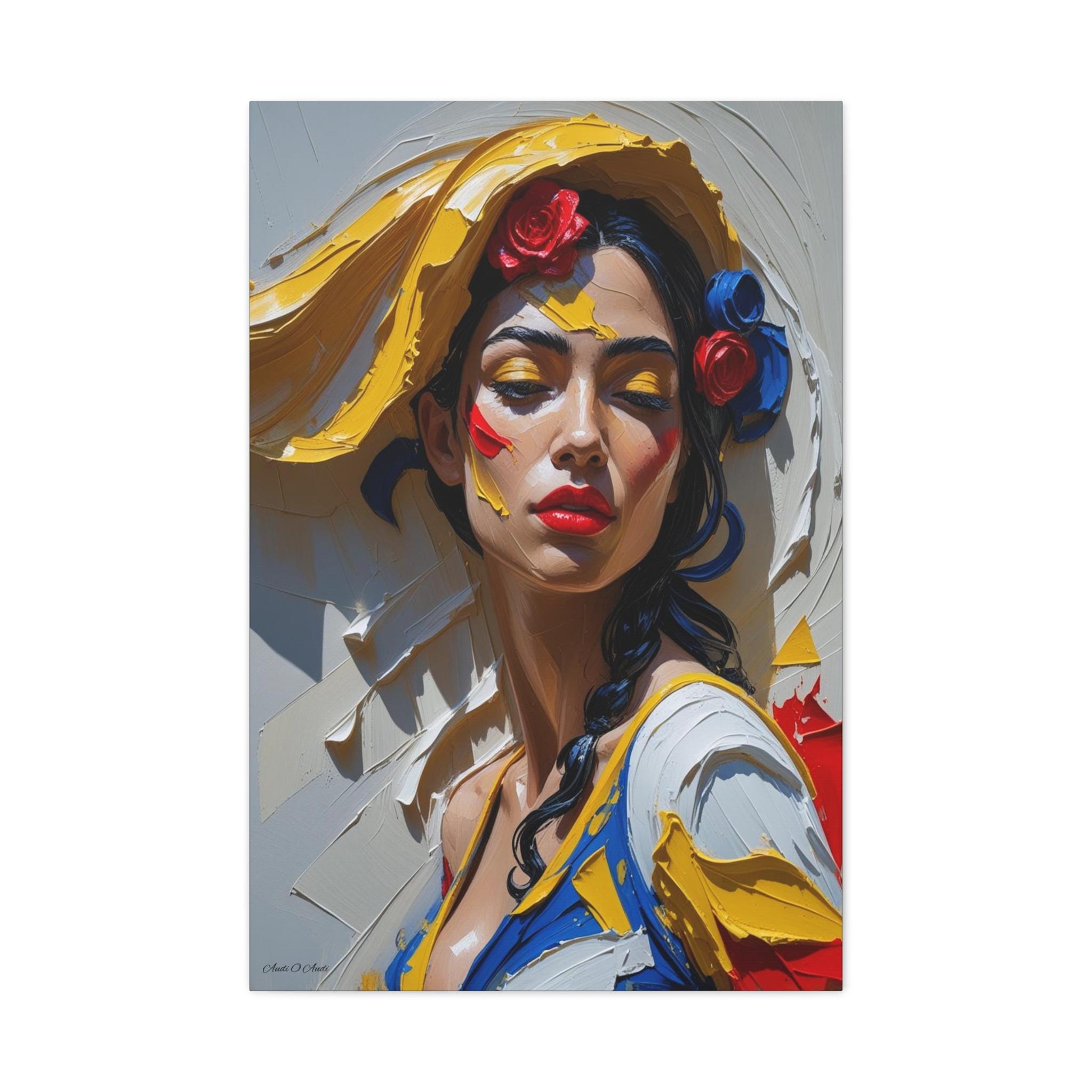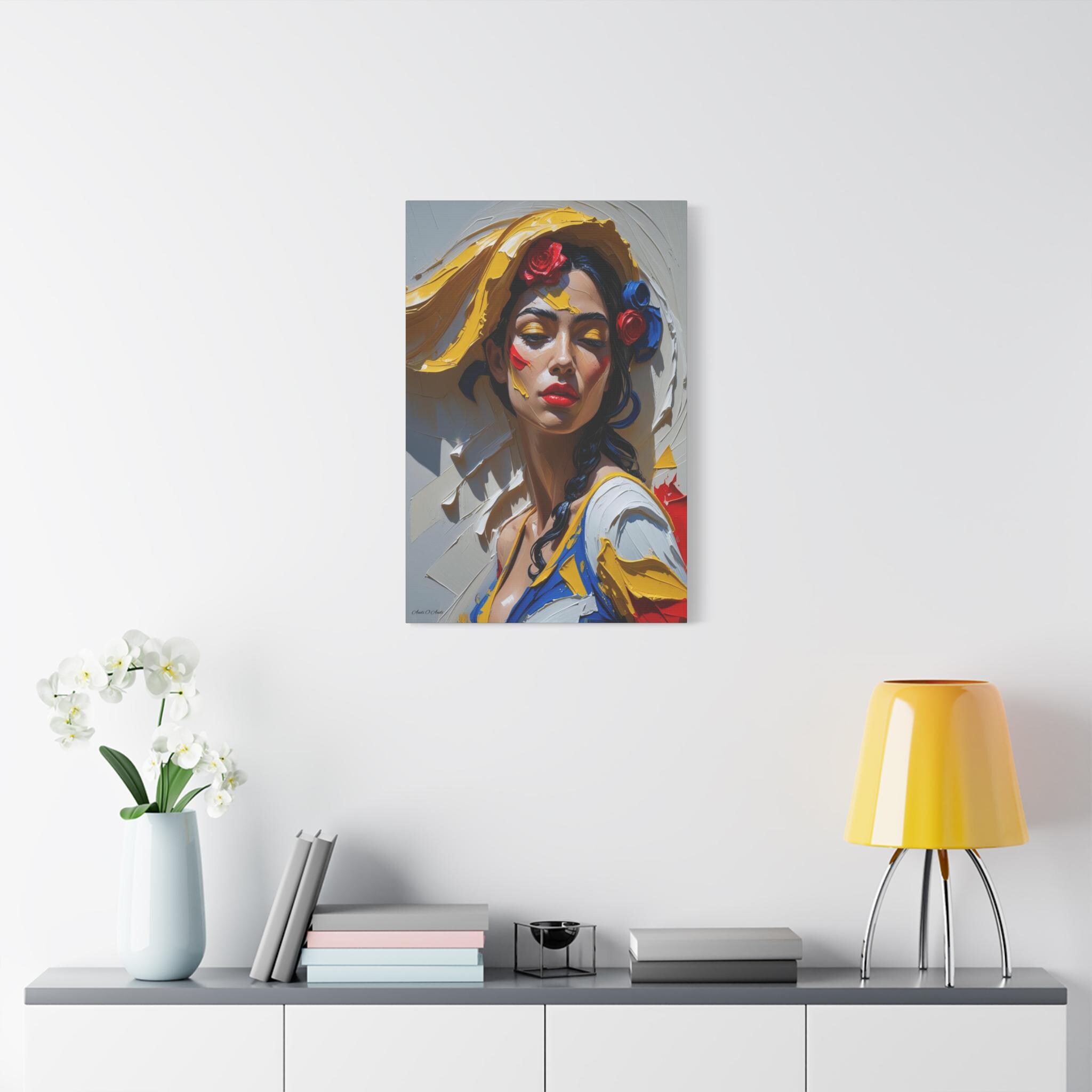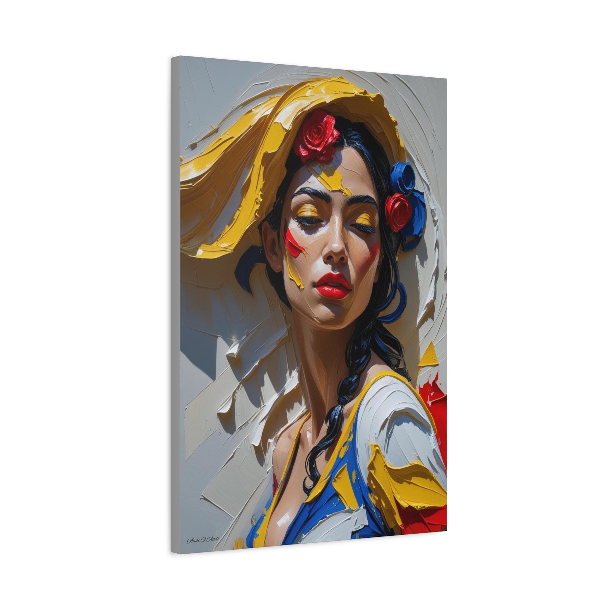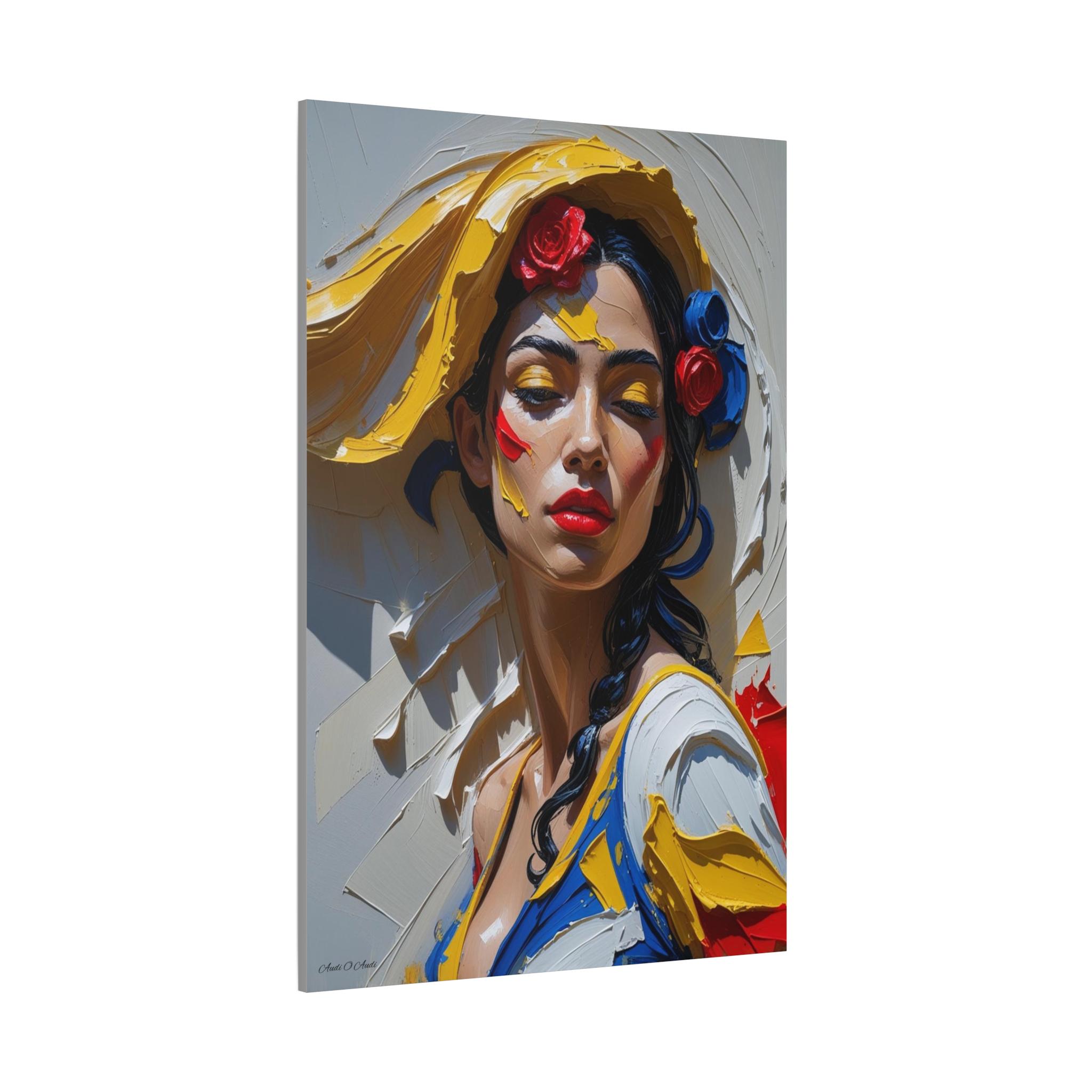 Together, the pair offers a dynamic narrative contrast: the elegant form and posture of the full figure and the intense, colorful emotion of the close-up. They are ideally suited for collectors of modern figurative art and those seeking pieces with dramatic texture, passion, and a Mediterranean flair. The translation of this hyper-texture onto canvas will create a premium, gallery-quality display.