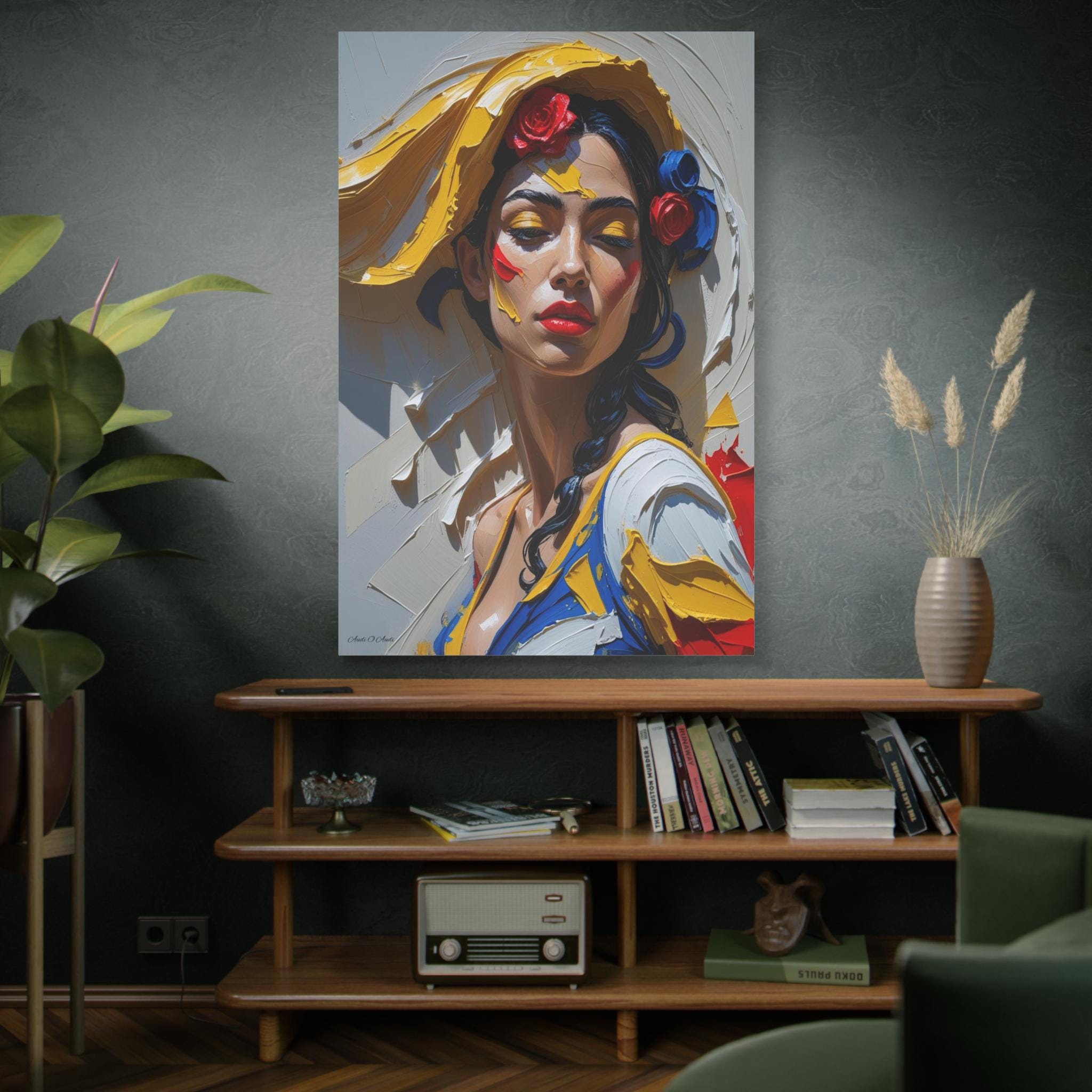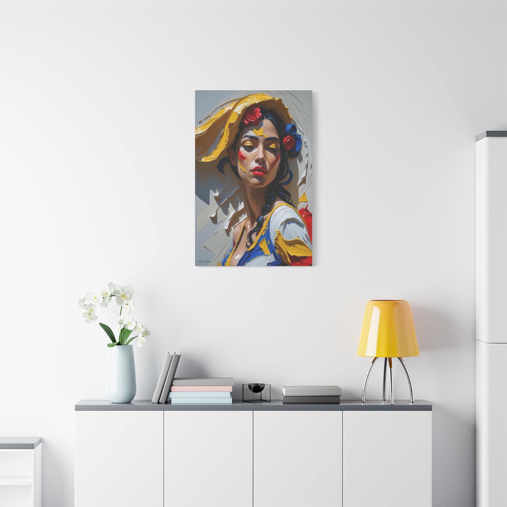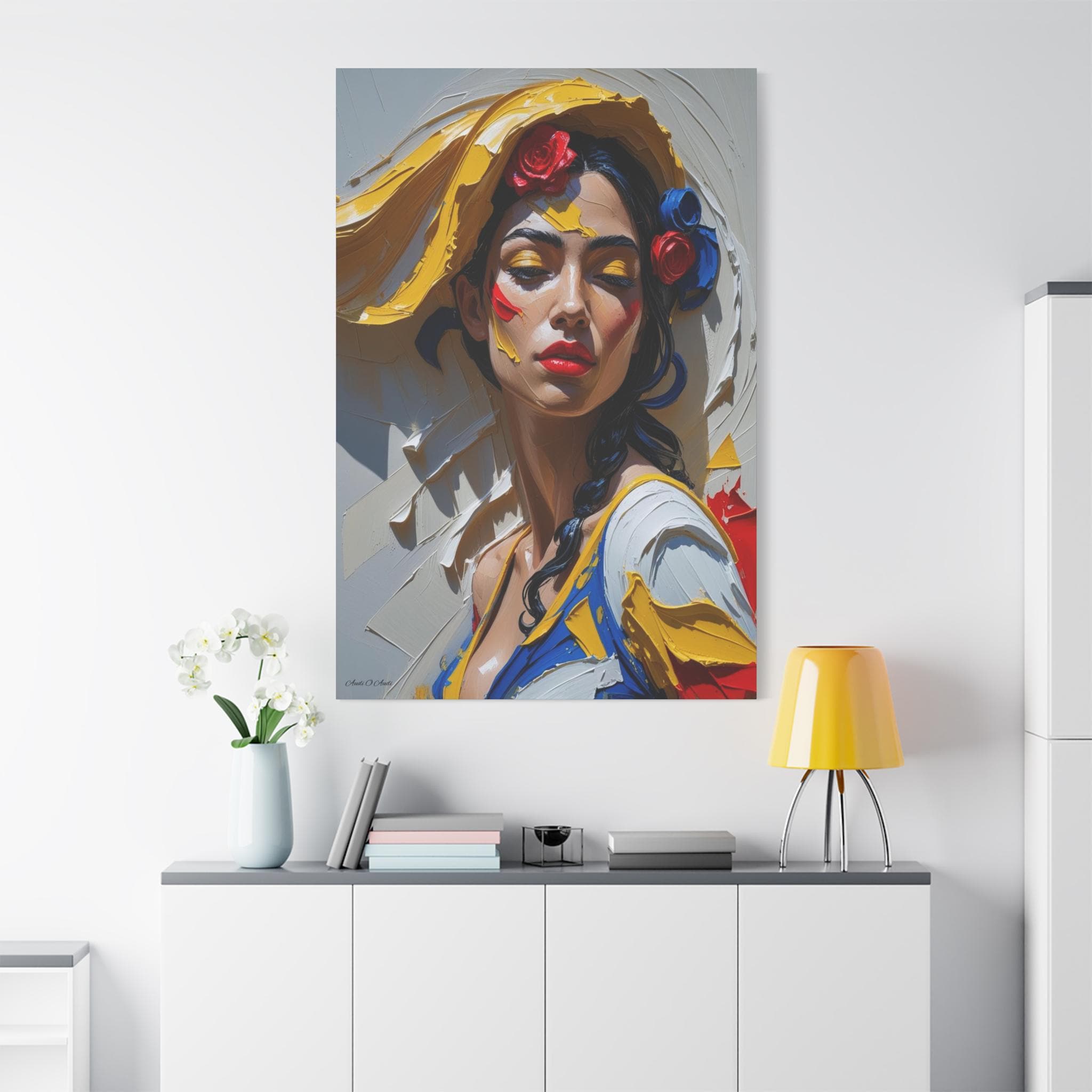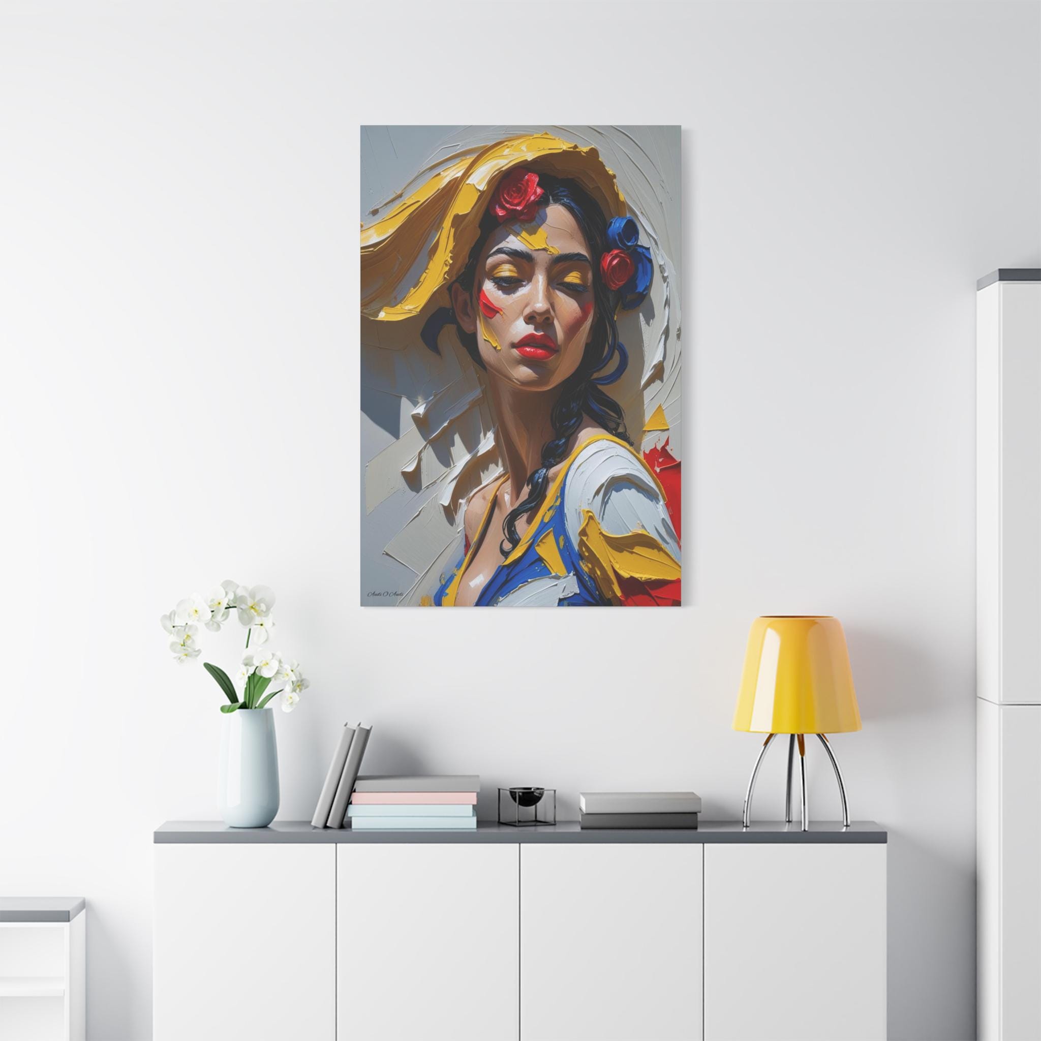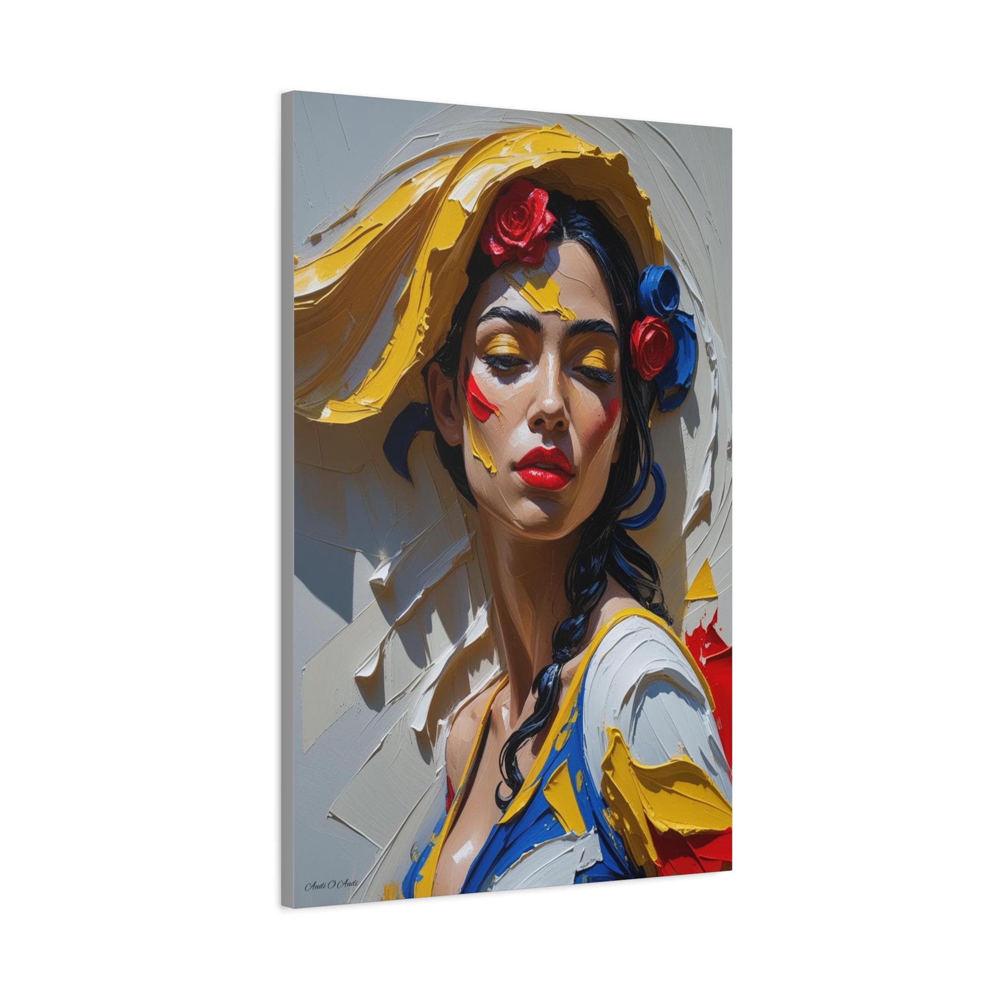 Together, the pair offers a dynamic narrative contrast: the elegant form and posture of the full figure and the intense, colorful emotion of the close-up. They are ideally suited for collectors of modern figurative art and those seeking pieces with dramatic texture, passion, and a Mediterranean flair. The translation of this hyper-texture onto canvas will create a premium, gallery-quality display.