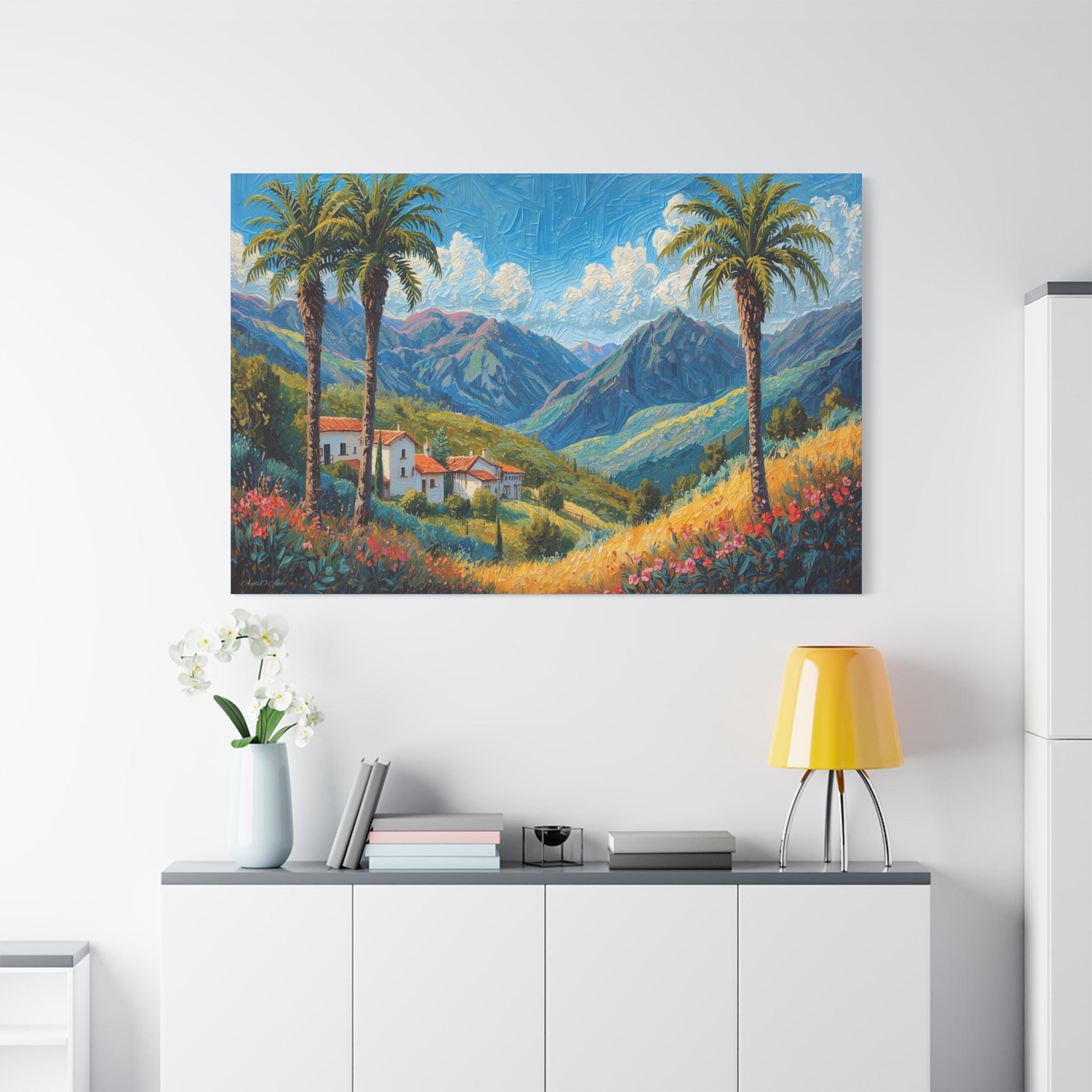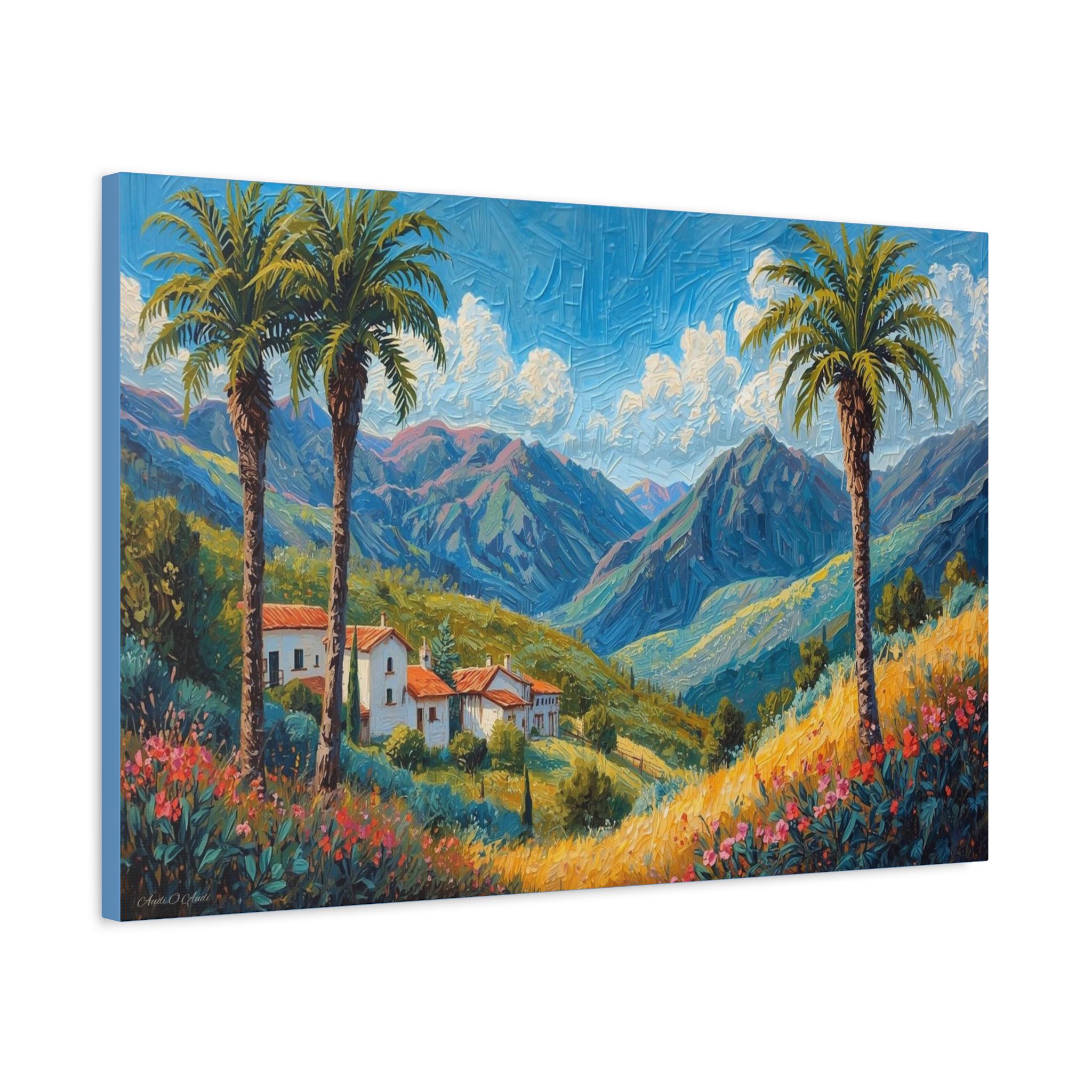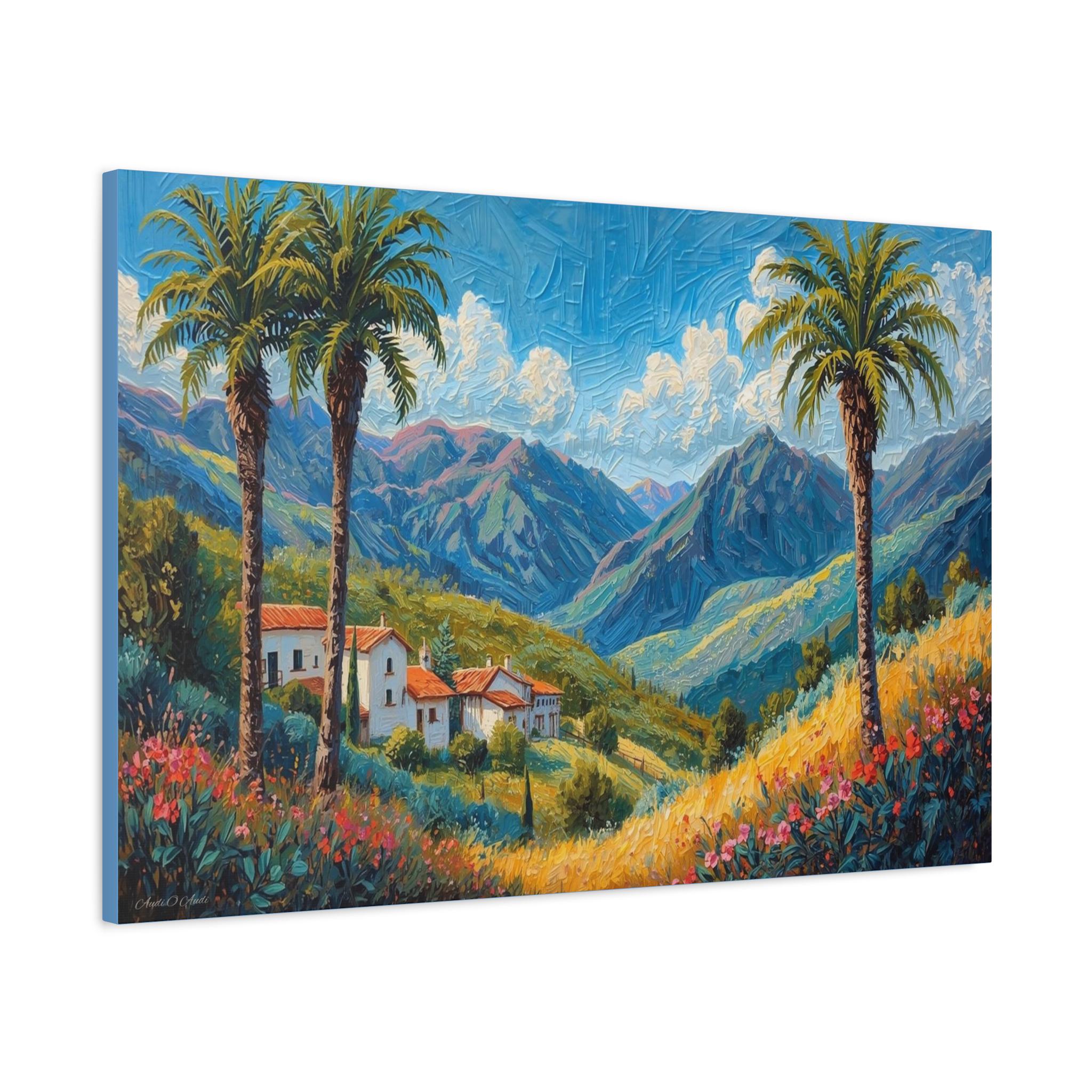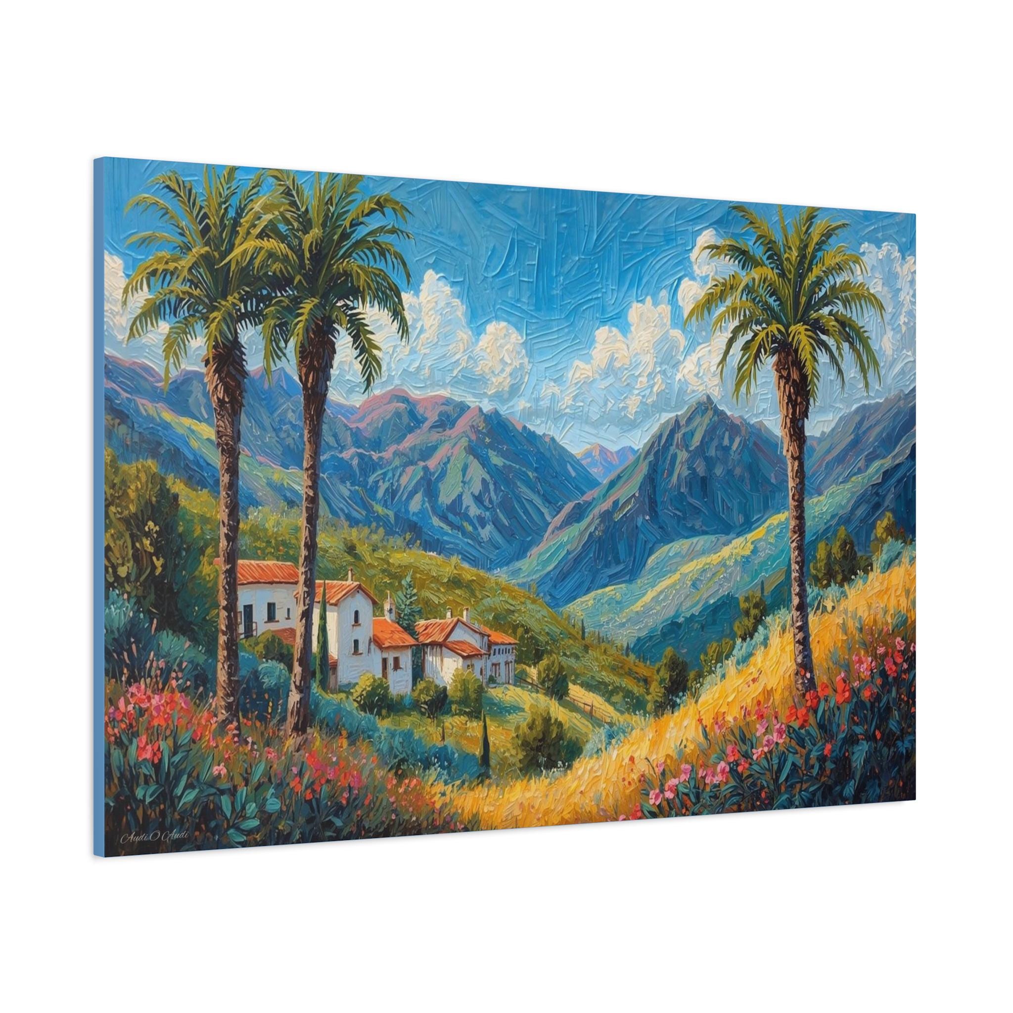 Coastal Impasto Vista, Mediterranean Villa Landscape Canvas | Stretched Matte Canvas Print, Landscape Canva, Living Room Art.