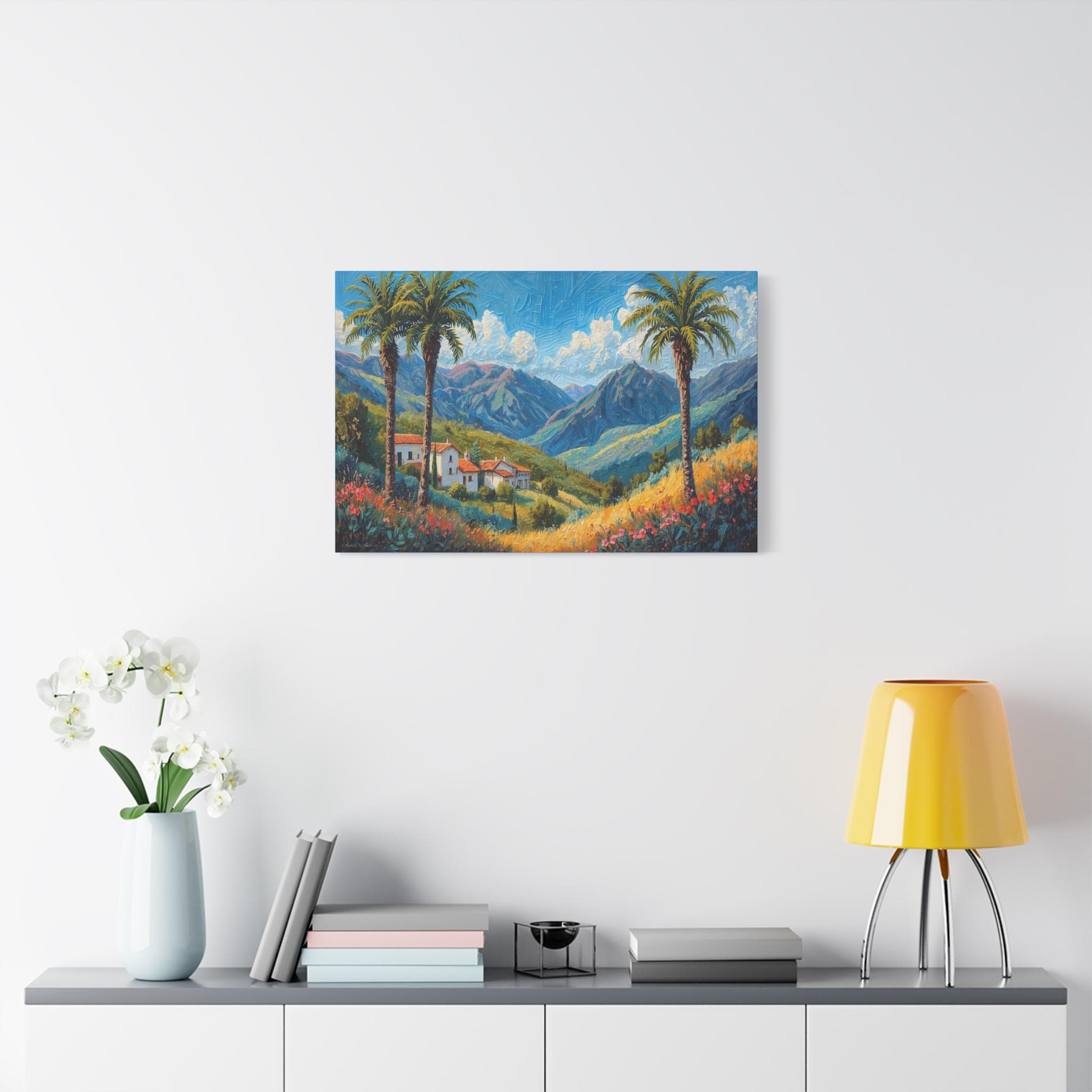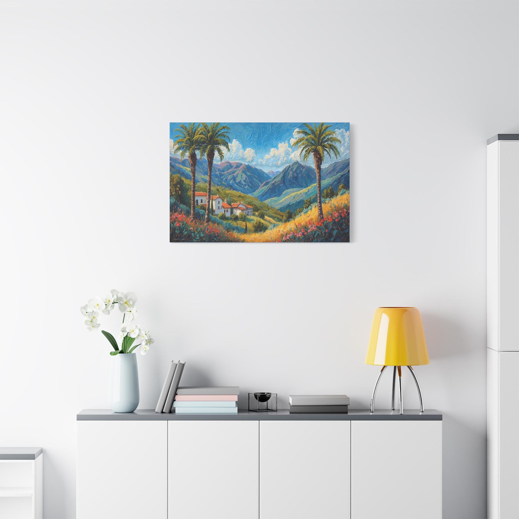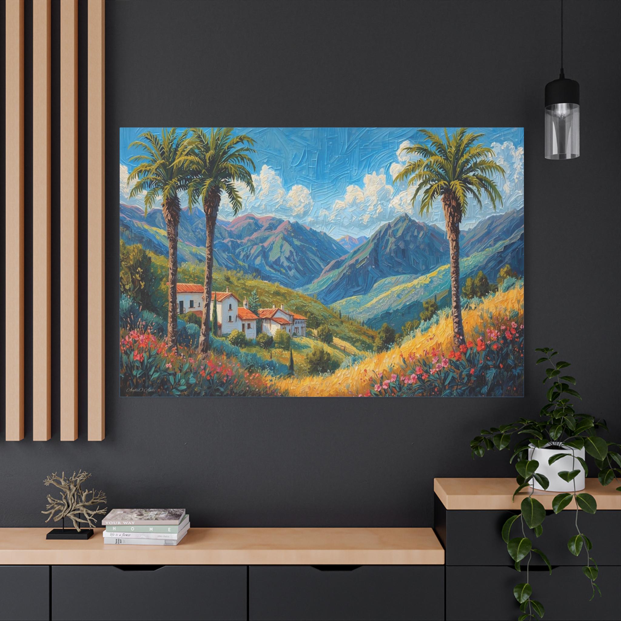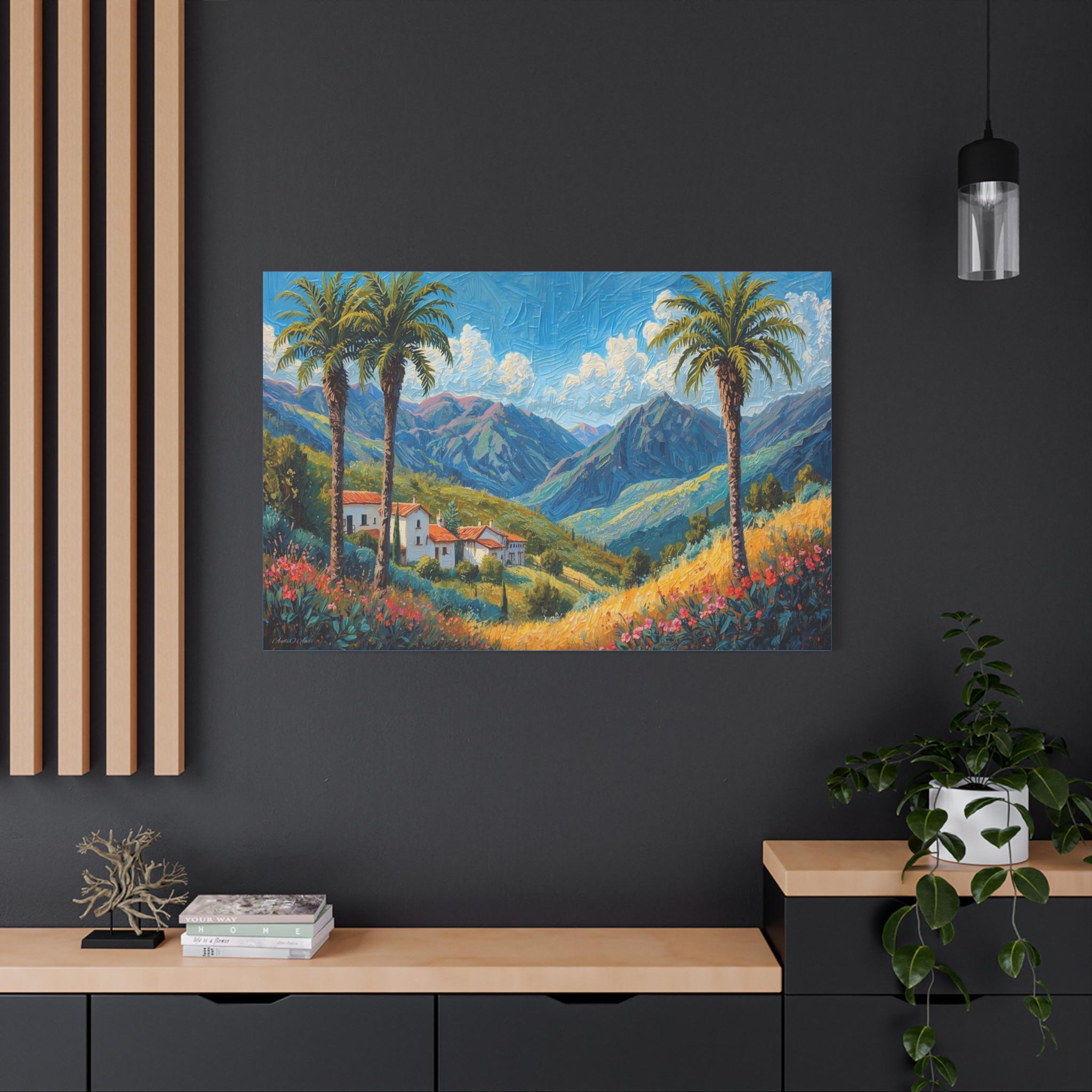 Coastal Impasto Vista, Mediterranean Villa Landscape Canvas | Stretched Matte Canvas Print, Landscape Canva, Living Room Art.