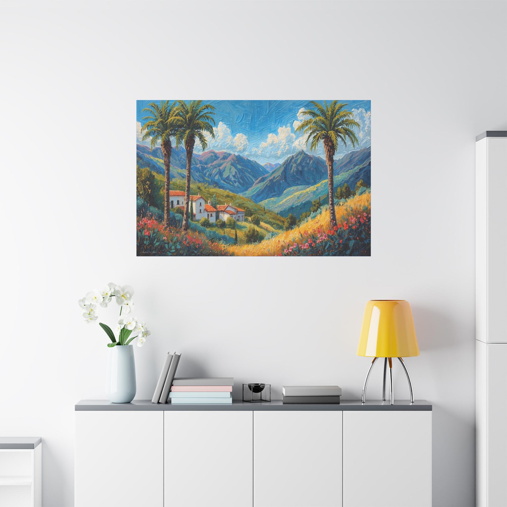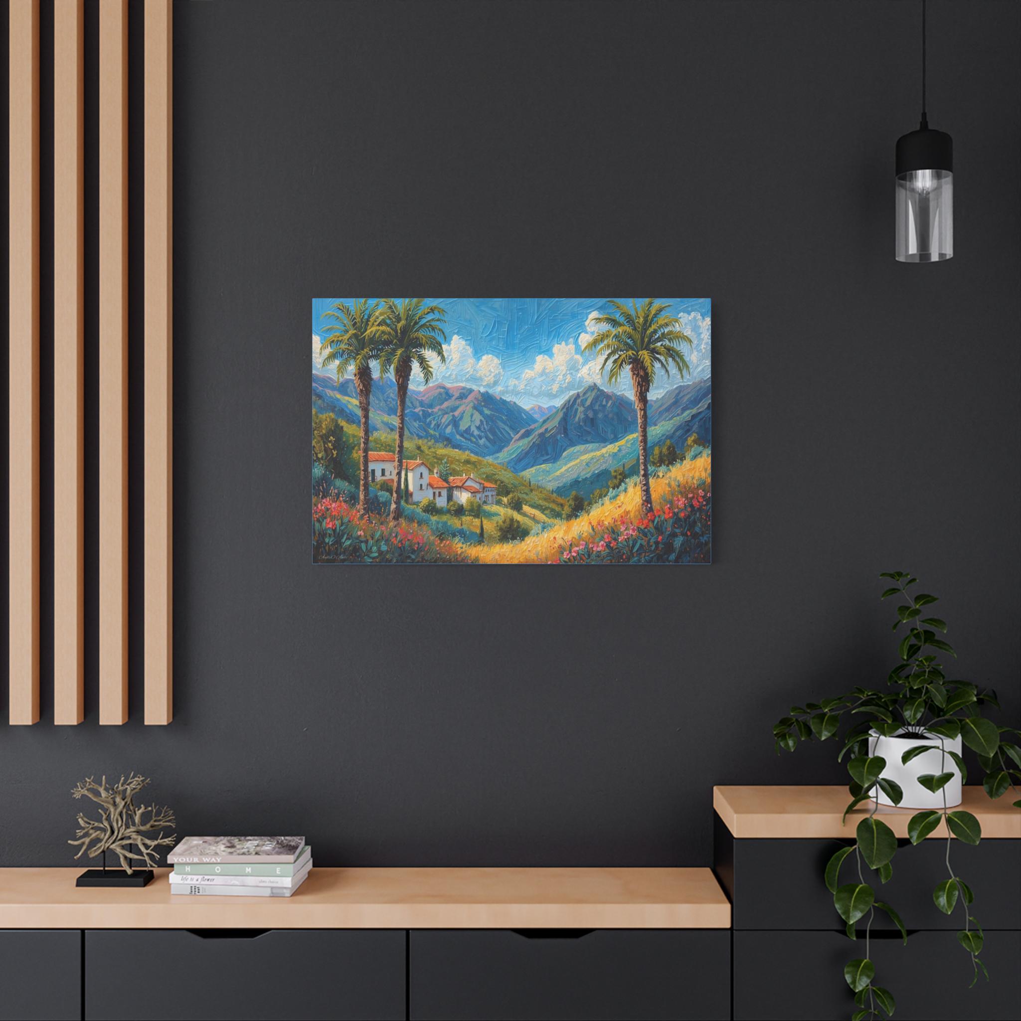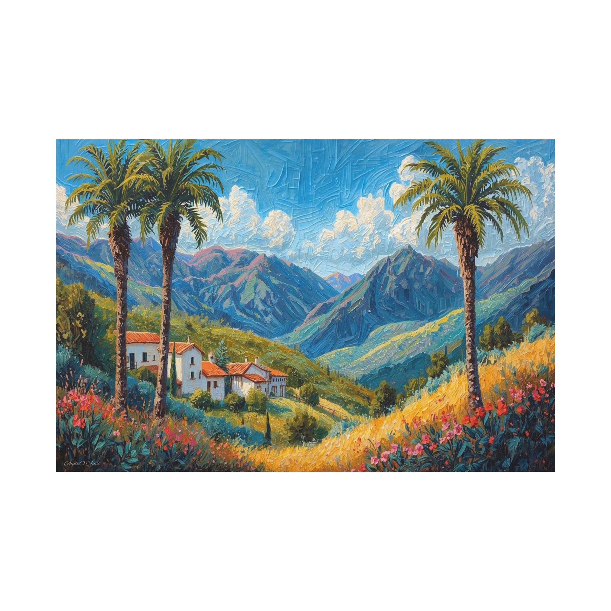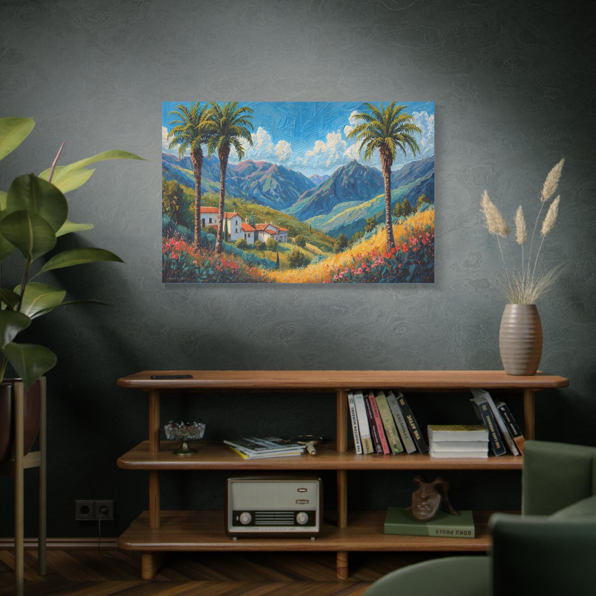 Coastal Impasto Vista, Mediterranean Villa Landscape Canvas | Stretched Matte Canvas Print, Landscape Canva, Living Room Art.