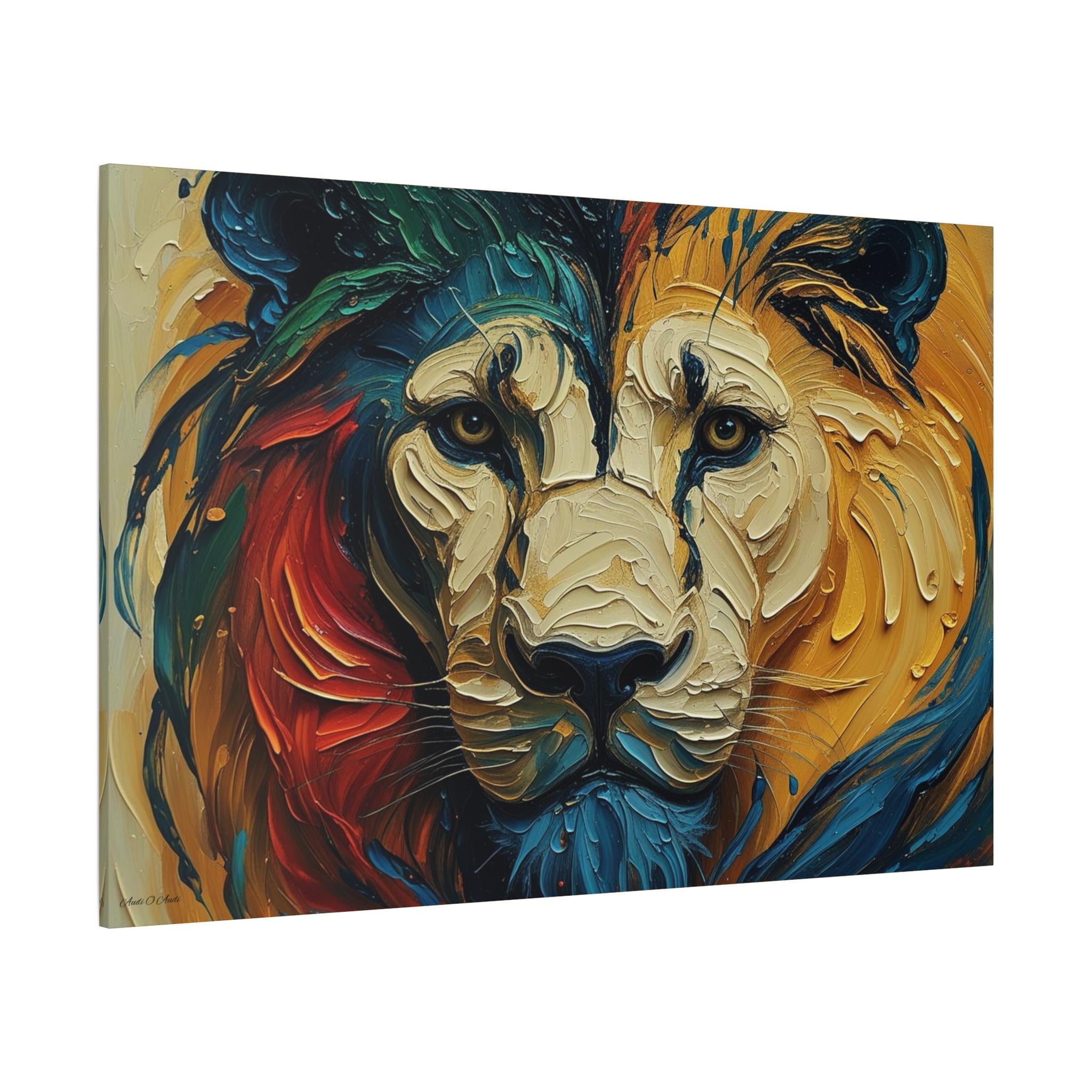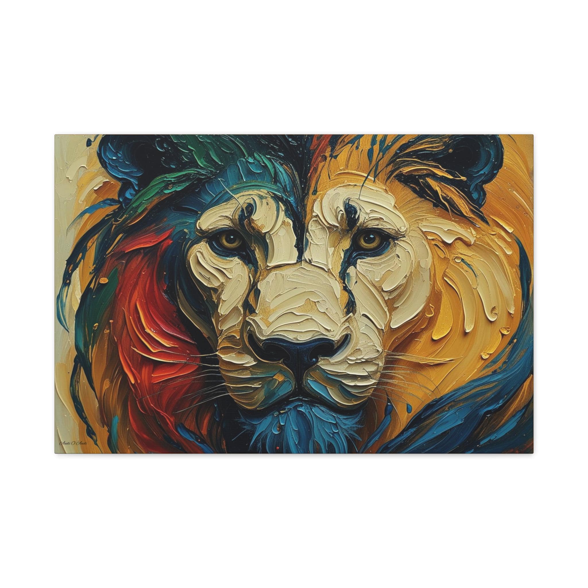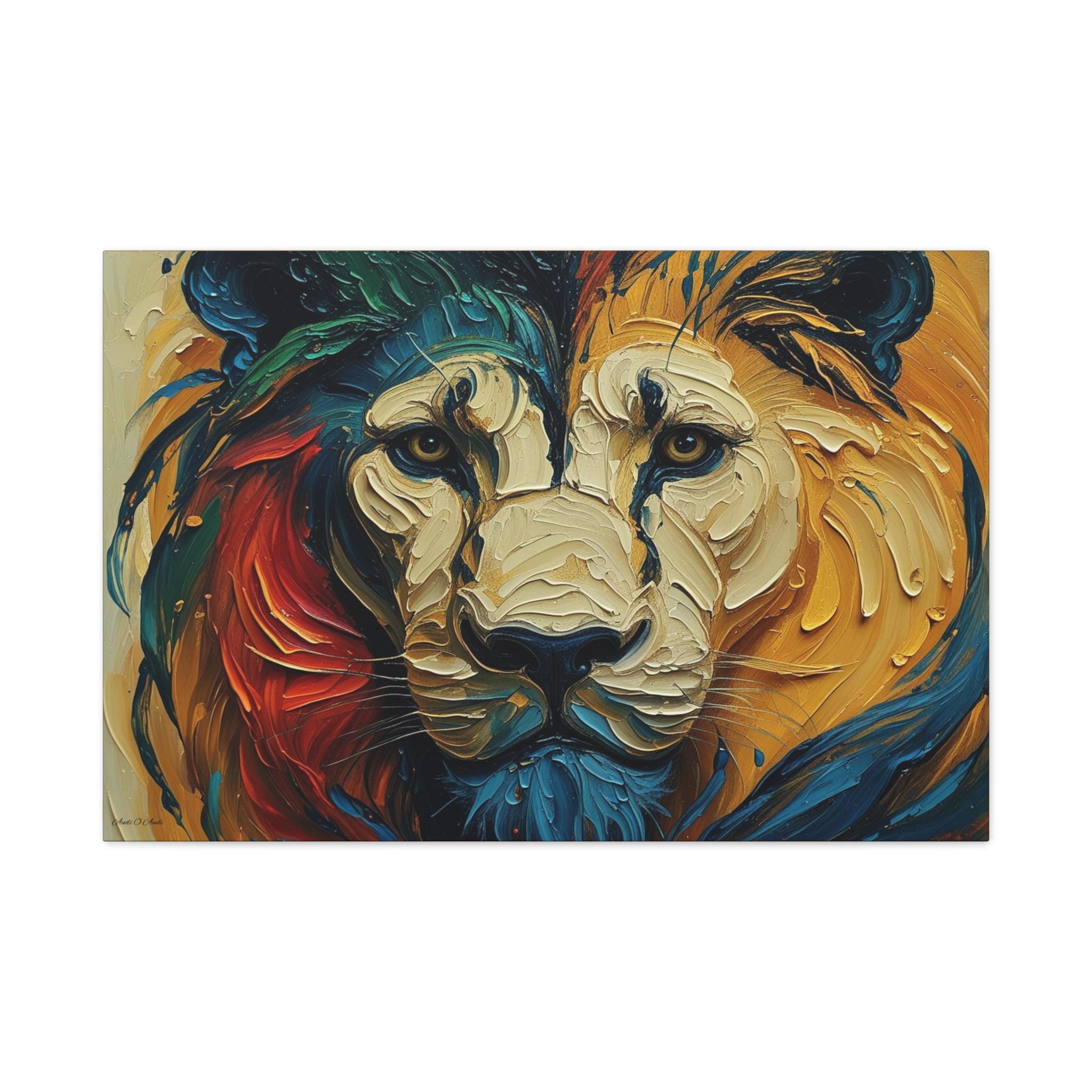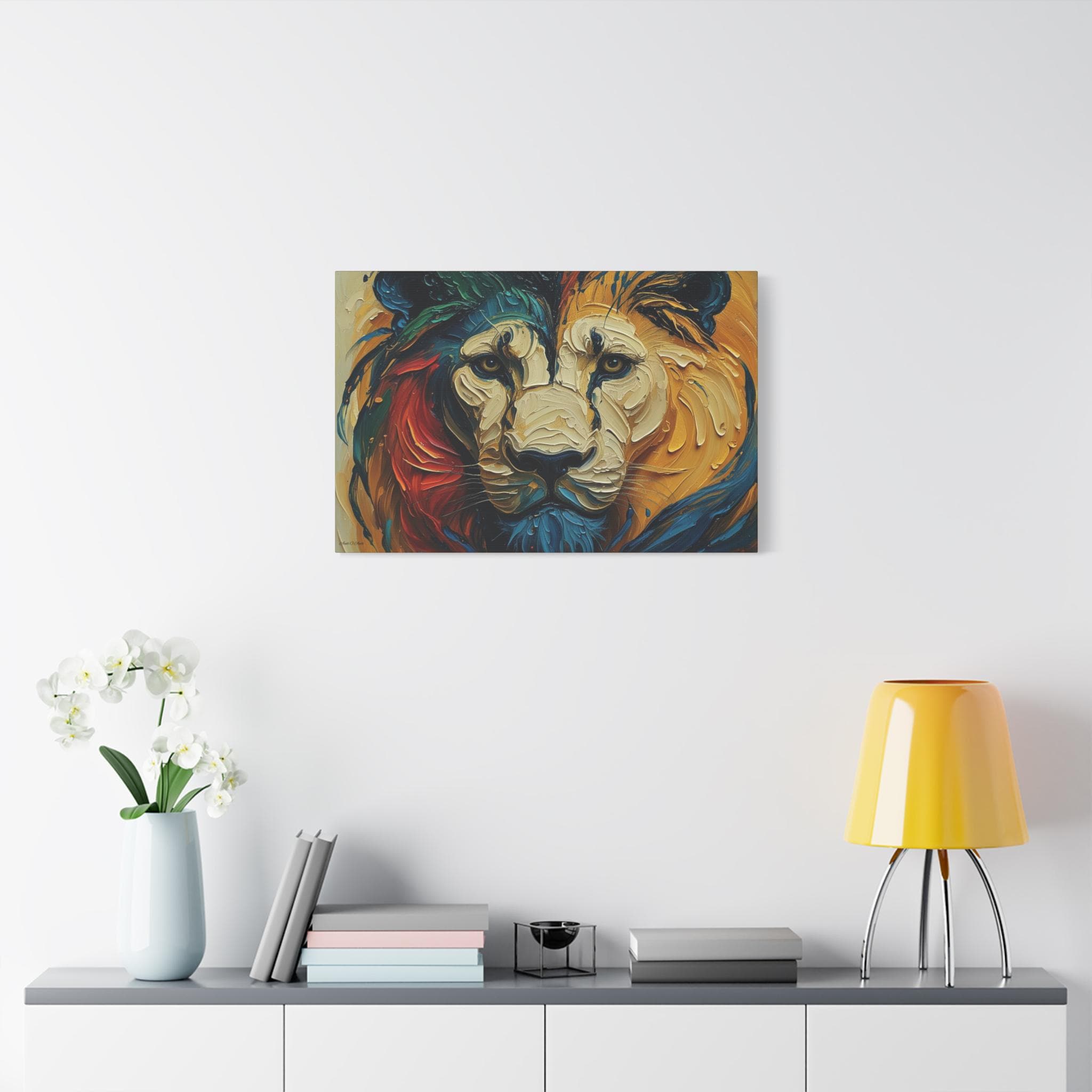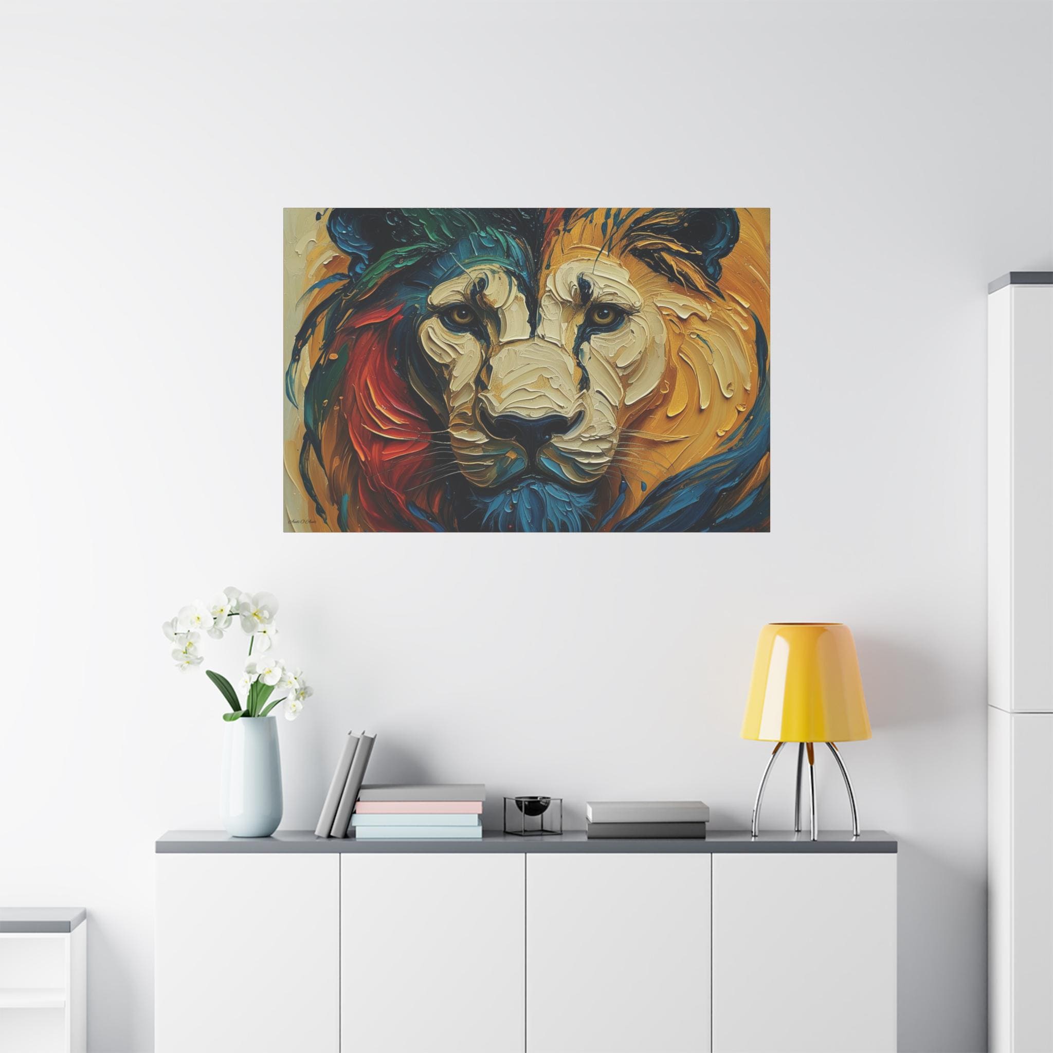 Heart of the Wild, Colorful Lion Face Matte Canvas Print, Modern Canvas, Colorful Lion Art, Office Decor, Home Decor.