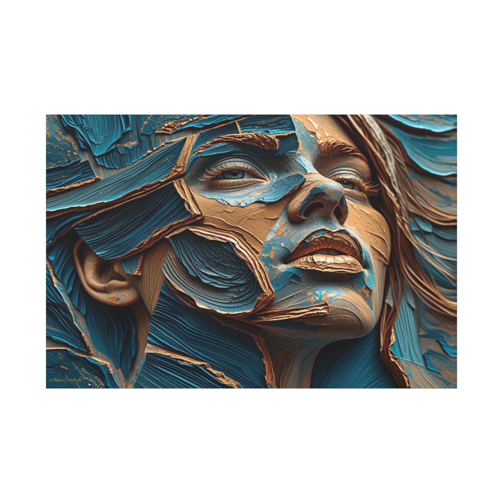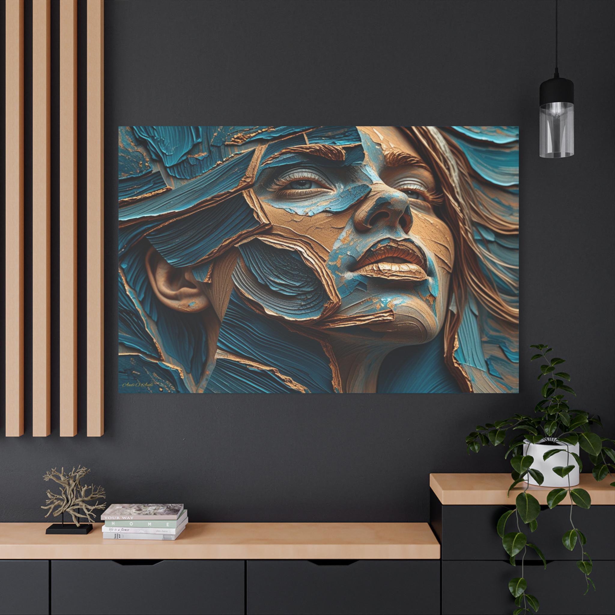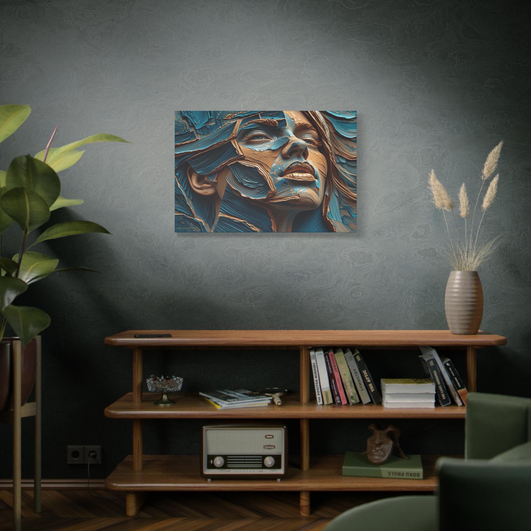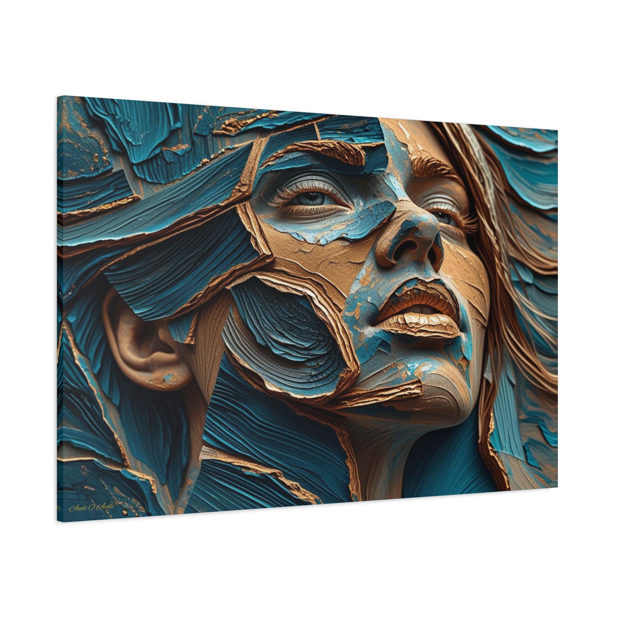 Lapis Stratum, Textured Teal-Gold Portrait Canvas Print, Abstract Face, Modern Wall Art, Boho Galary.