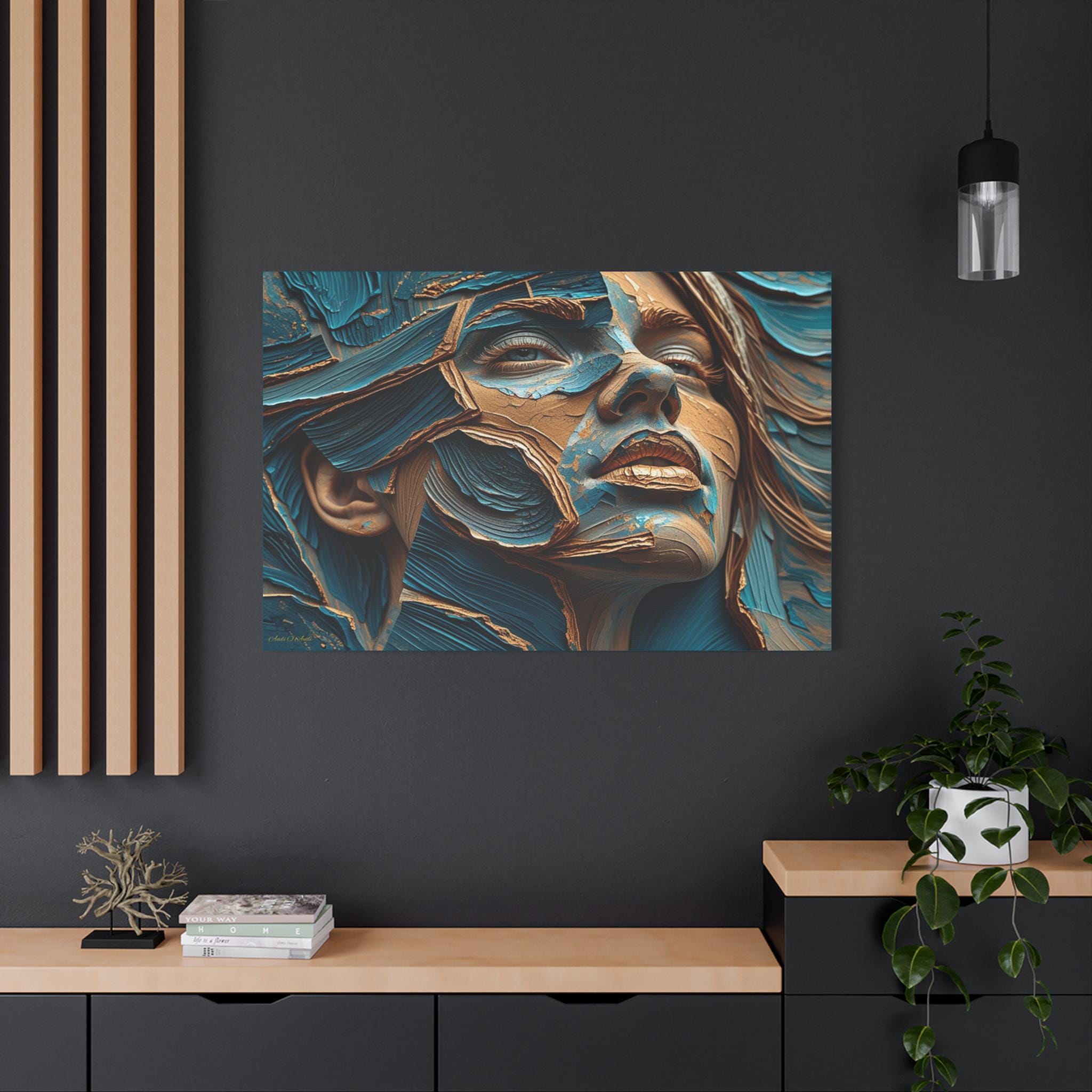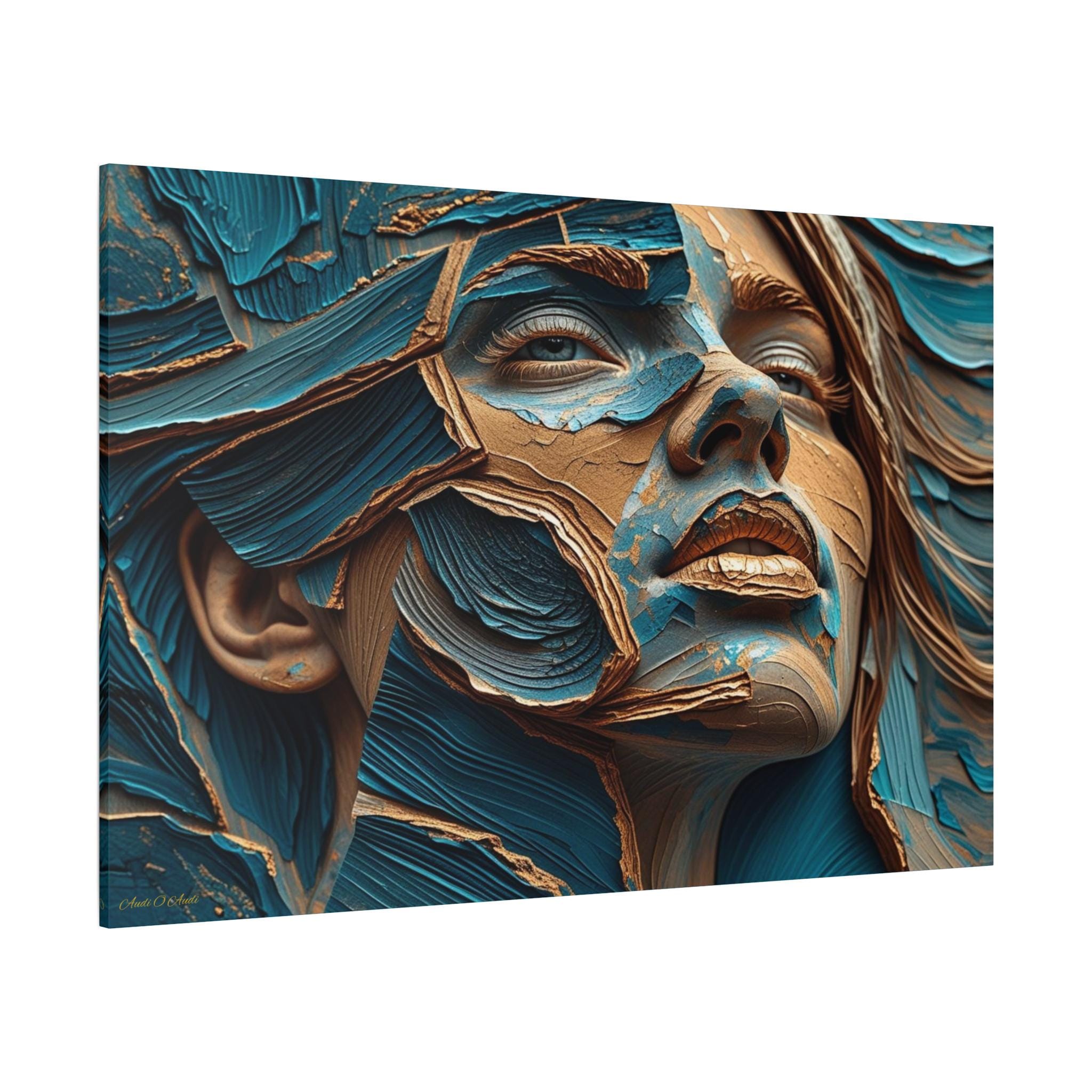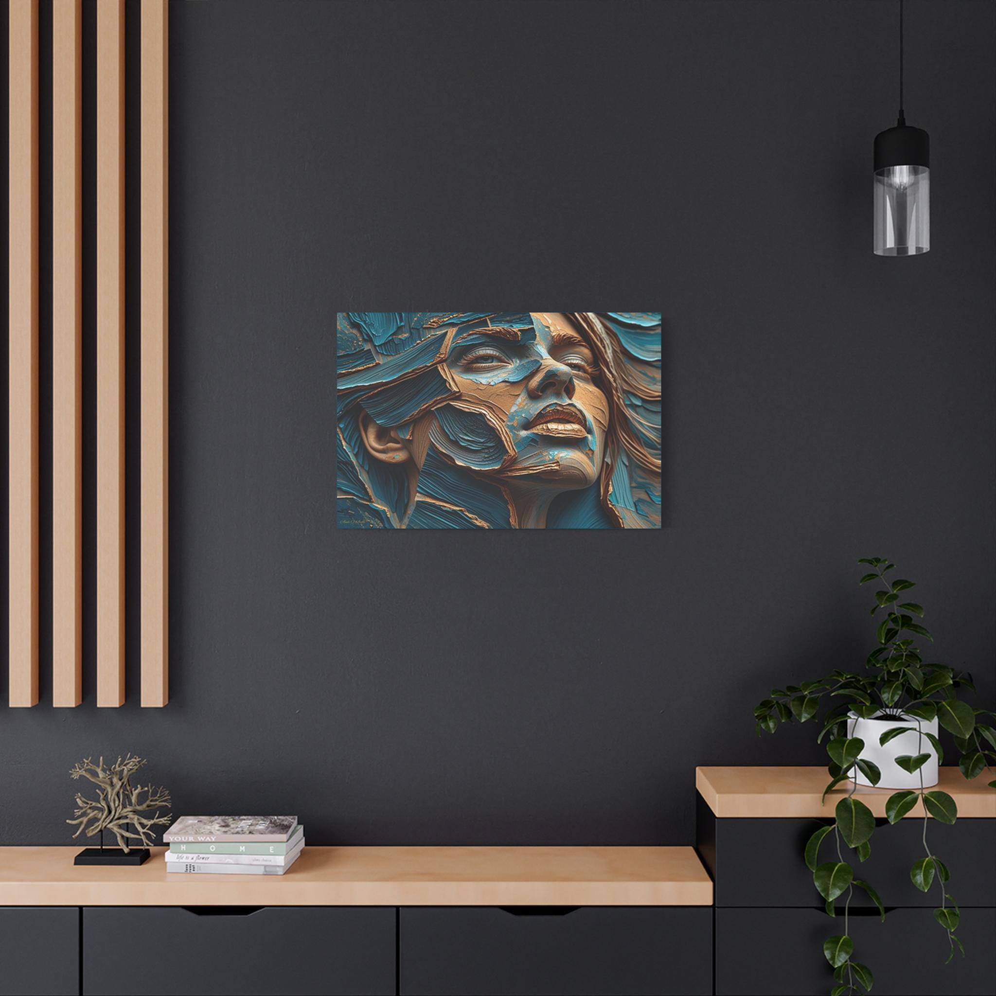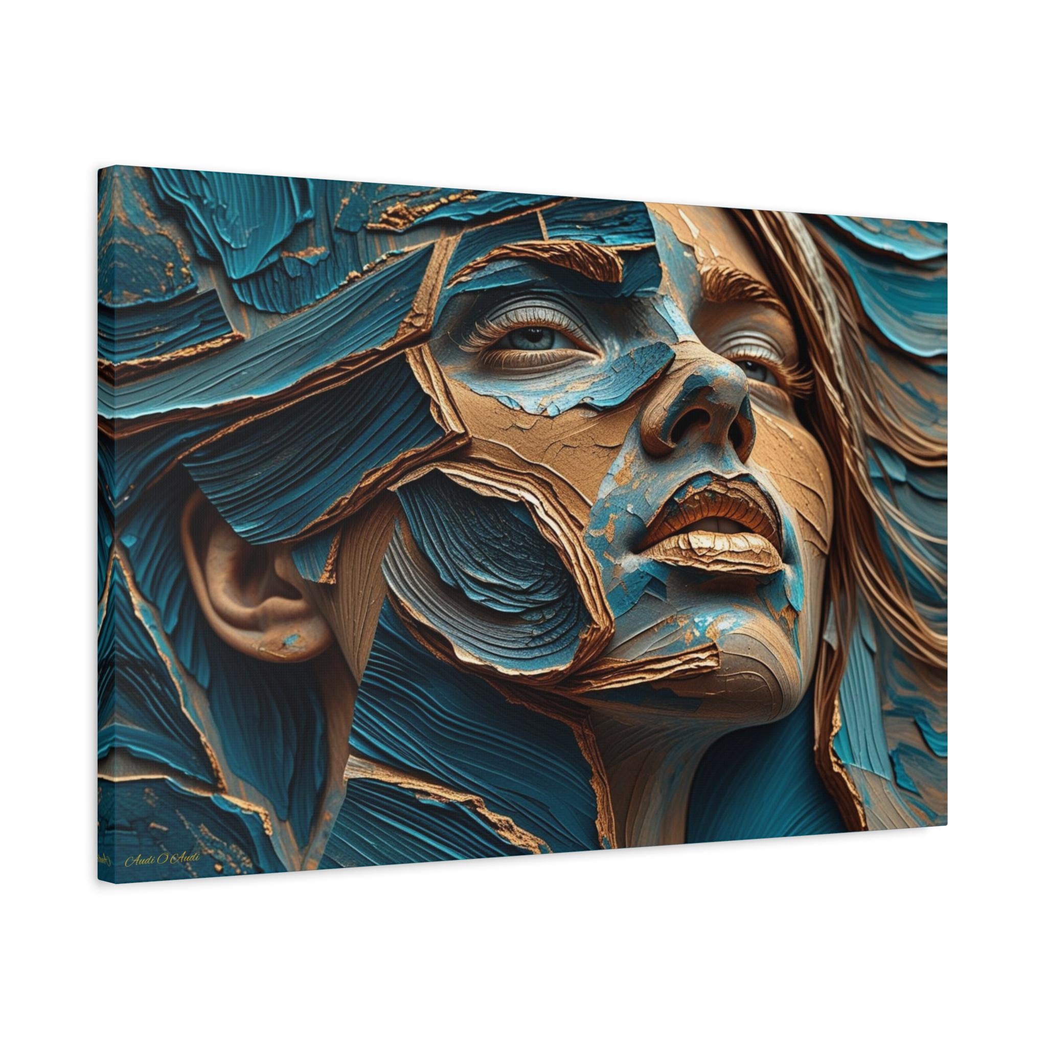 Lapis Stratum, Textured Teal-Gold Portrait Canvas Print, Abstract Face, Modern Wall Art, Boho Galary.