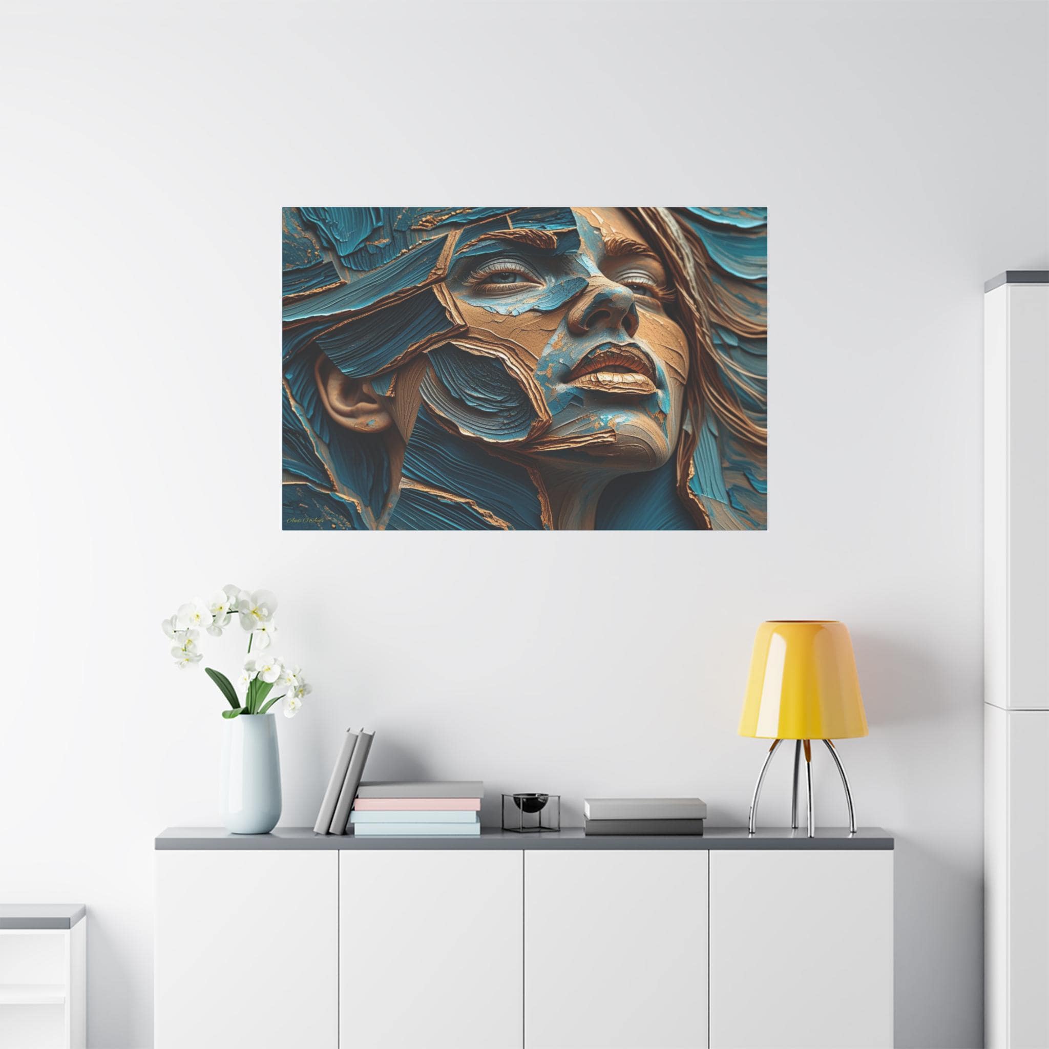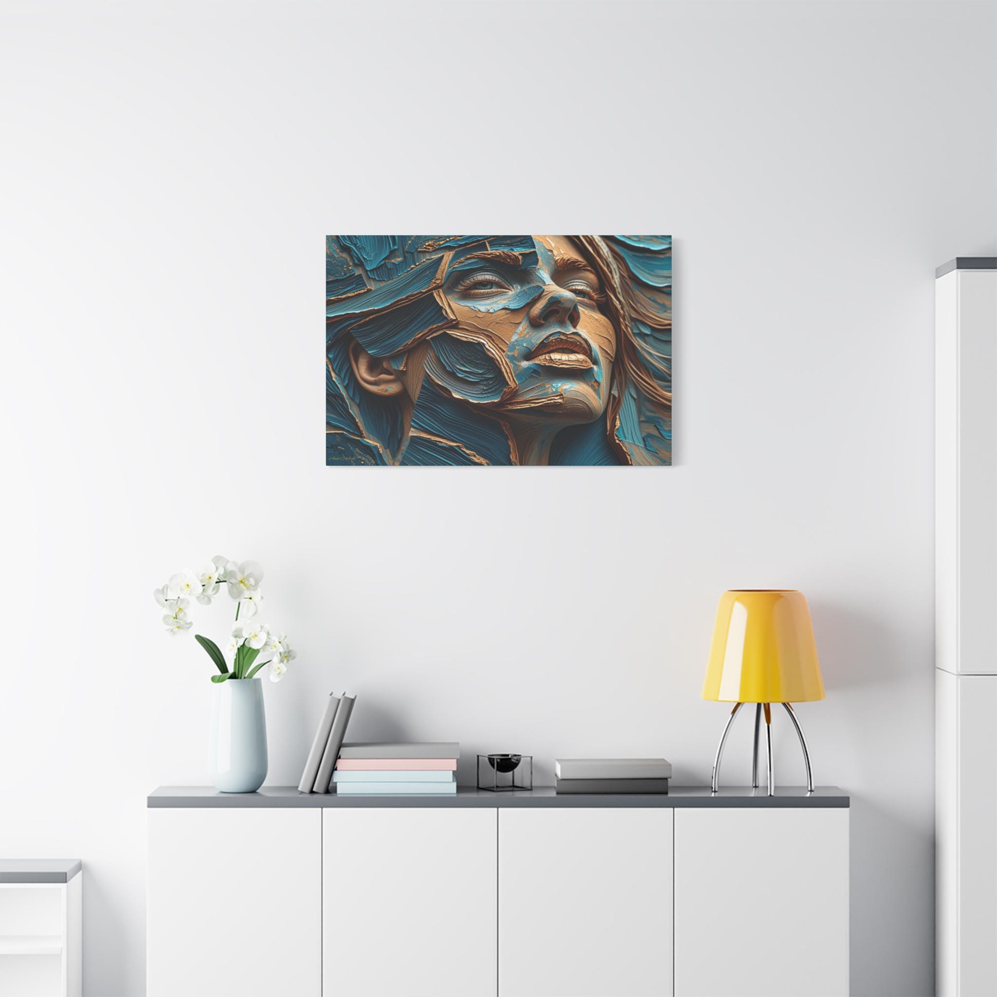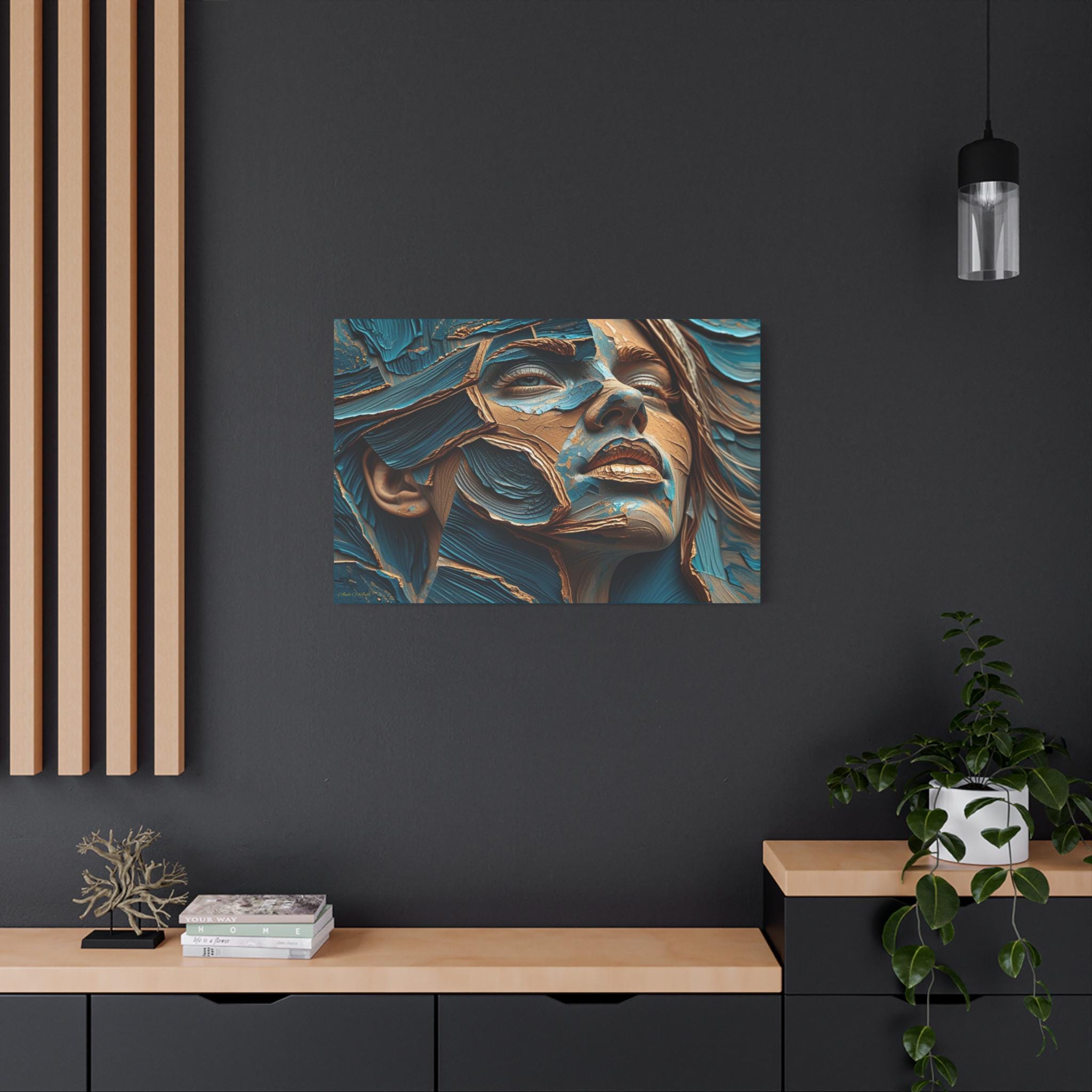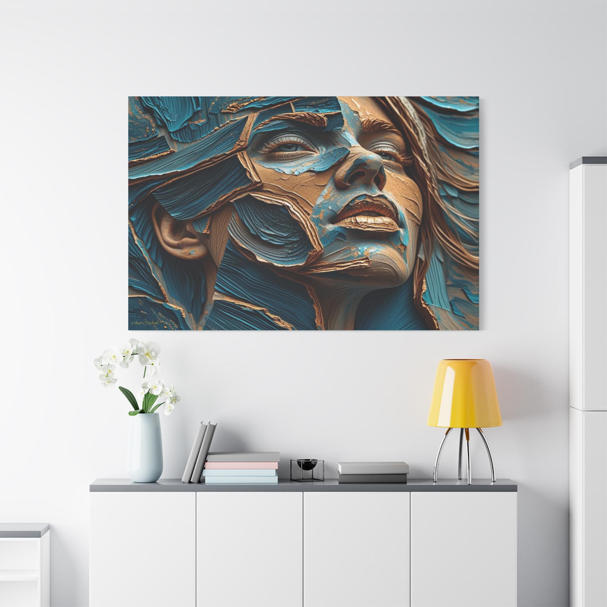 Lapis Stratum, Textured Teal-Gold Portrait Canvas Print, Abstract Face, Modern Wall Art, Boho Galary.