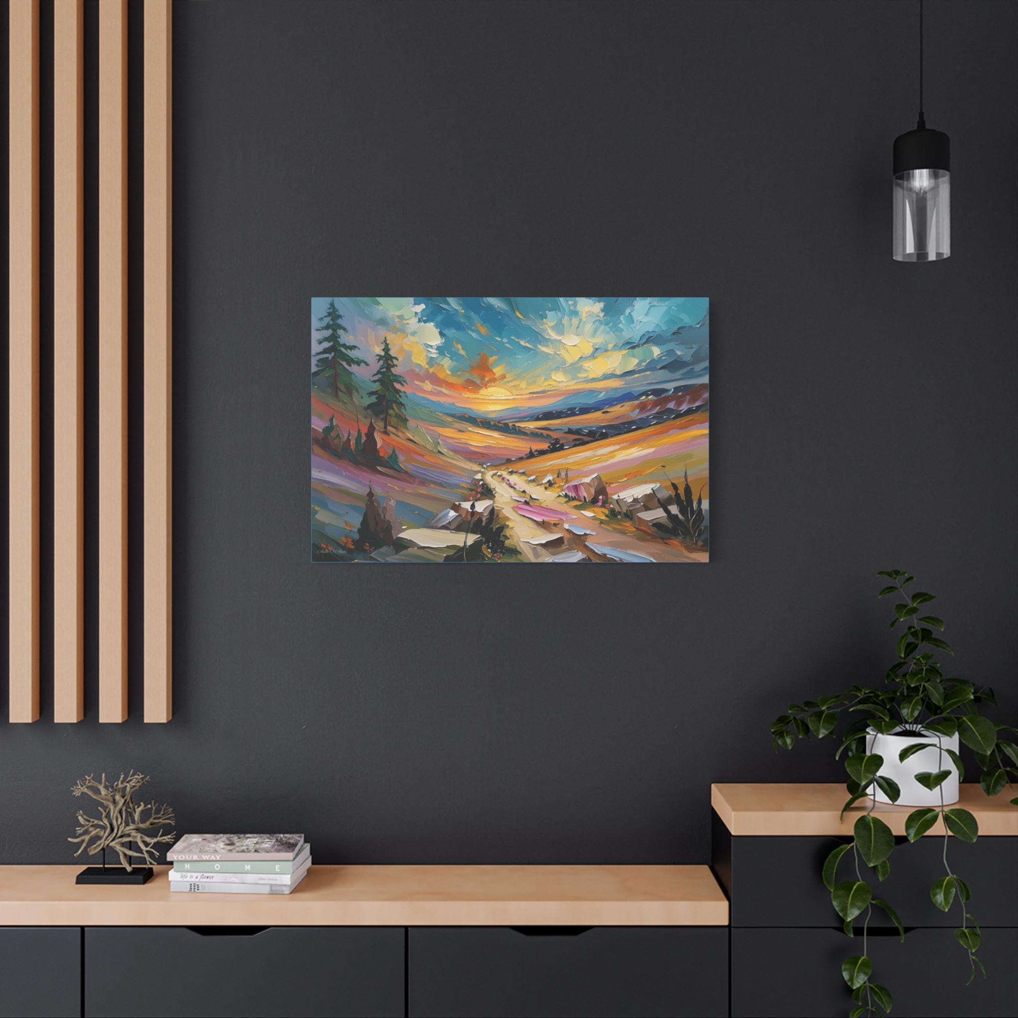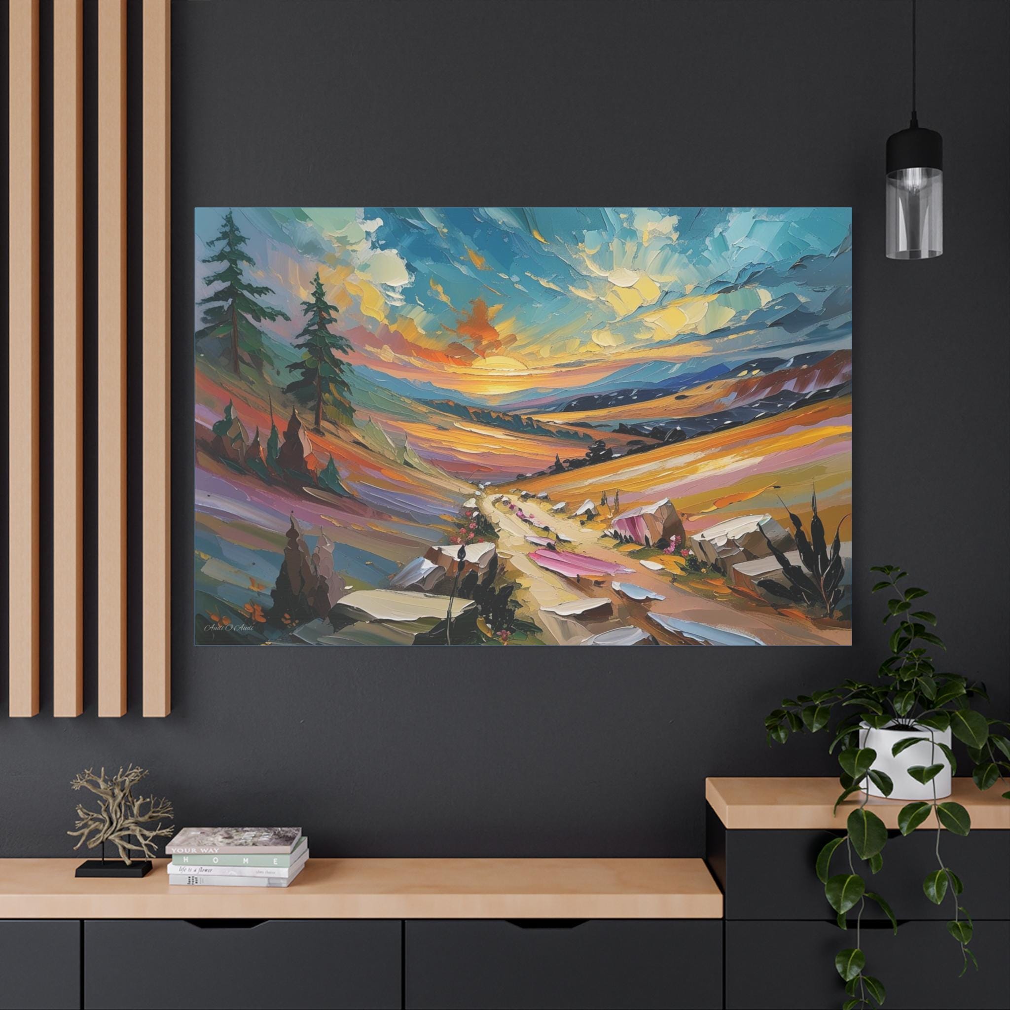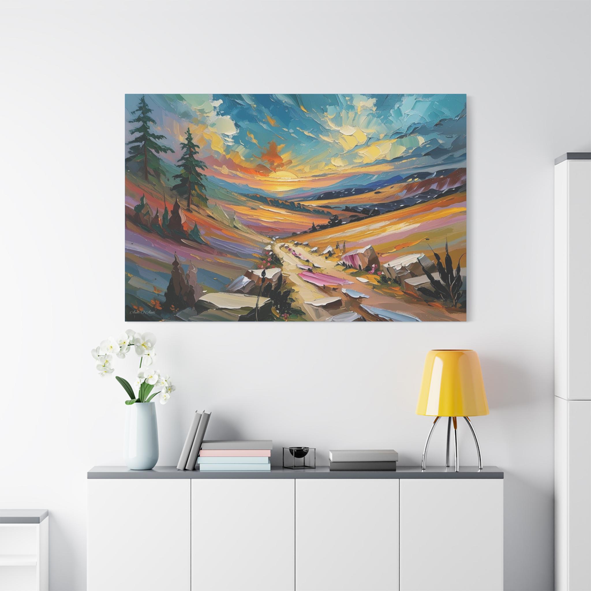 Colorful Sunset Landscape Canvas | Stretched Matte Wall Art, Modern Canvas Print, Landscape Art, Abstract Landscape.