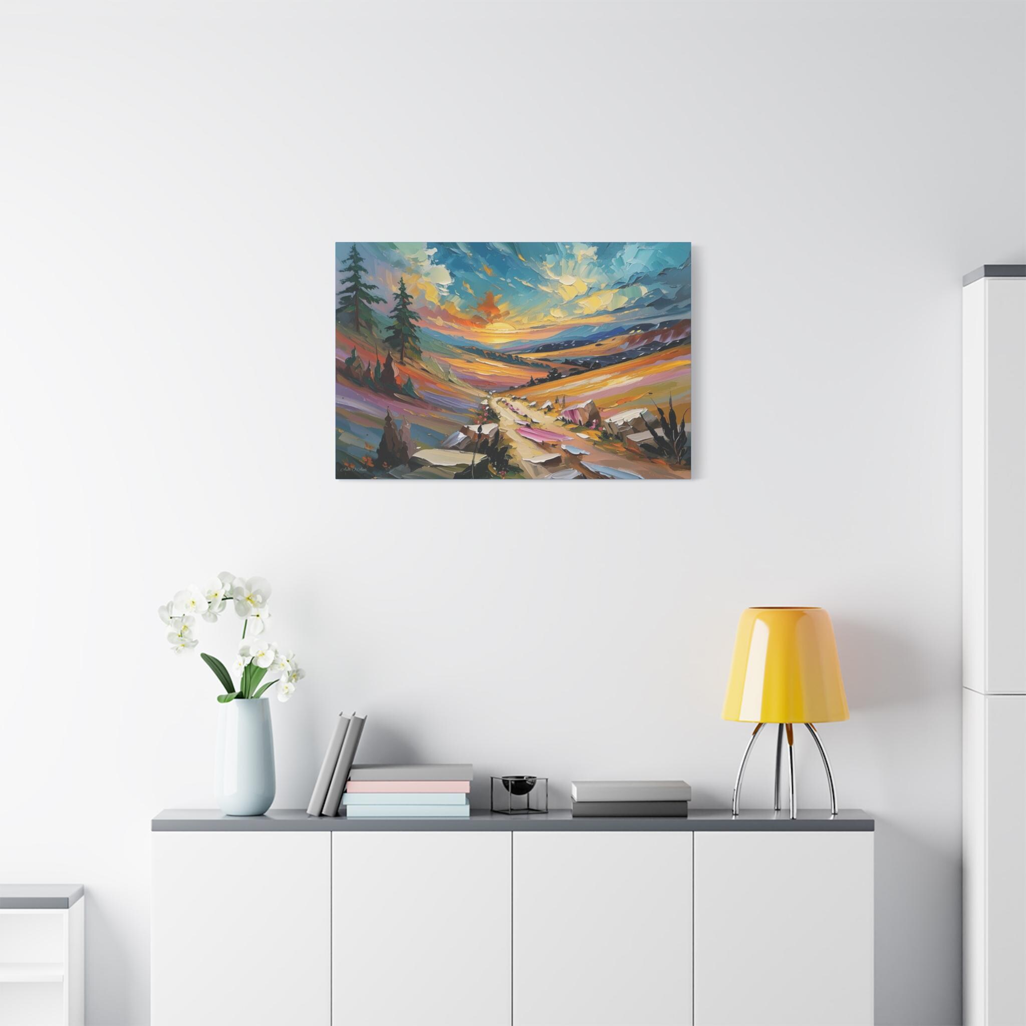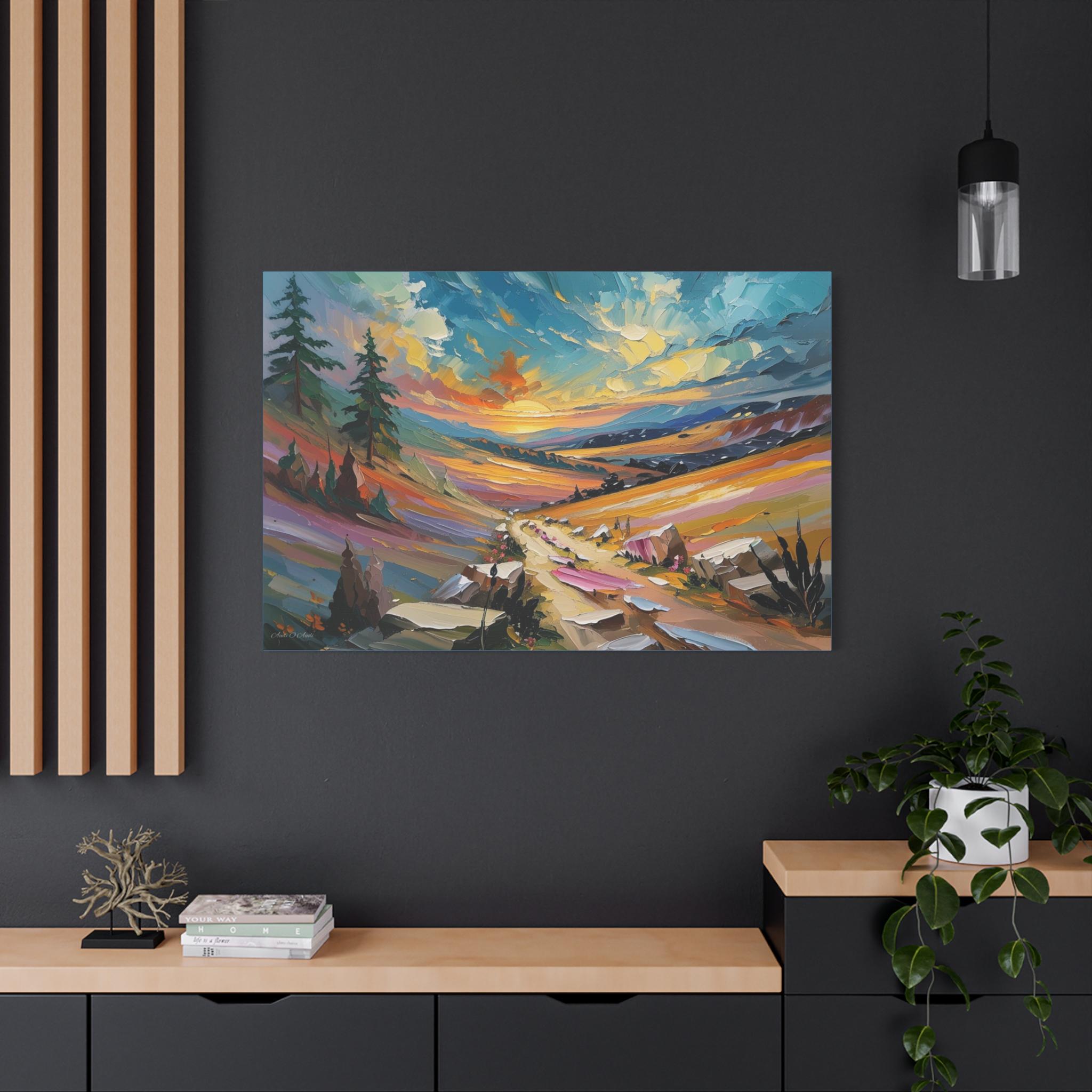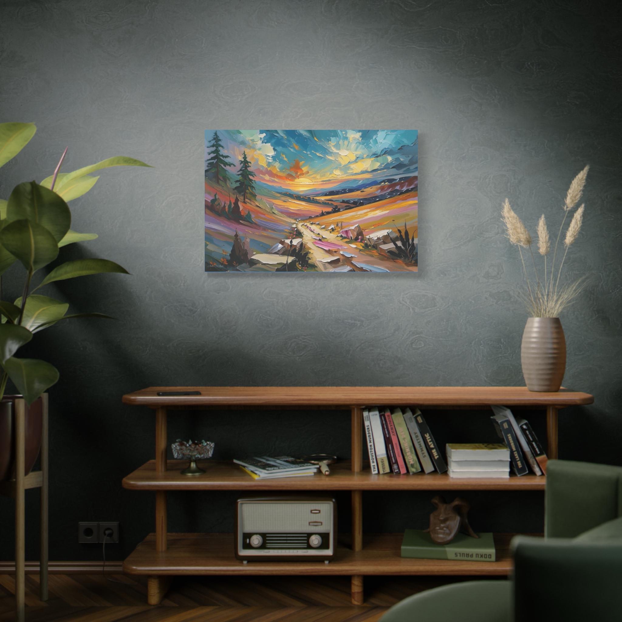 Colorful Sunset Landscape Canvas | Stretched Matte Wall Art, Modern Canvas Print, Landscape Art, Abstract Landscape.