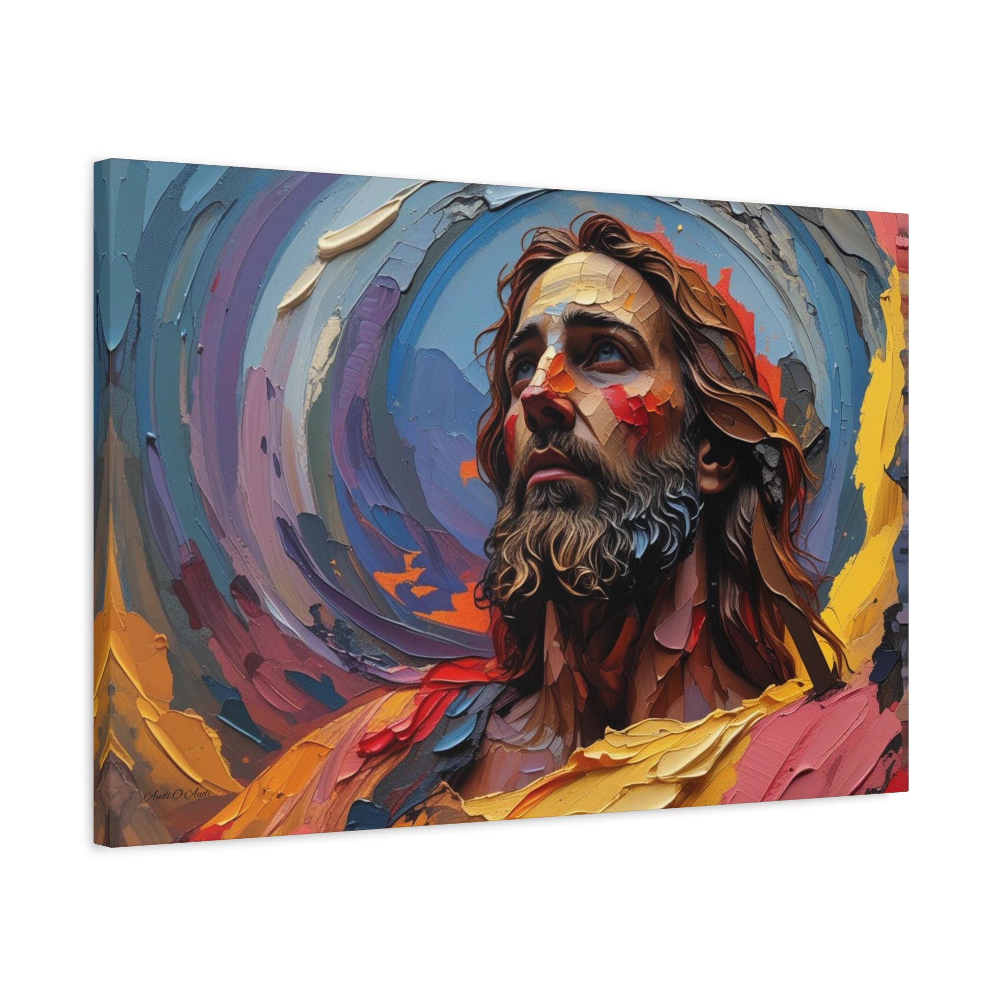 "The Ascendant Gaze" is a powerful Expressionist portrait of Jesus Christ, rendered in a highly stylized and impactful impasto technique.