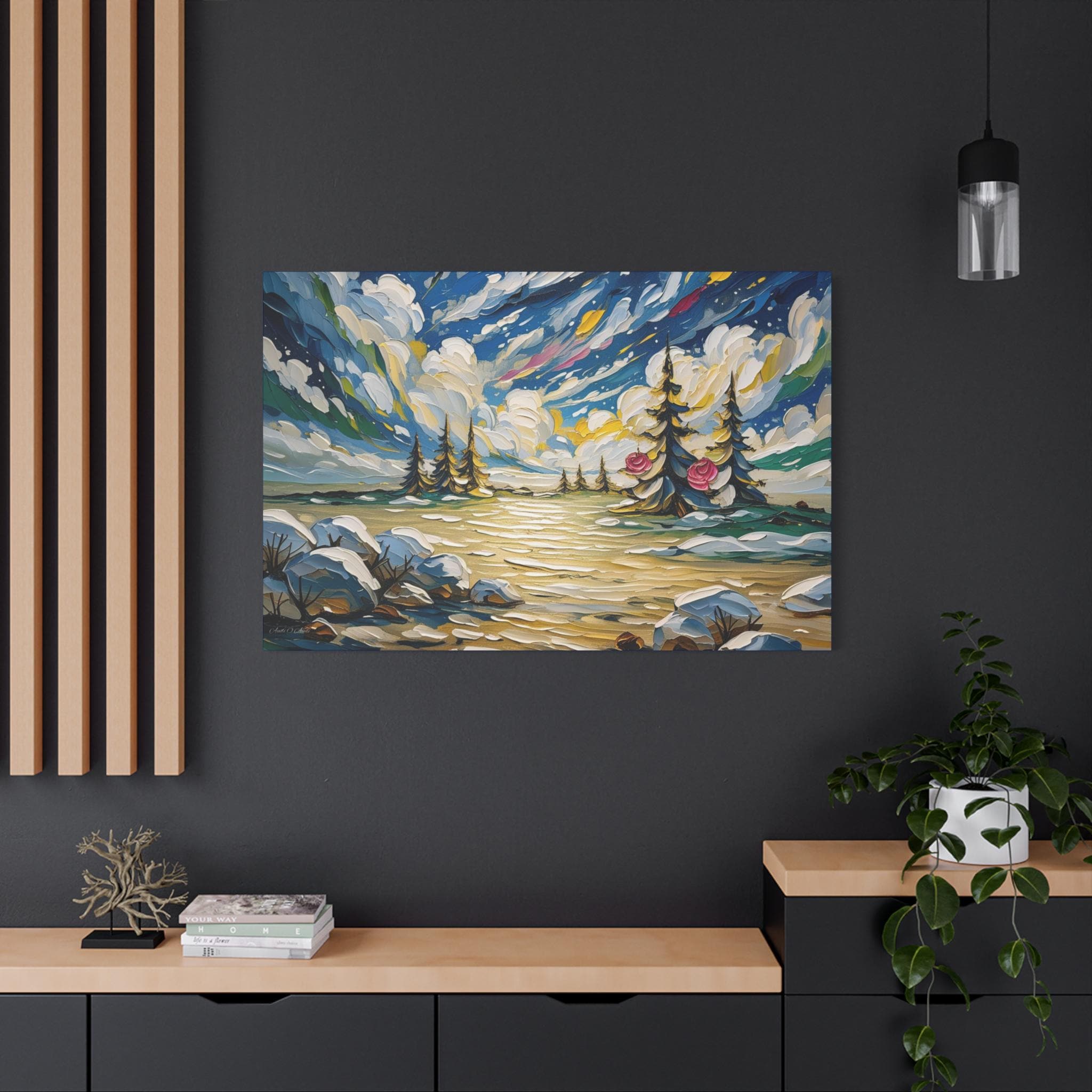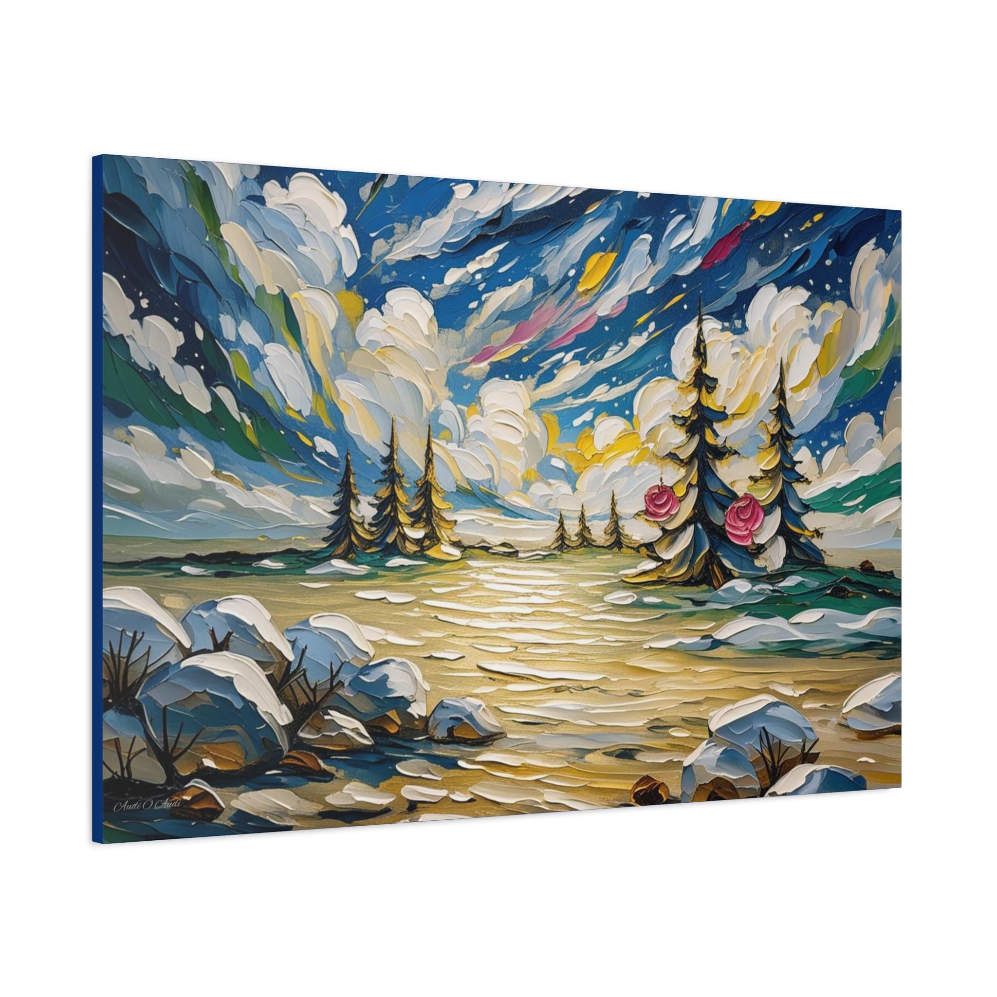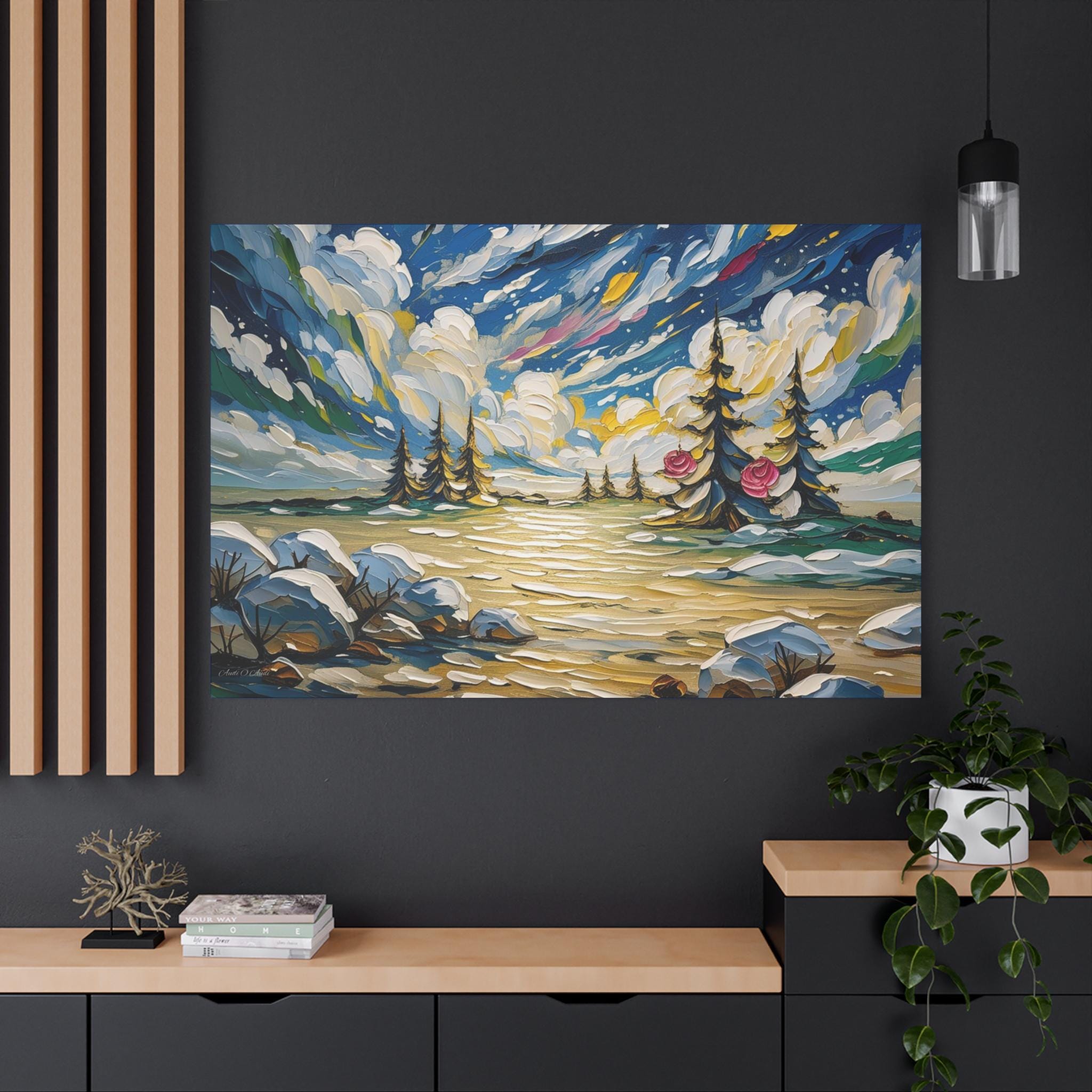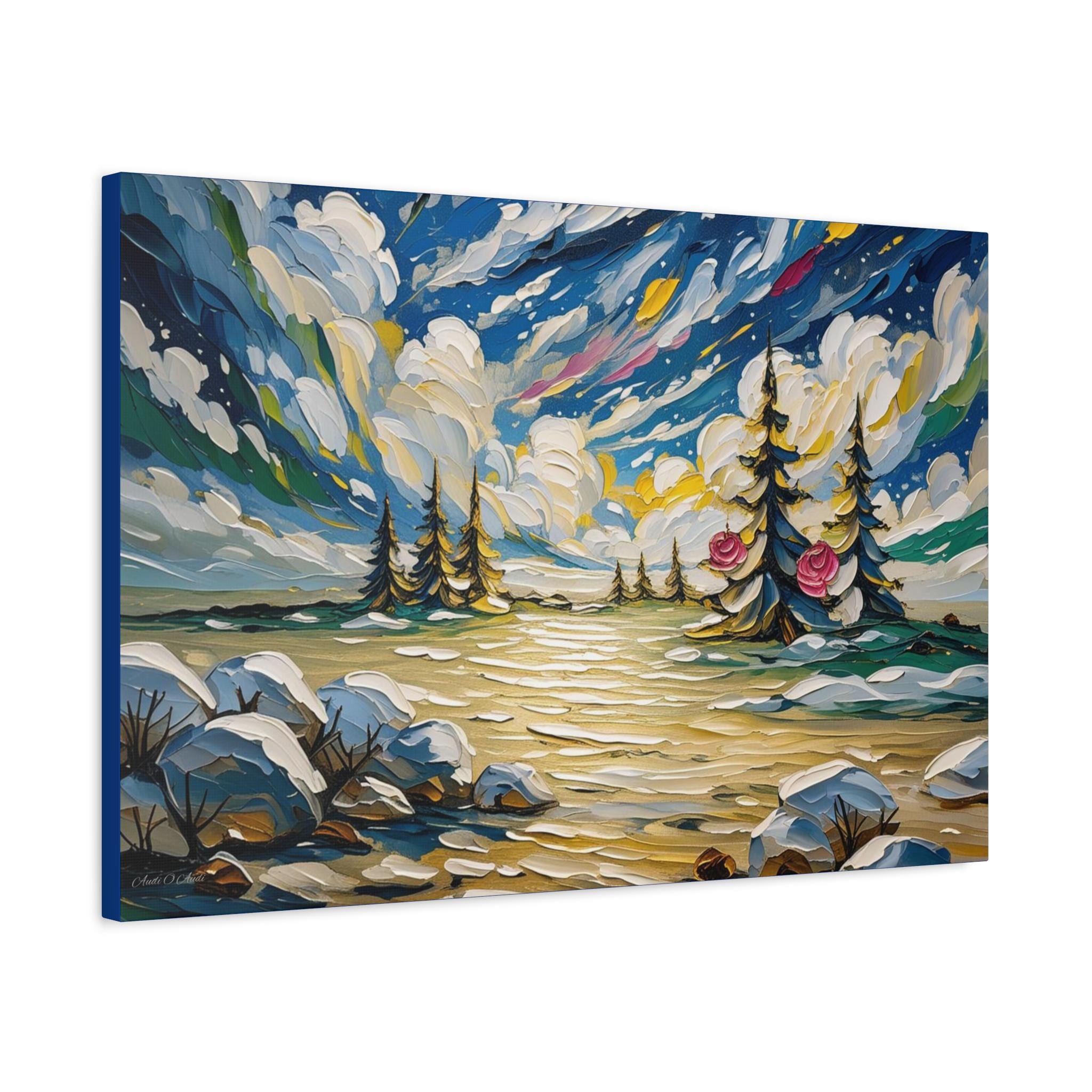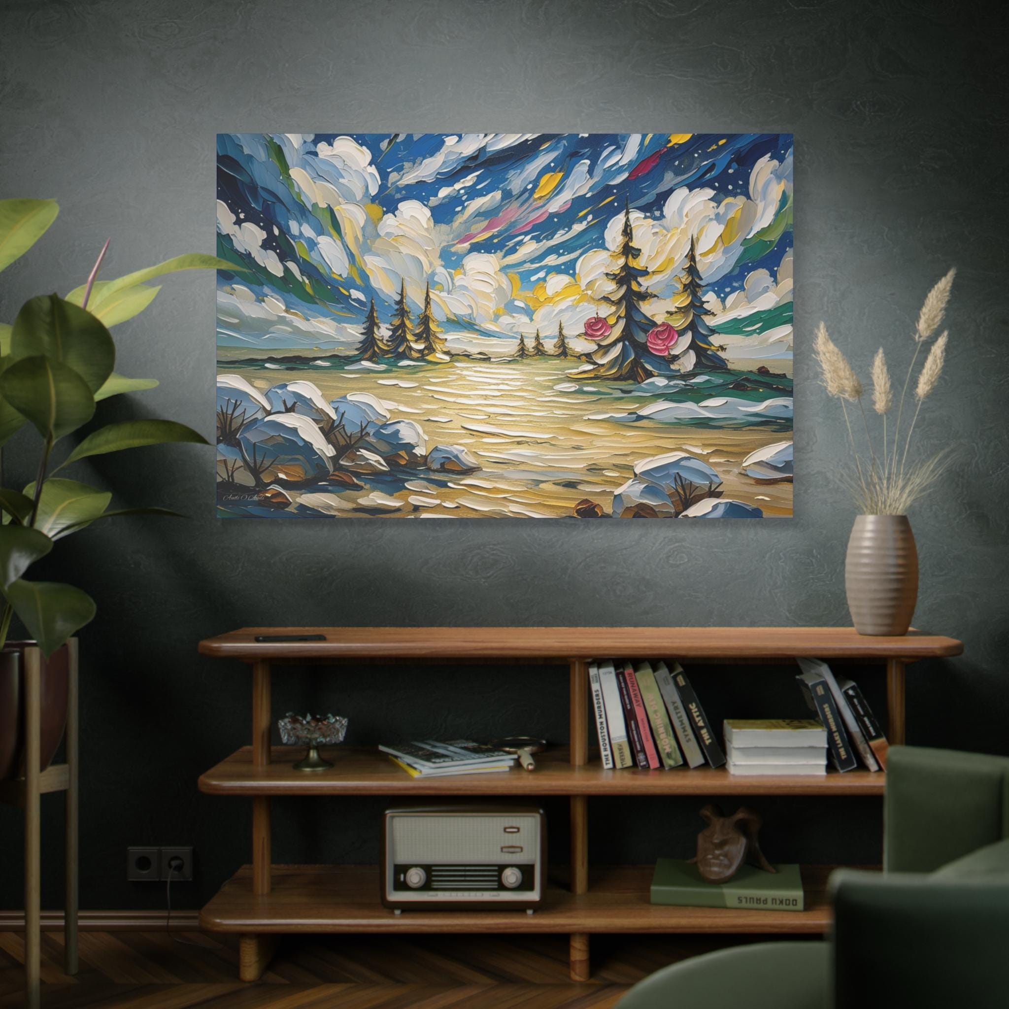 Canvas Print, Golden Snowdrift Whimsical Winter Landscape, House Warming Gift, Cozy Wall Art, Living Room Art, Stretched Print, 1 25 Inch,